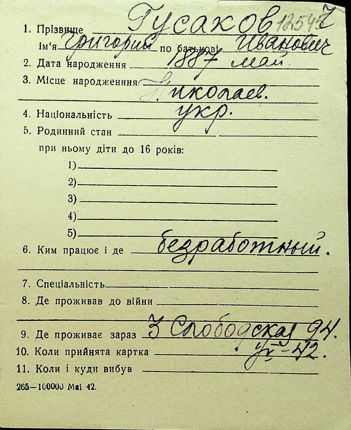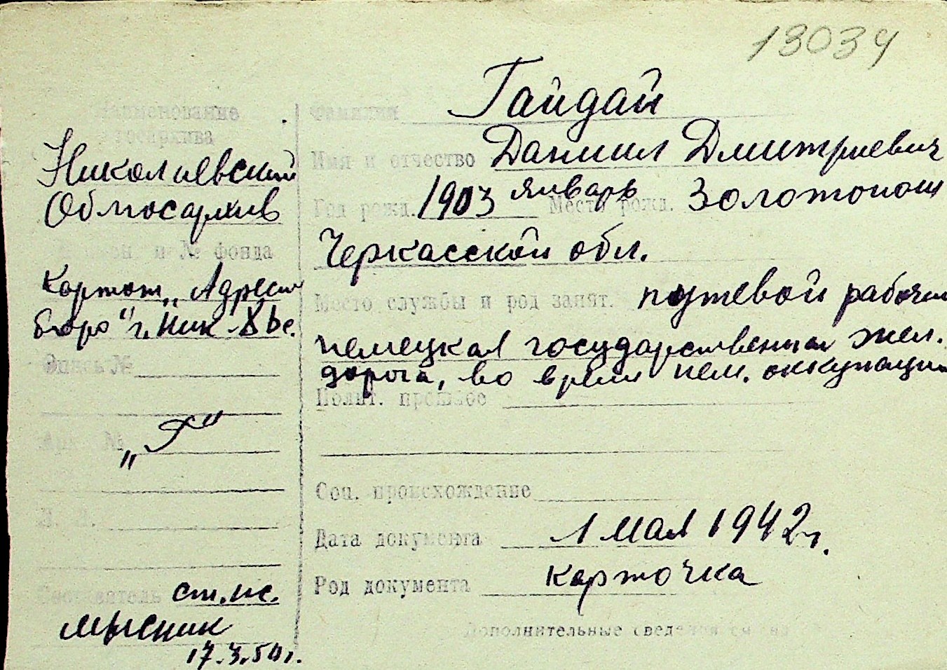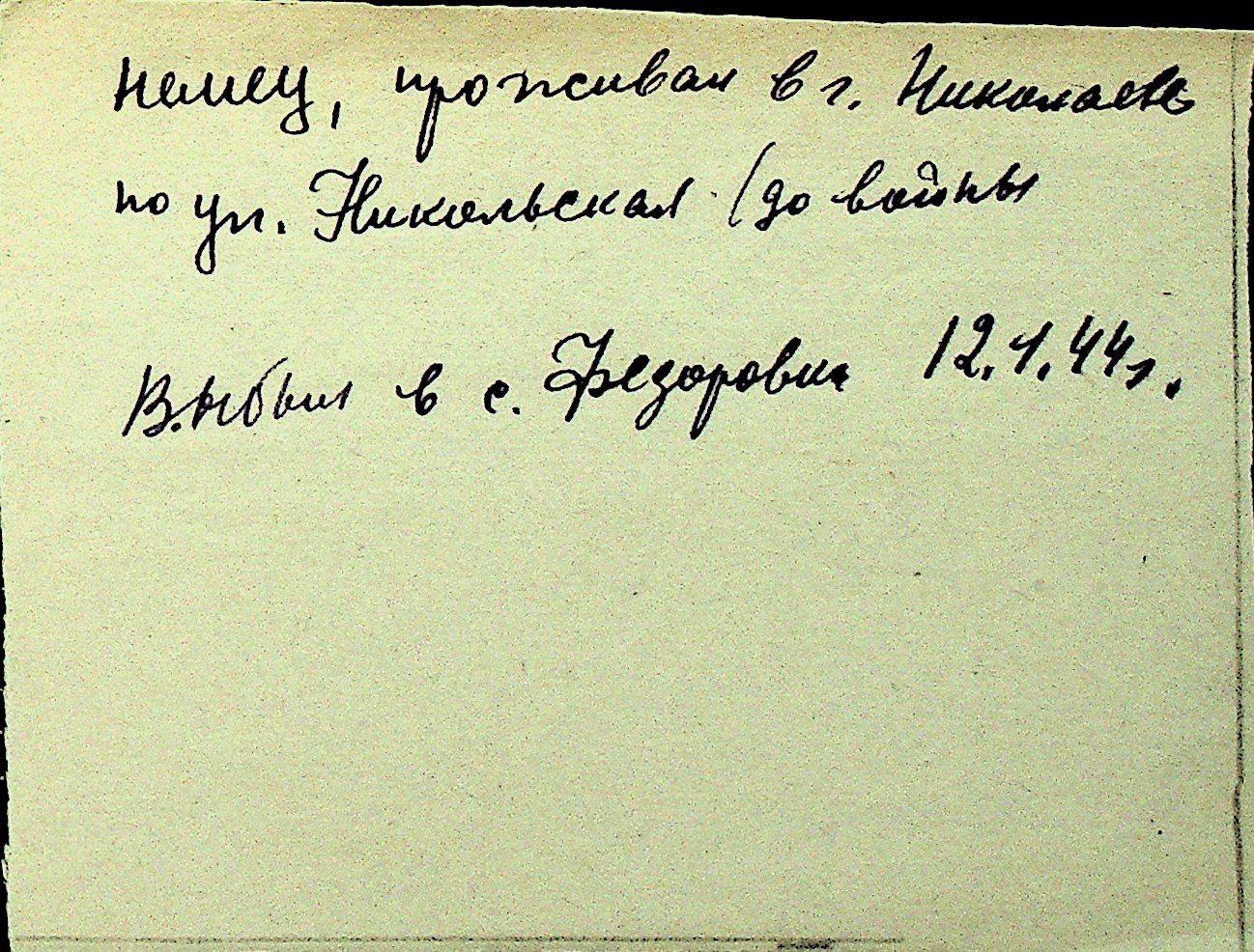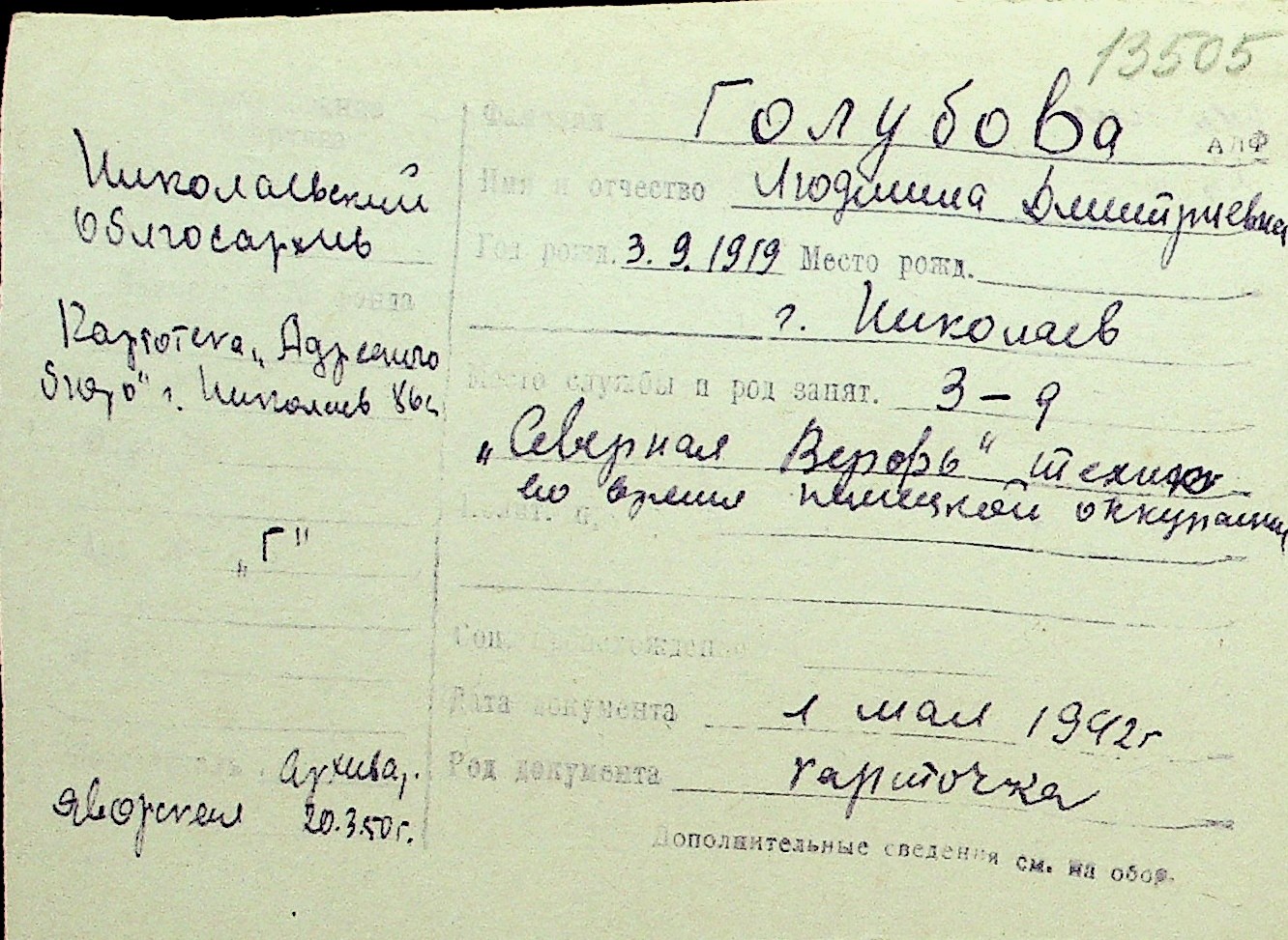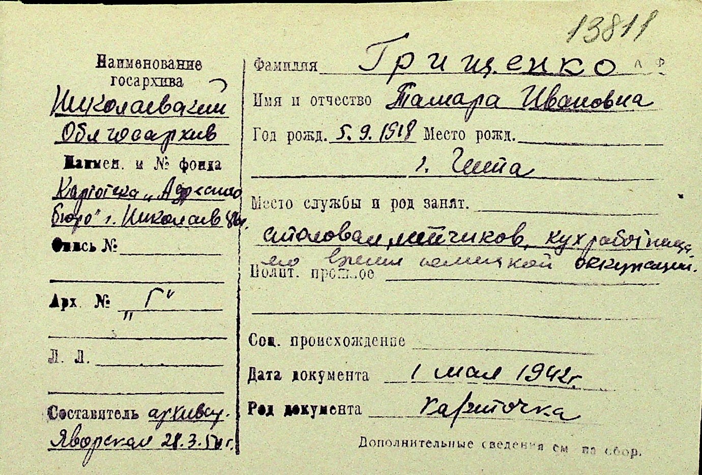 • • Перелік карток до фонду № Н-1016
