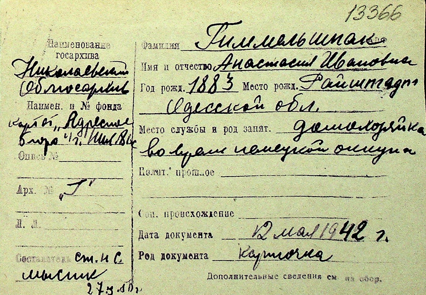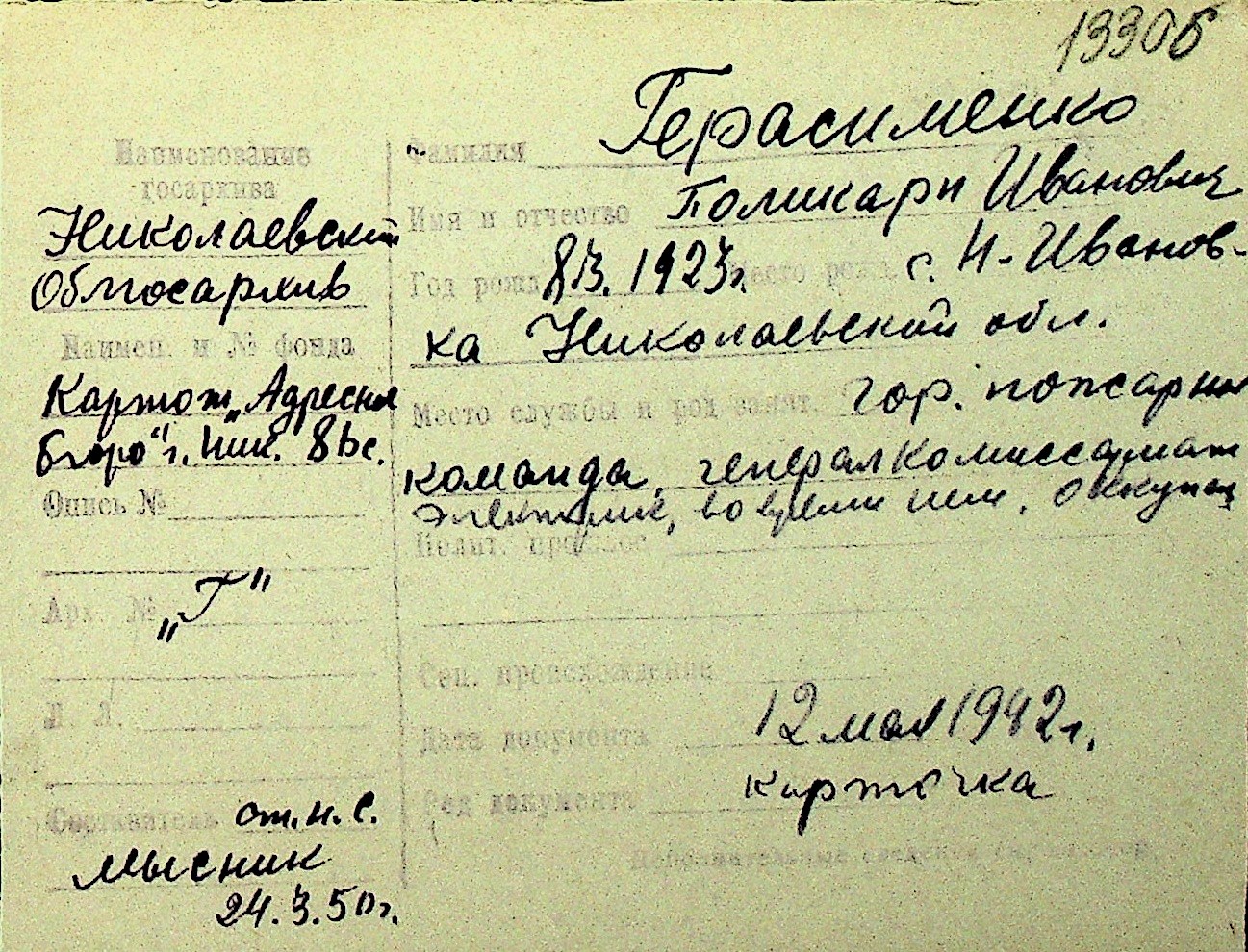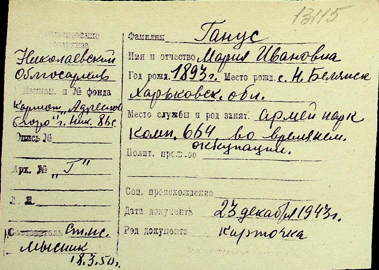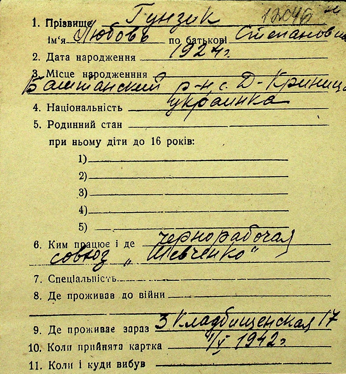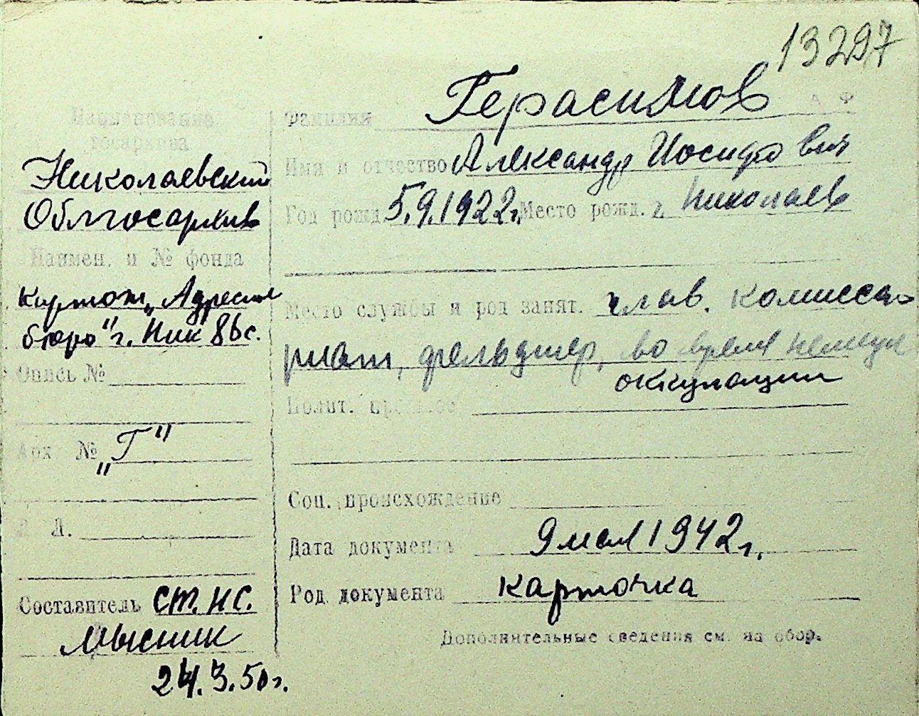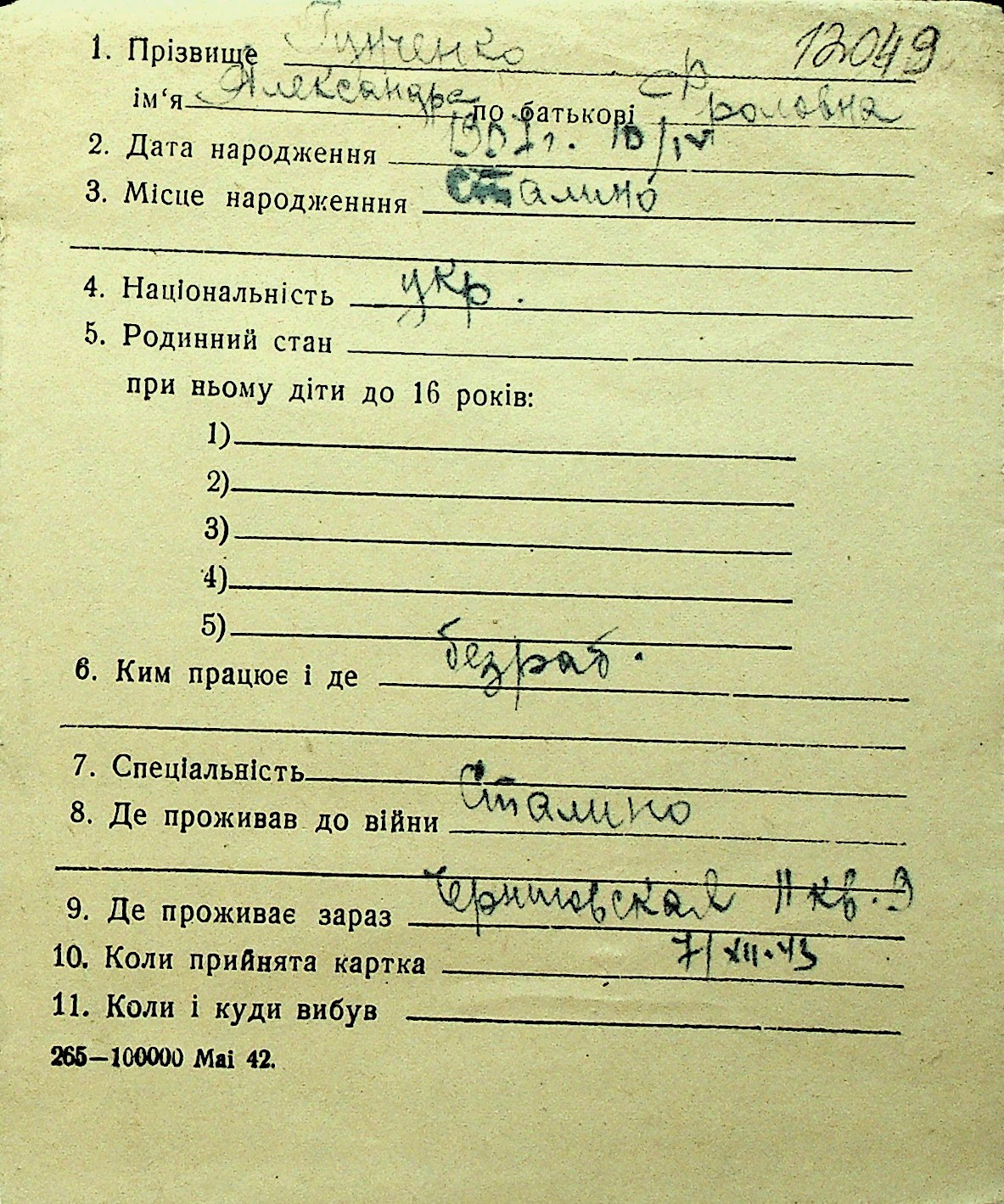 • • Перелік карток до фонду № Н-1016