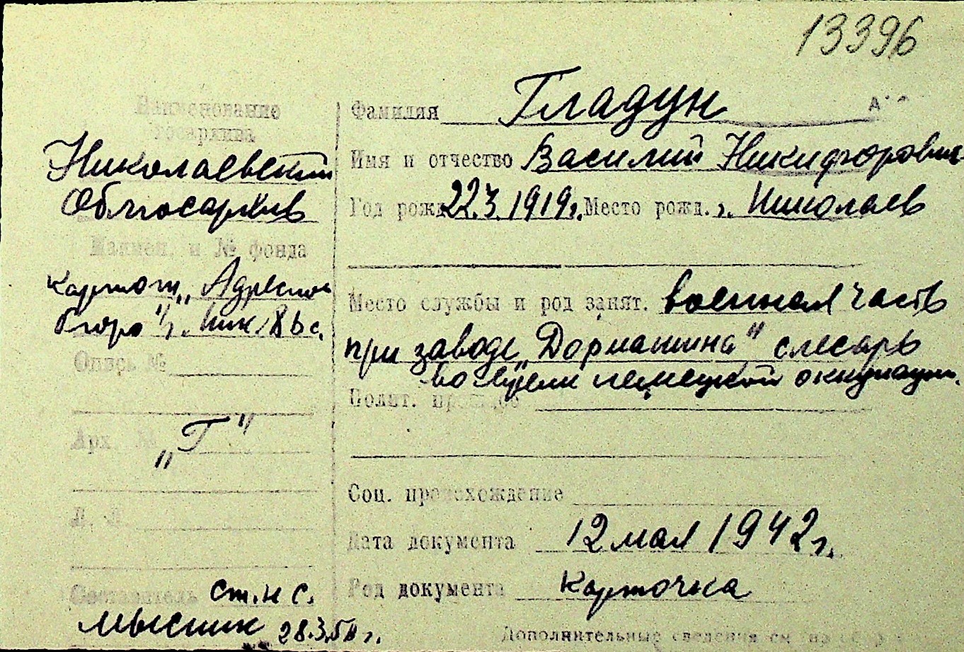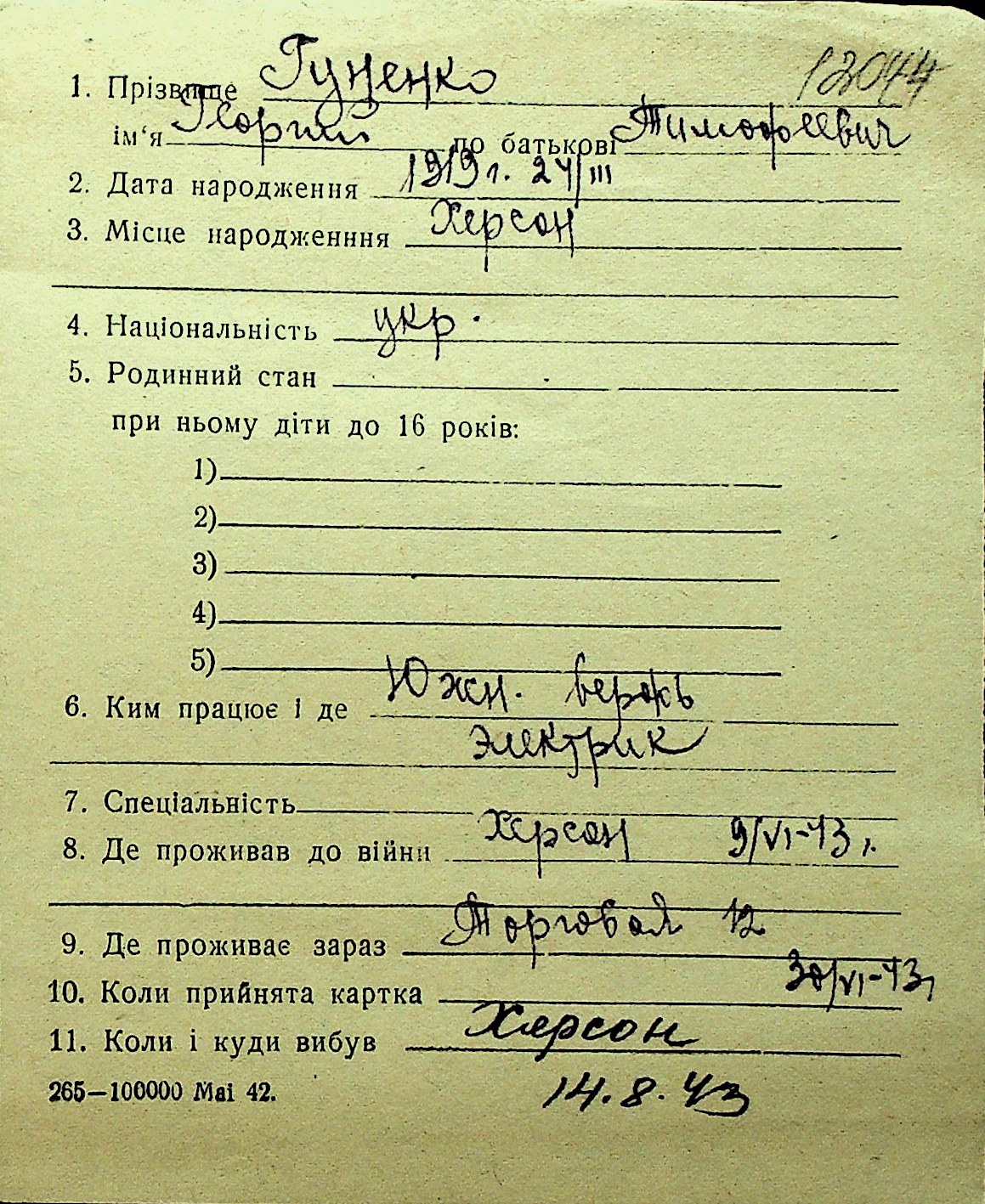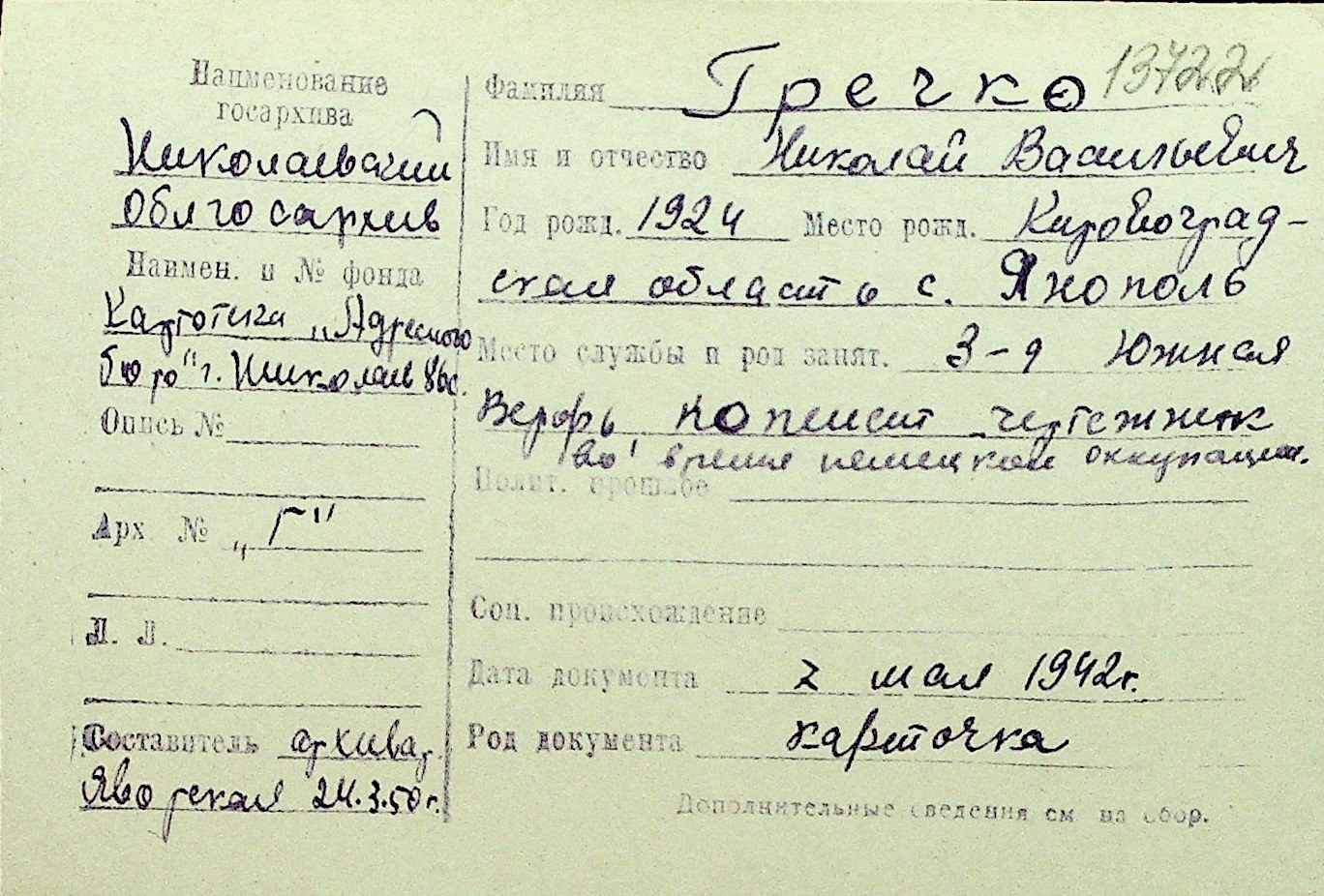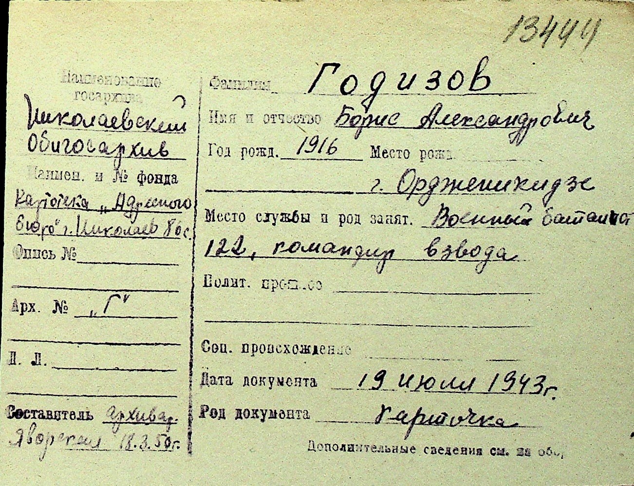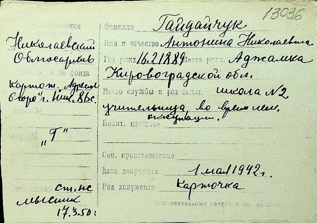 • • Перелік карток до фонду № Н-1016