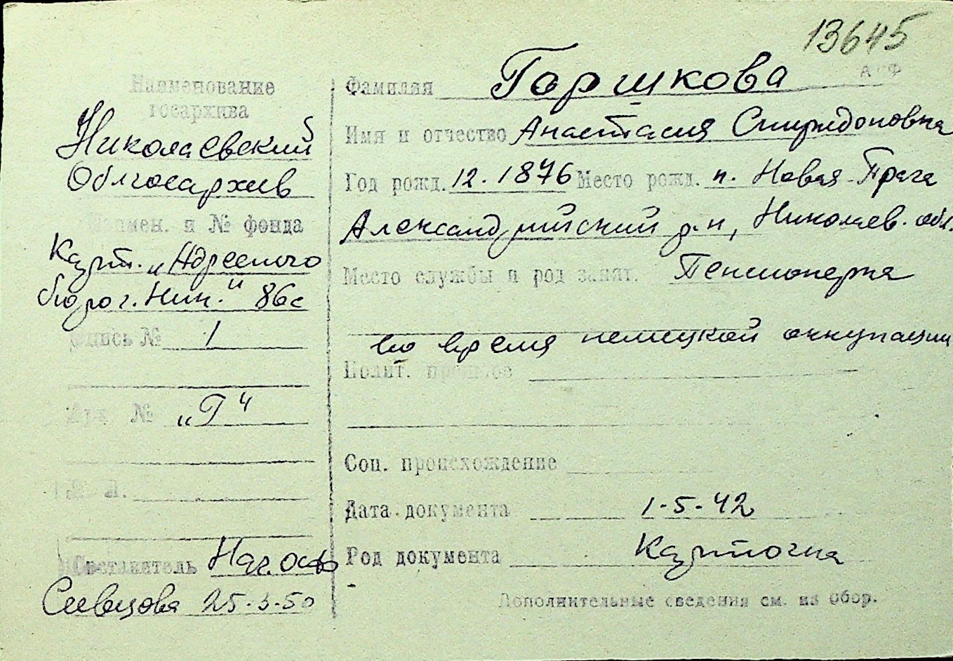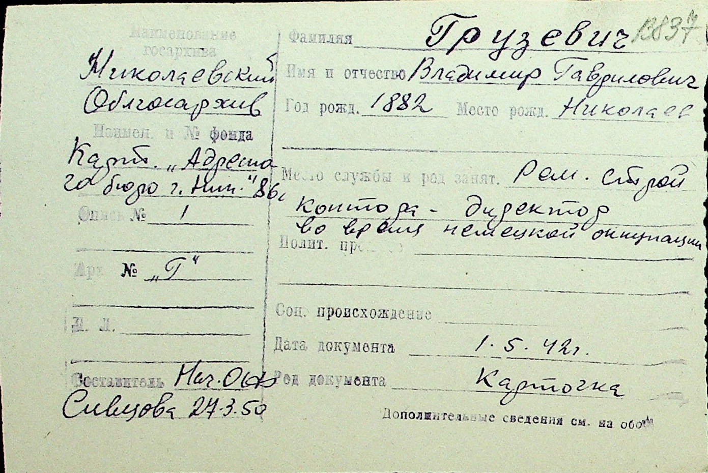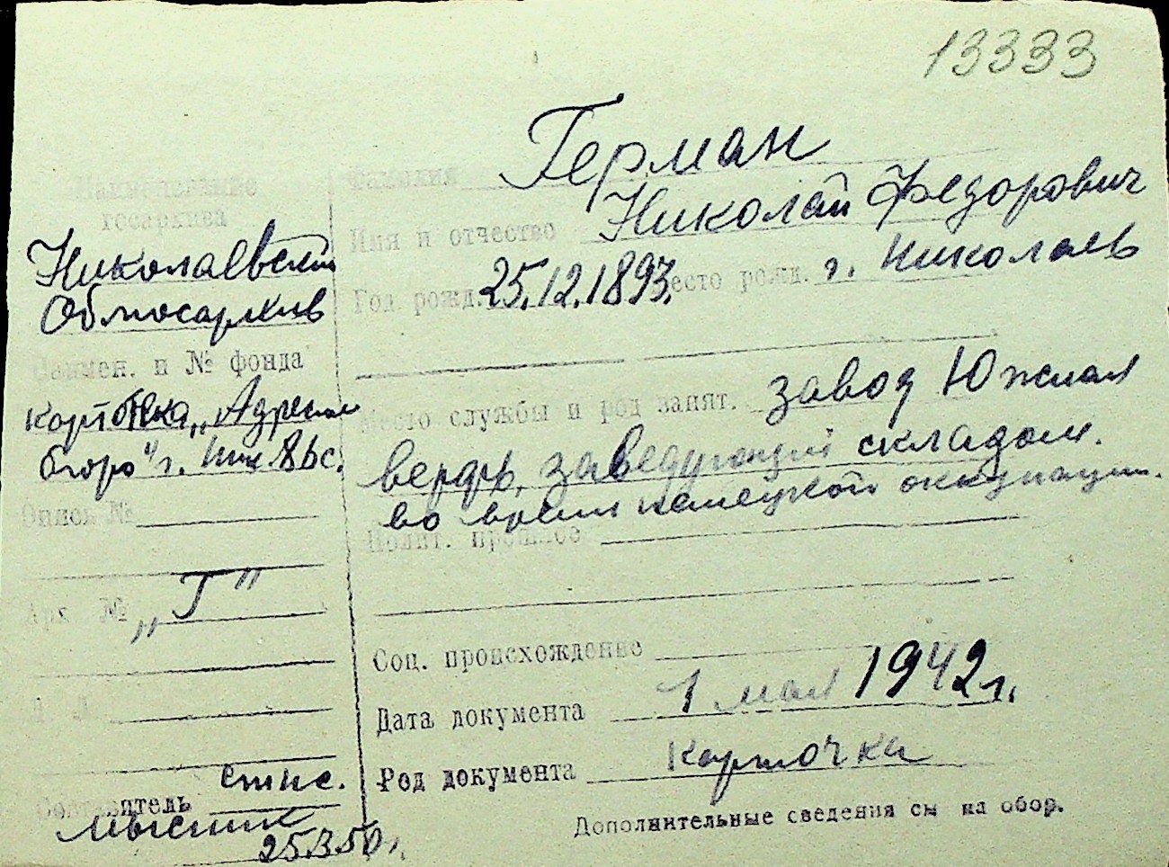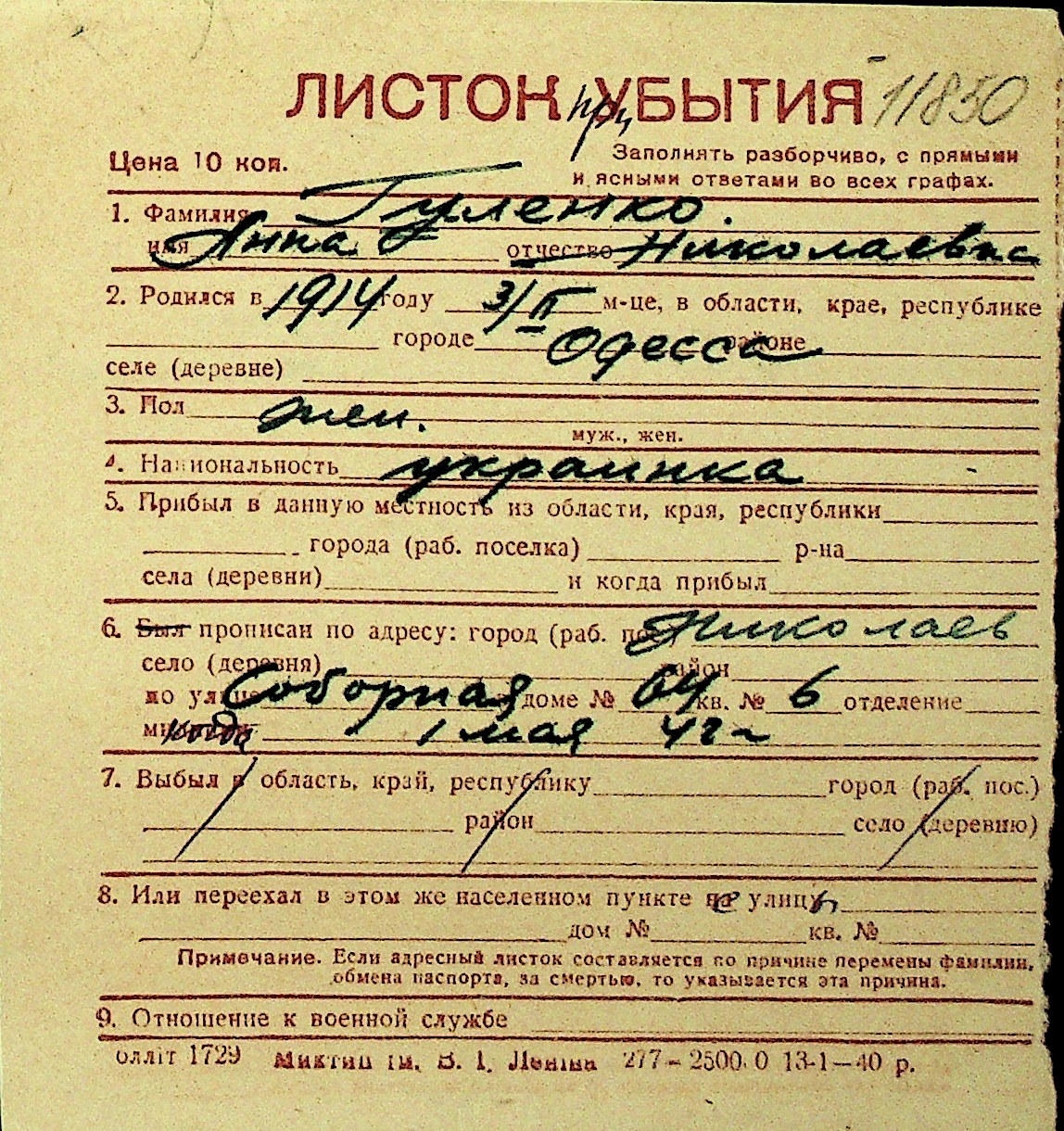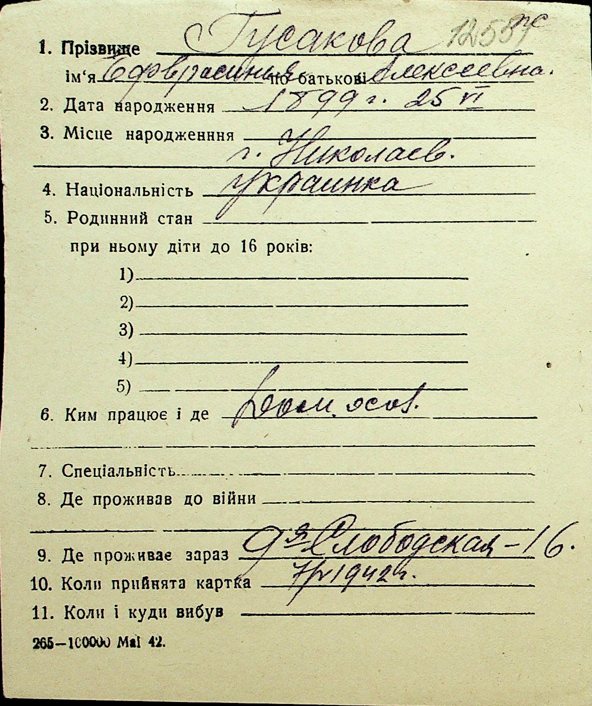 • • Перелік карток до фонду № Н-1016