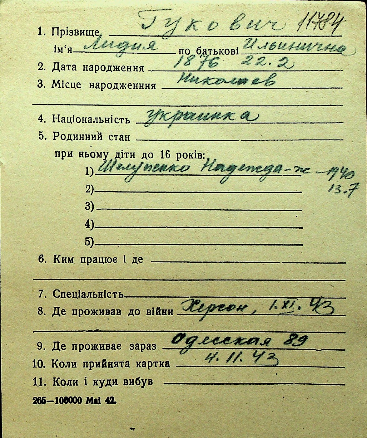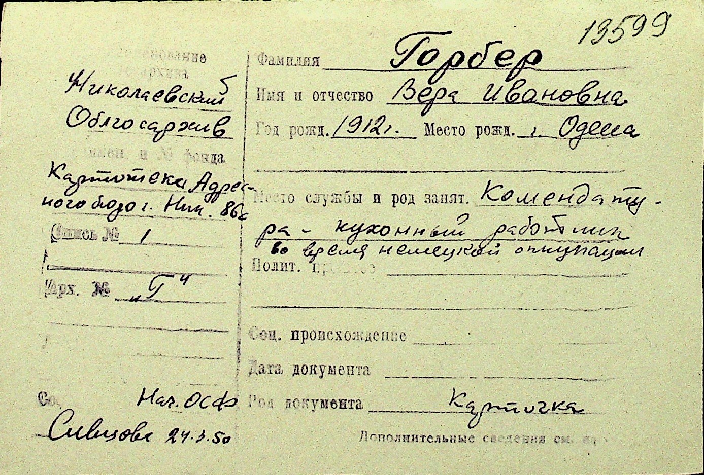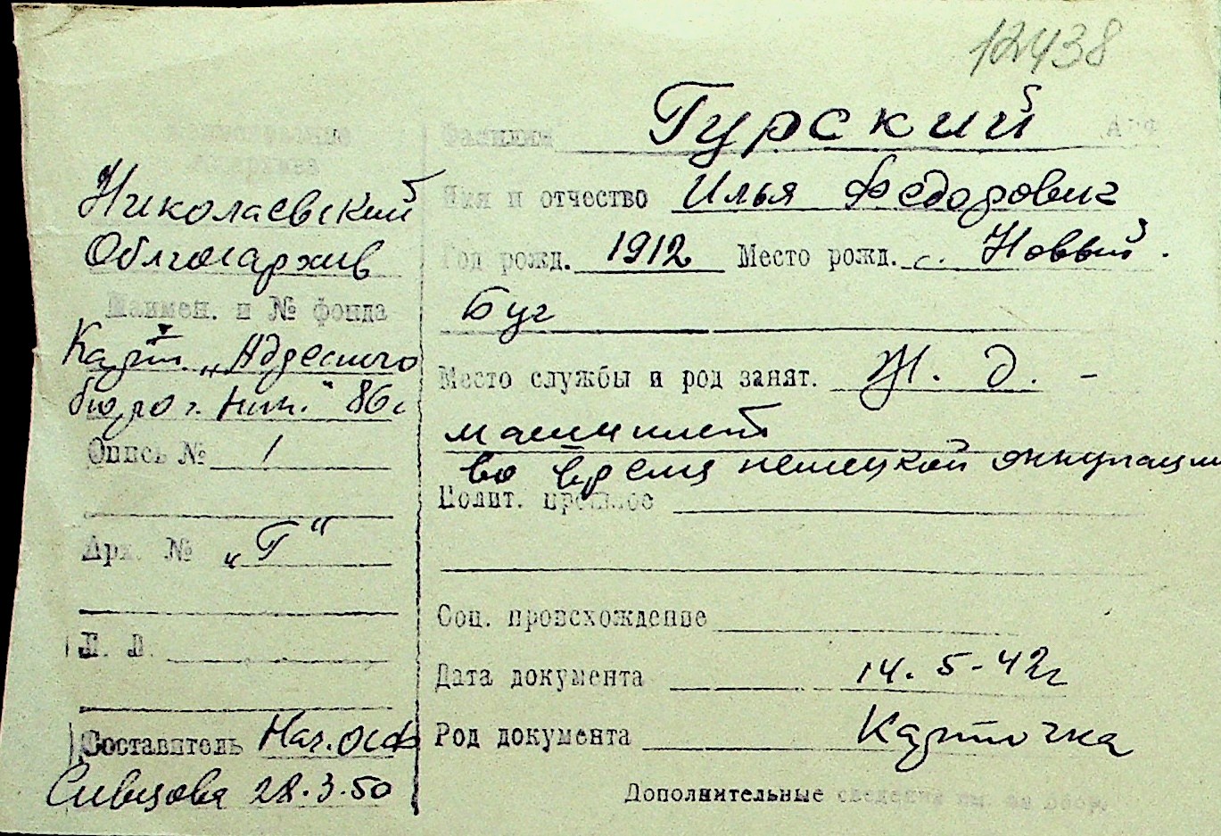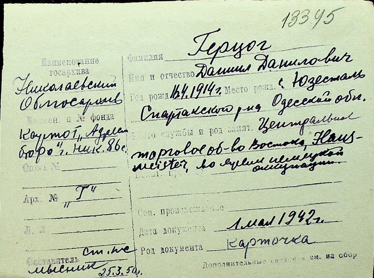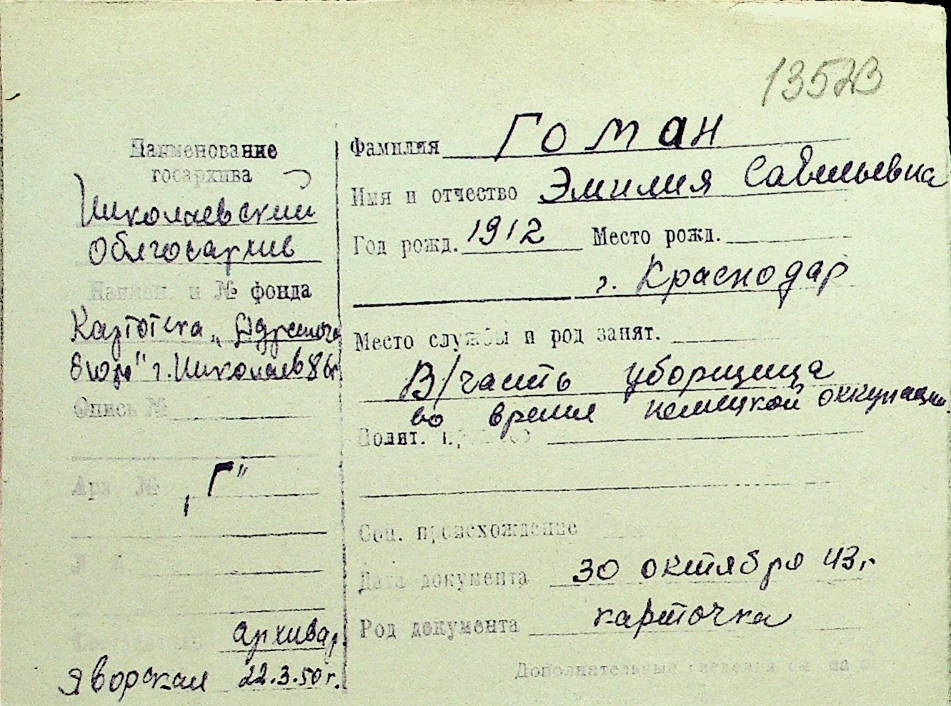 • • Перелік карток до фонду № Н-1016