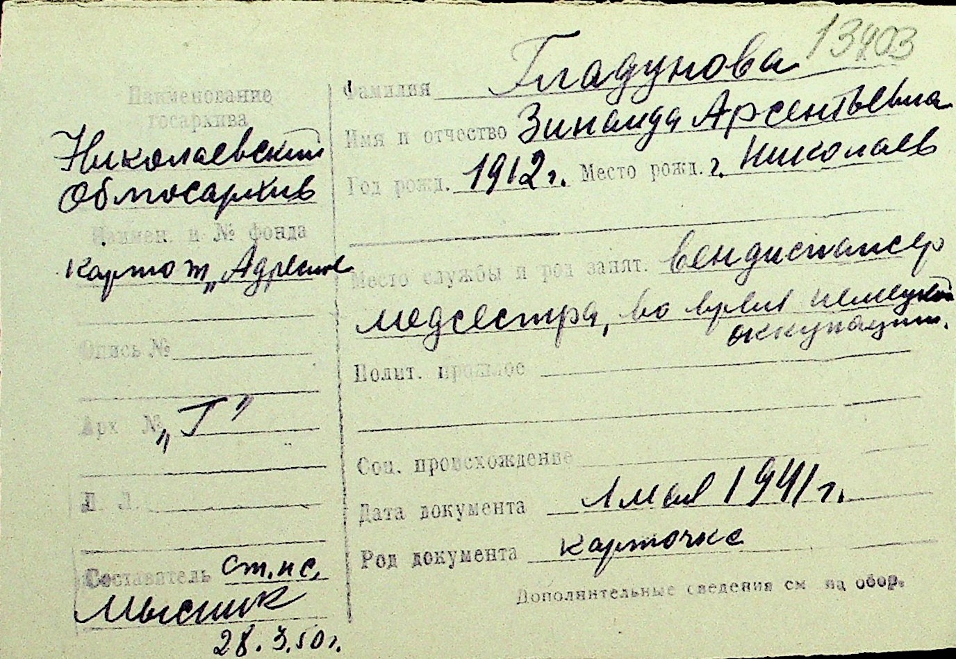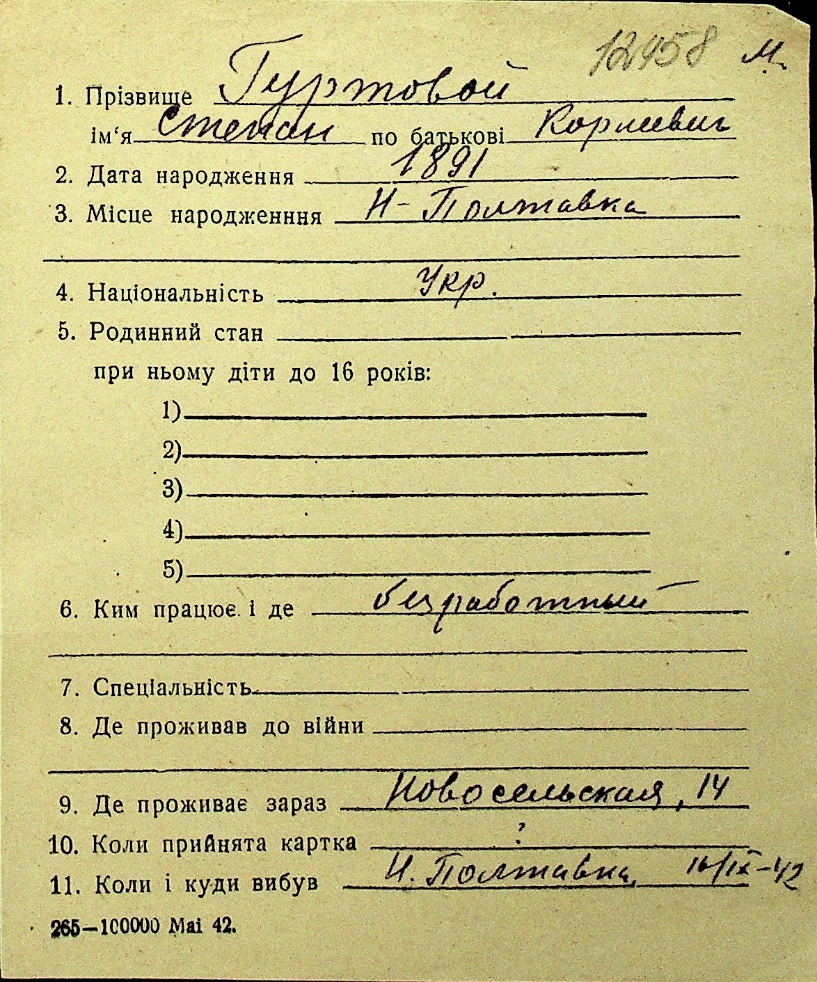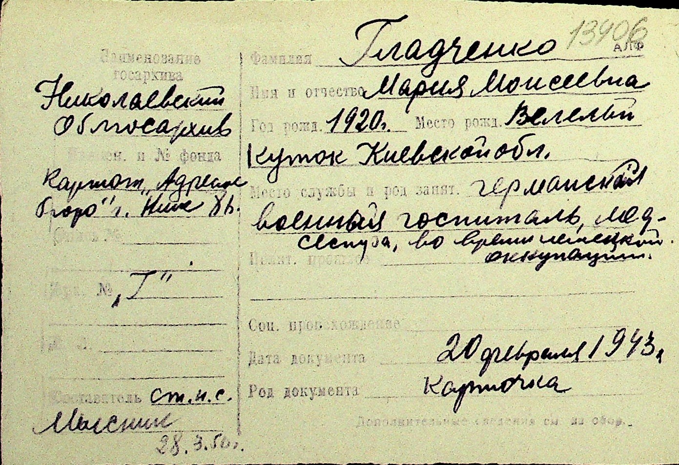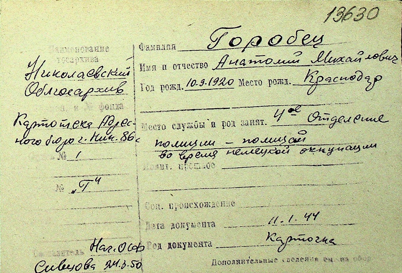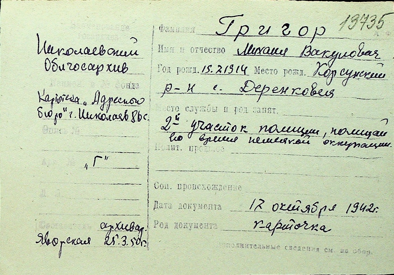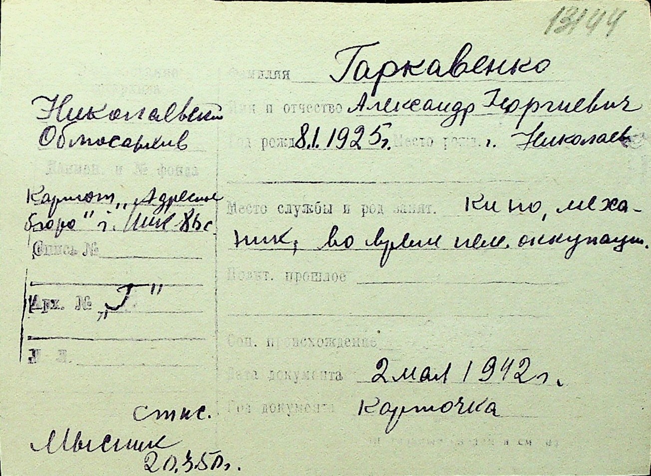 • • Перелік карток до фонду № Н-1016