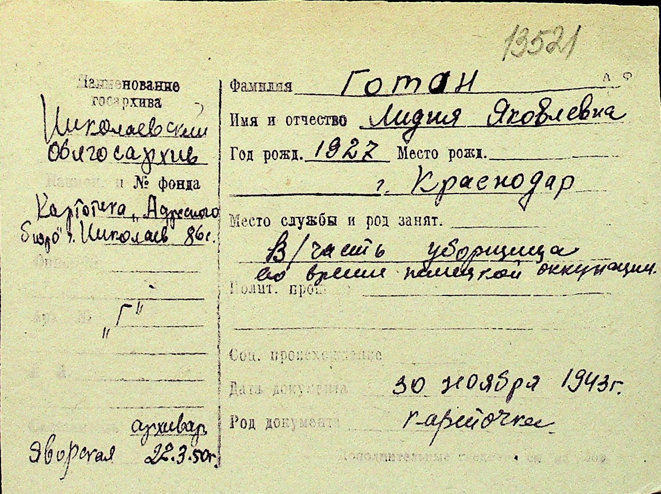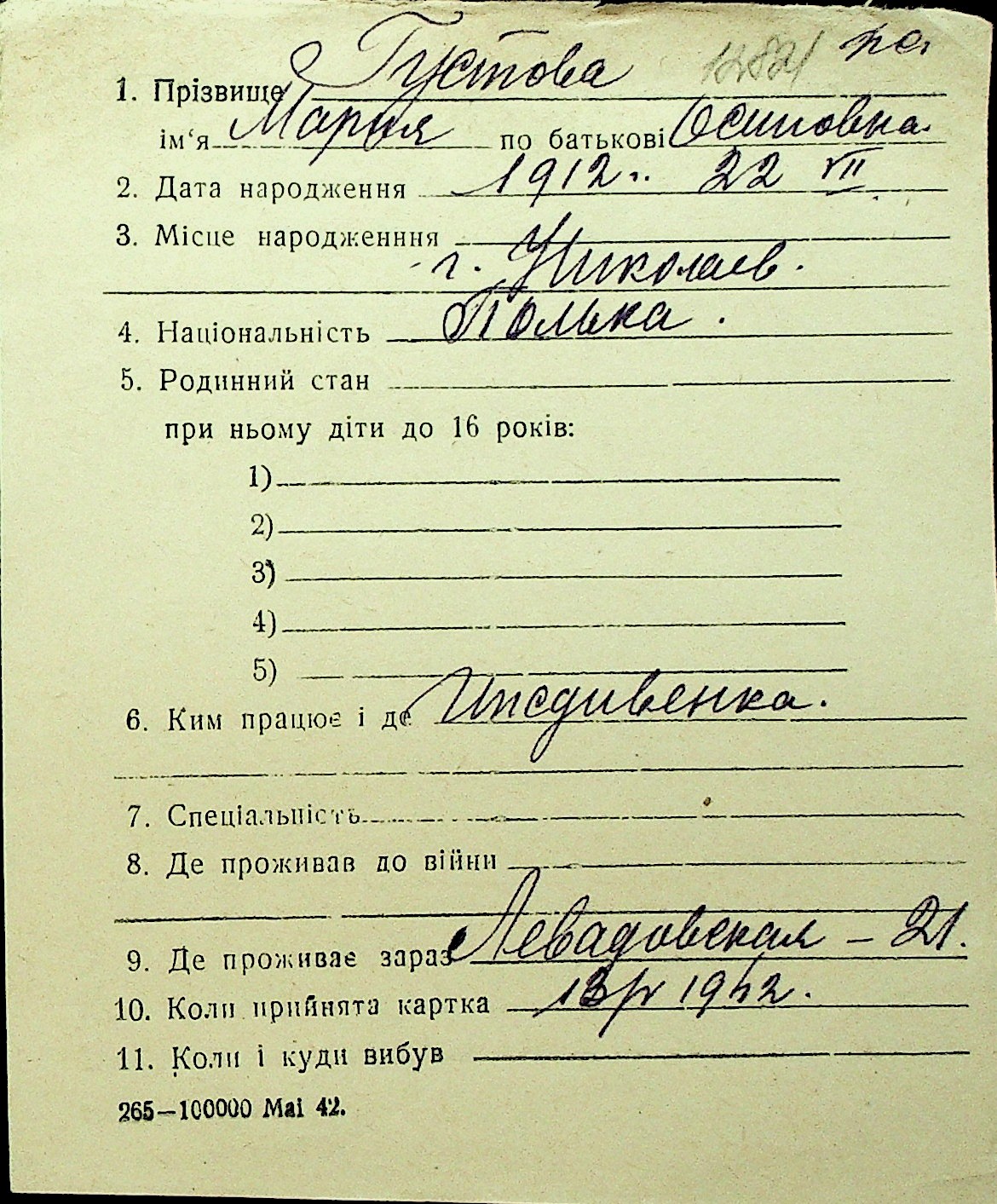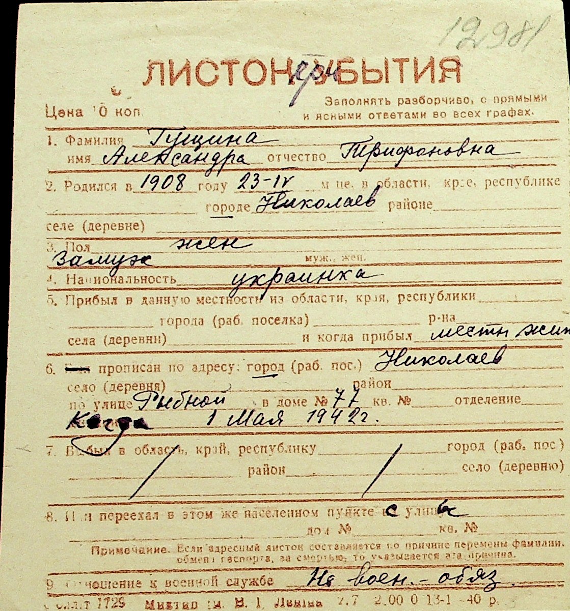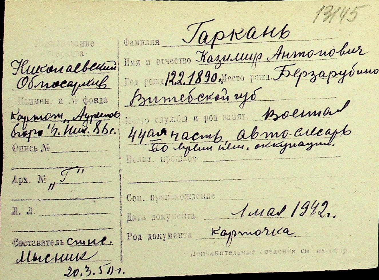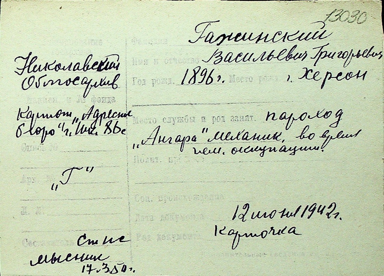 • • Перелік карток до фонду № Н-1016
