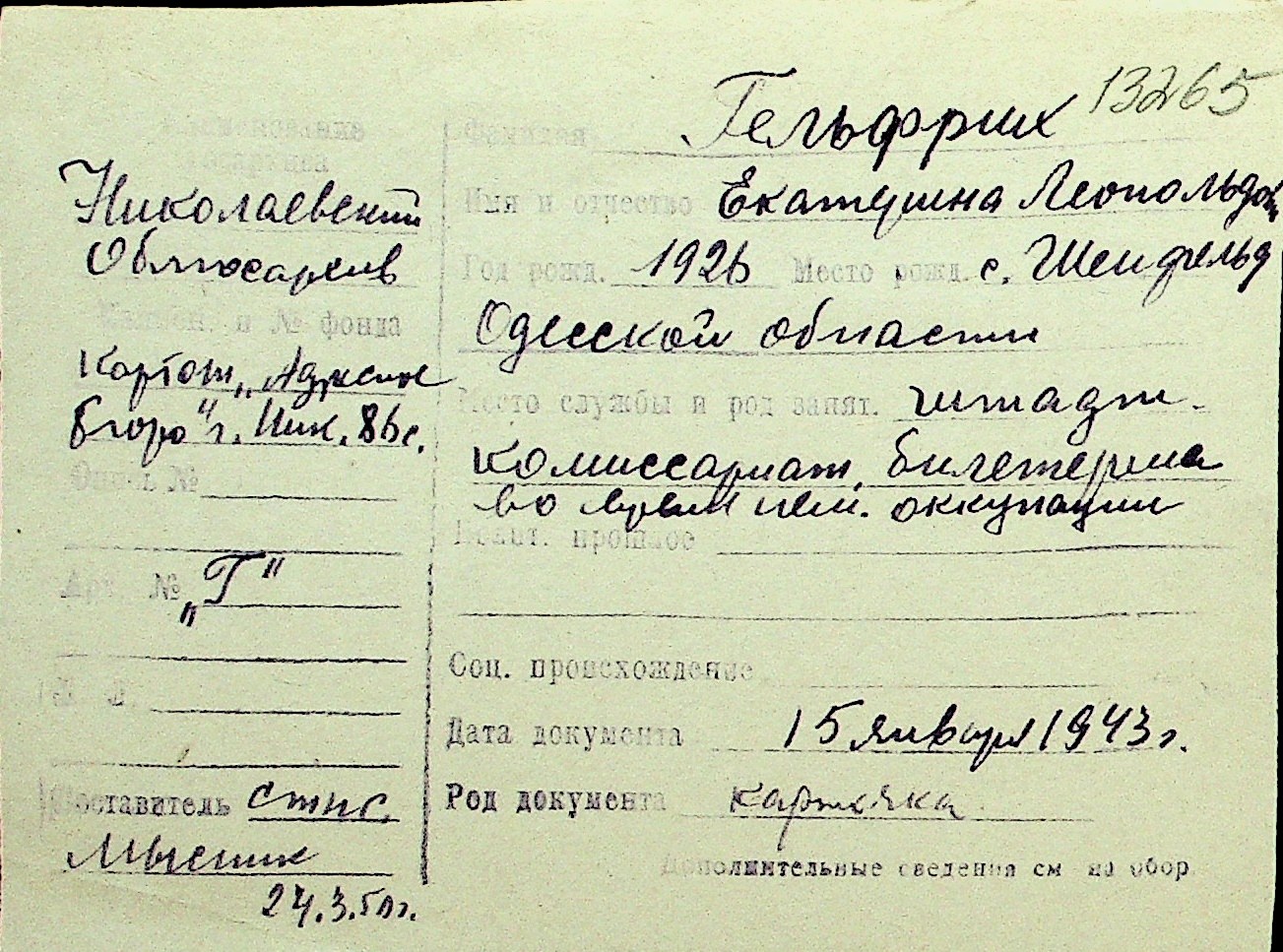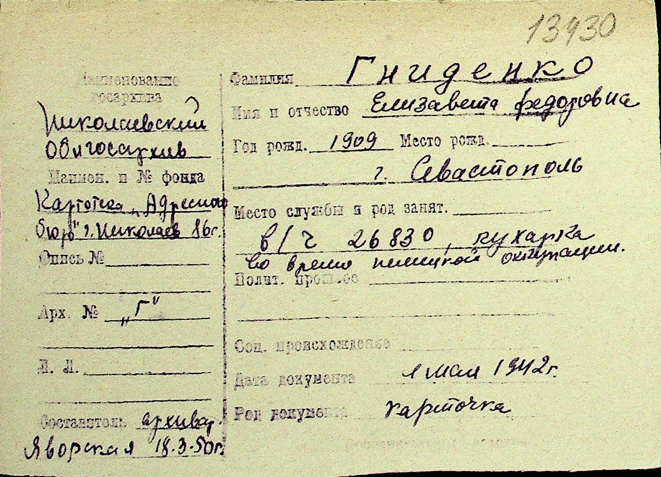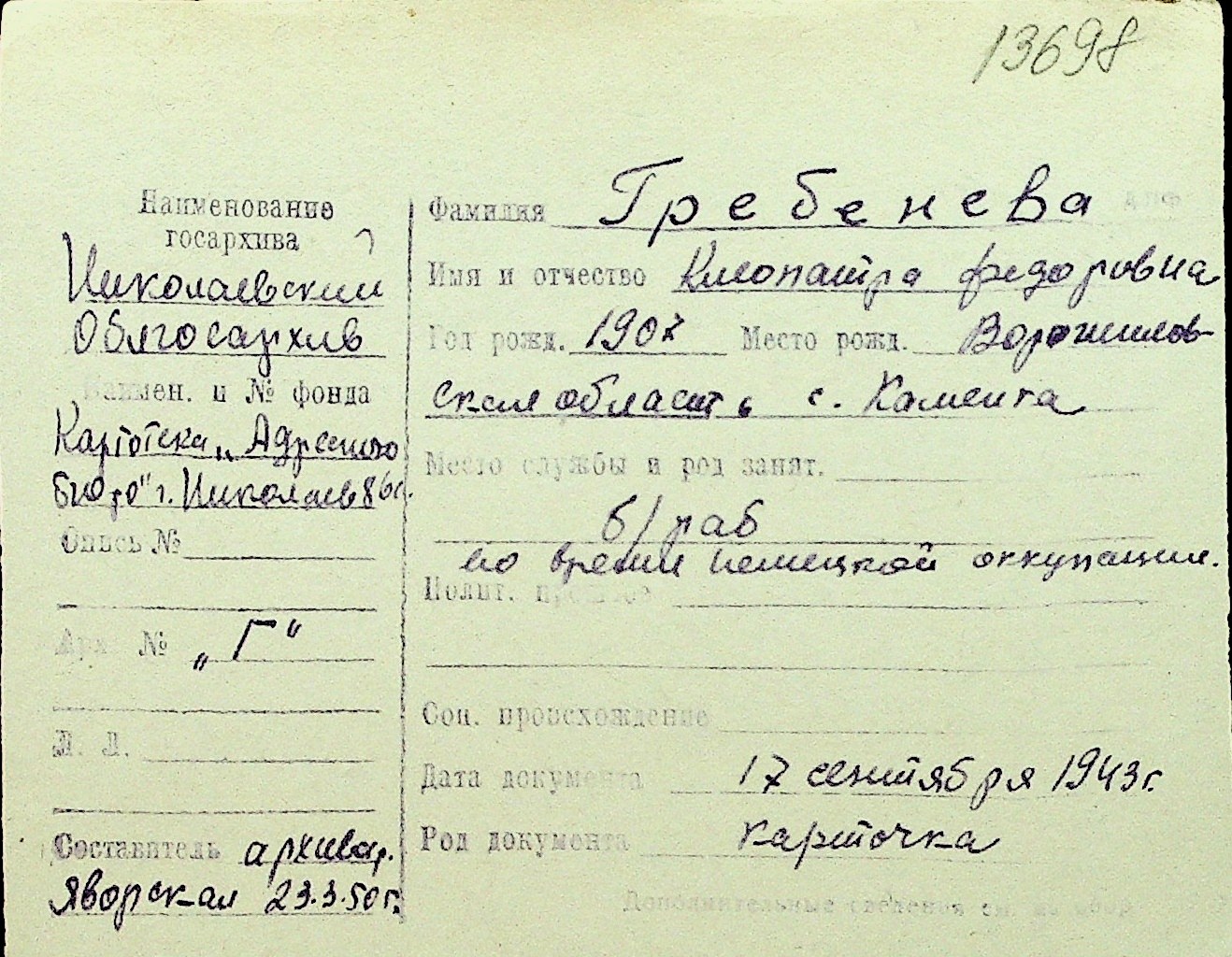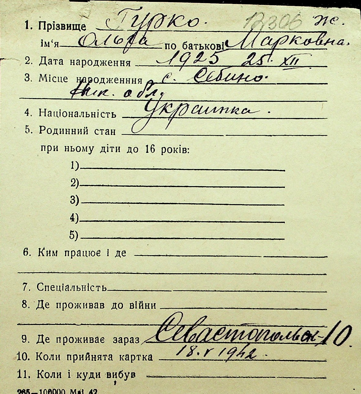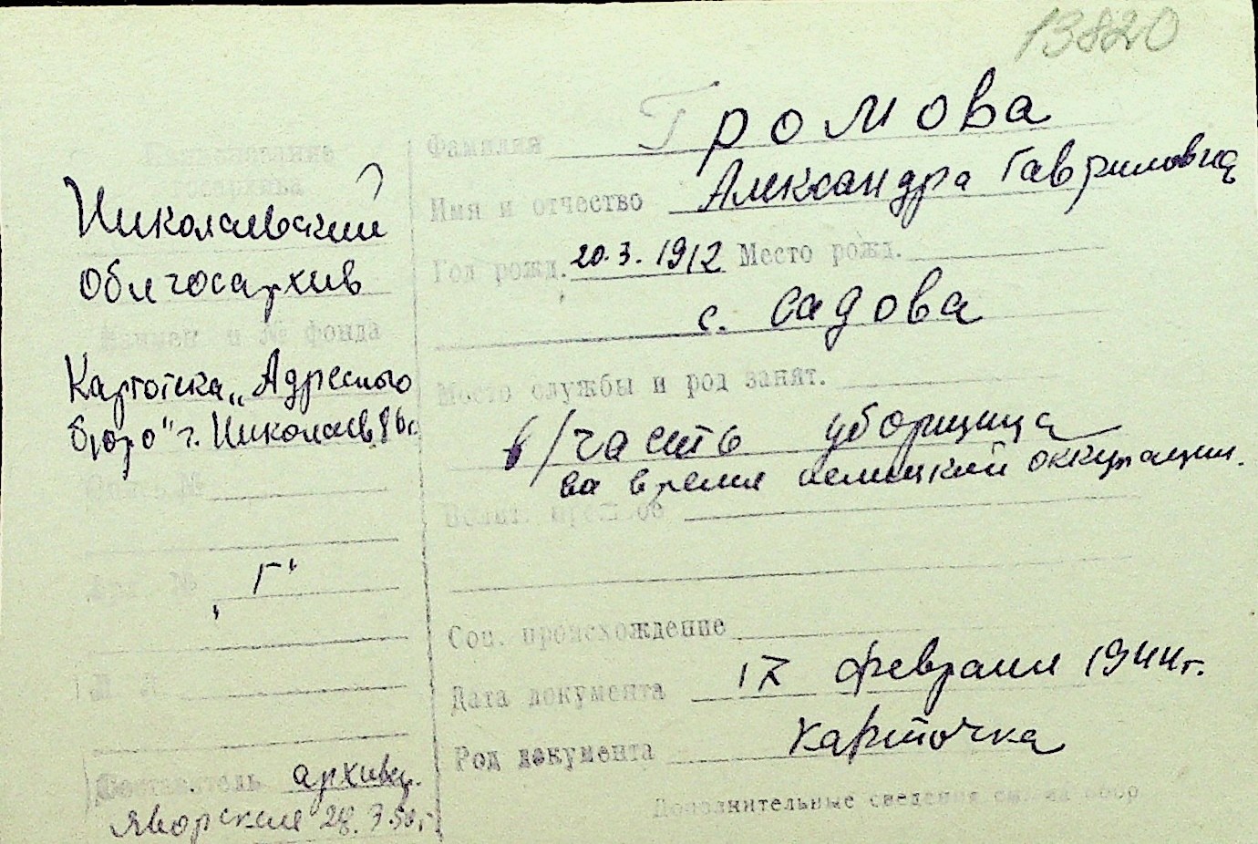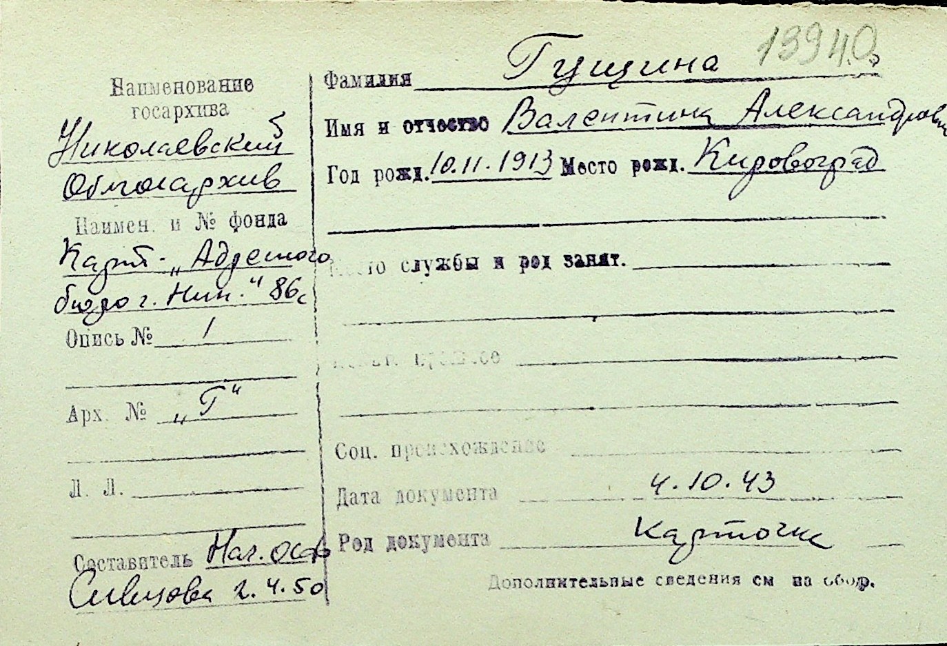 • • Перелік карток до фонду № Н-1016