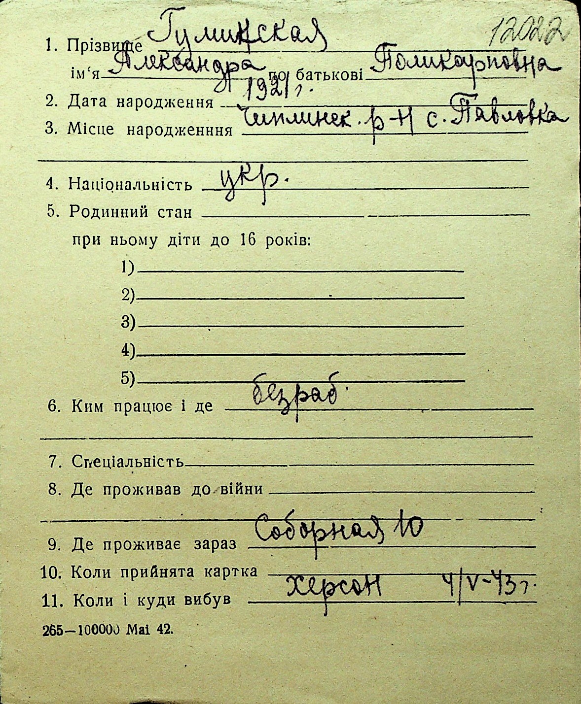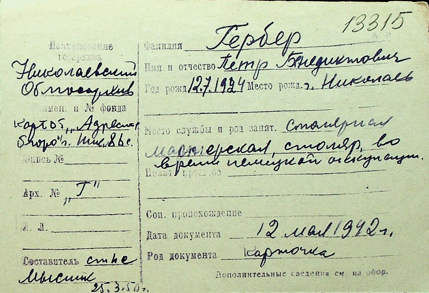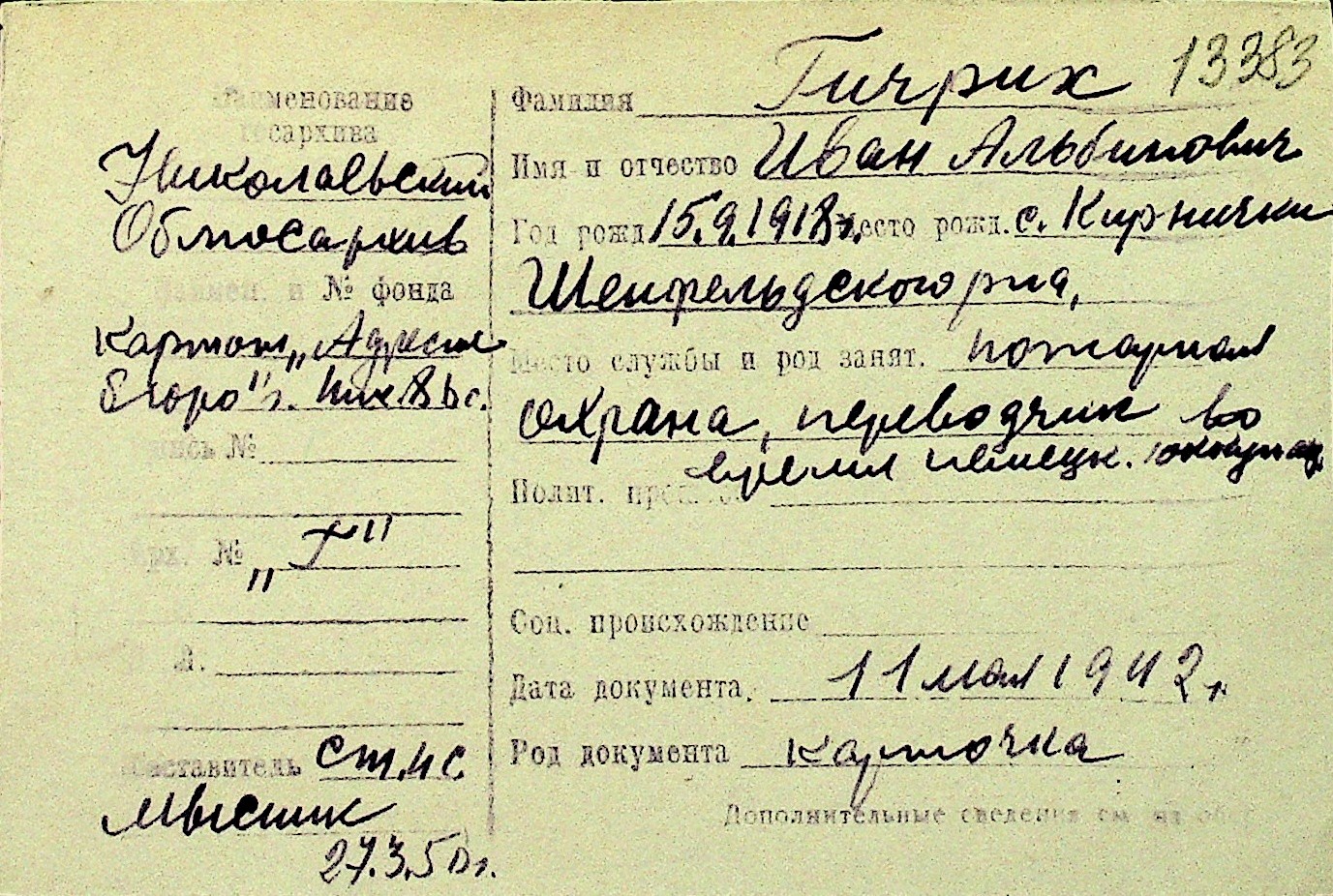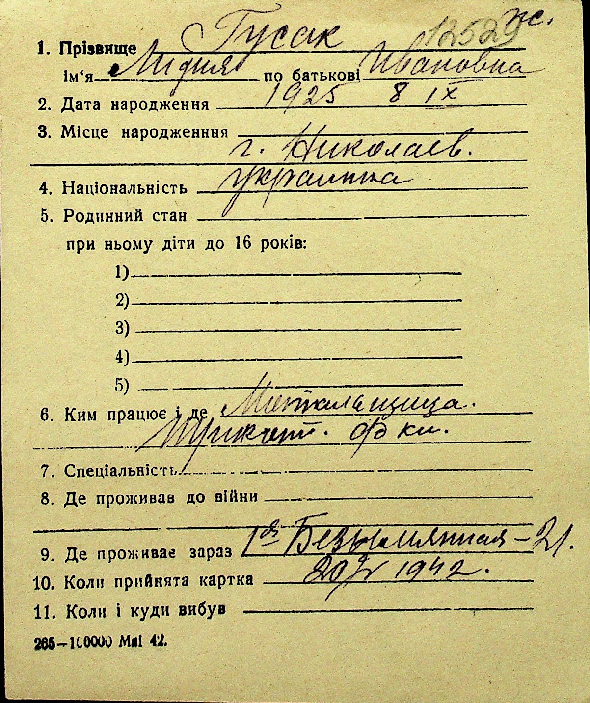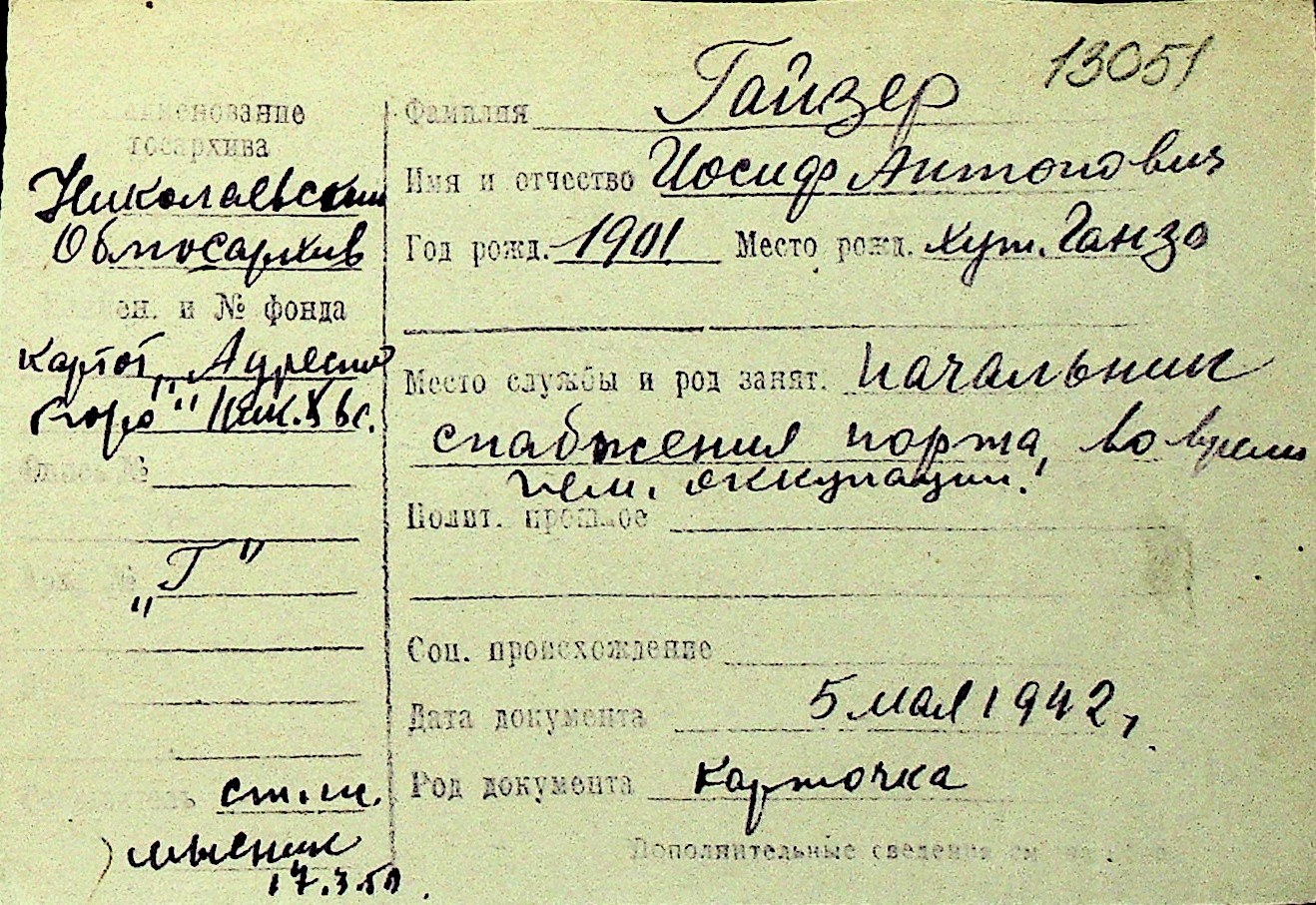 • • Перелік карток до фонду № Н-1016