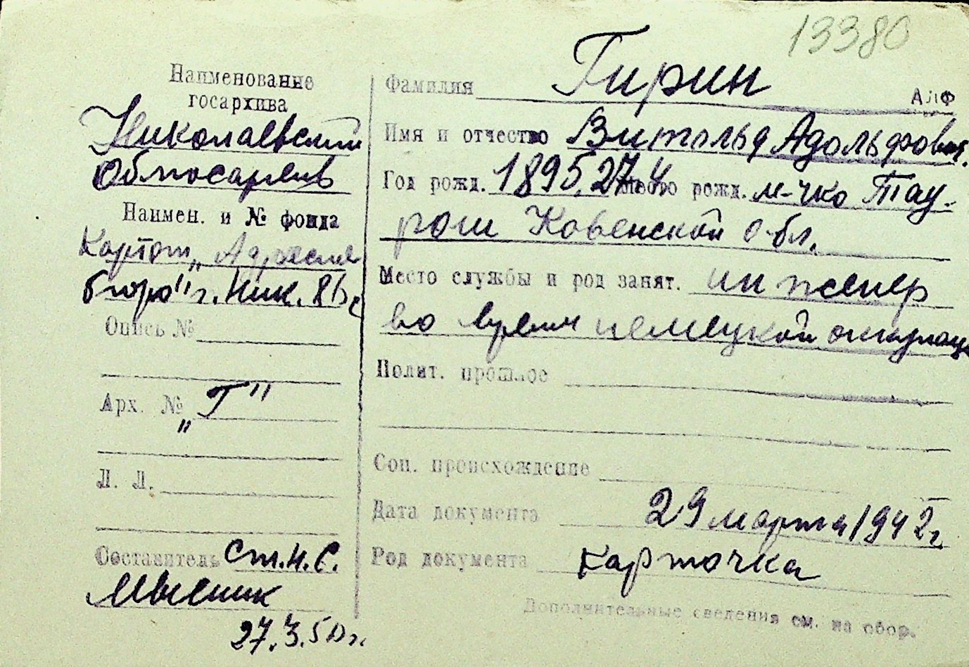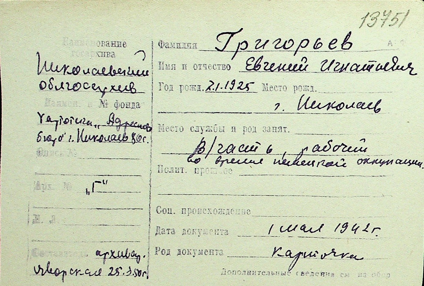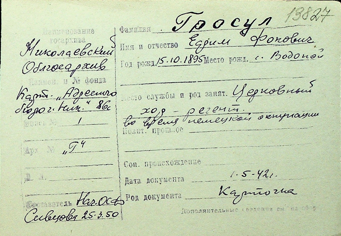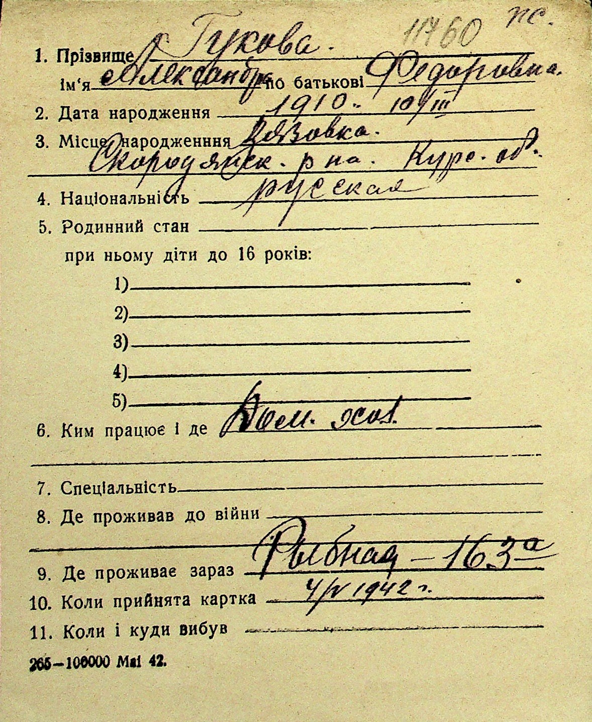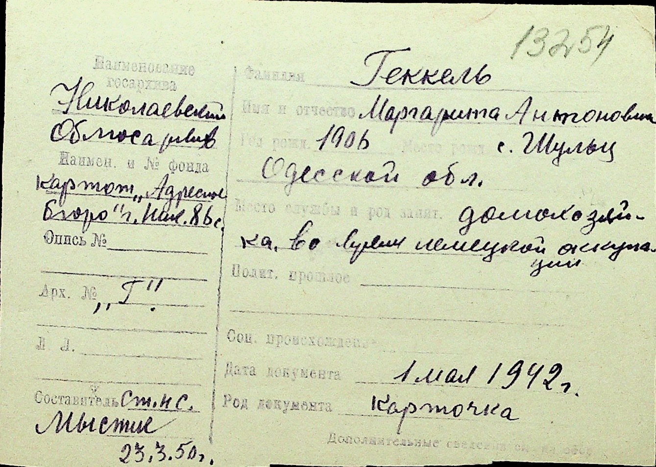 • • Перелік карток до фонду № Н-1016