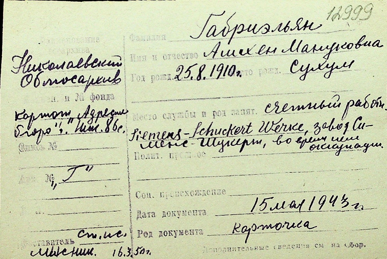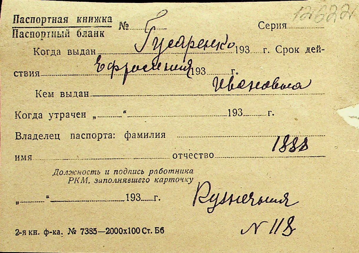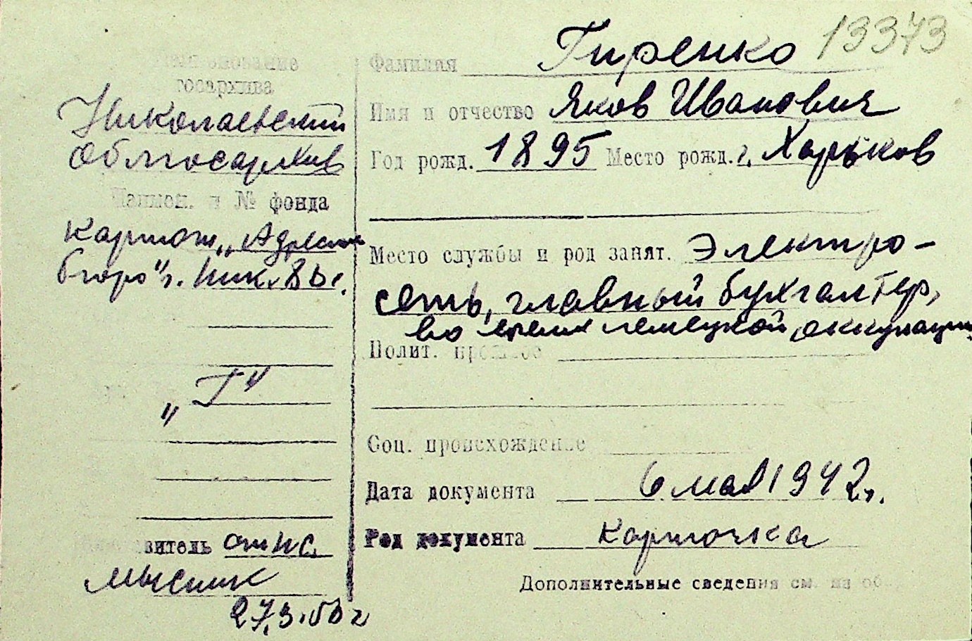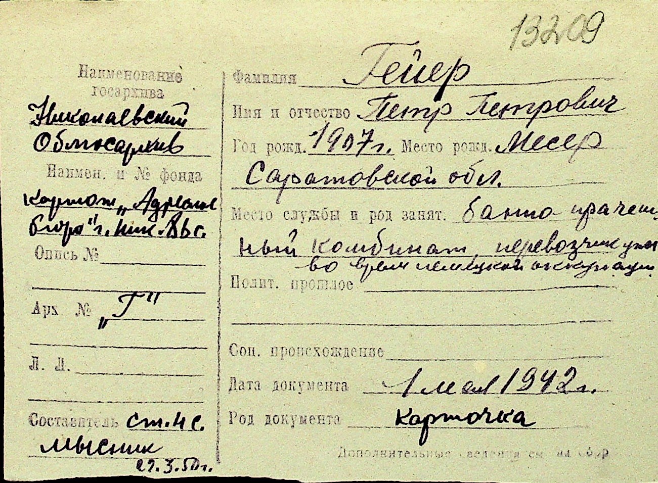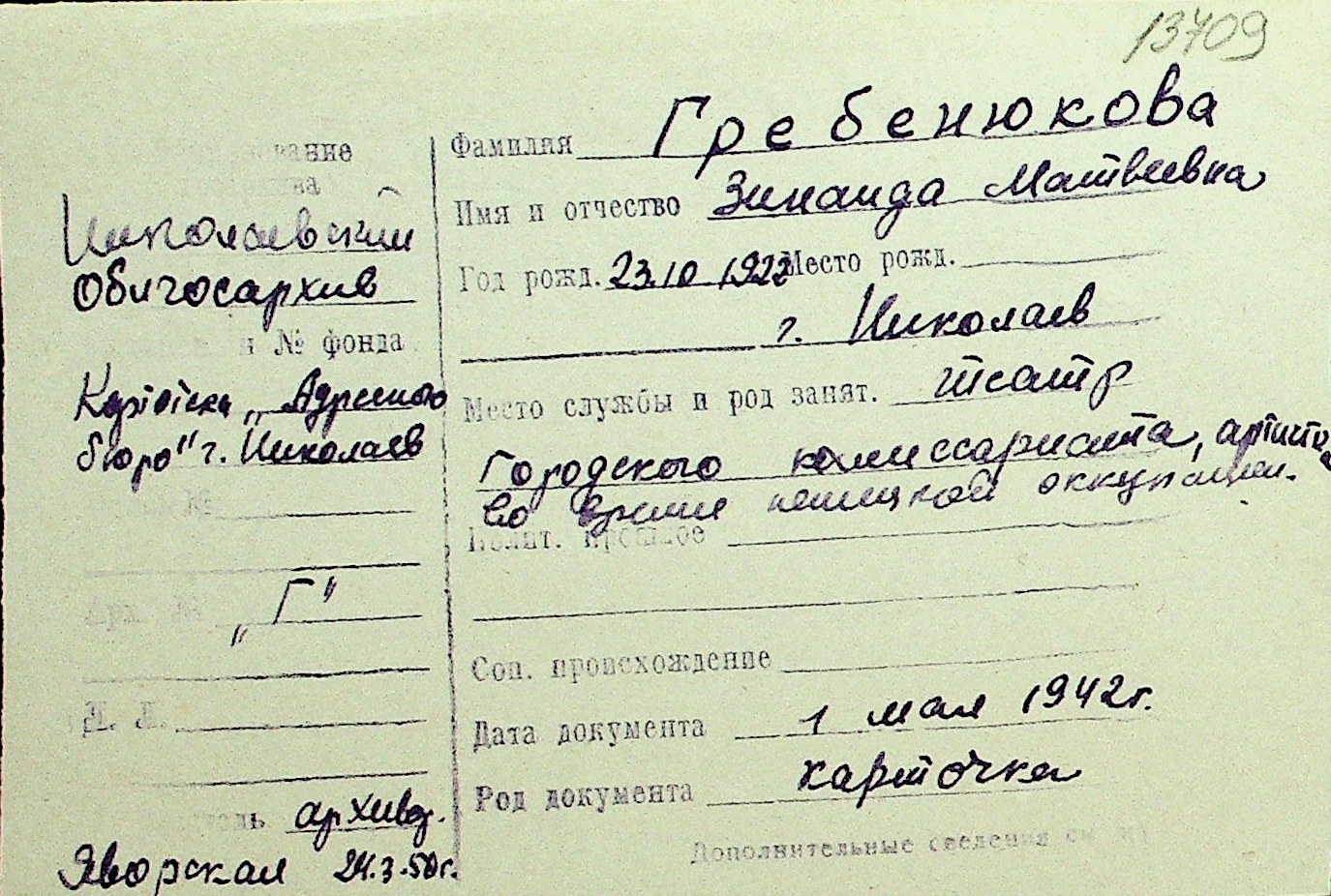 • • Перелік карток до фонду № Н-1016