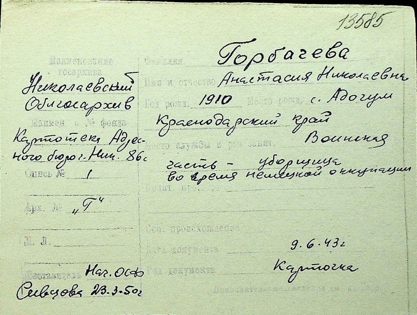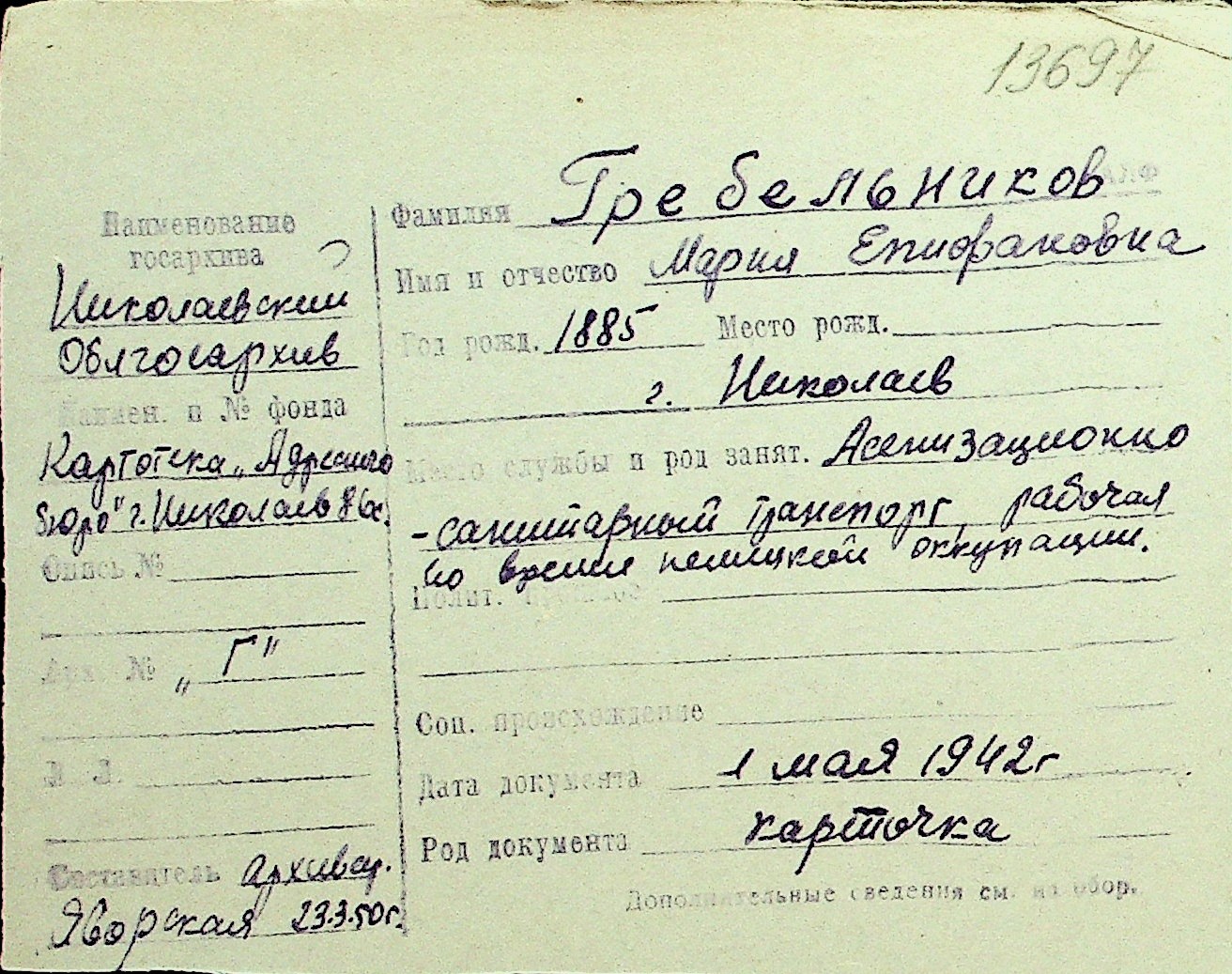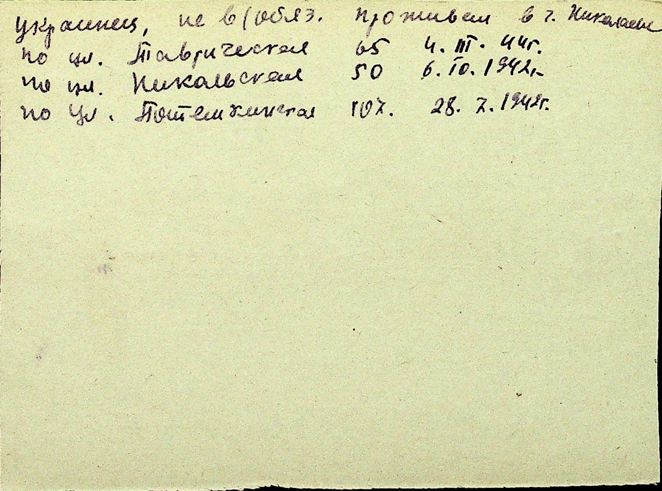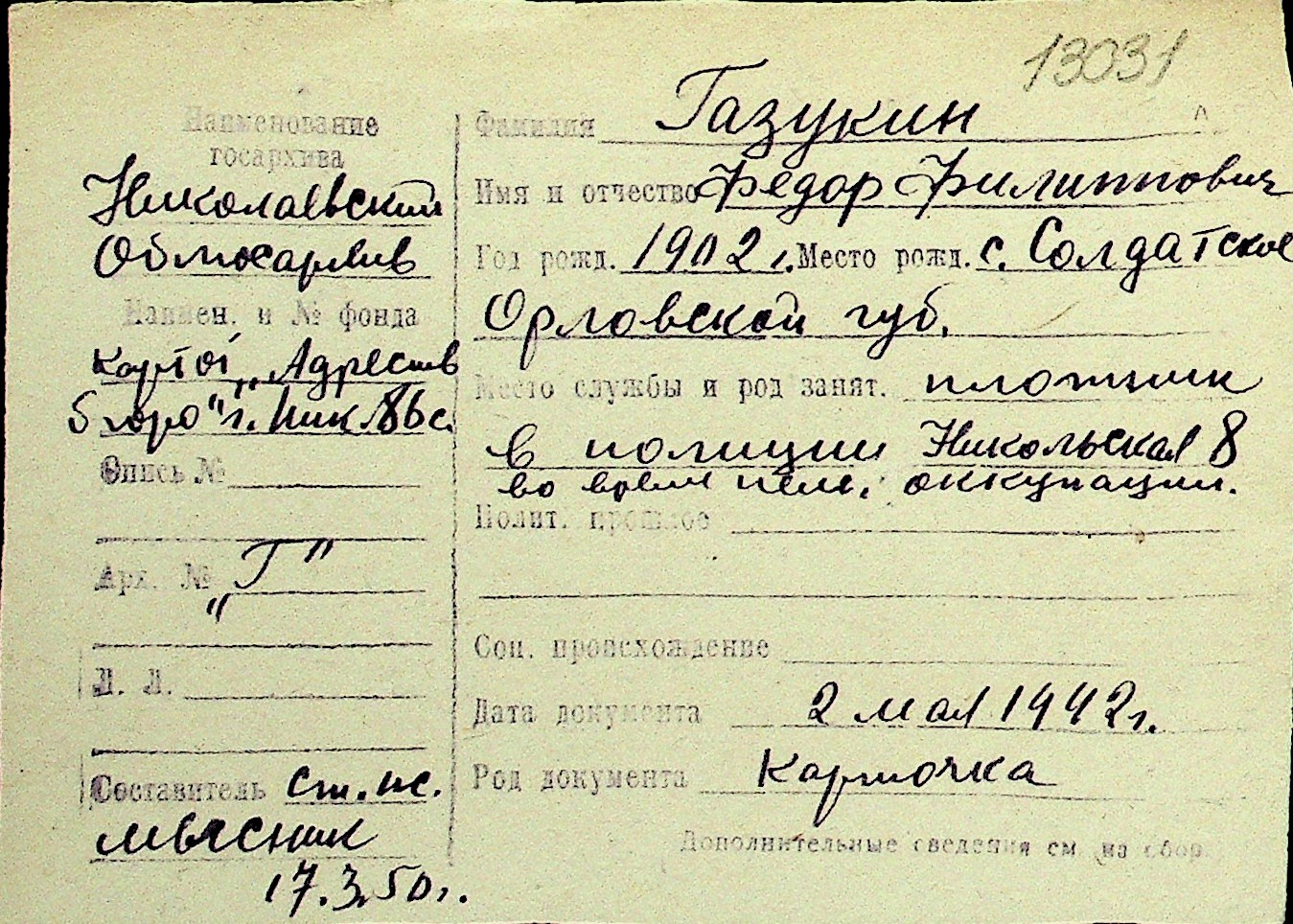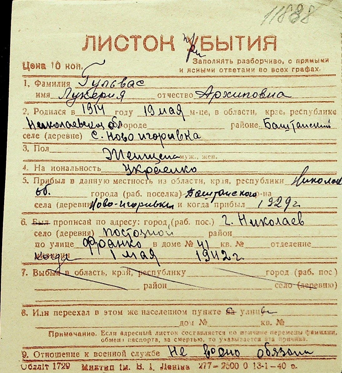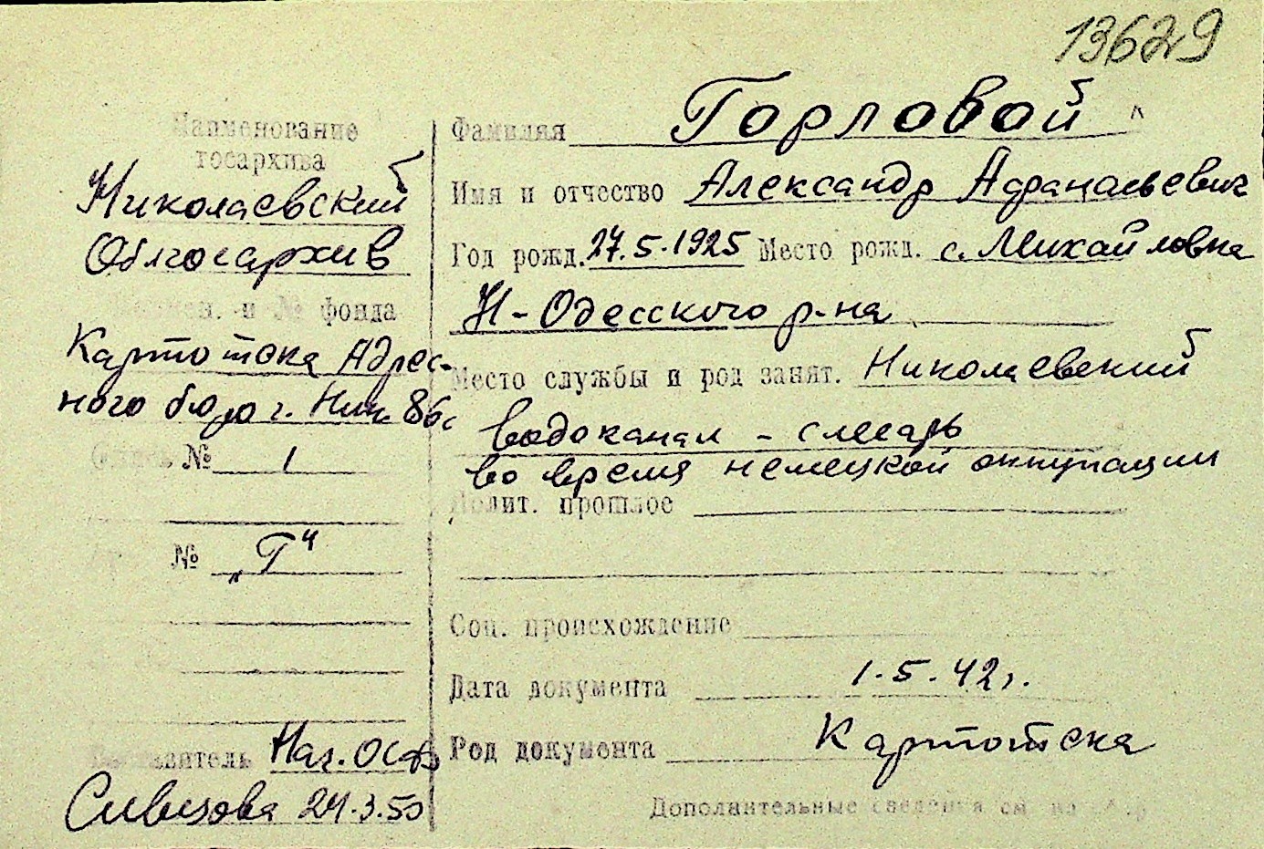 • • Перелік карток до фонду № Н-1016