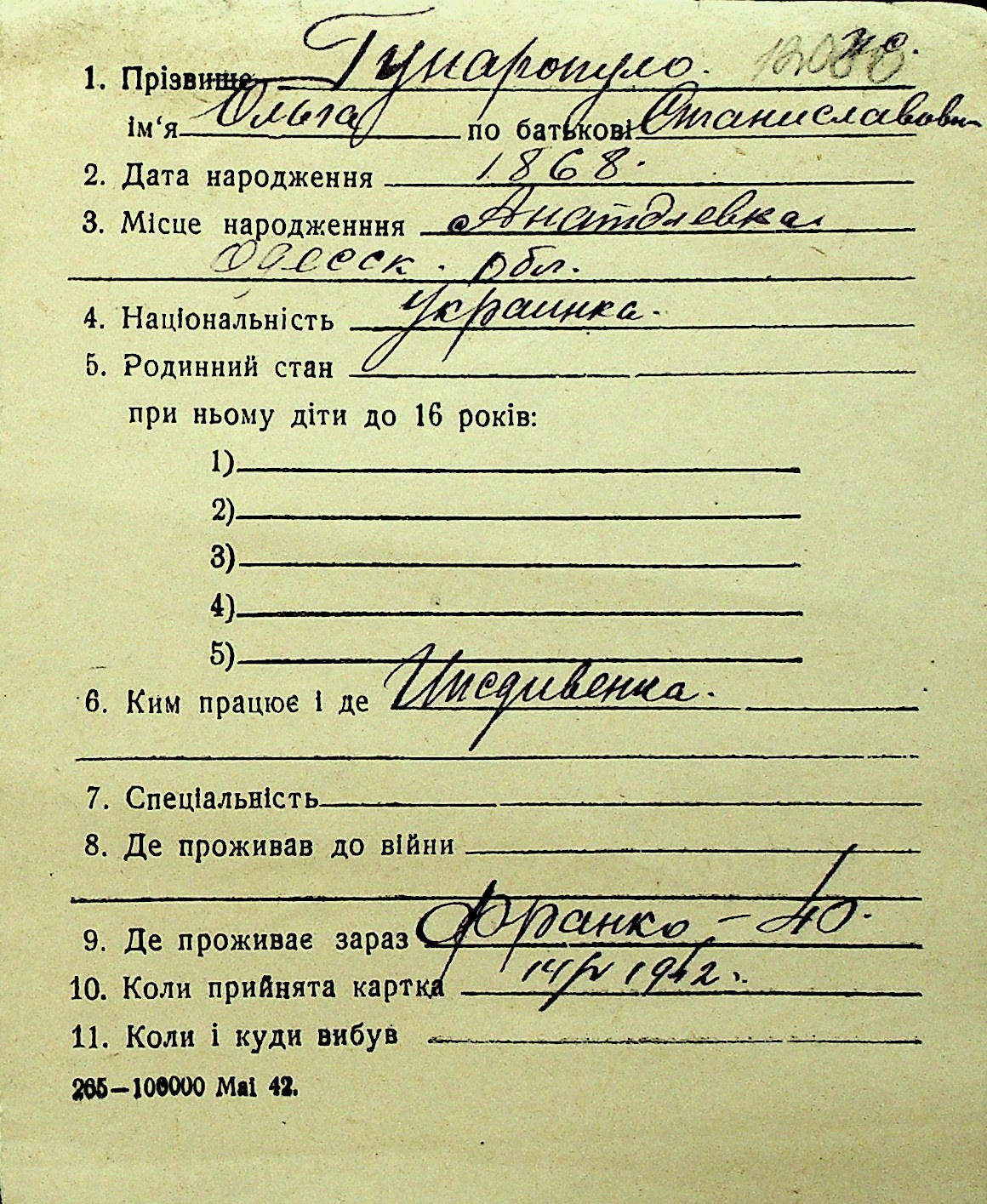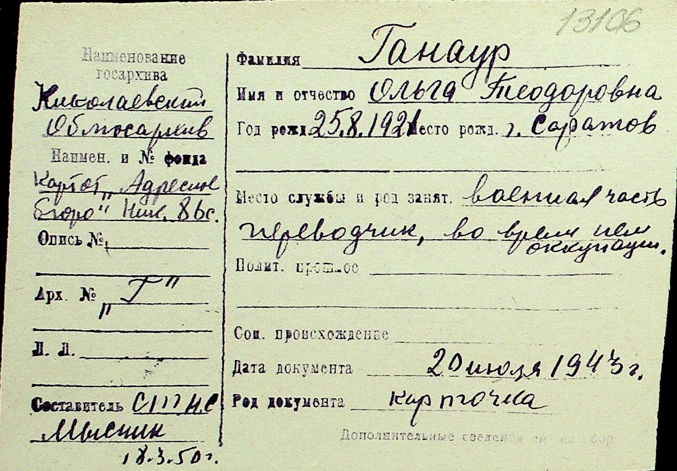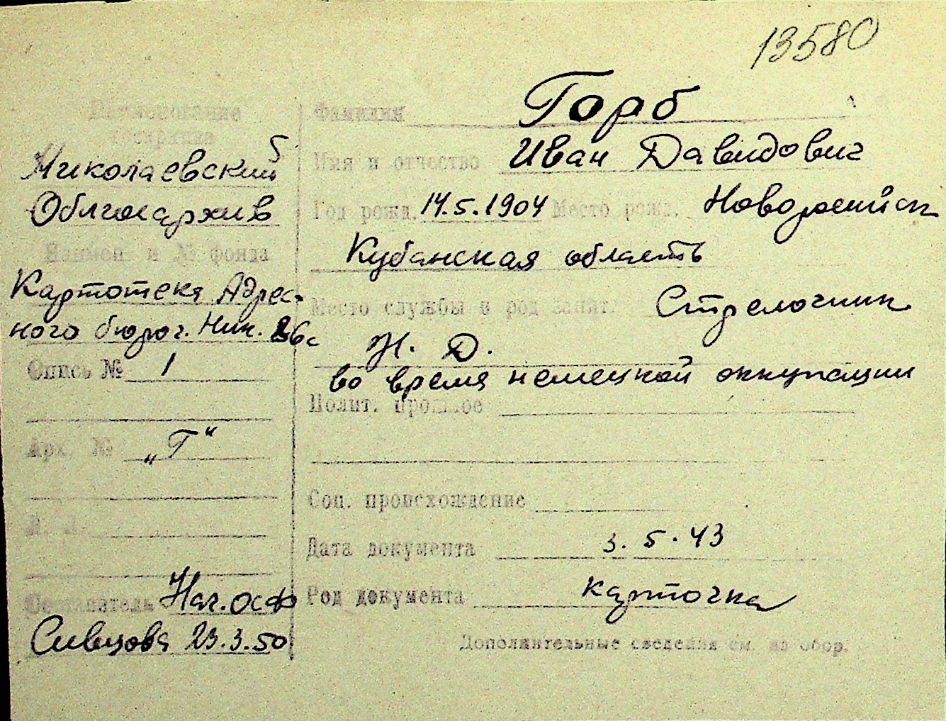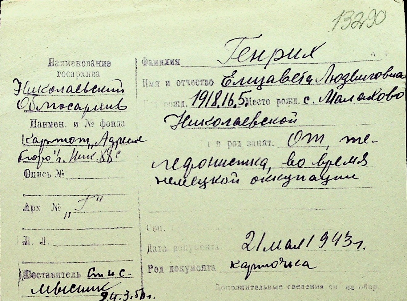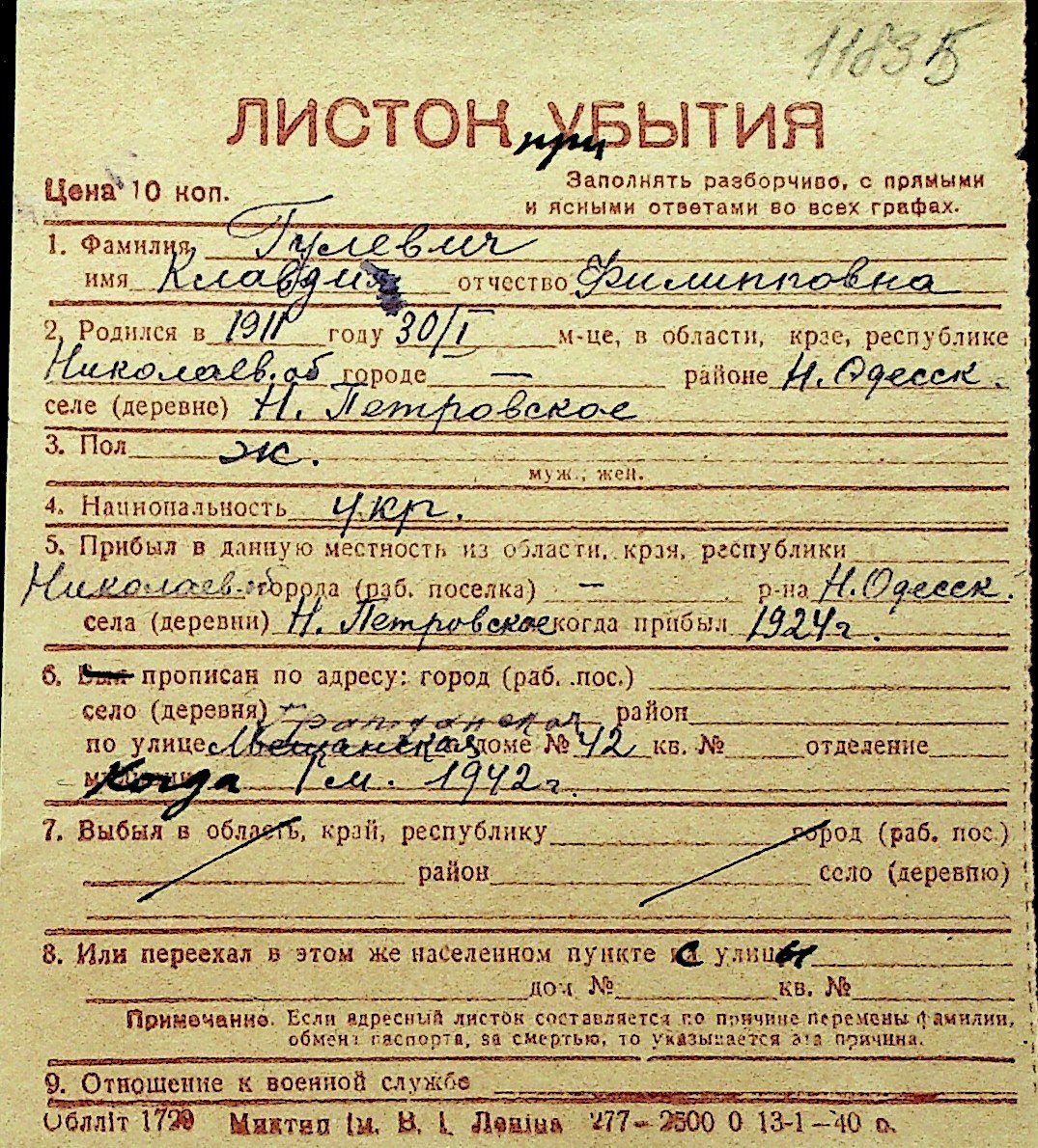 • • Перелік карток до фонду № Н-1016