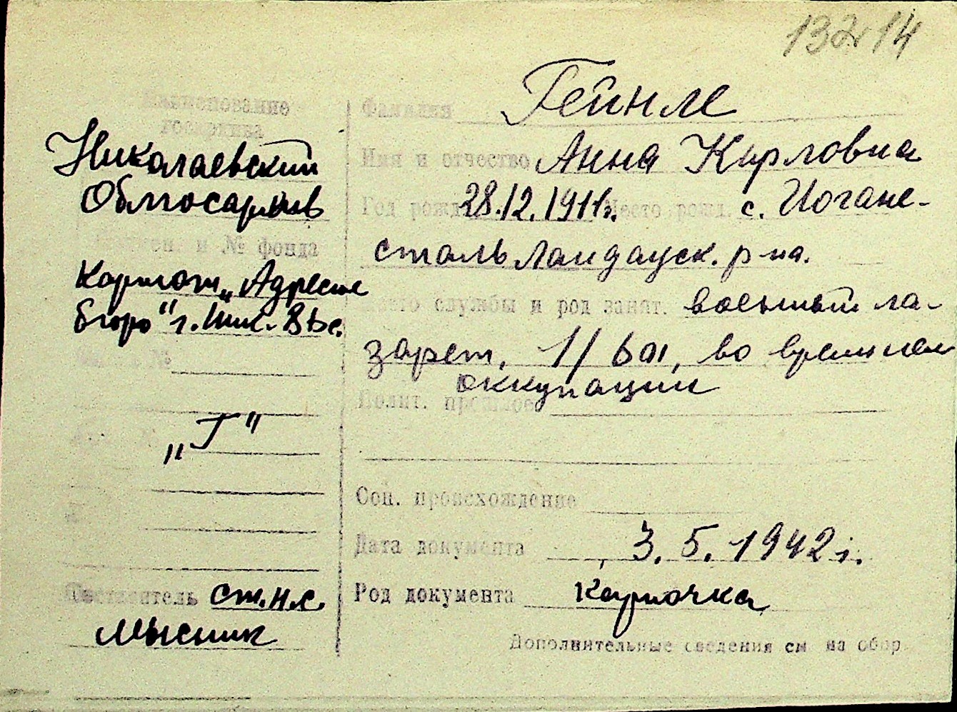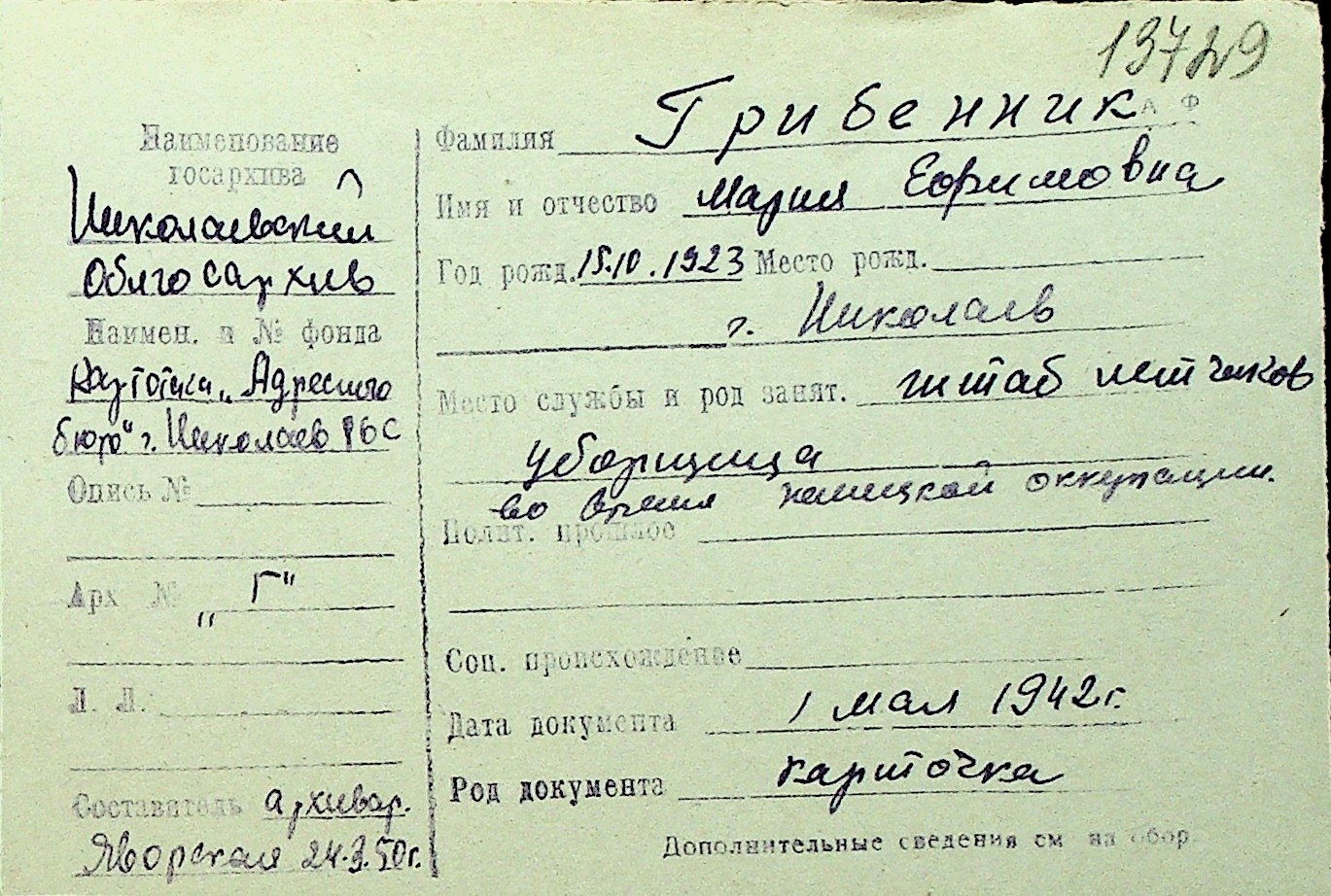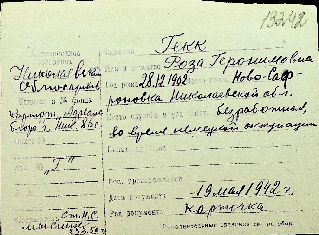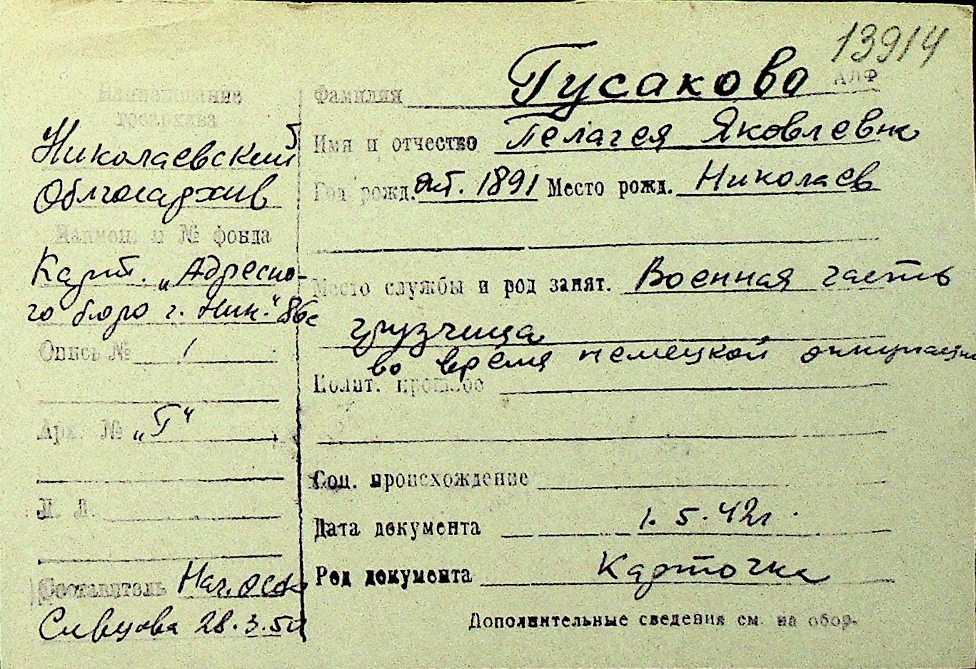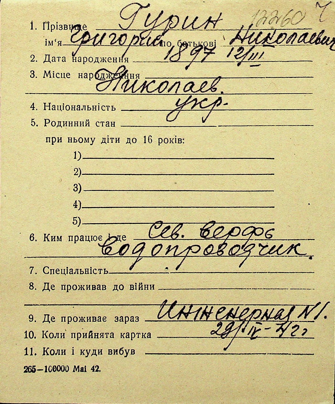 • • Перелік карток до фонду № Н-1016