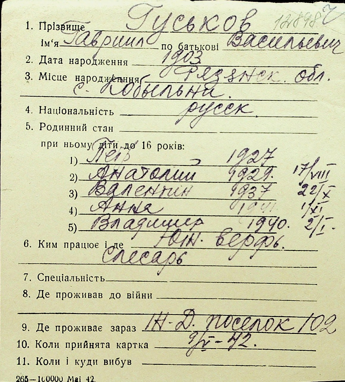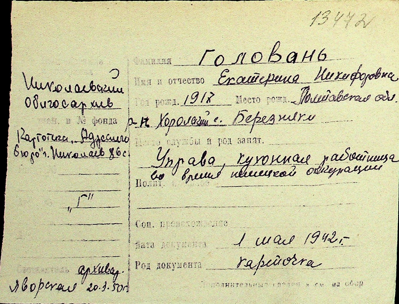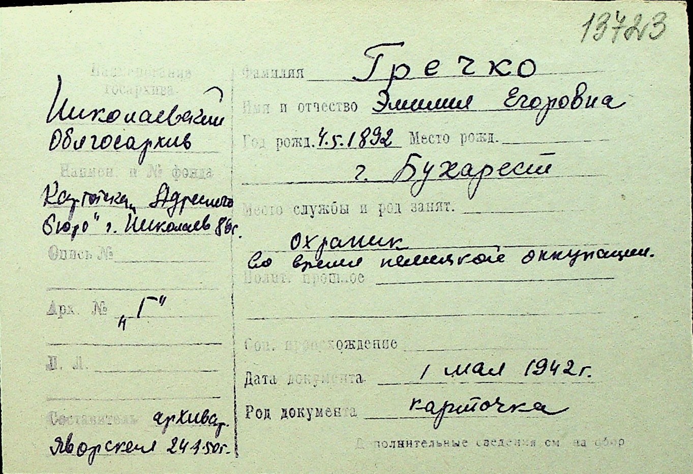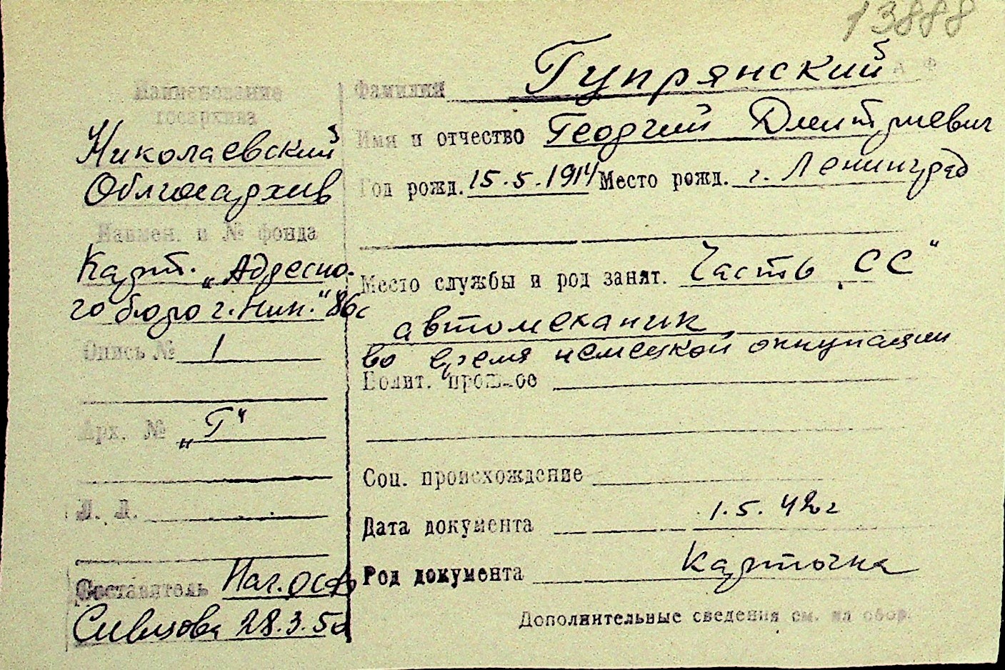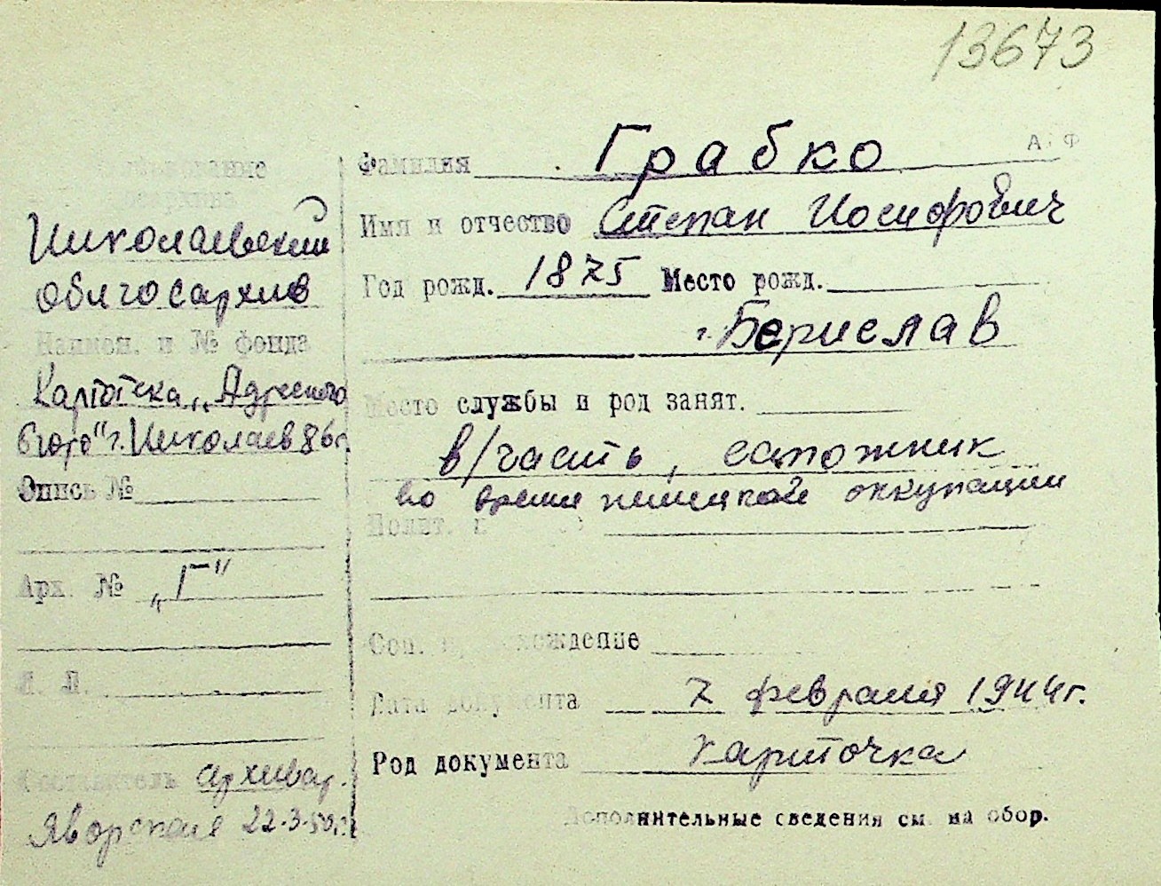 • • Перелік карток до фонду № Н-1016