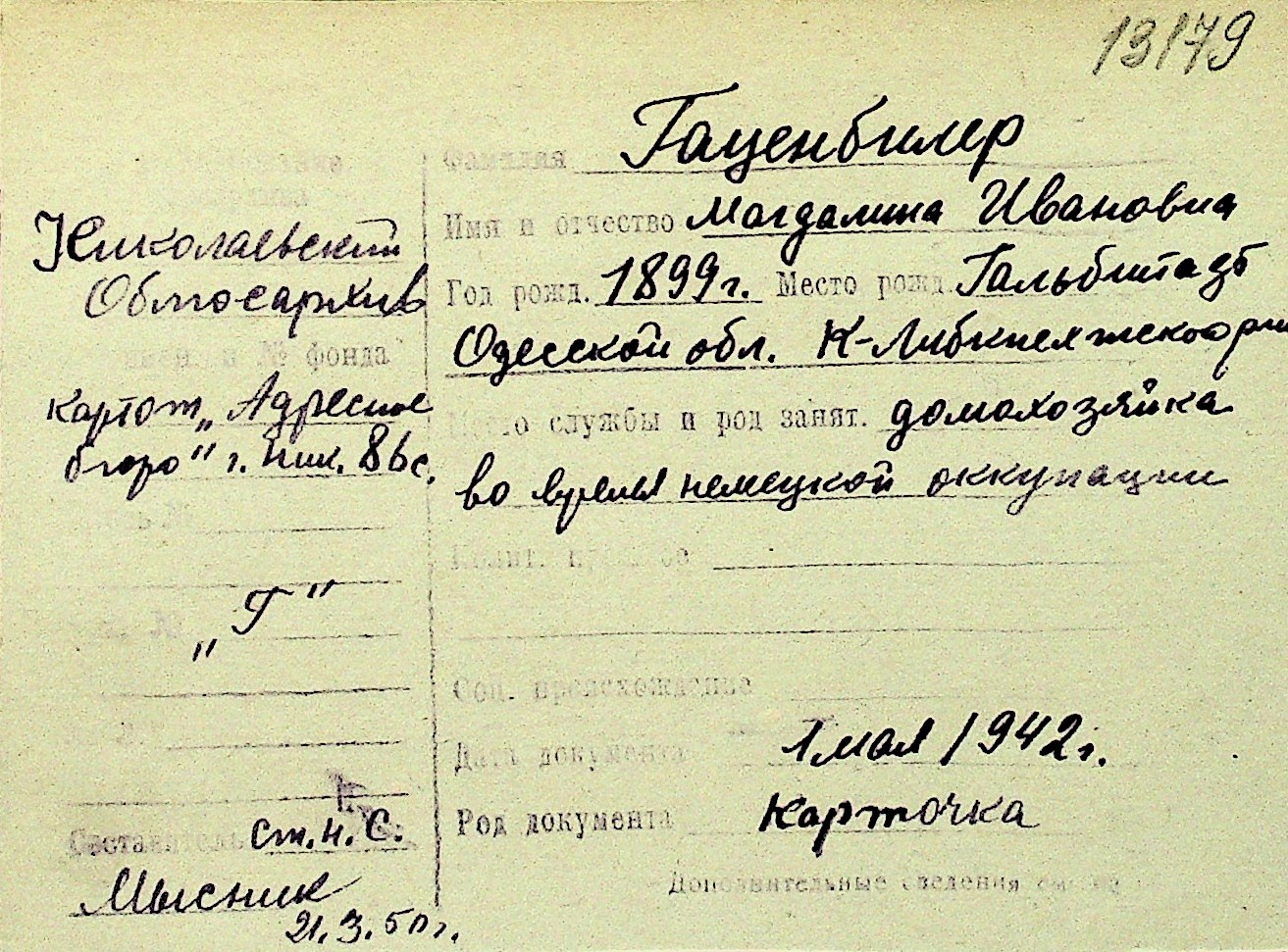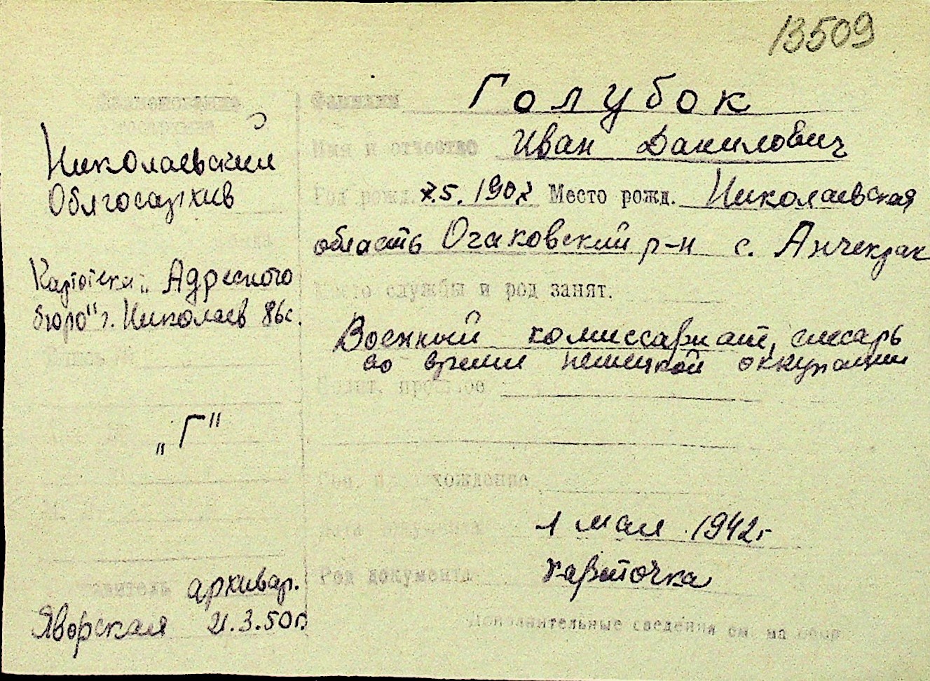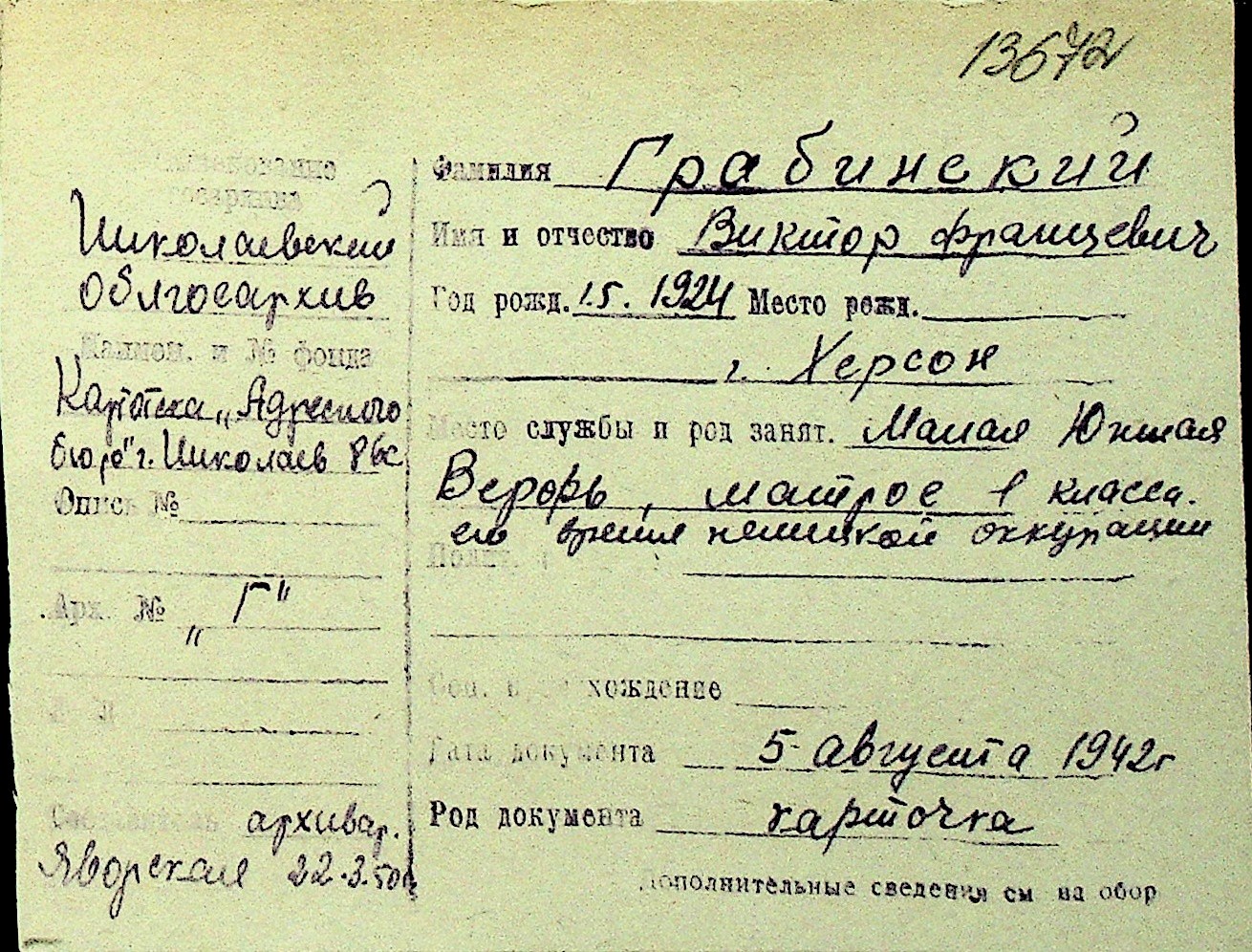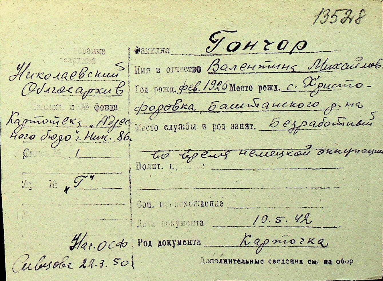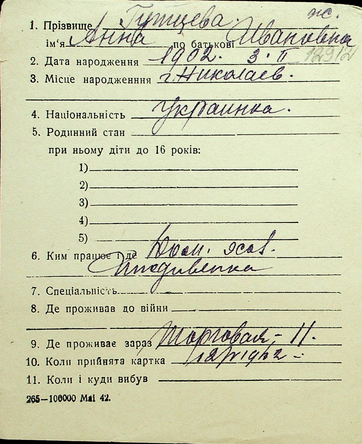 • • Перелік карток до фонду № Н-1016