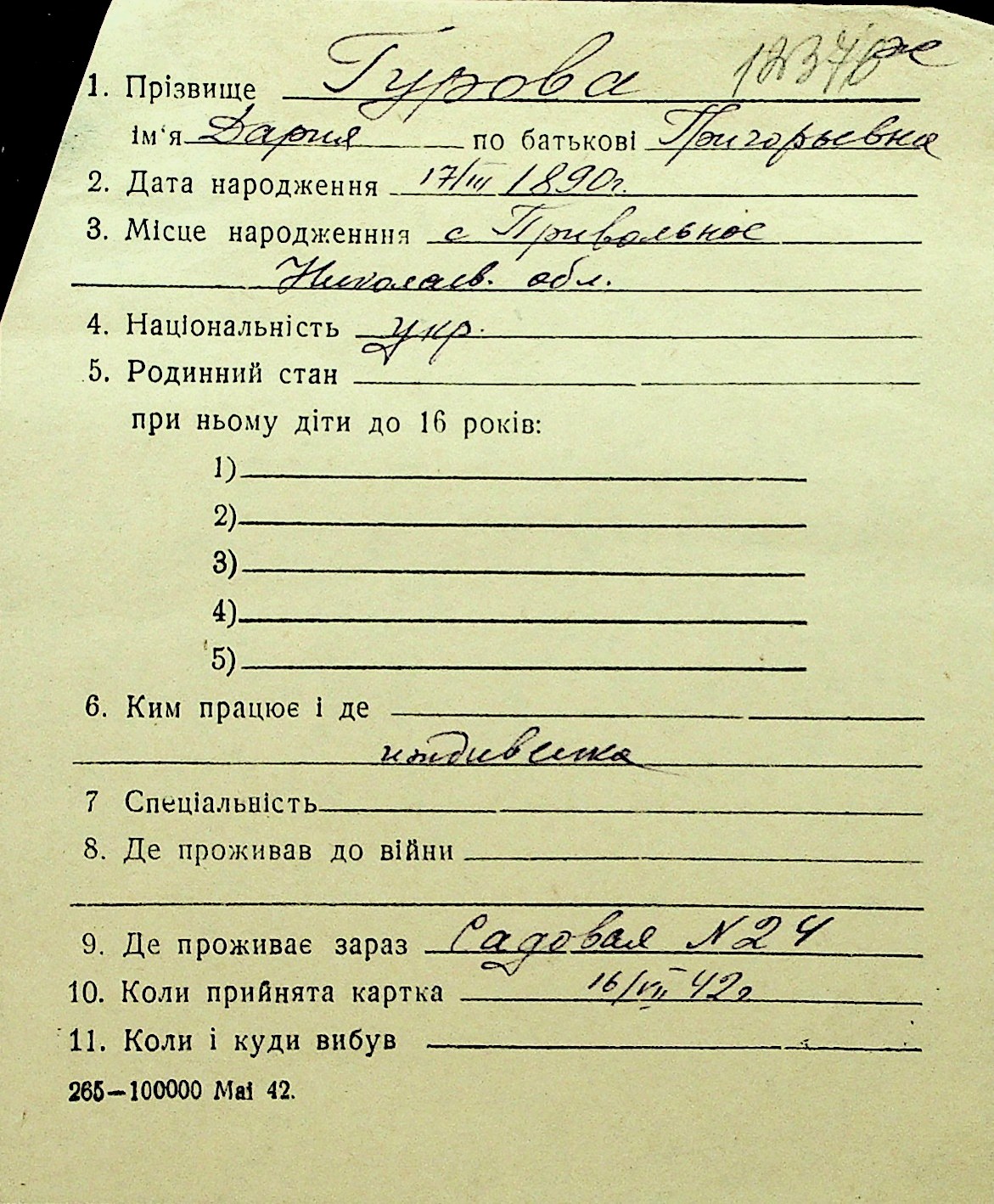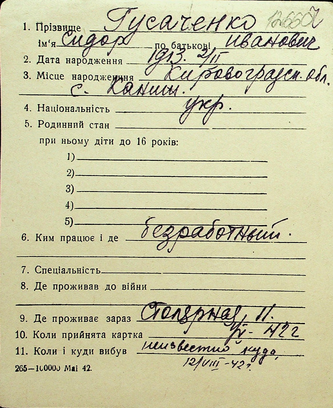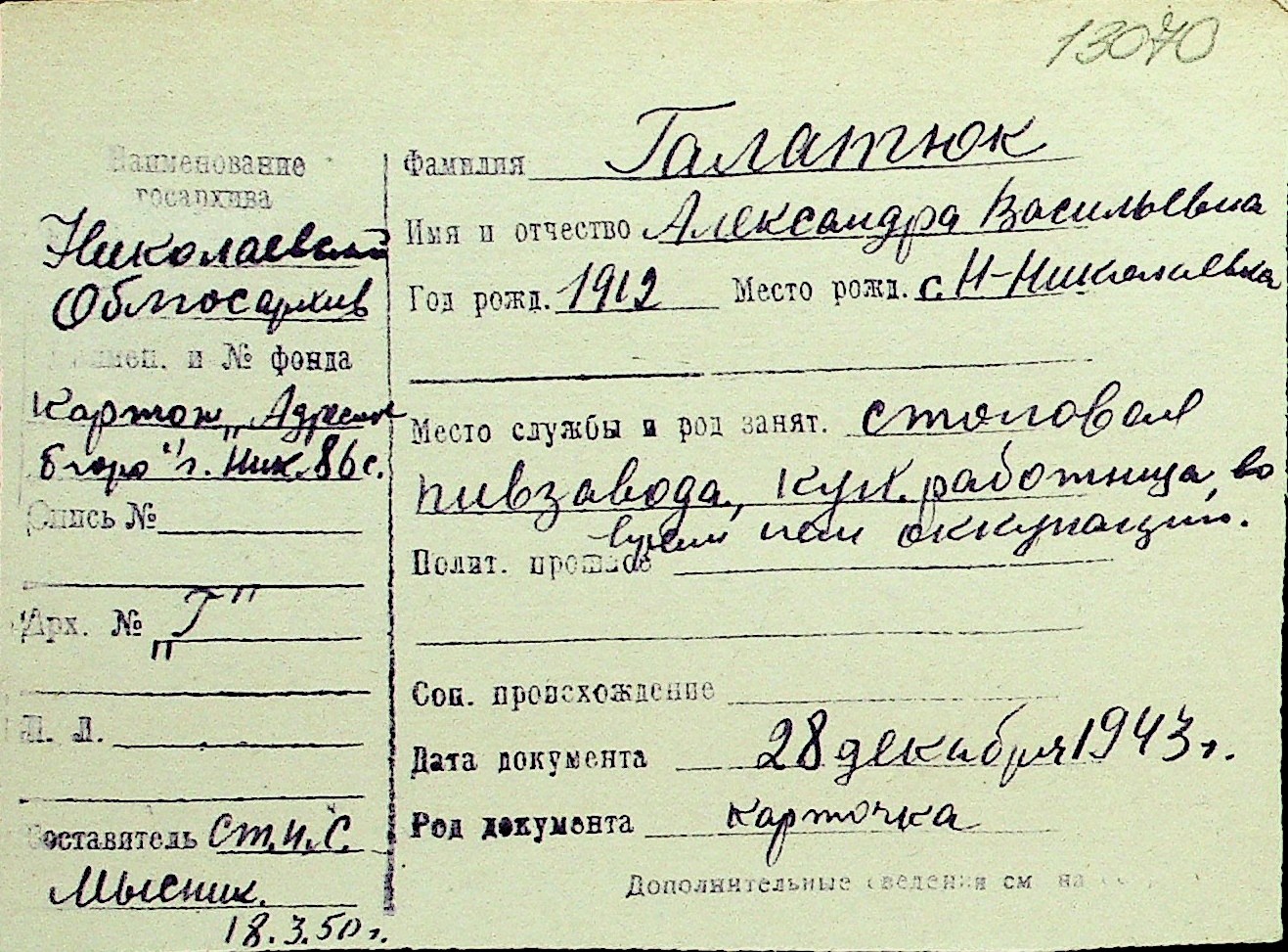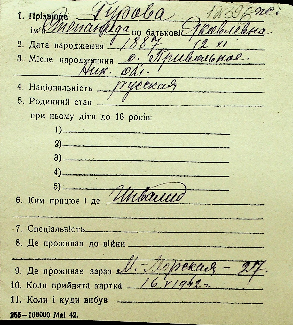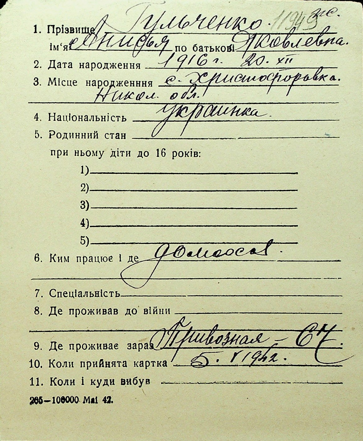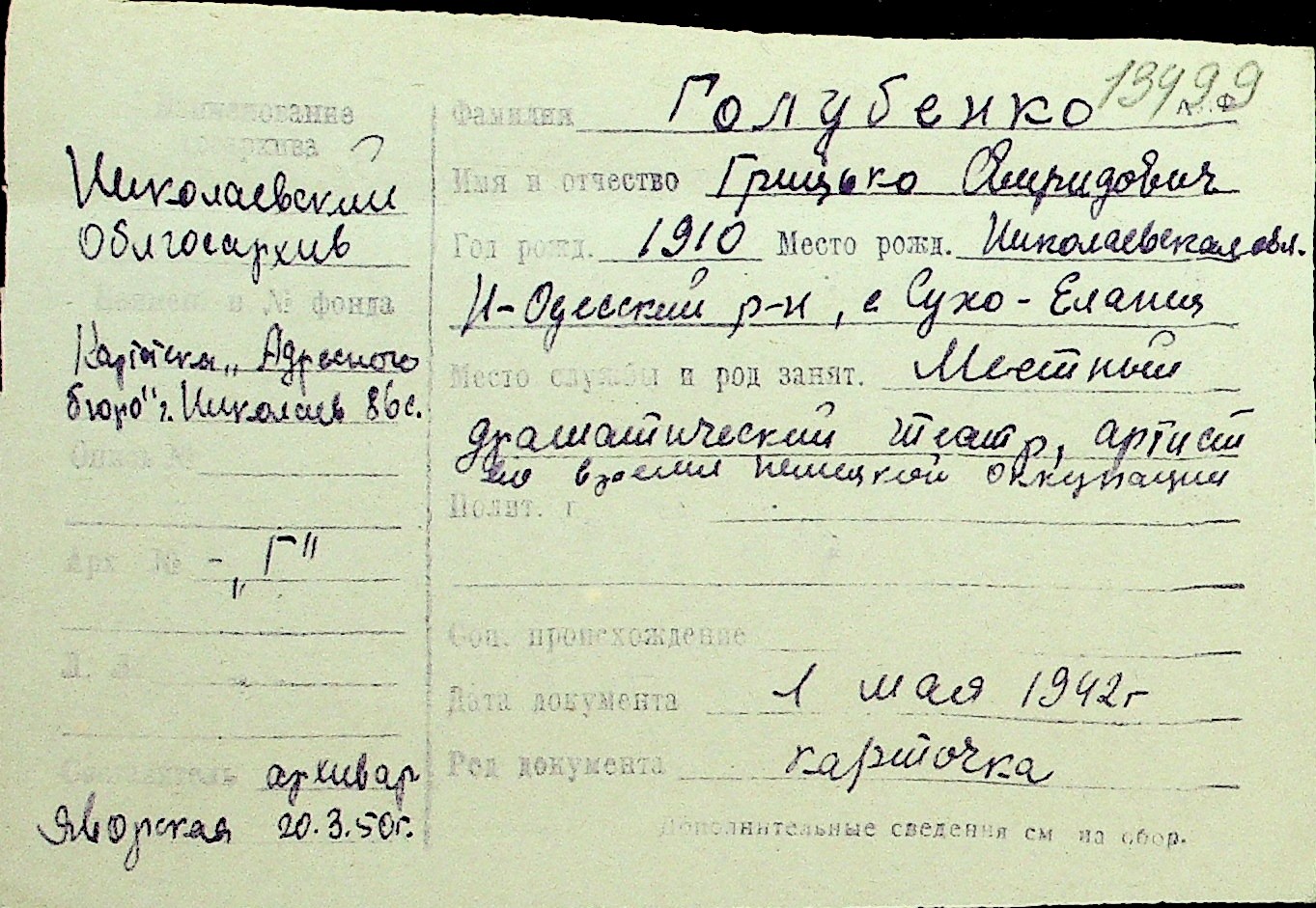 • • Перелік карток до фонду № Н-1016
