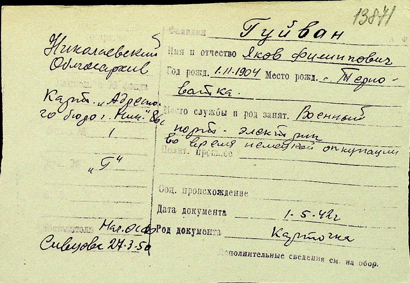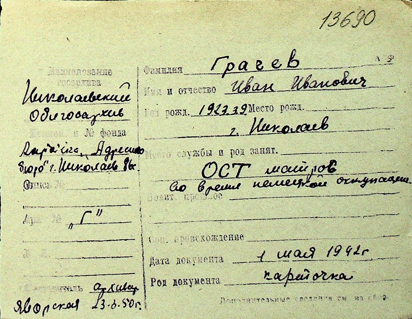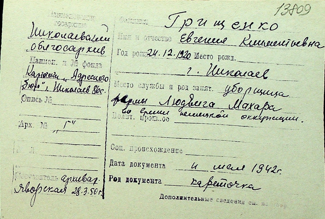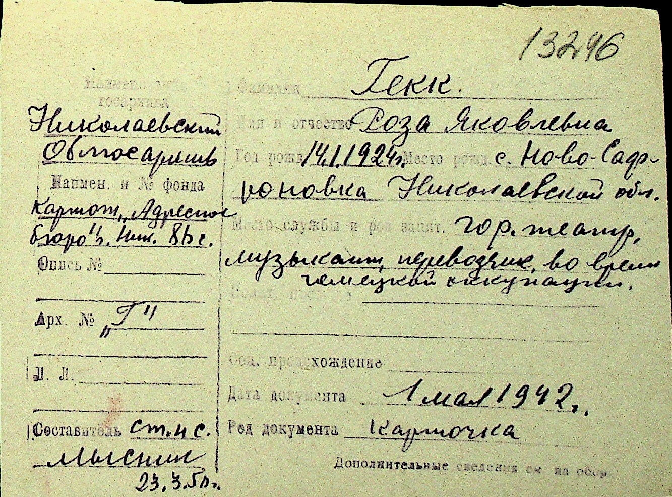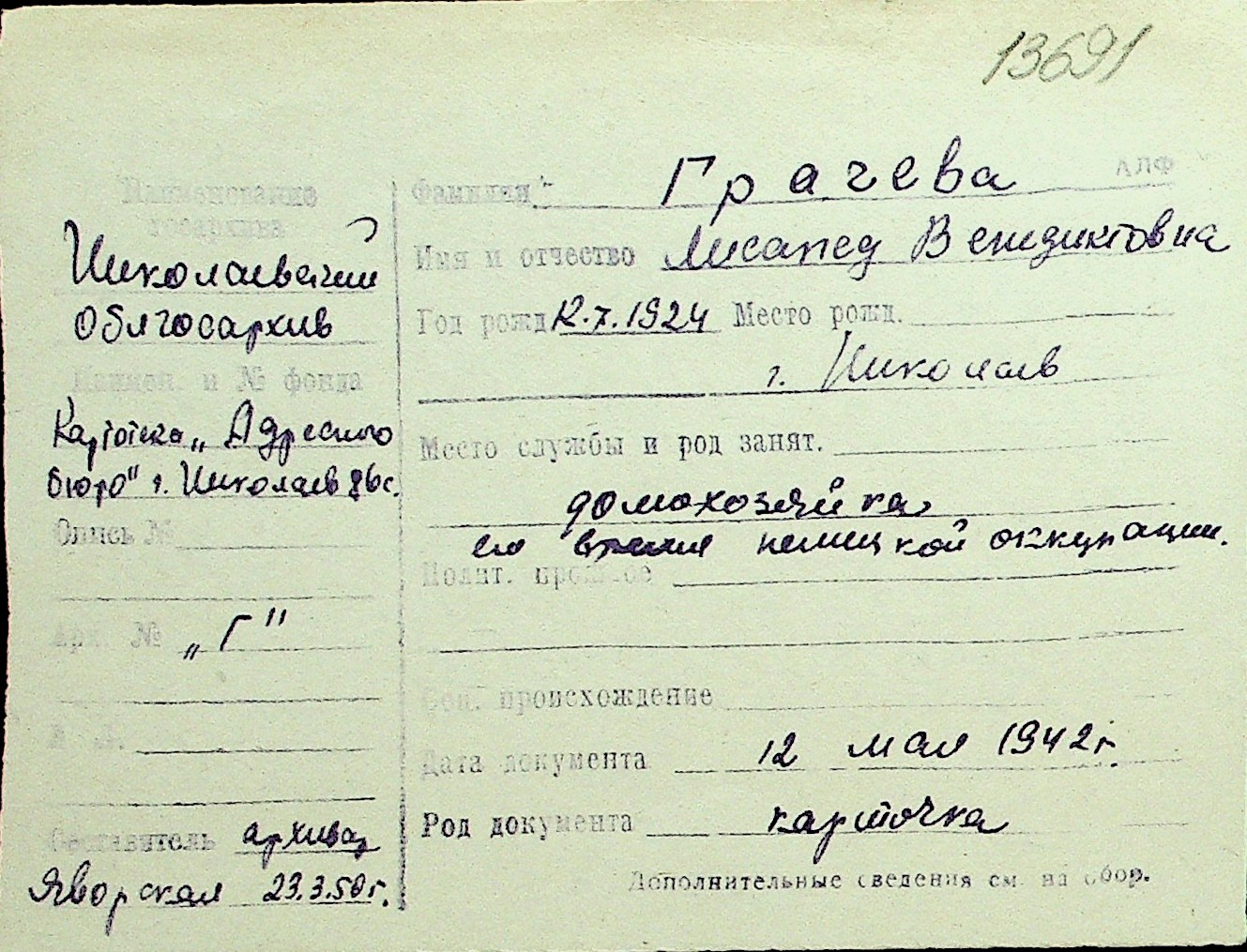 • • Перелік карток до фонду № Н-1016