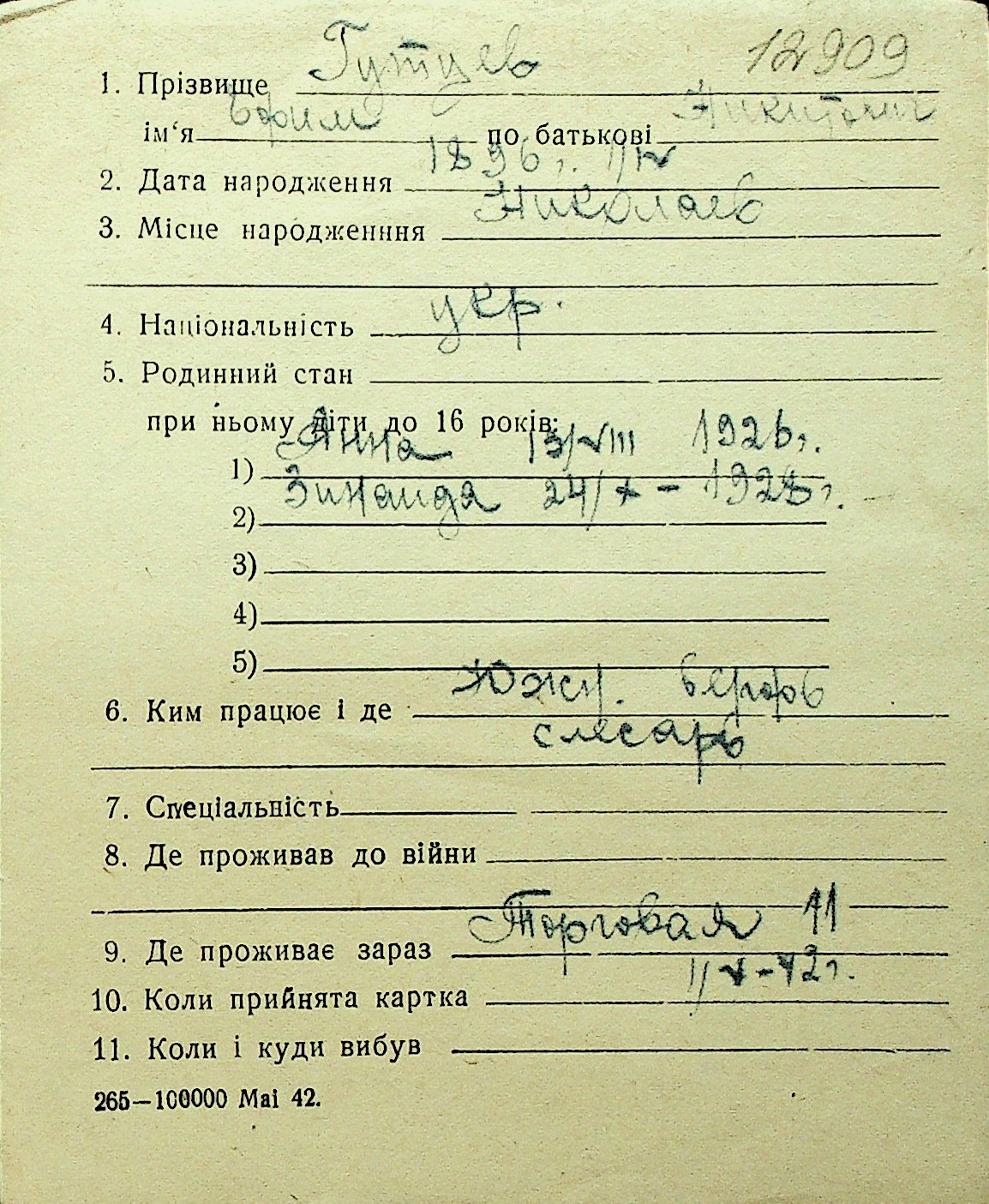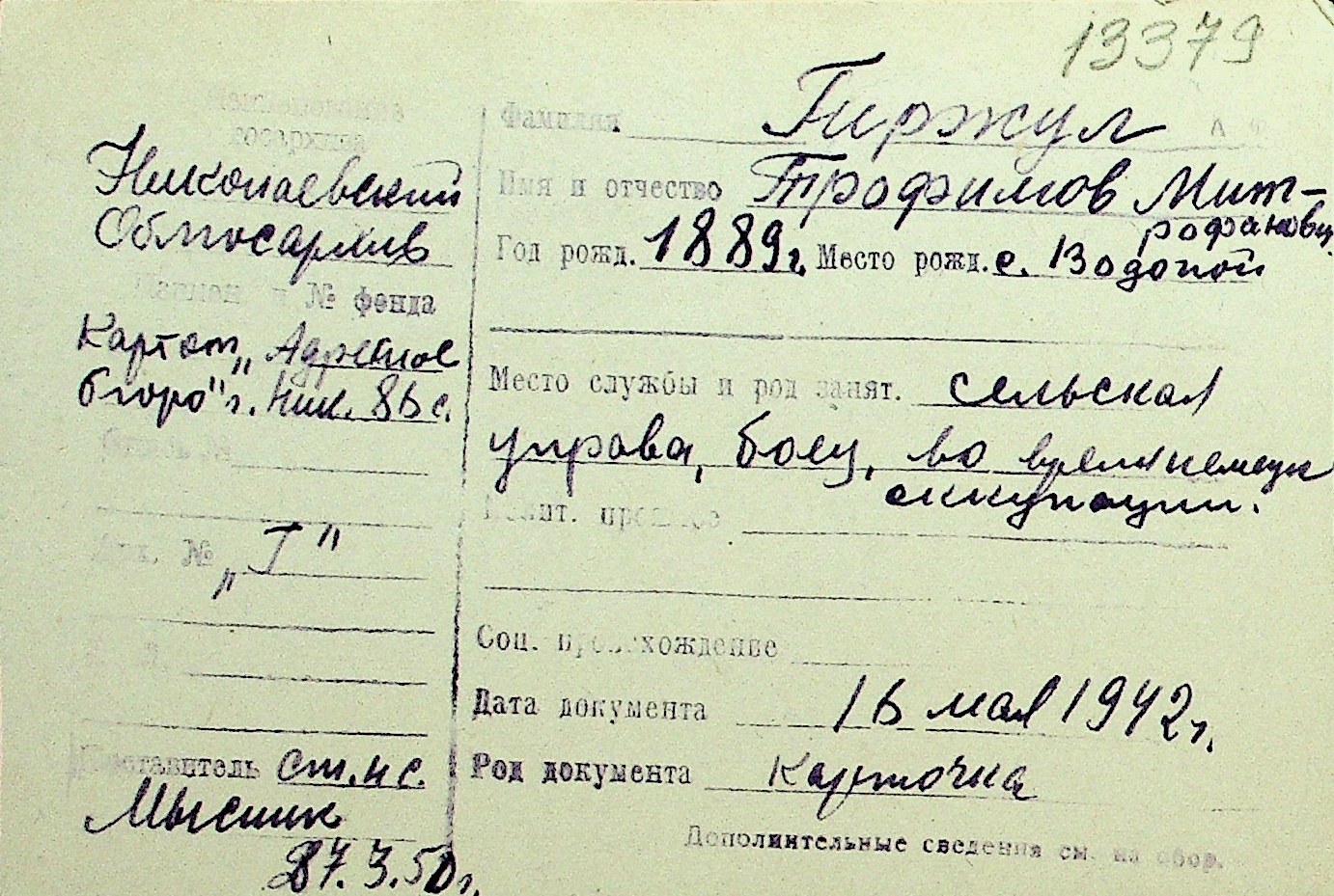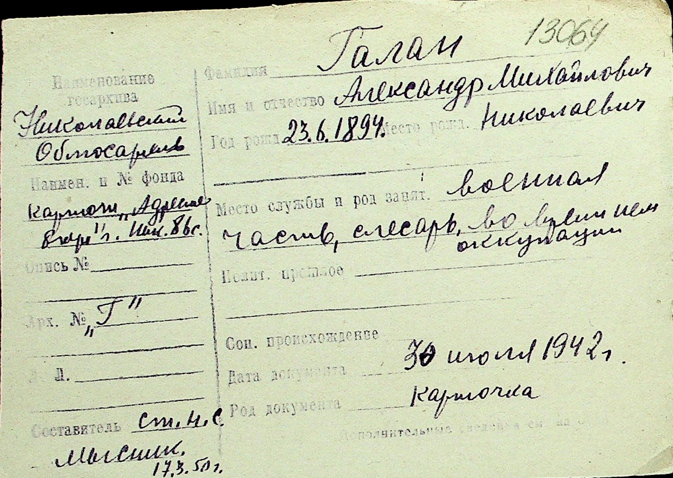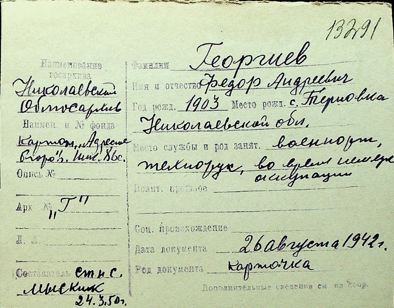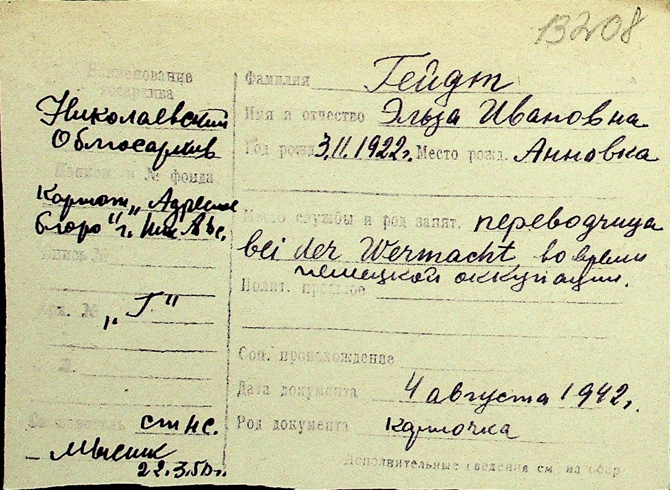 • • Перелік карток до фонду № Н-1016