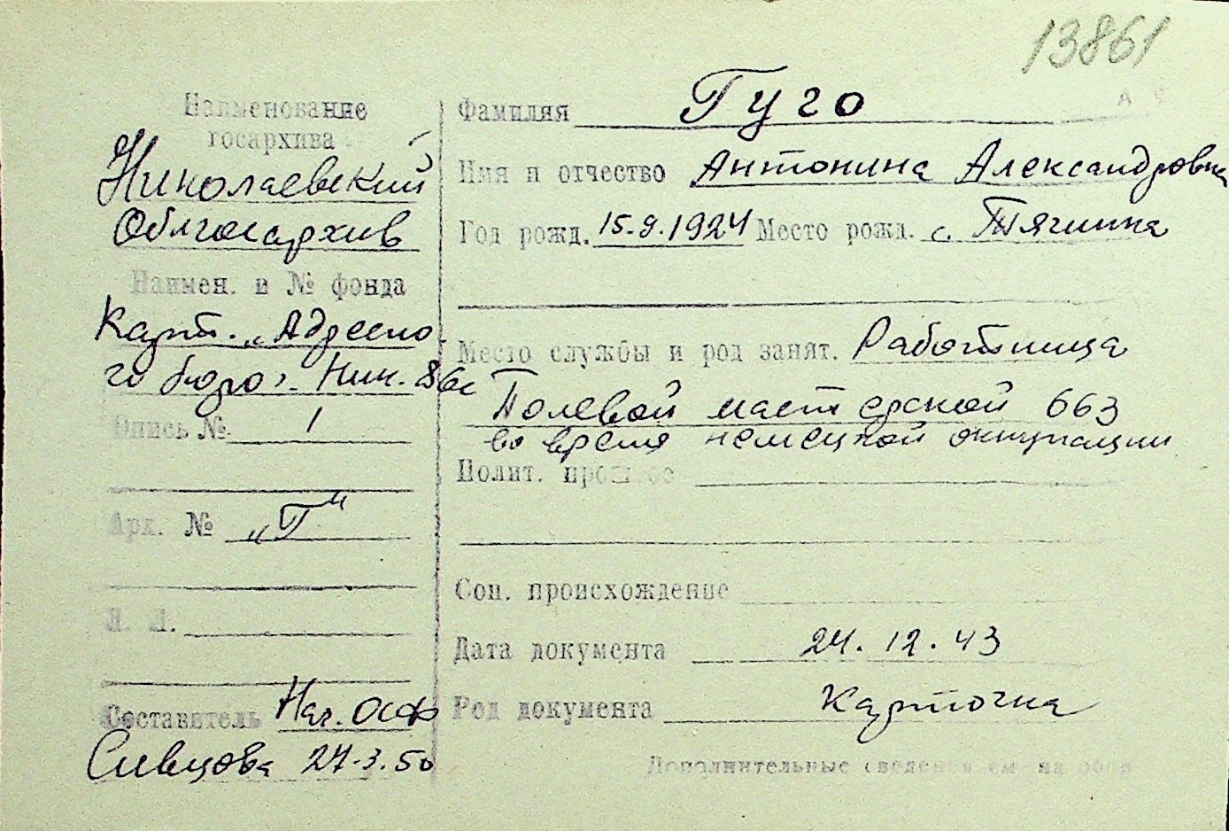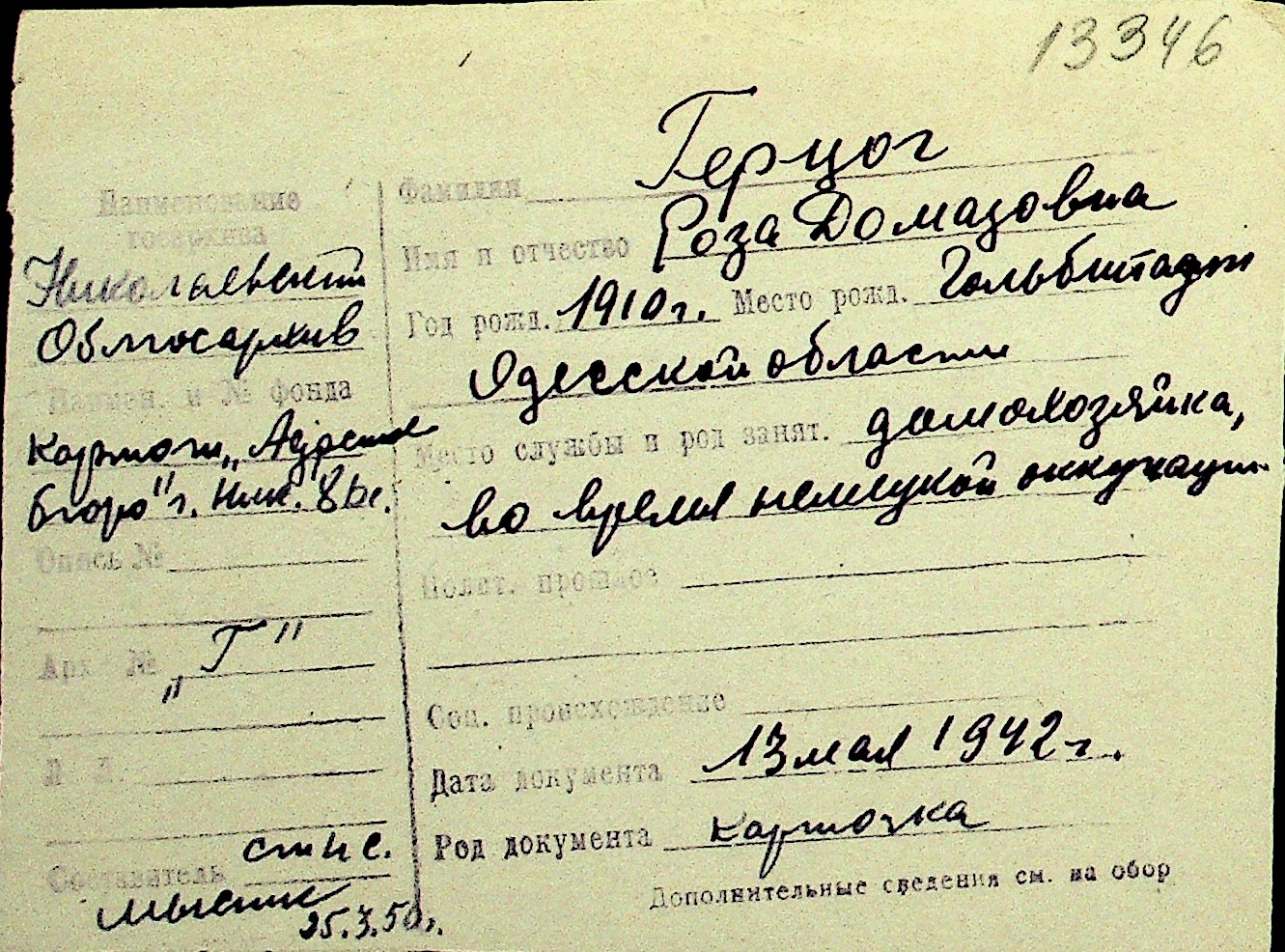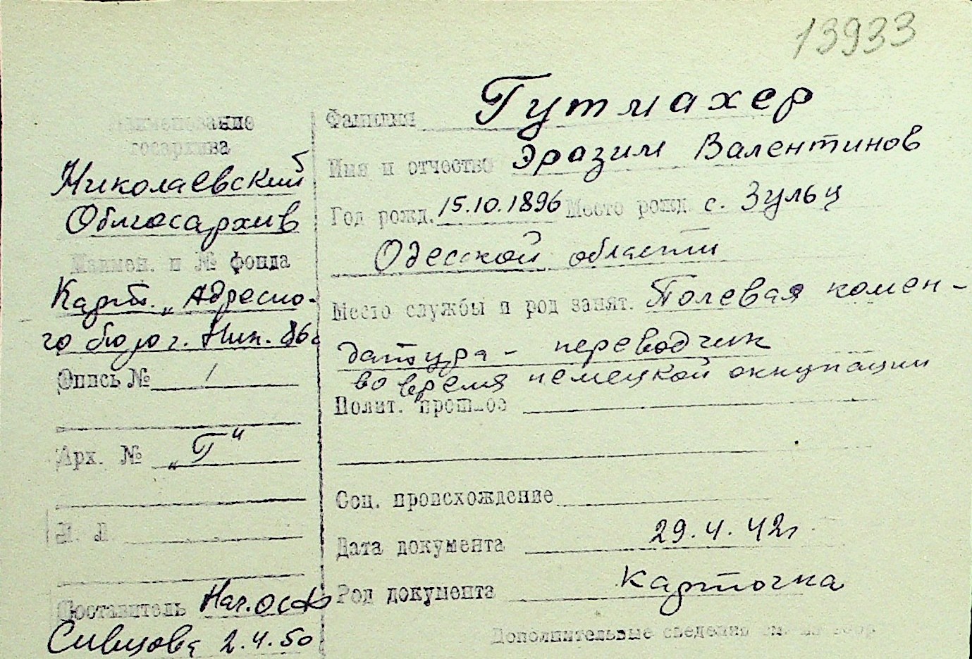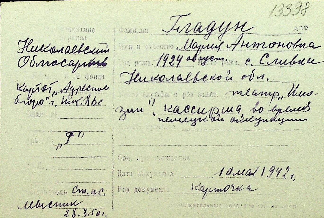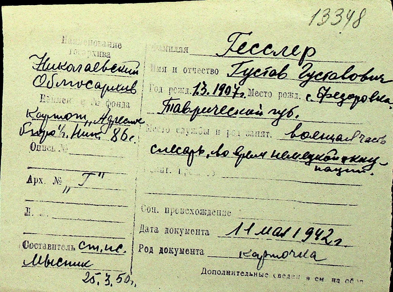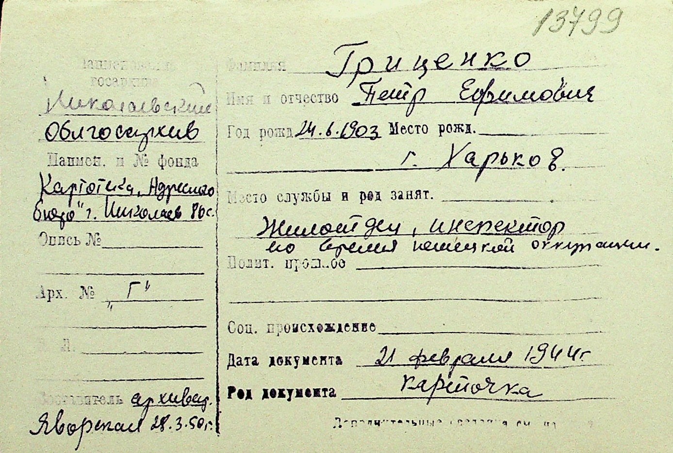 • • Перелік карток до фонду № Н-1016