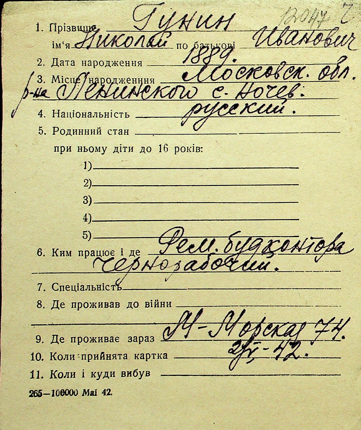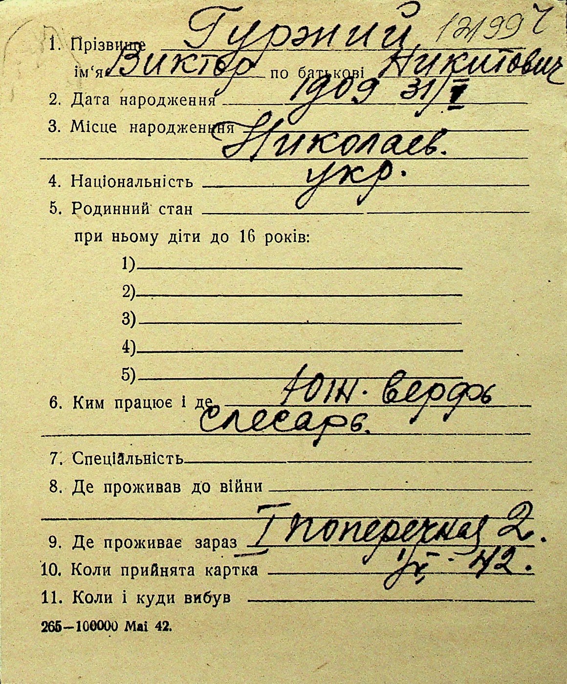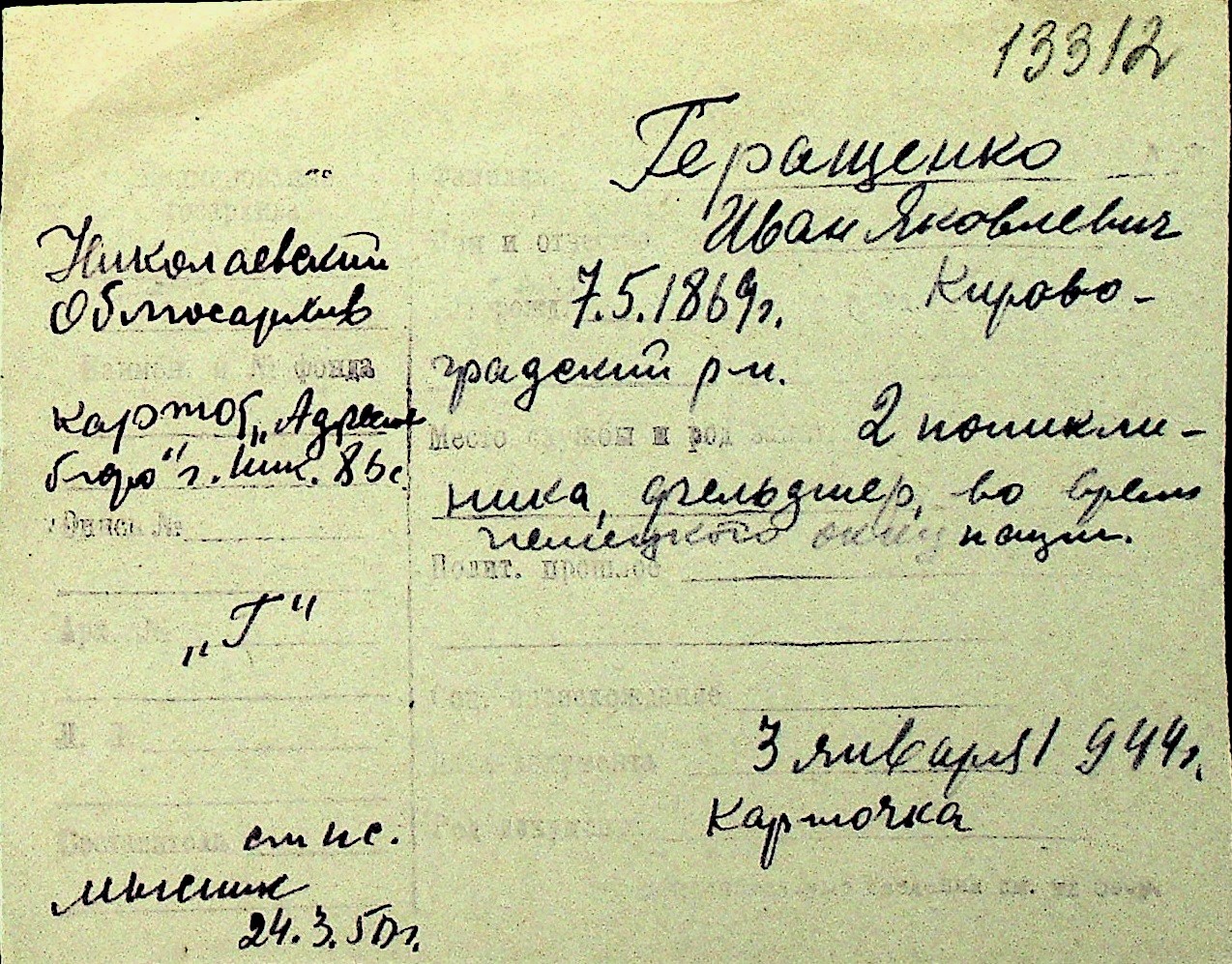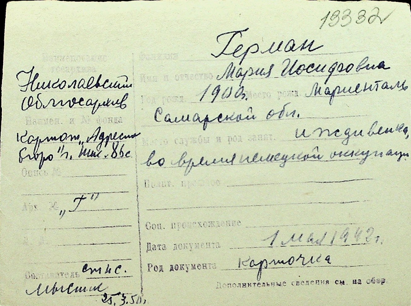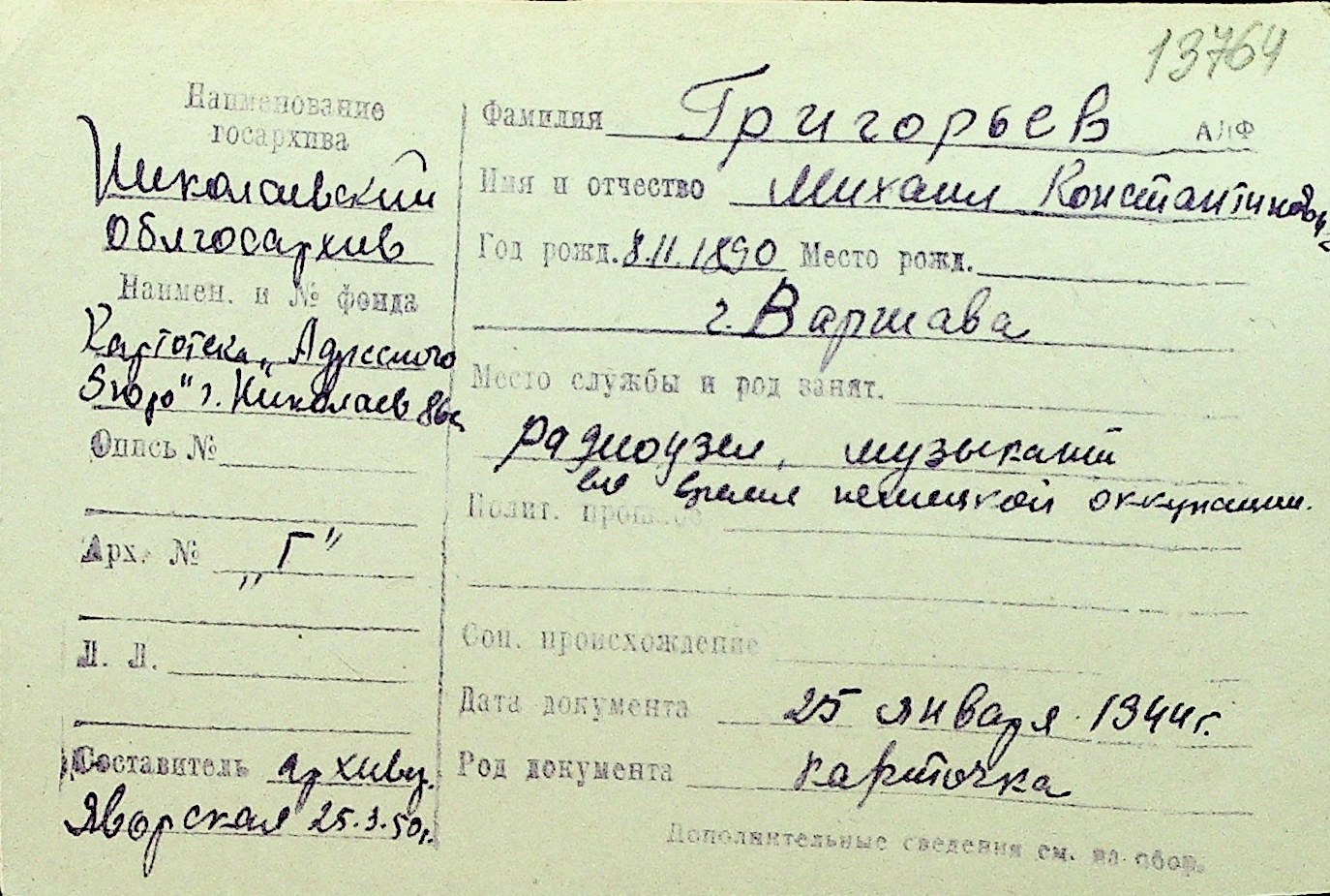 • • Перелік карток до фонду № Н-1016