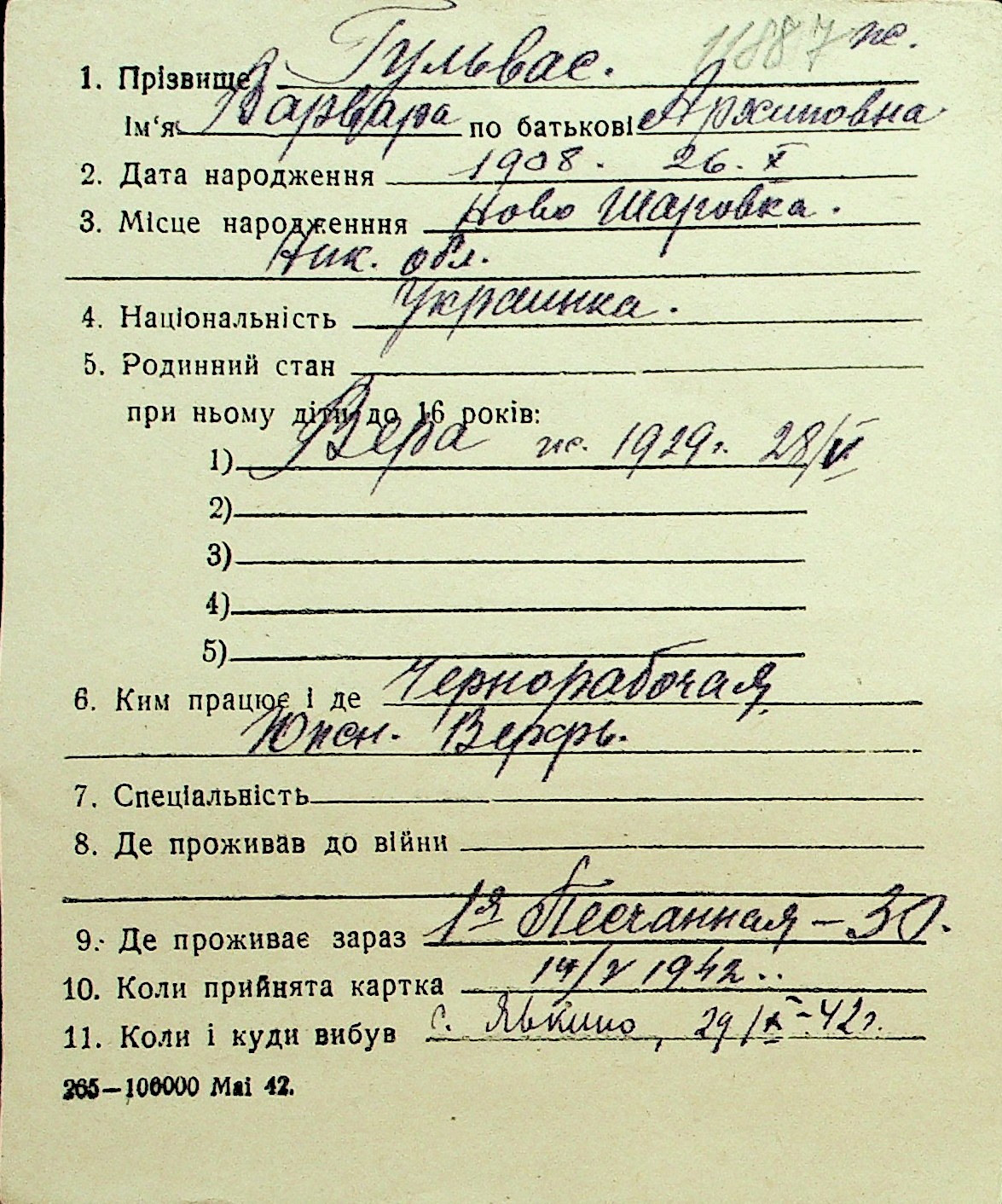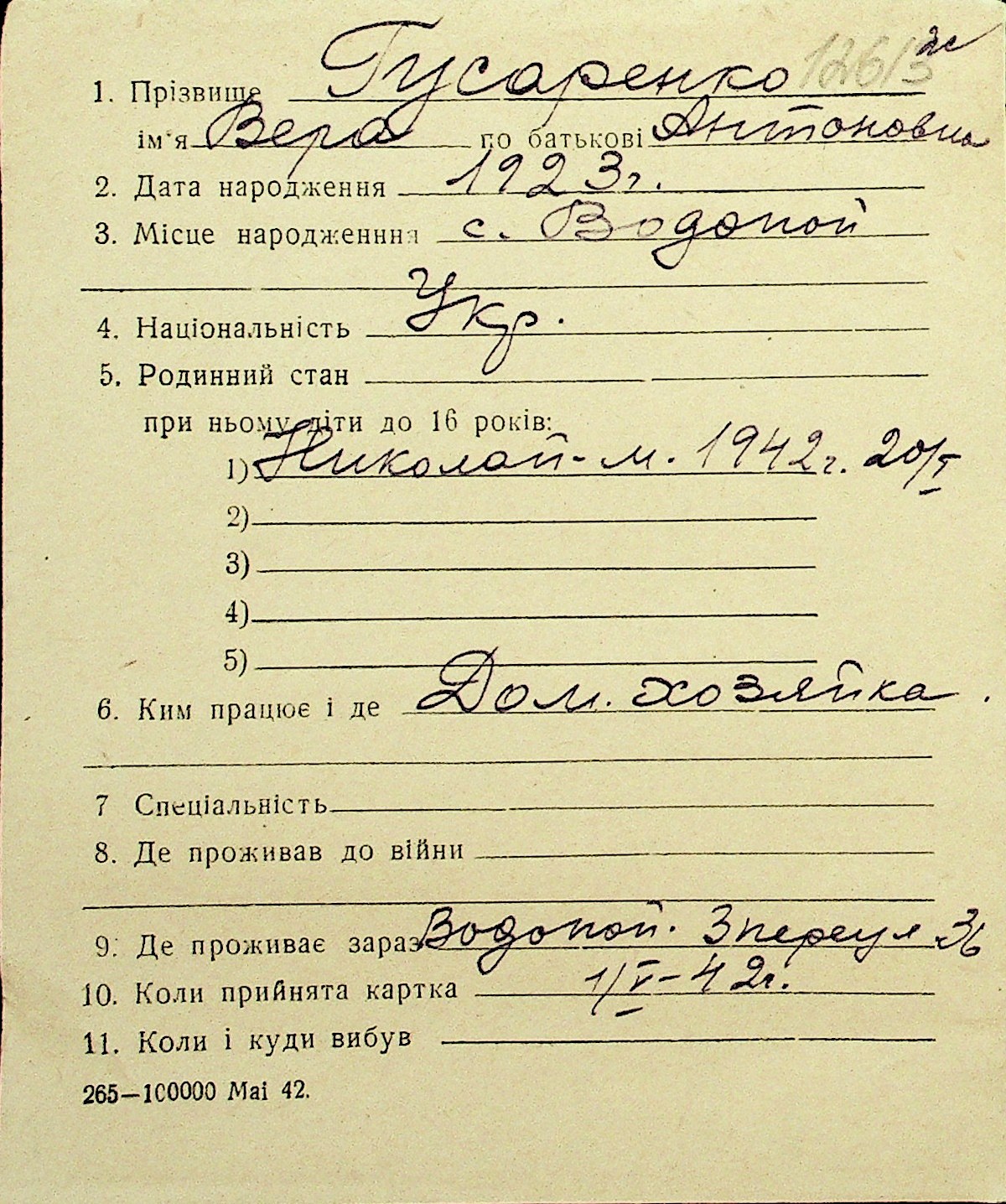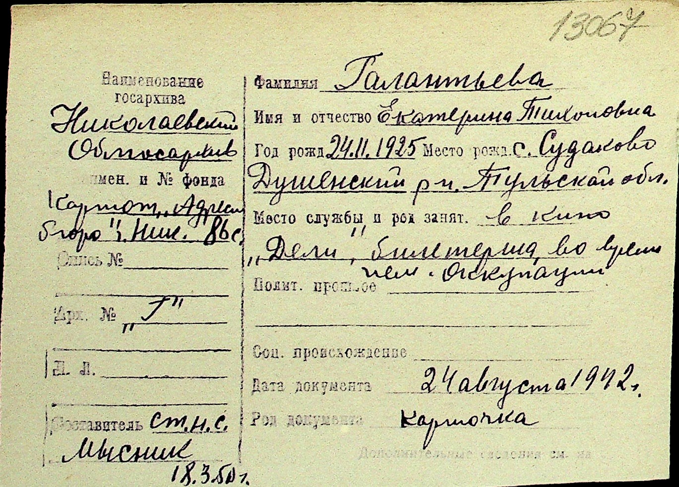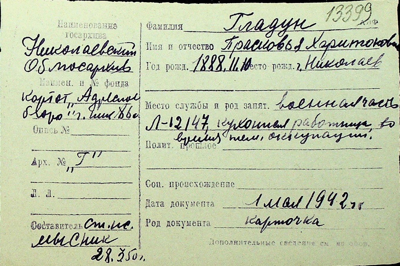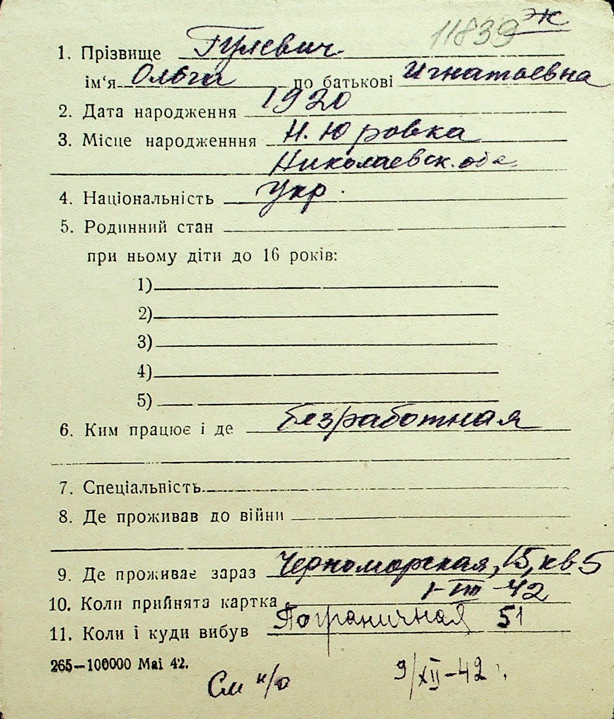 • • Перелік карток до фонду № Н-1016