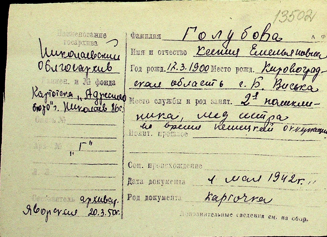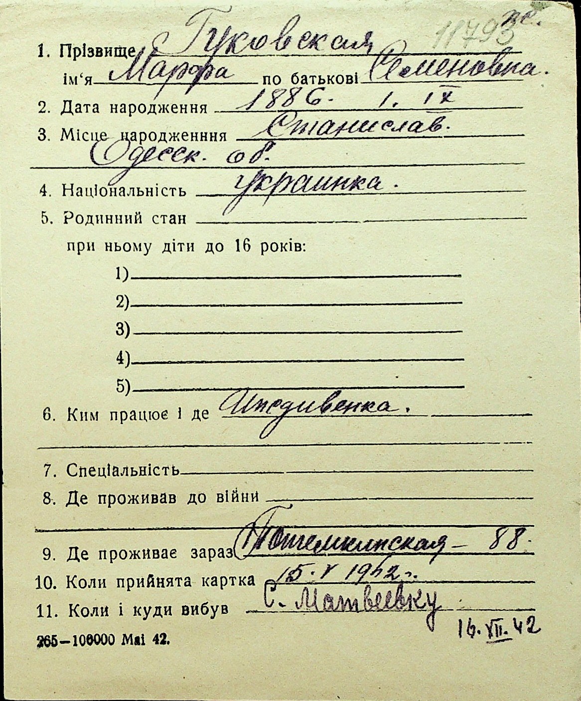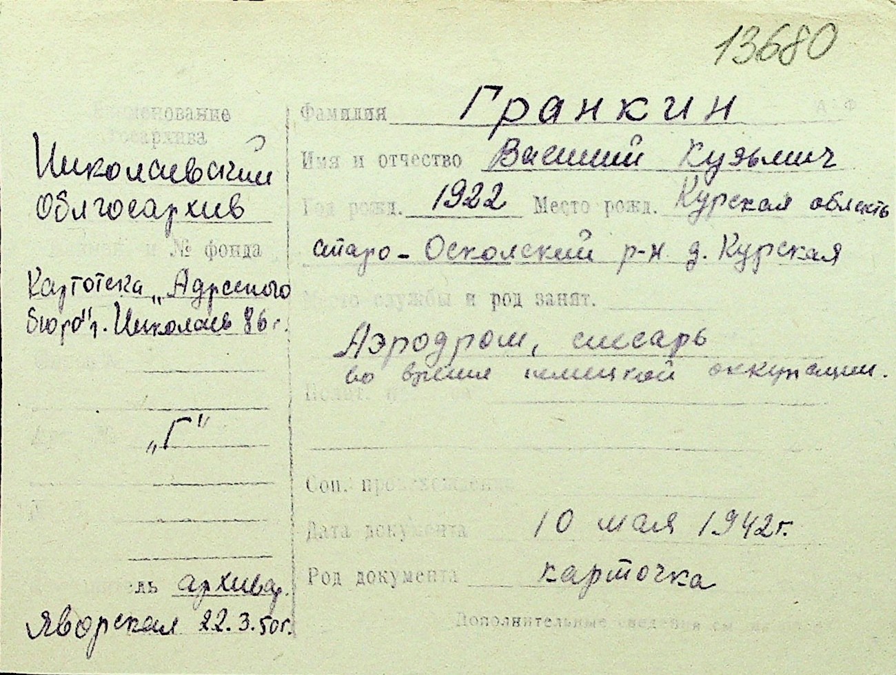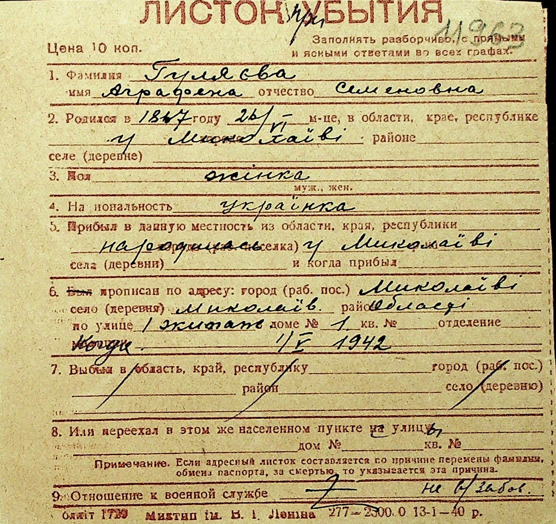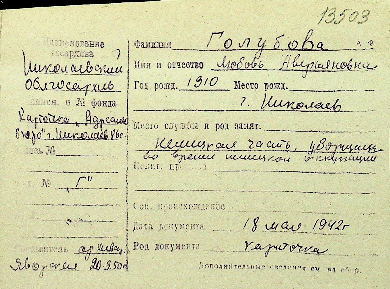 • • Перелік карток до фонду № Н-1016