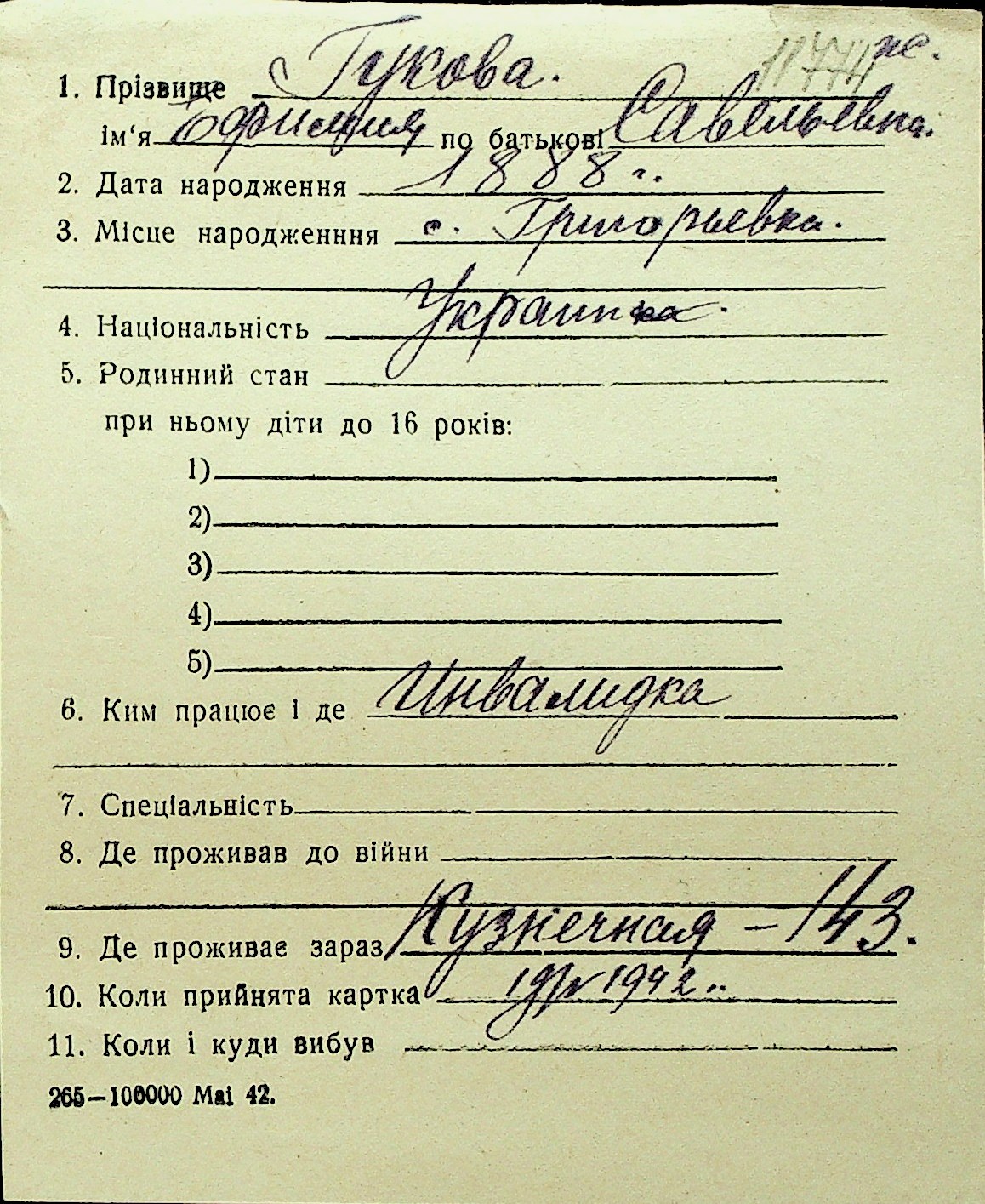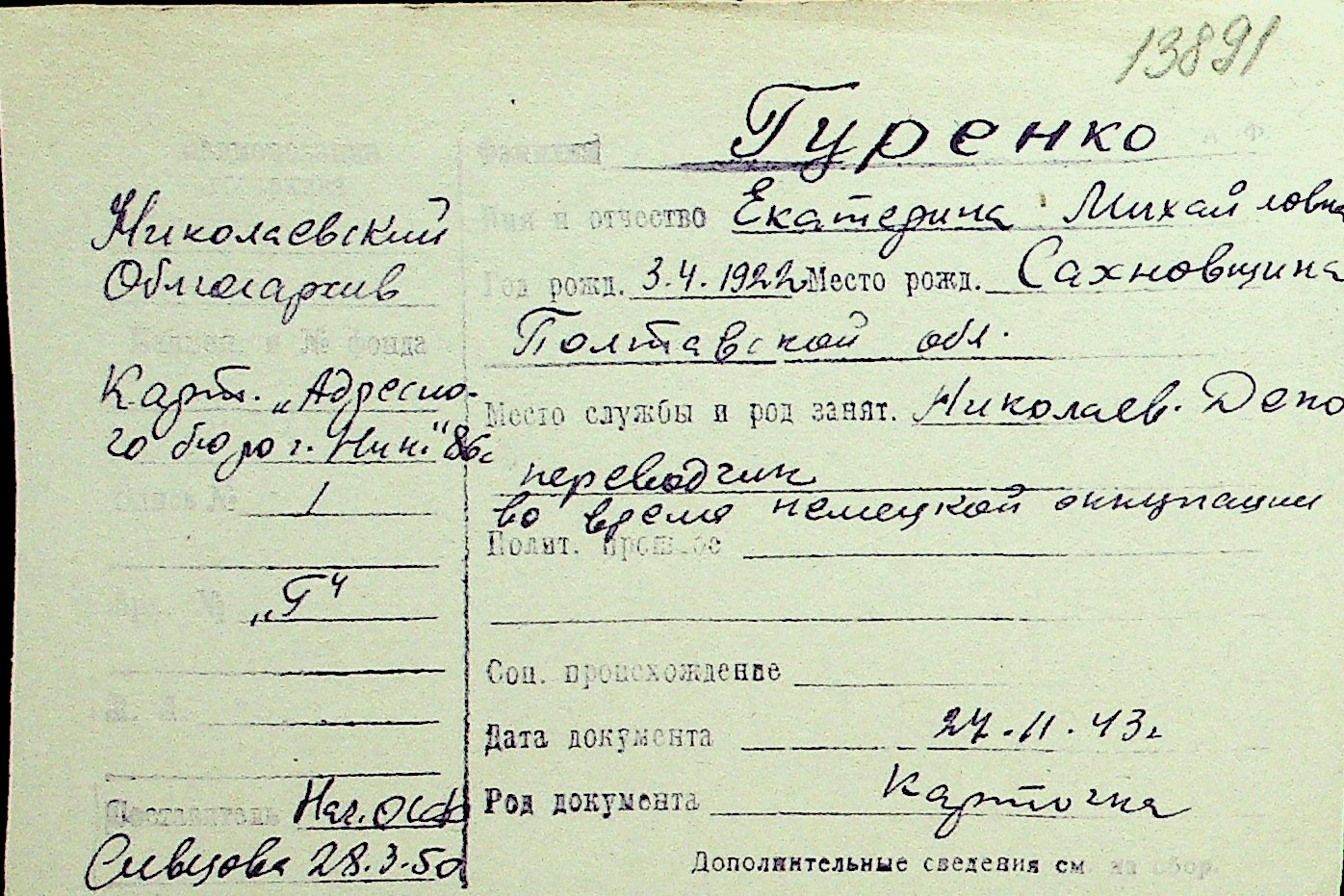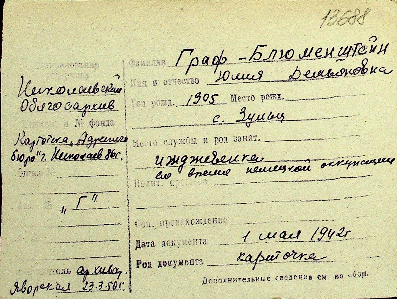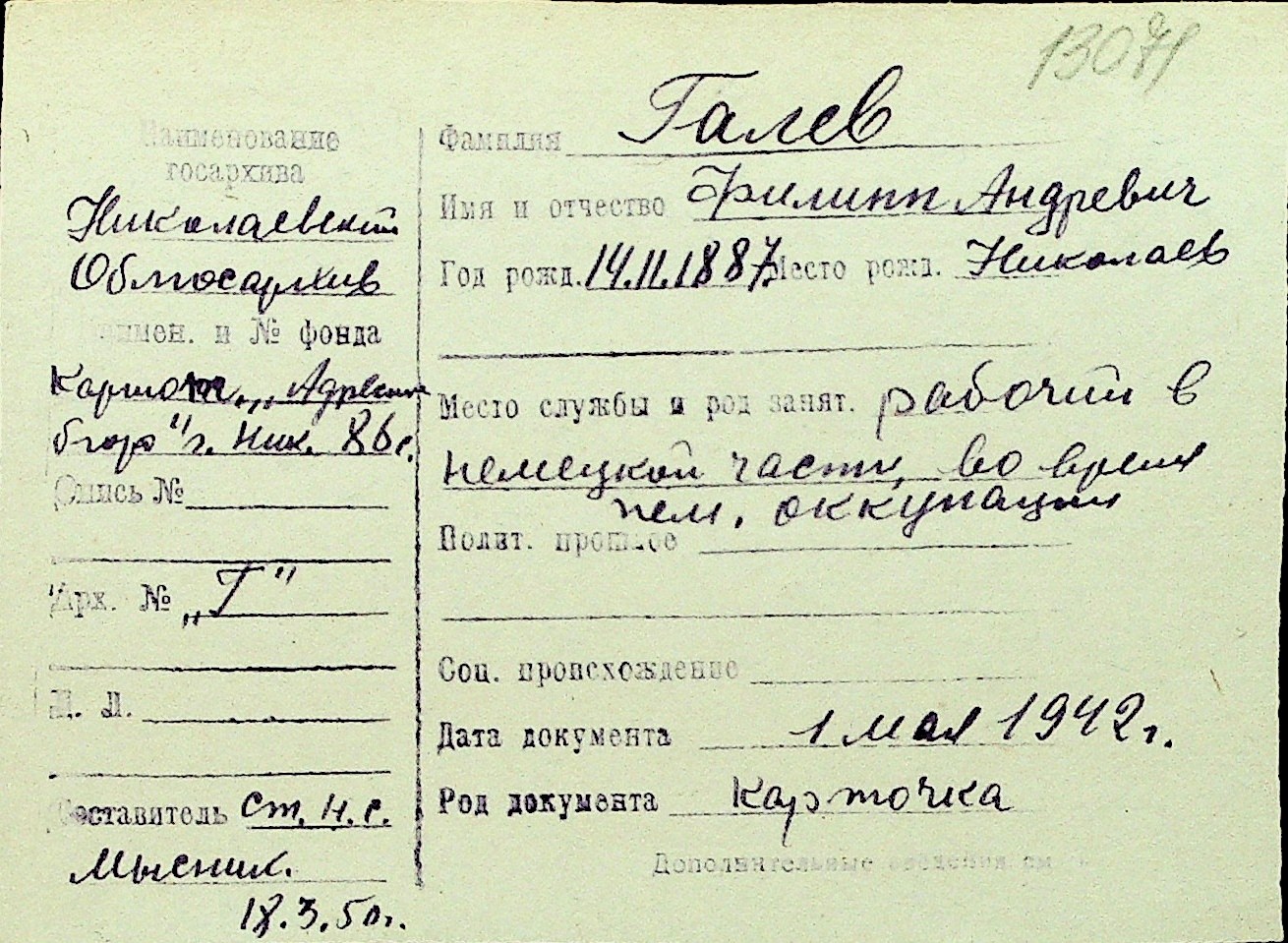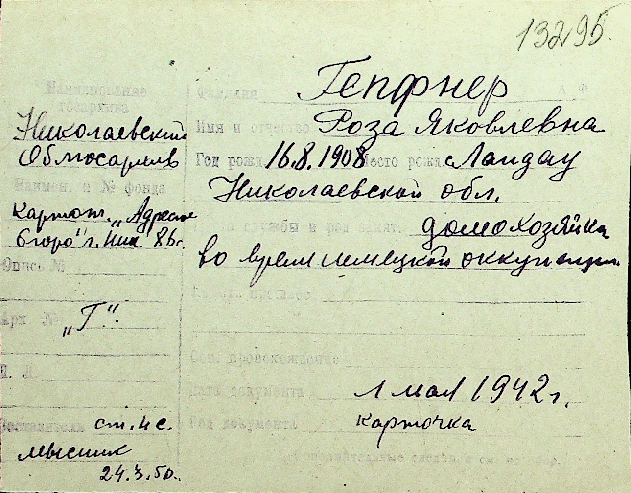 • • Перелік карток до фонду № Н-1016