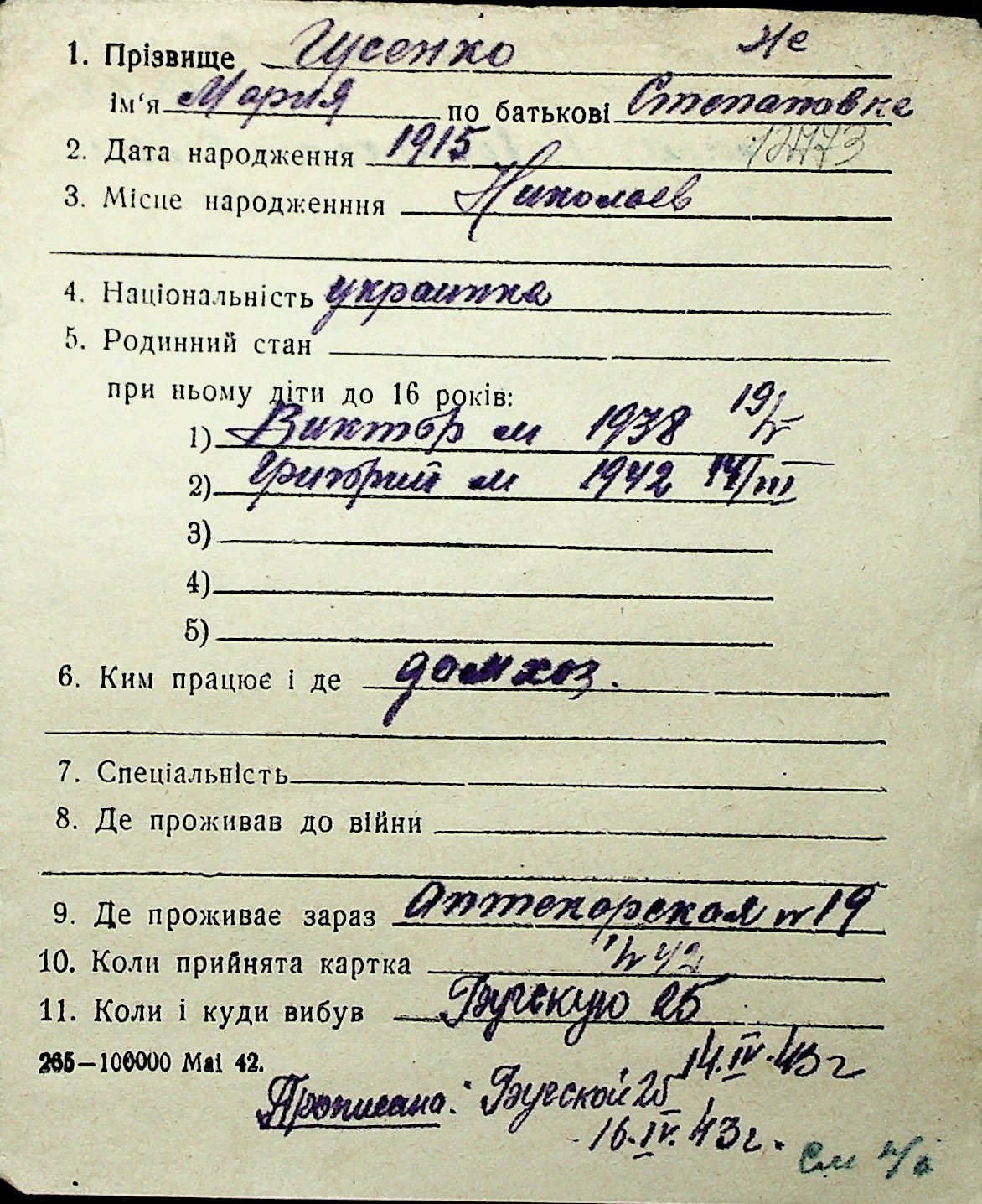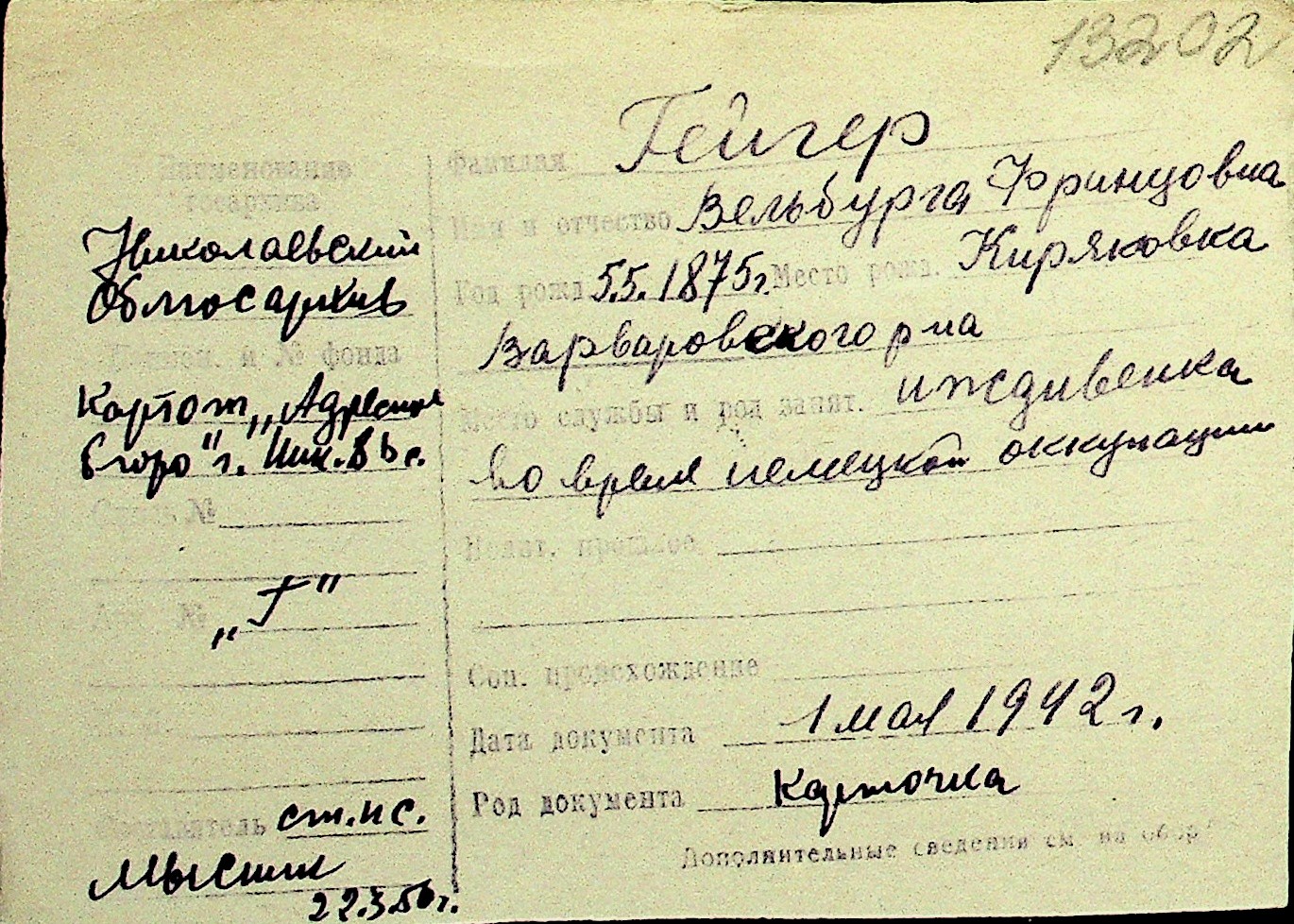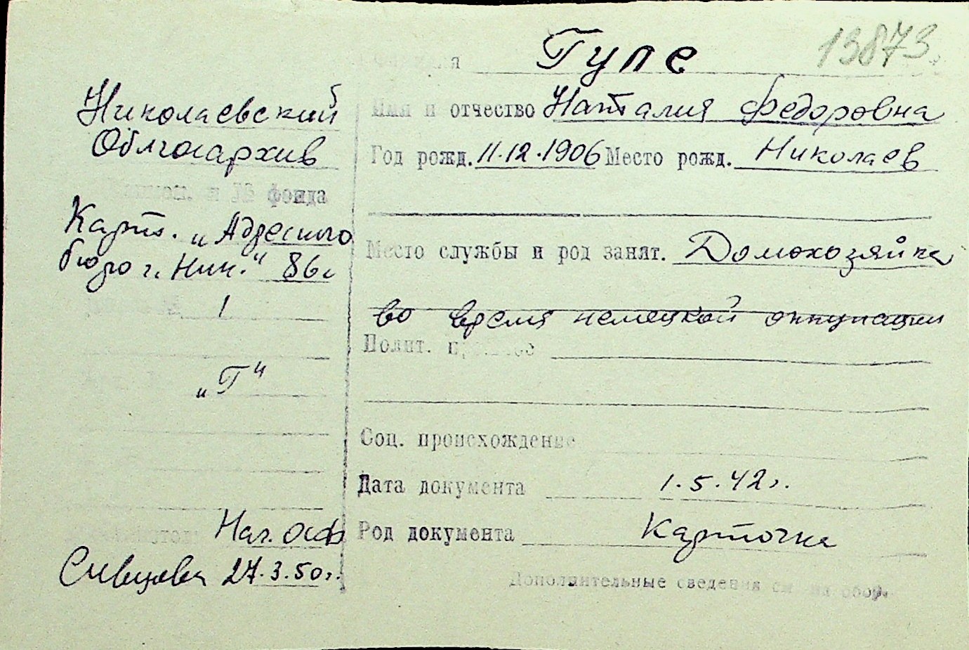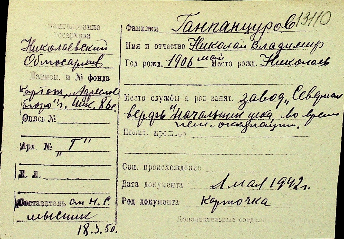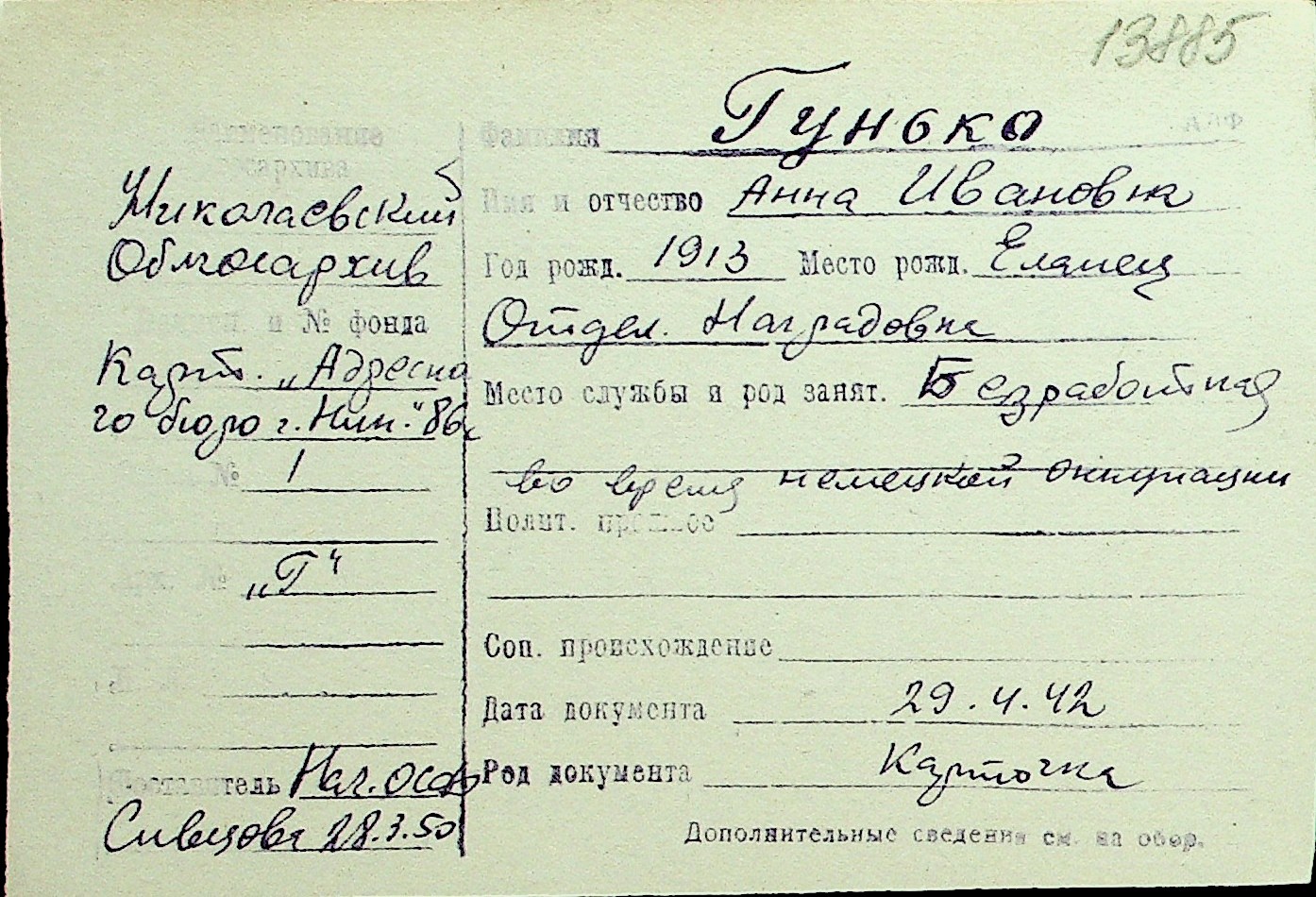 • • Перелік карток до фонду № Н-1016