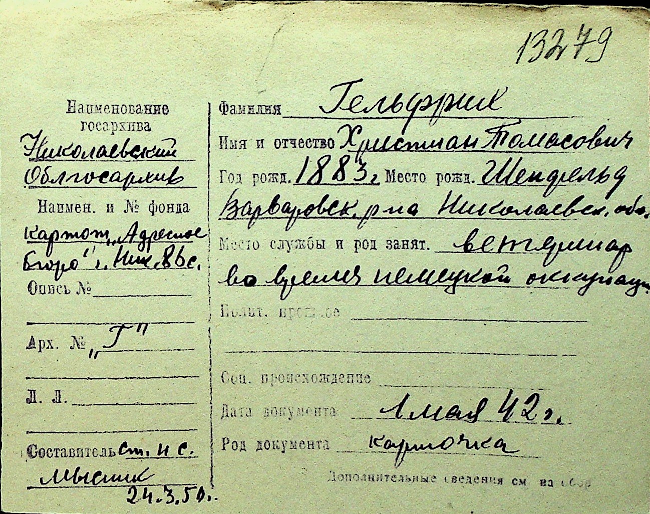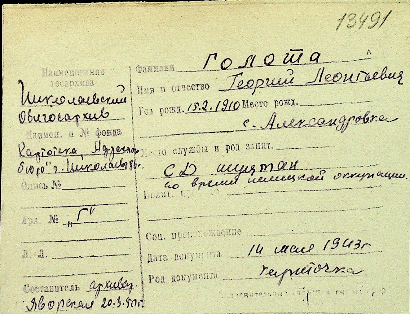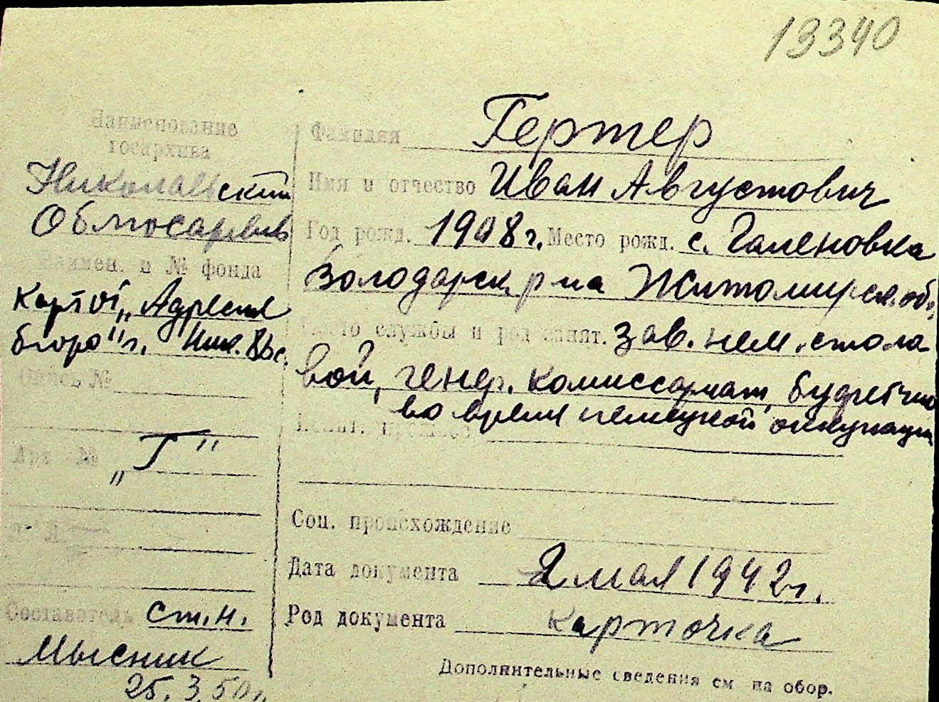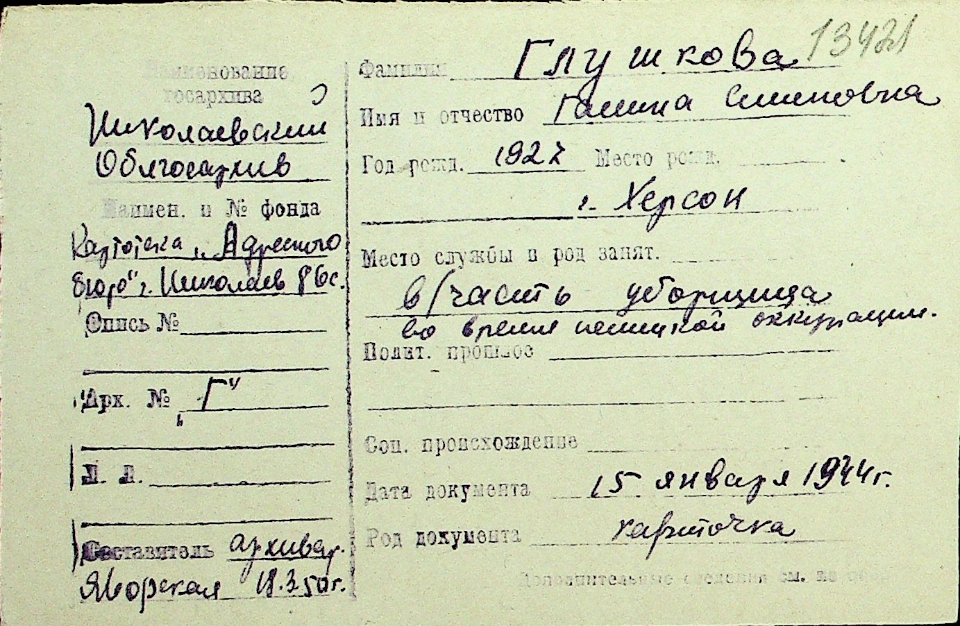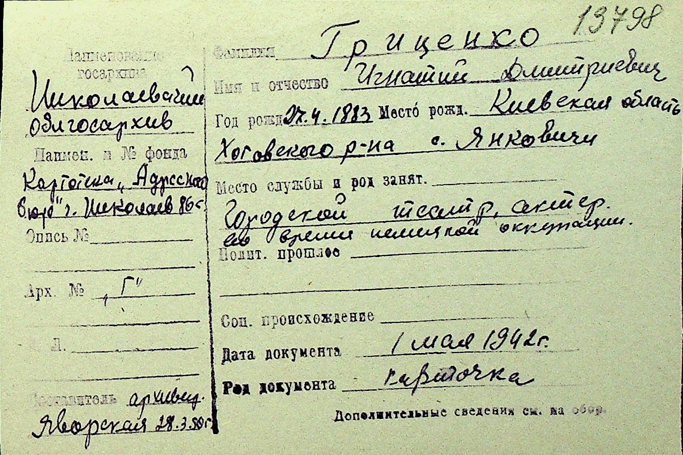 • • Перелік карток до фонду № Н-1016