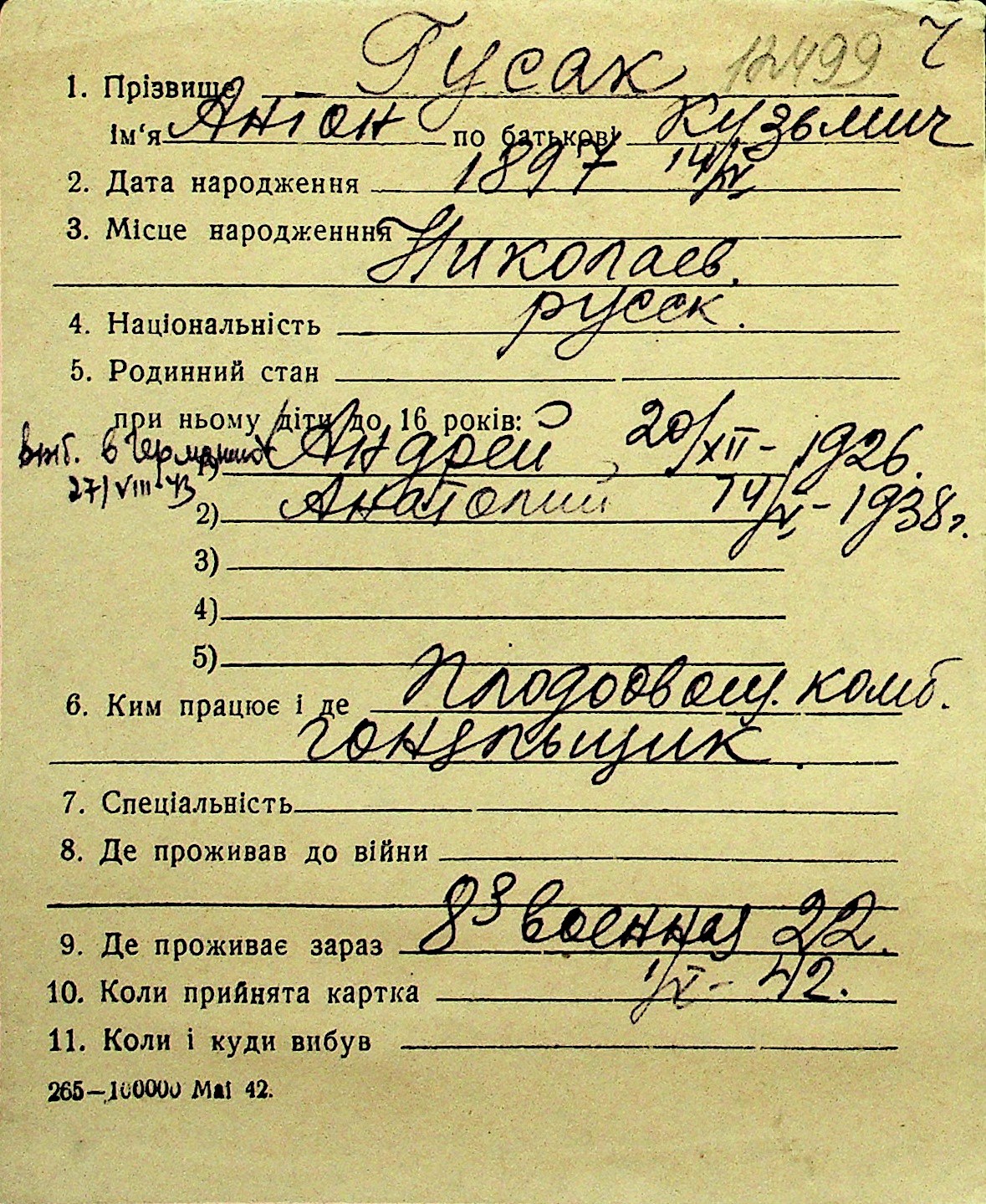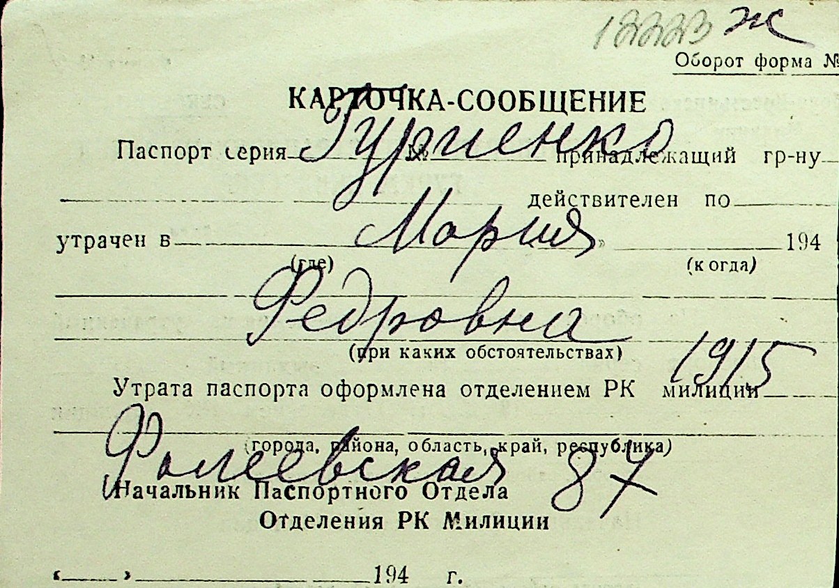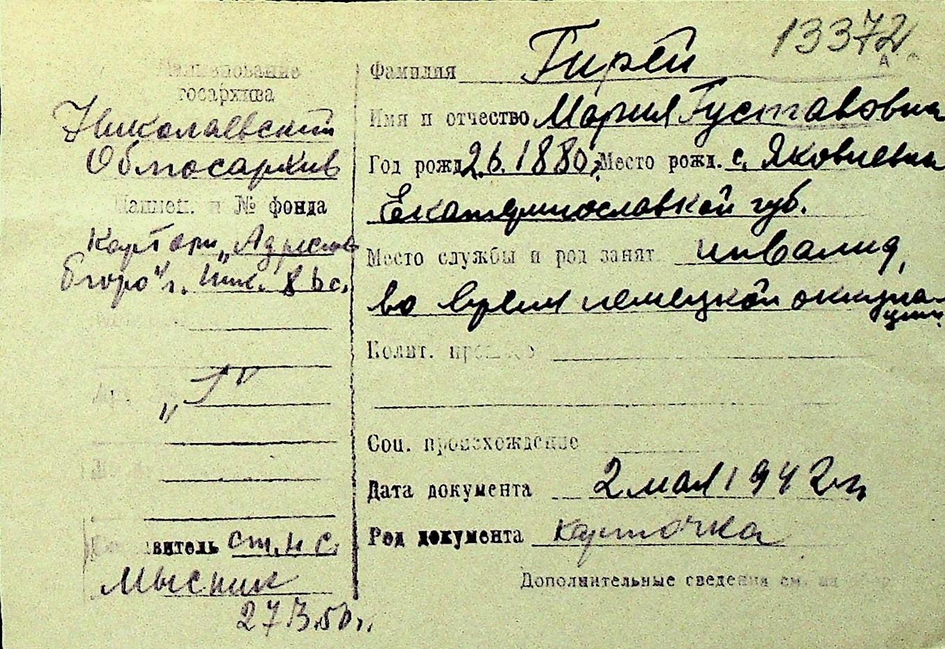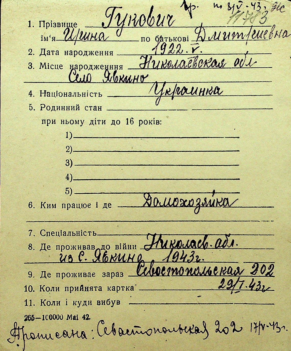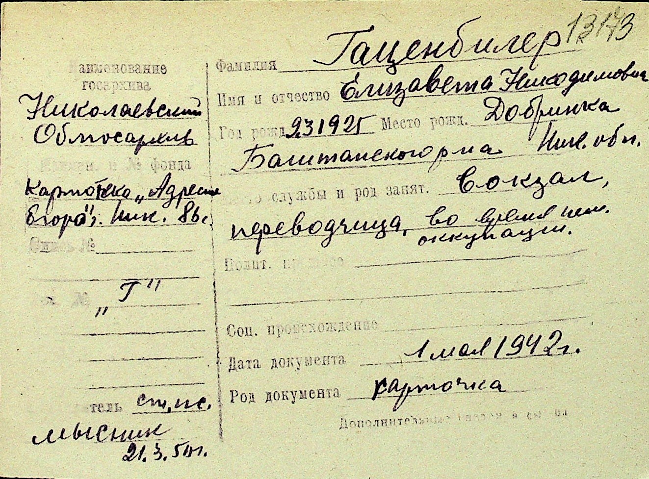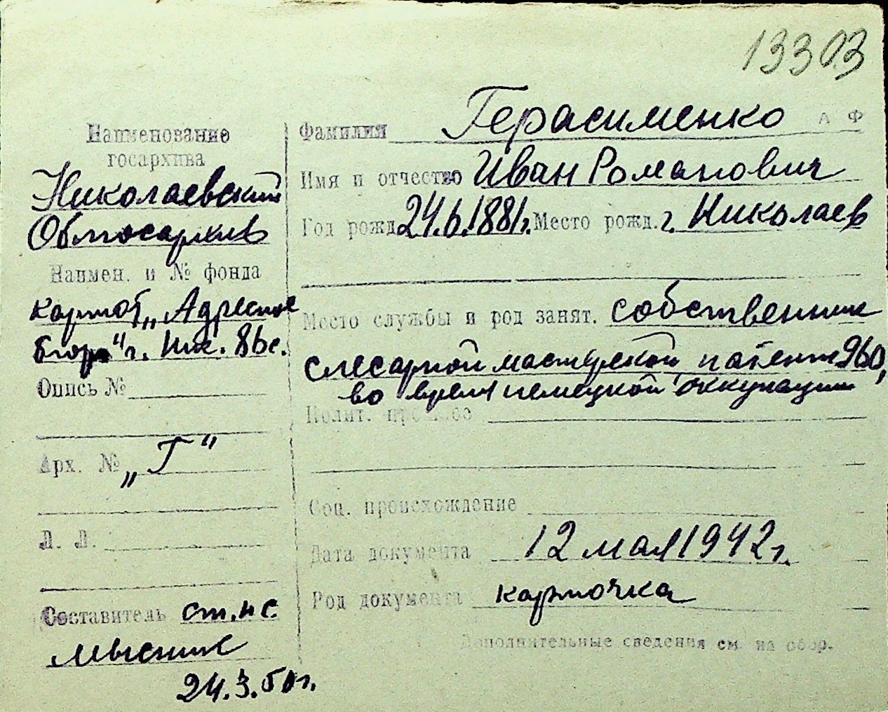 • • Перелік карток до фонду № Н-1016