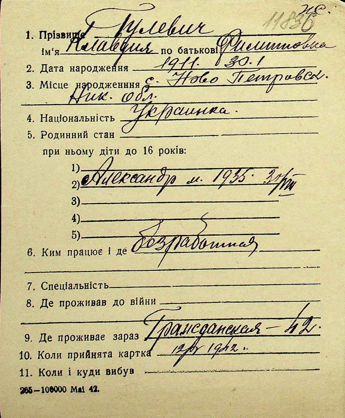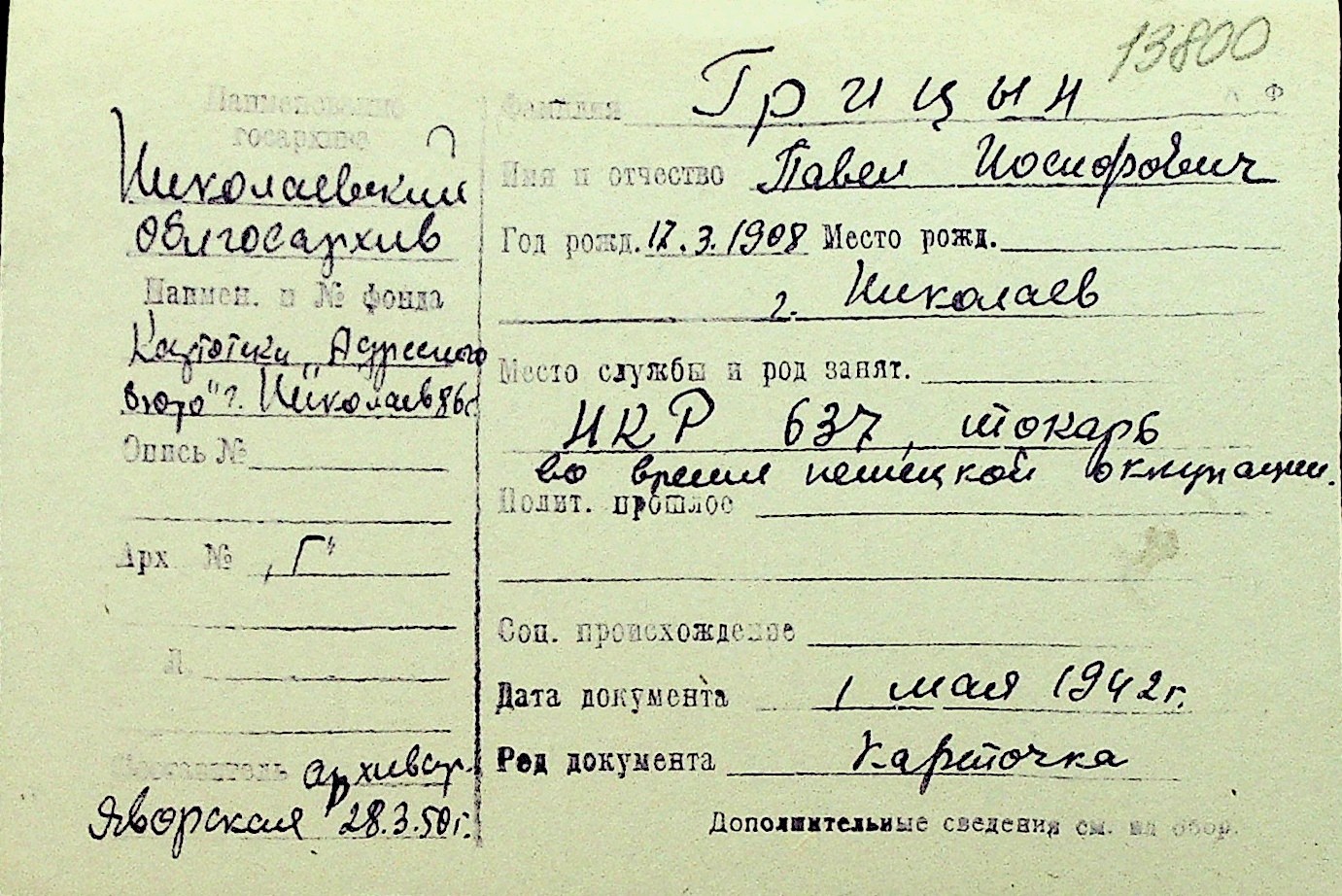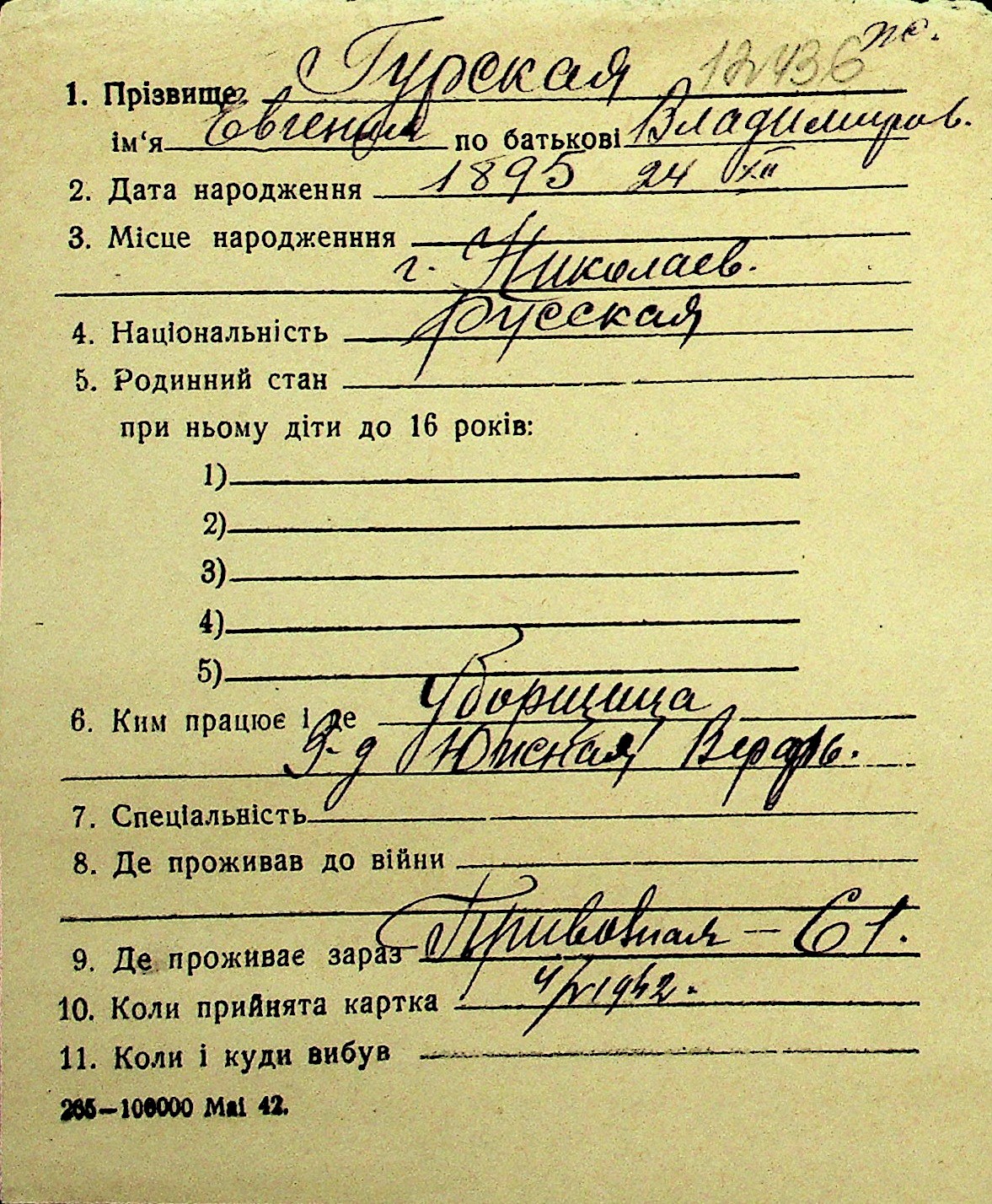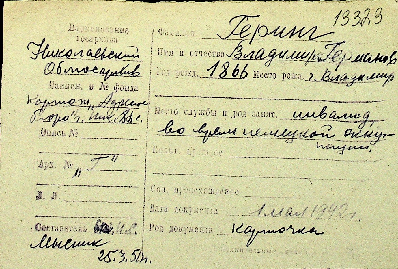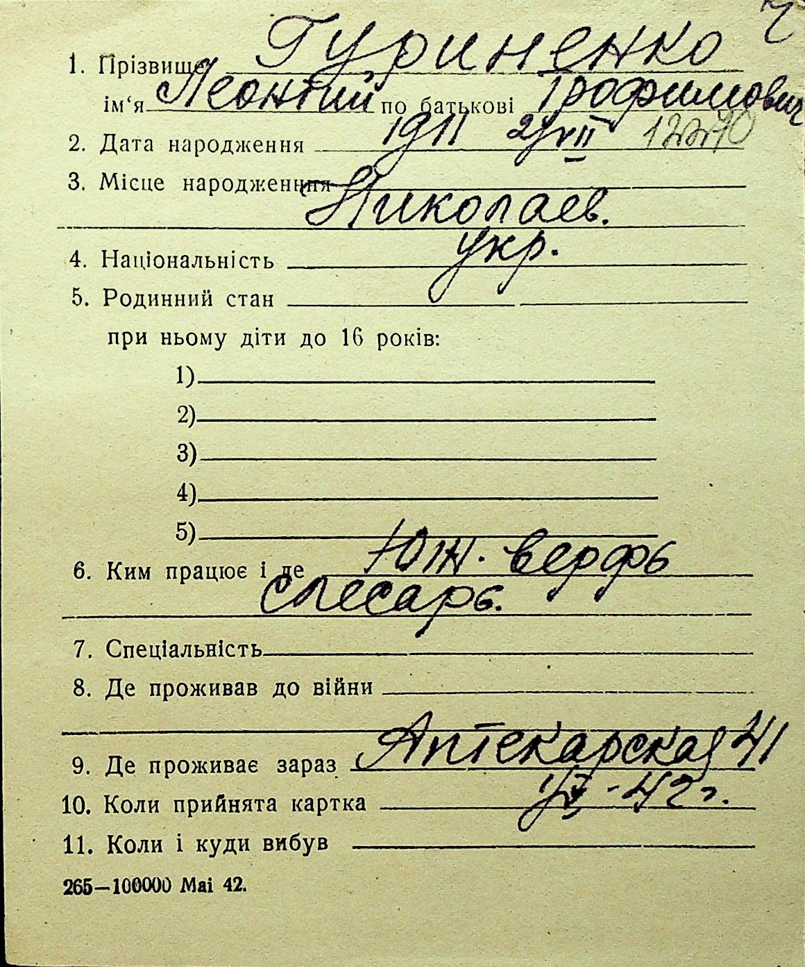 • • Перелік карток до фонду № Н-1016