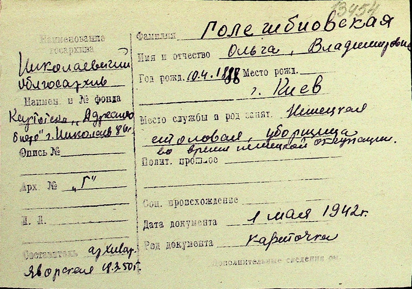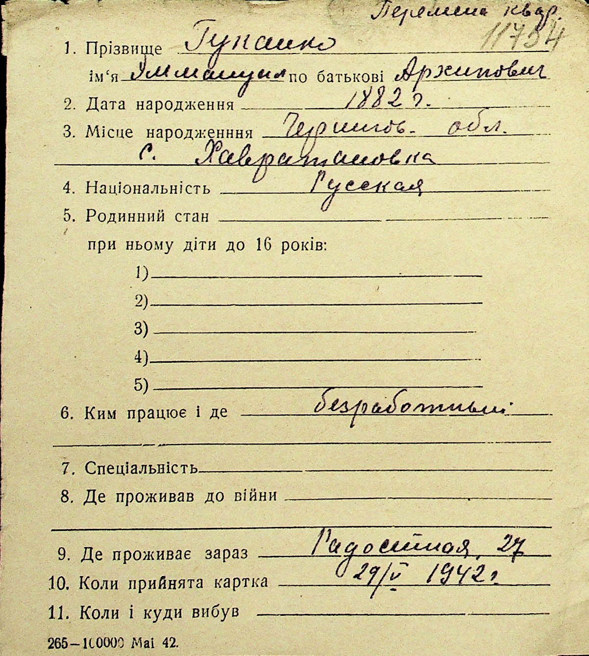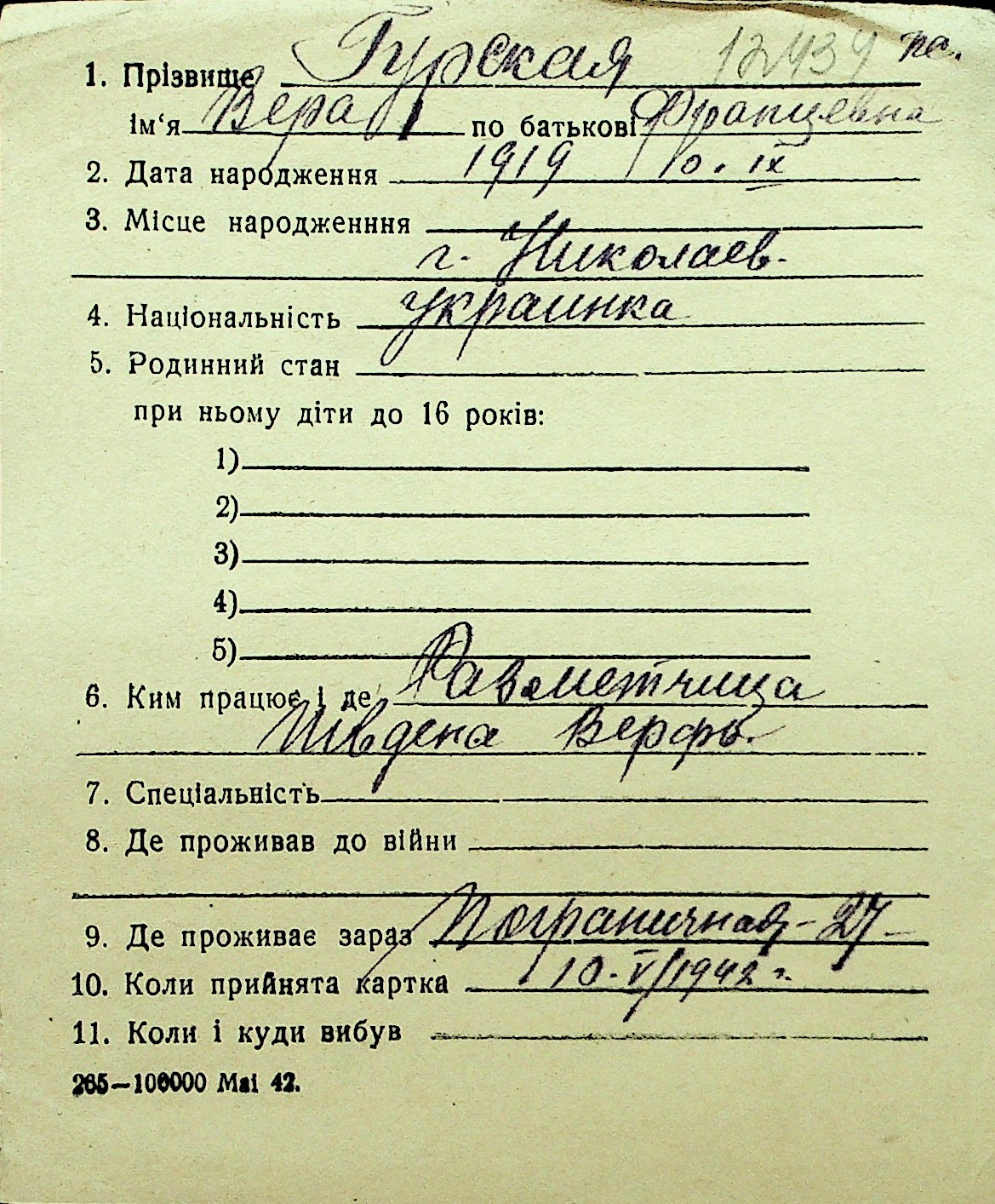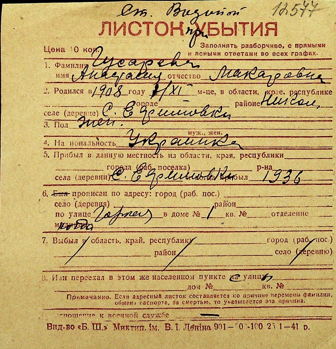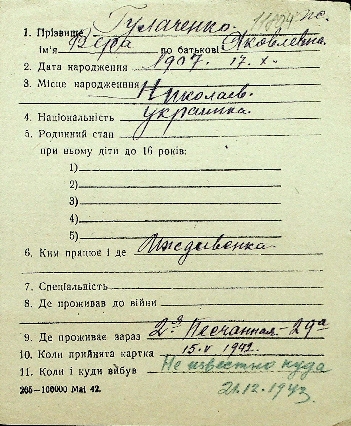 • • Перелік карток до фонду № Н-1016