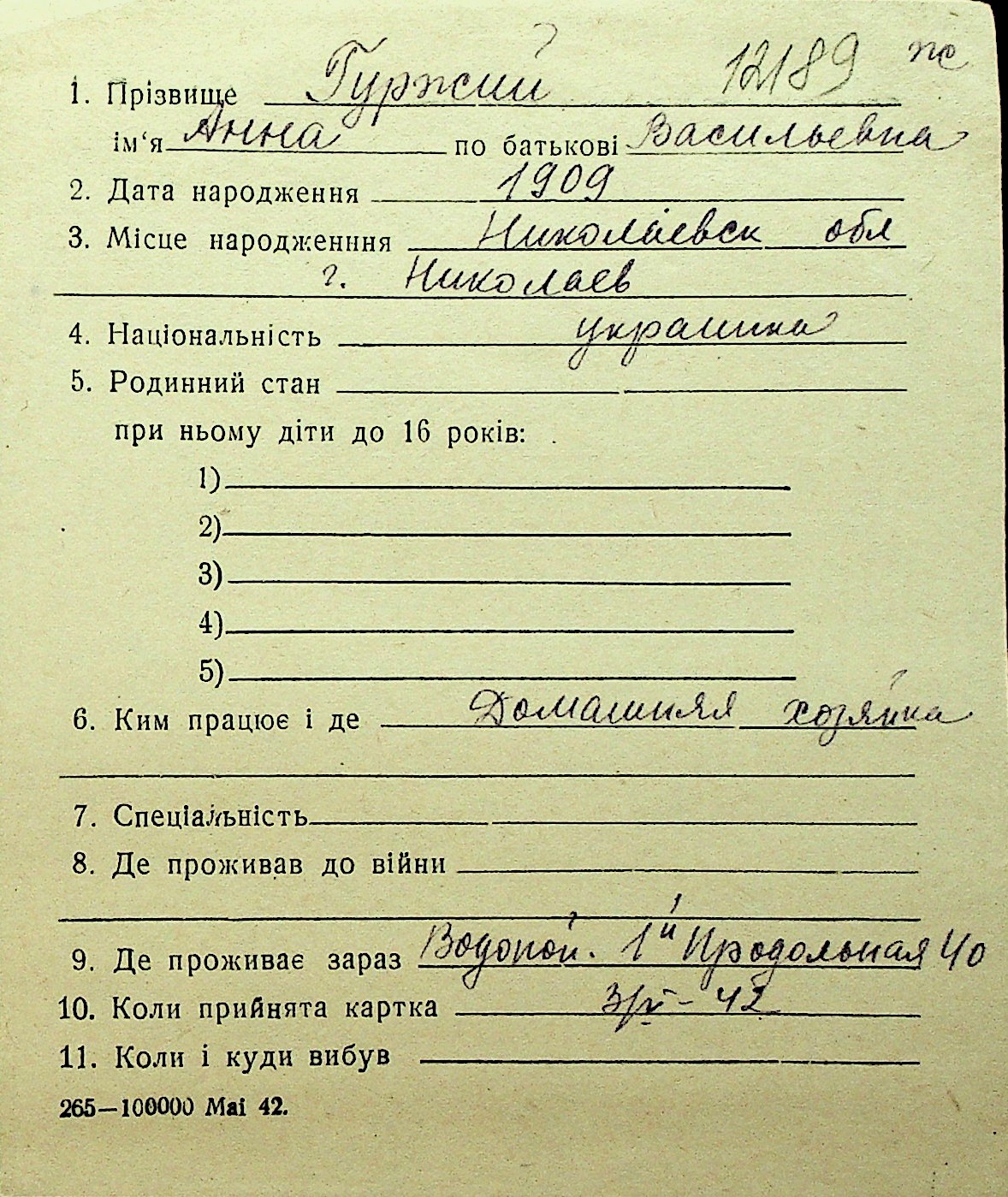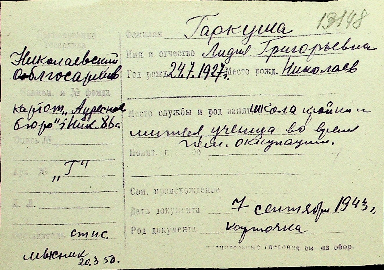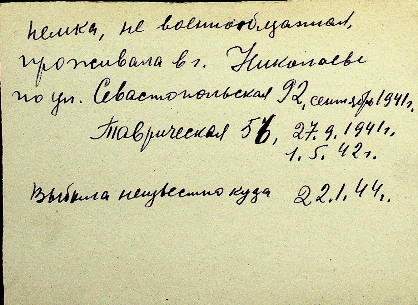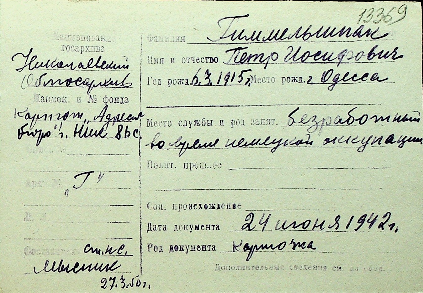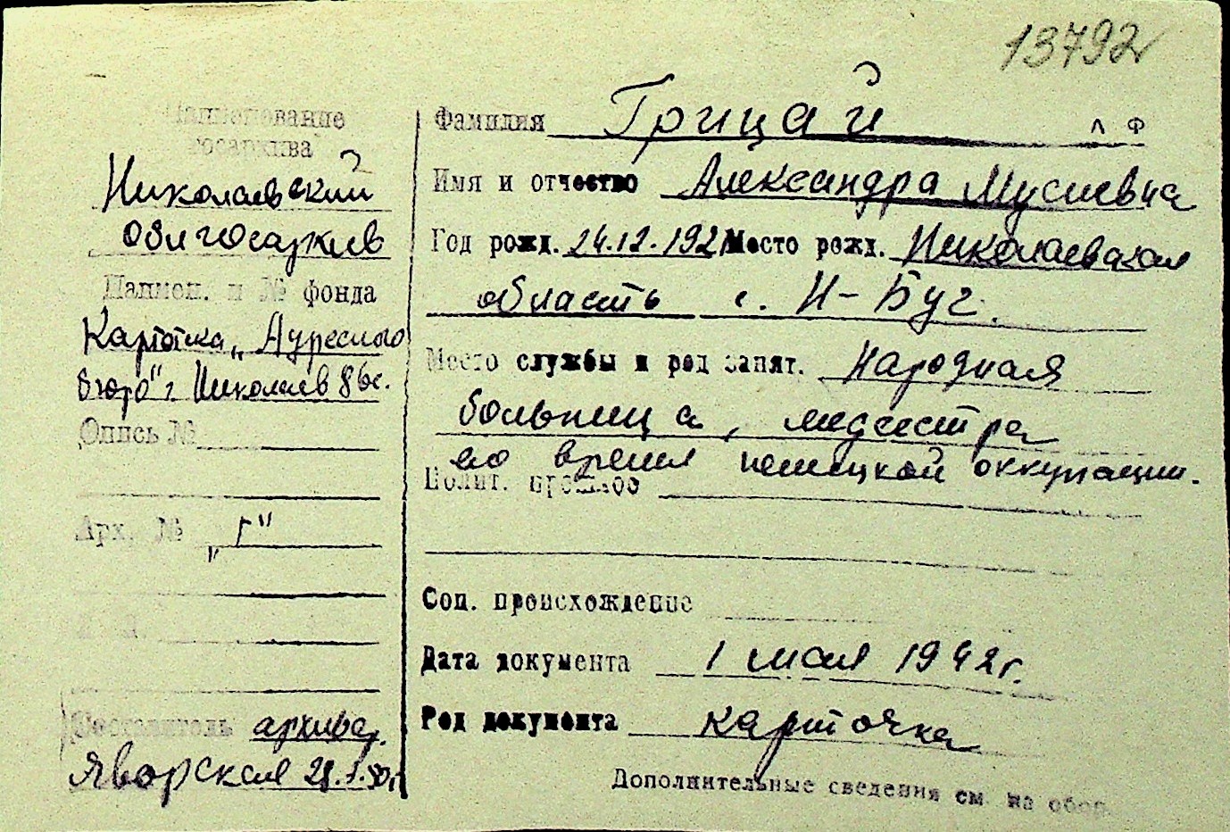 • • Перелік карток до фонду № Н-1016