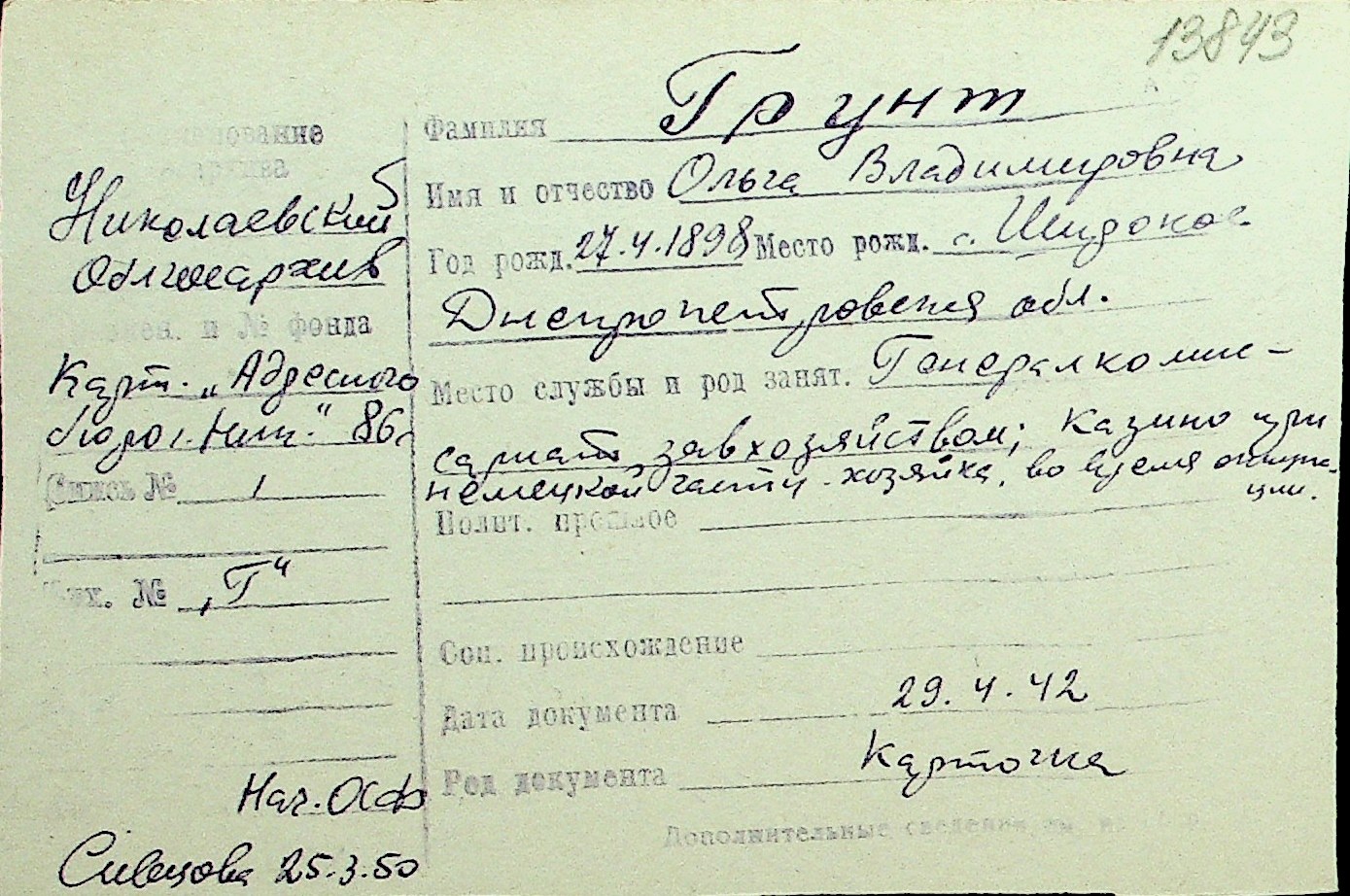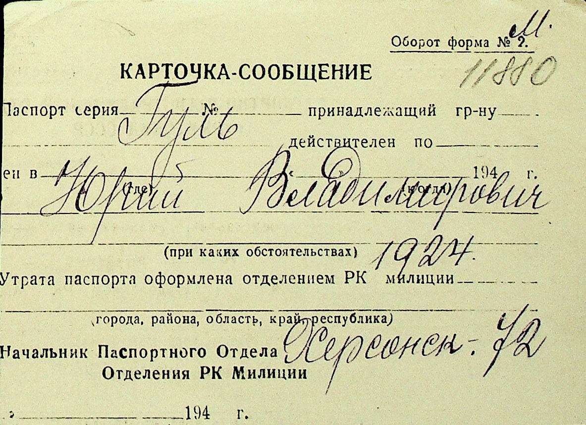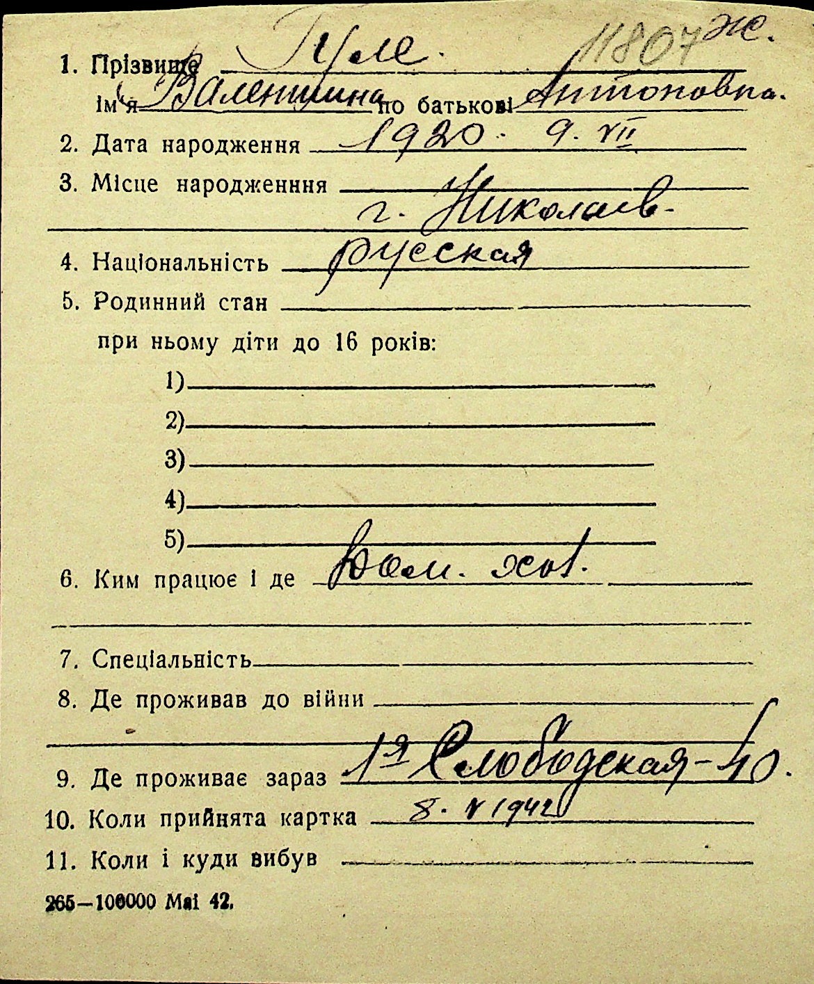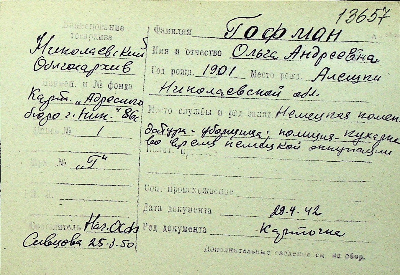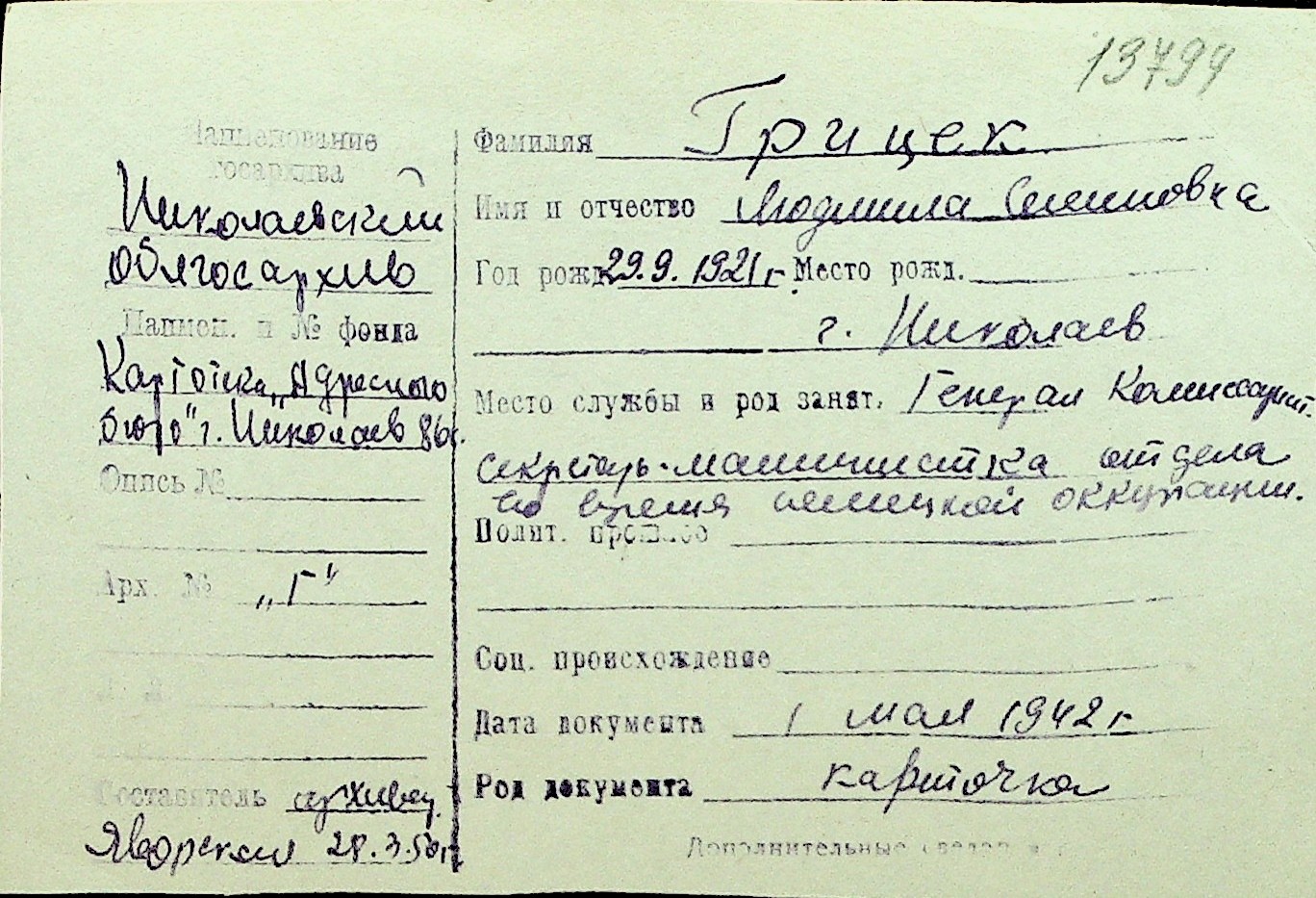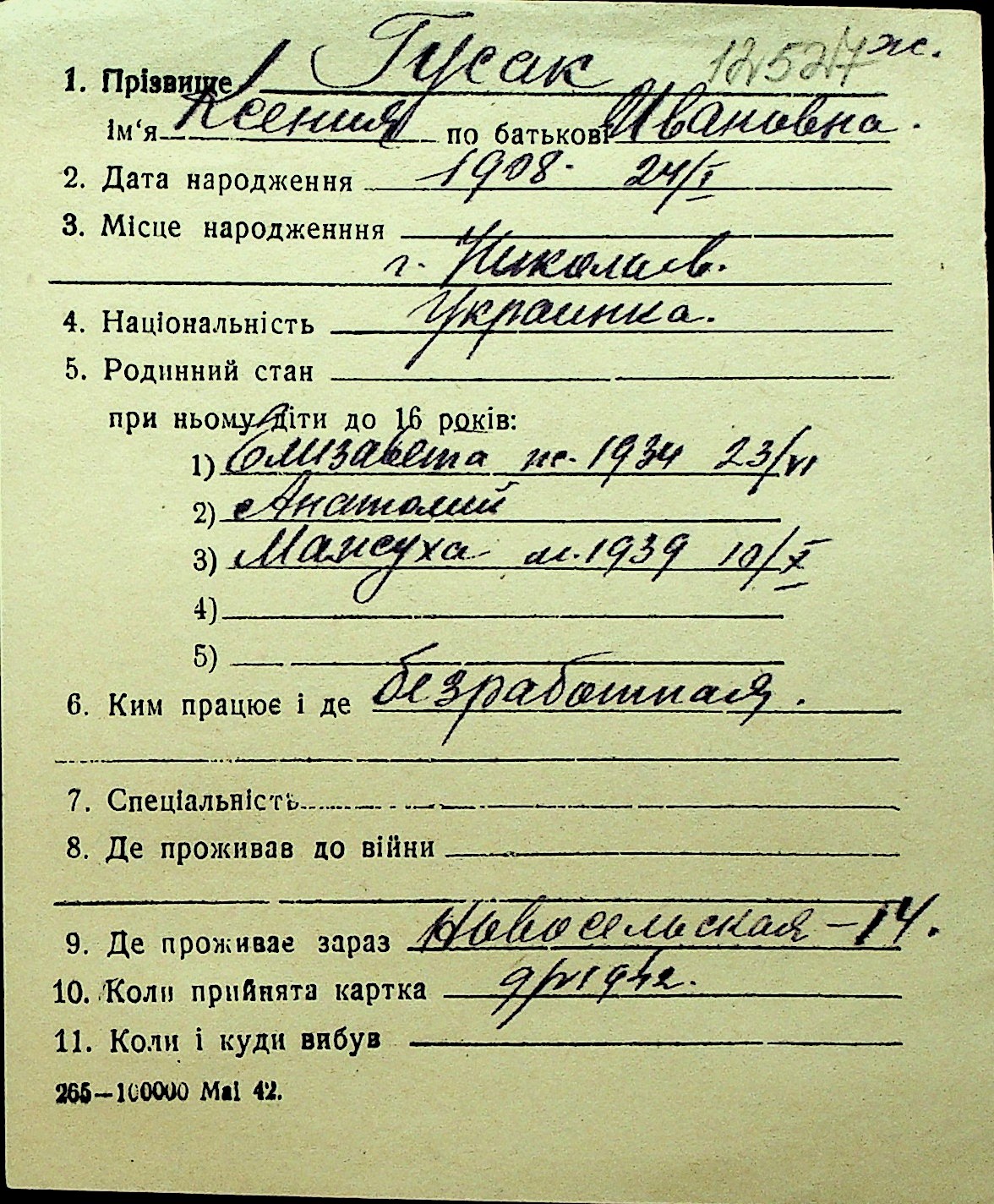 • • Перелік карток до фонду № Н-1016