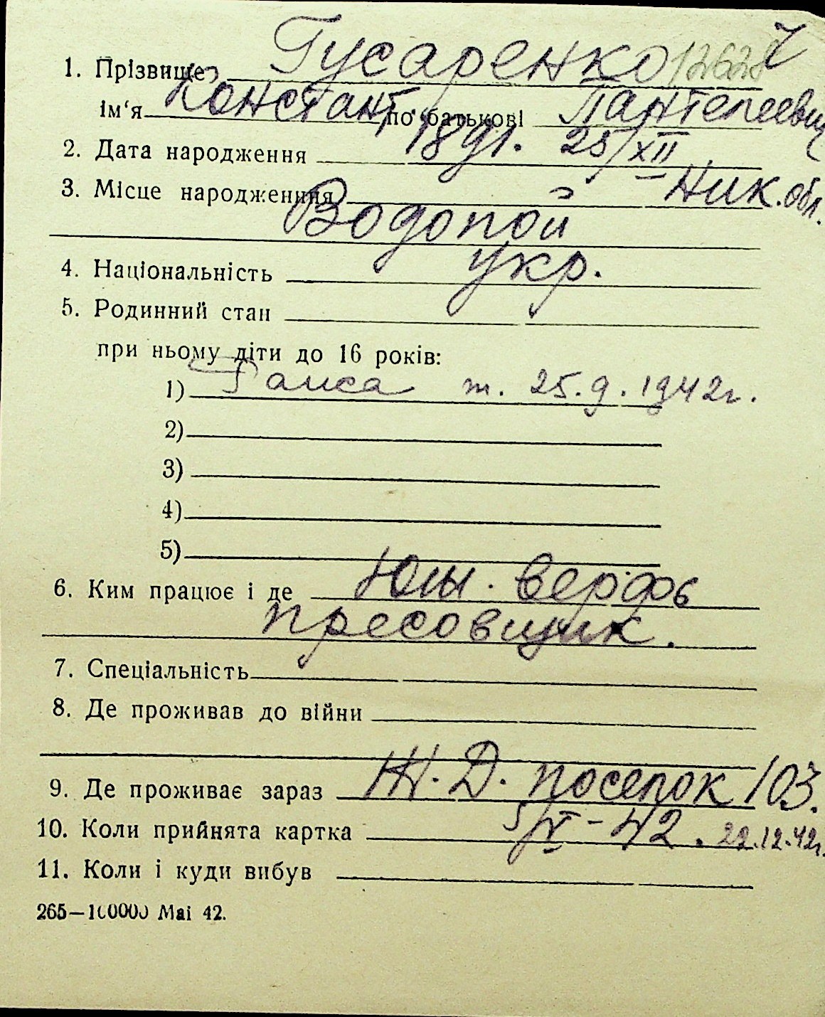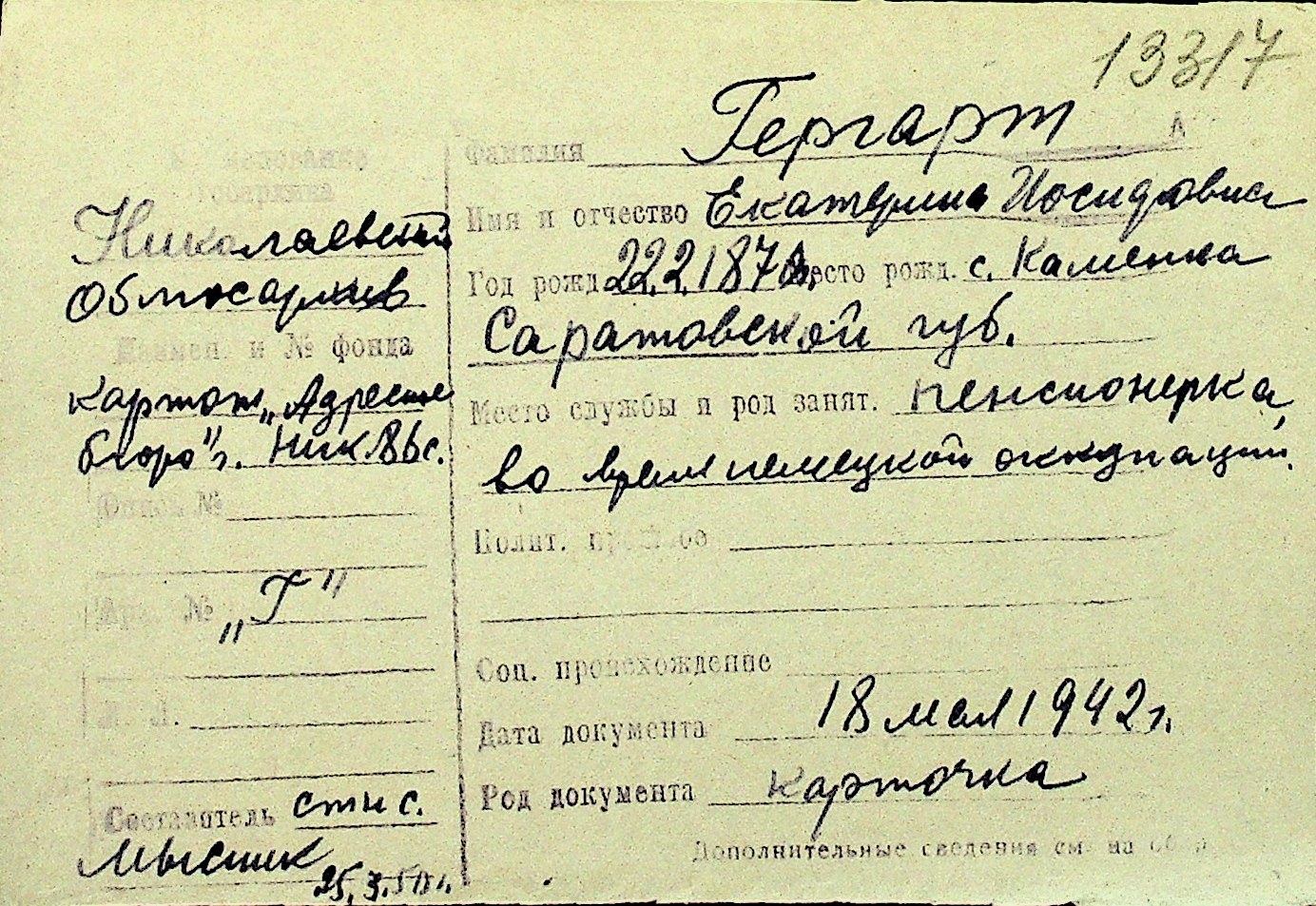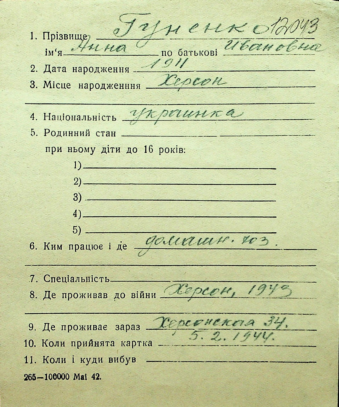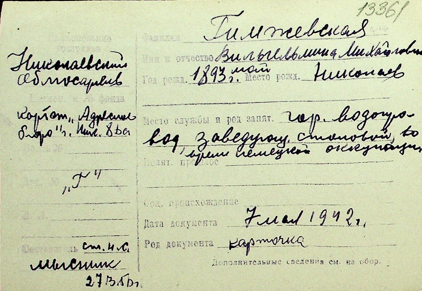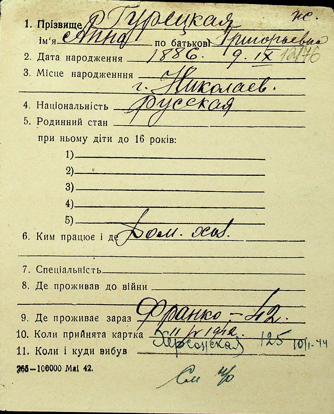 • • Перелік карток до фонду № Н-1016