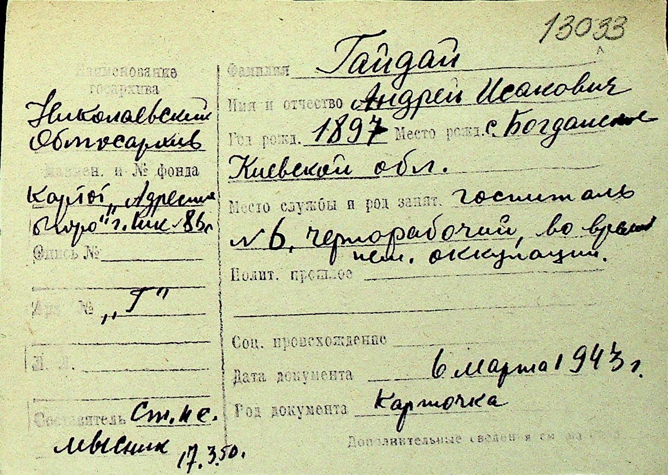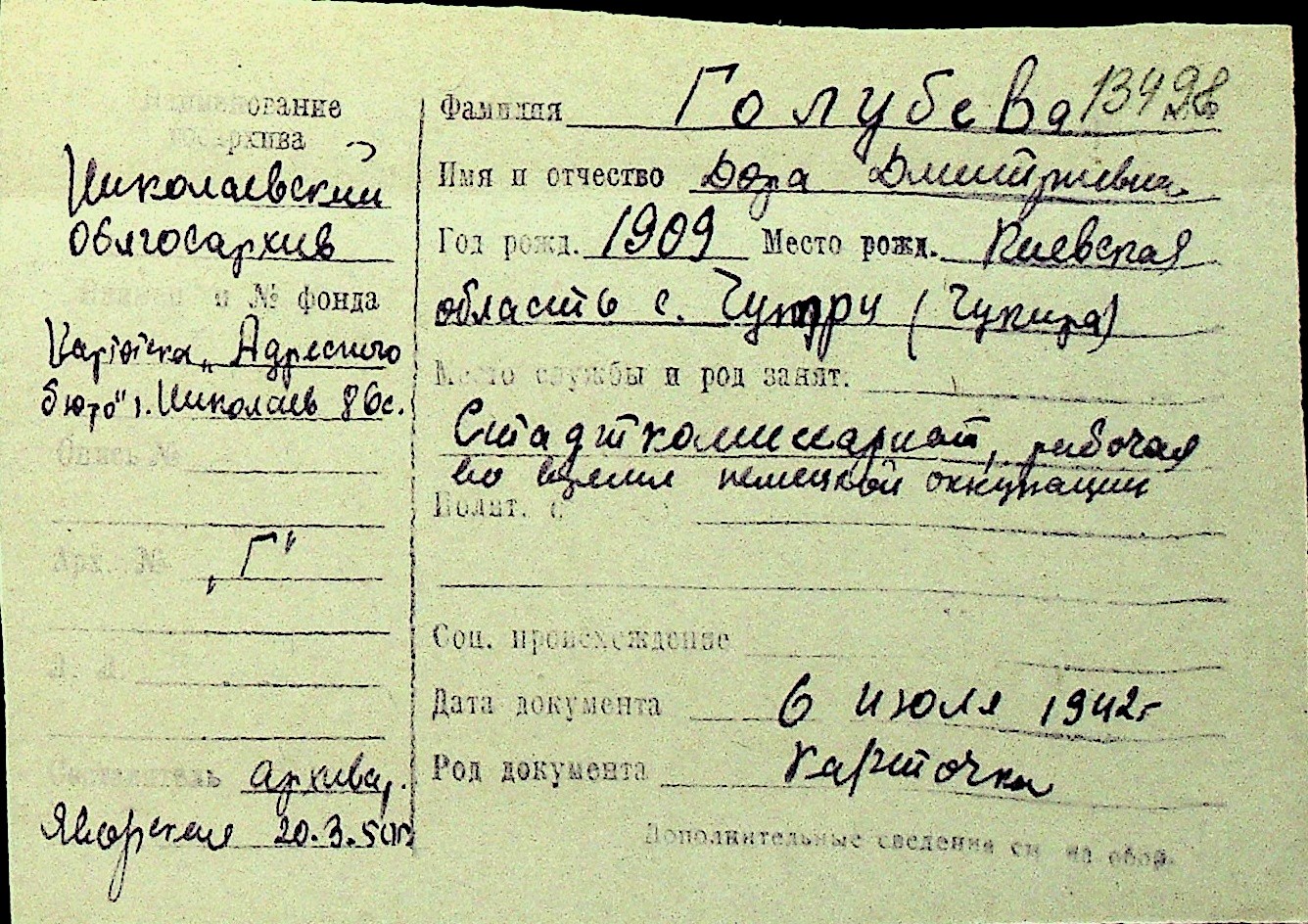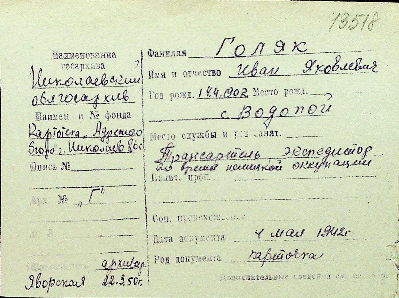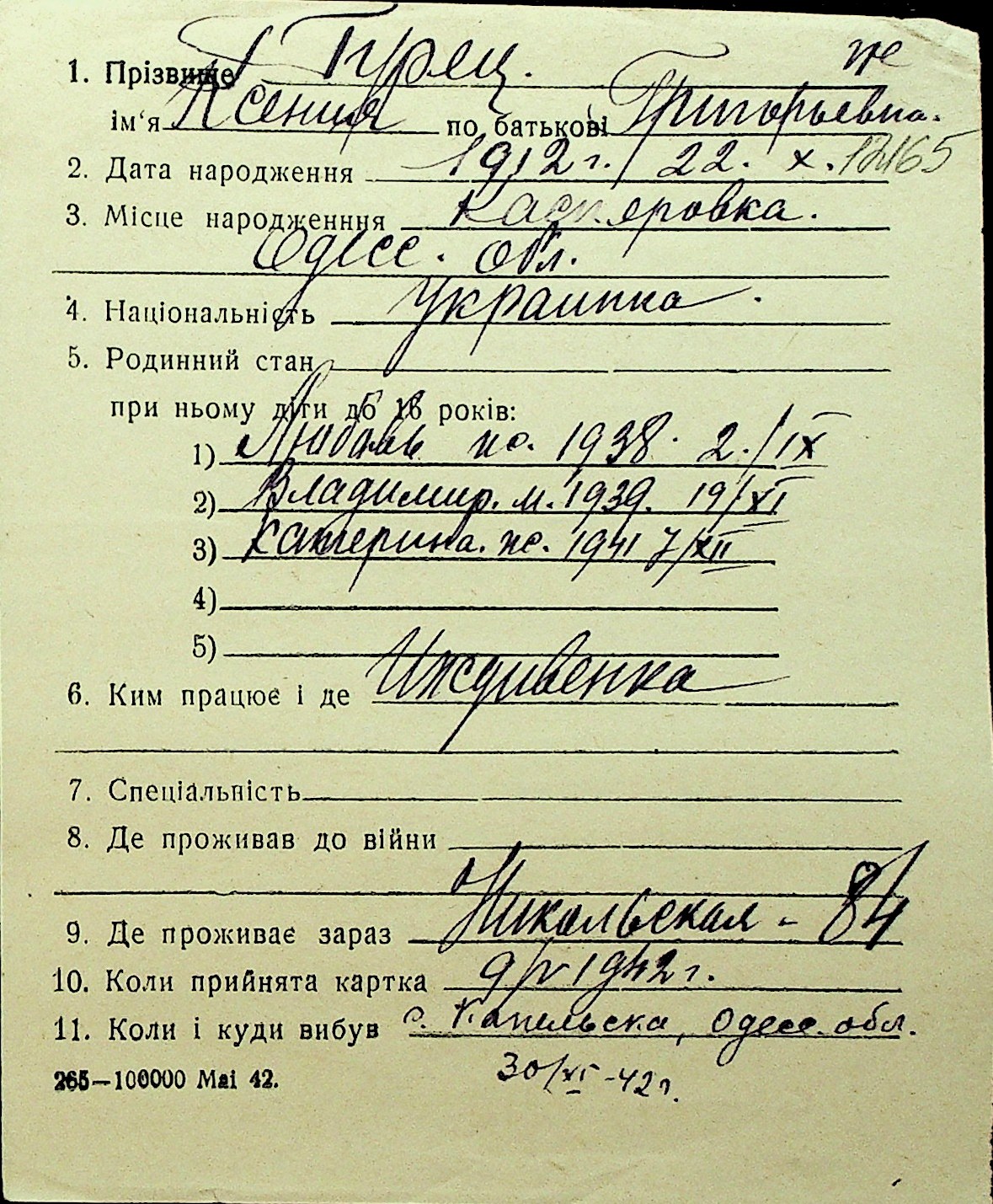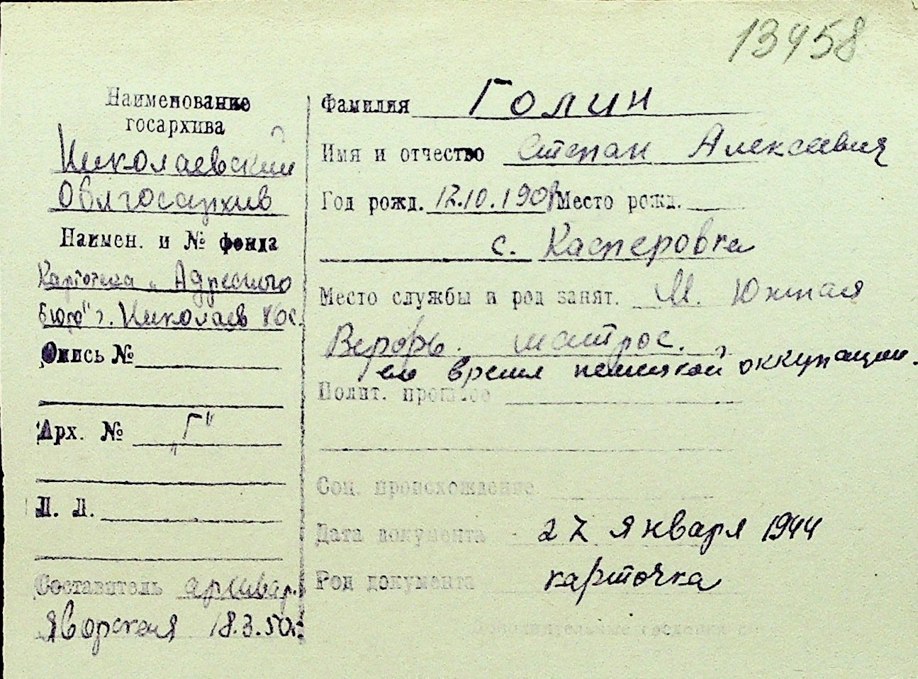 • • Перелік карток до фонду № Н-1016