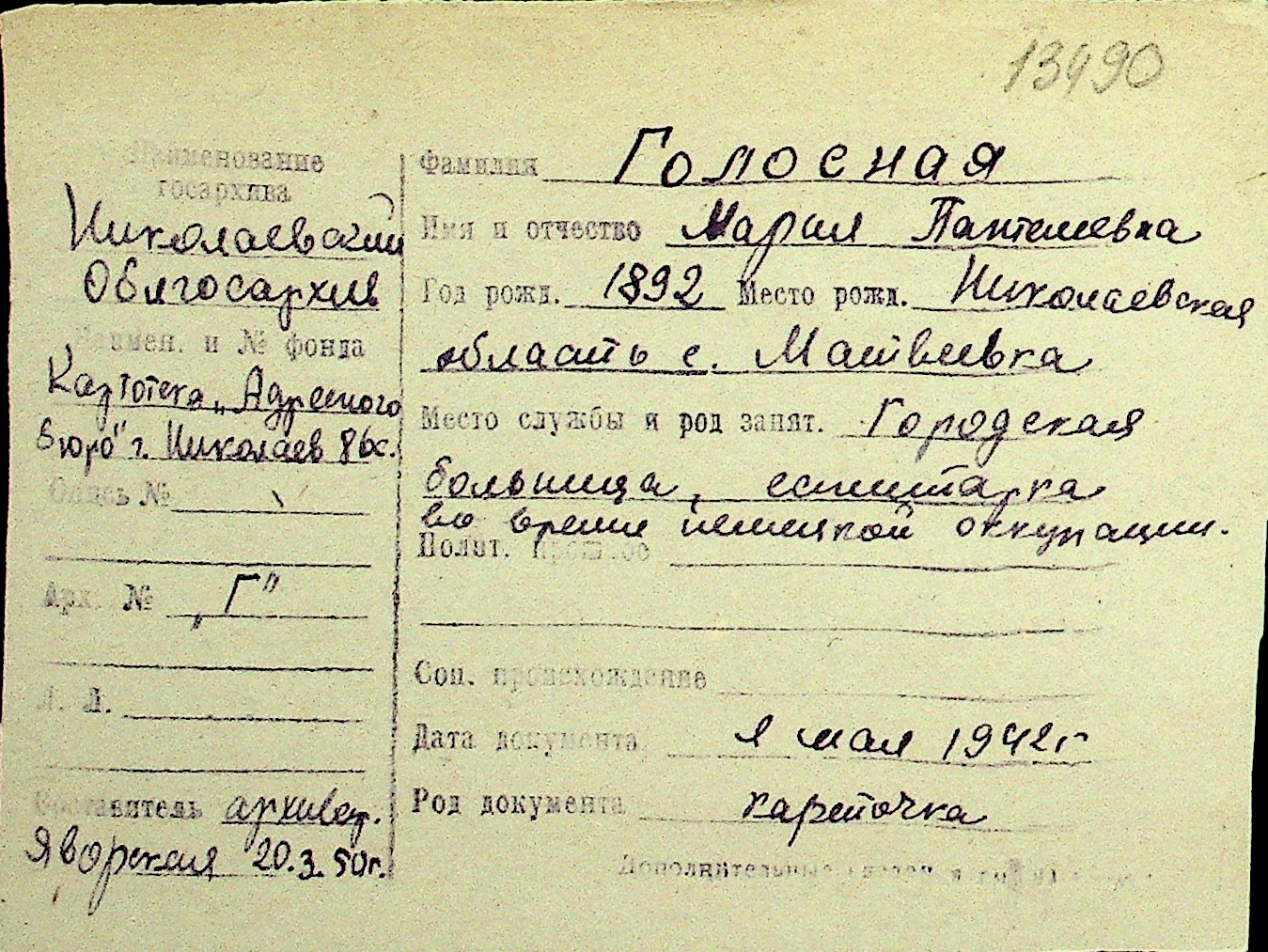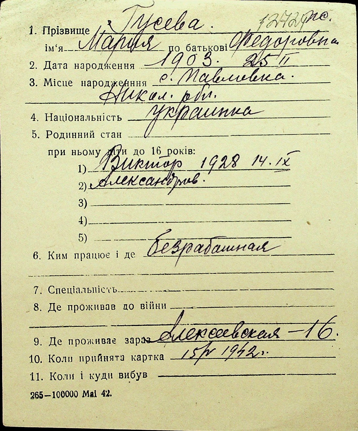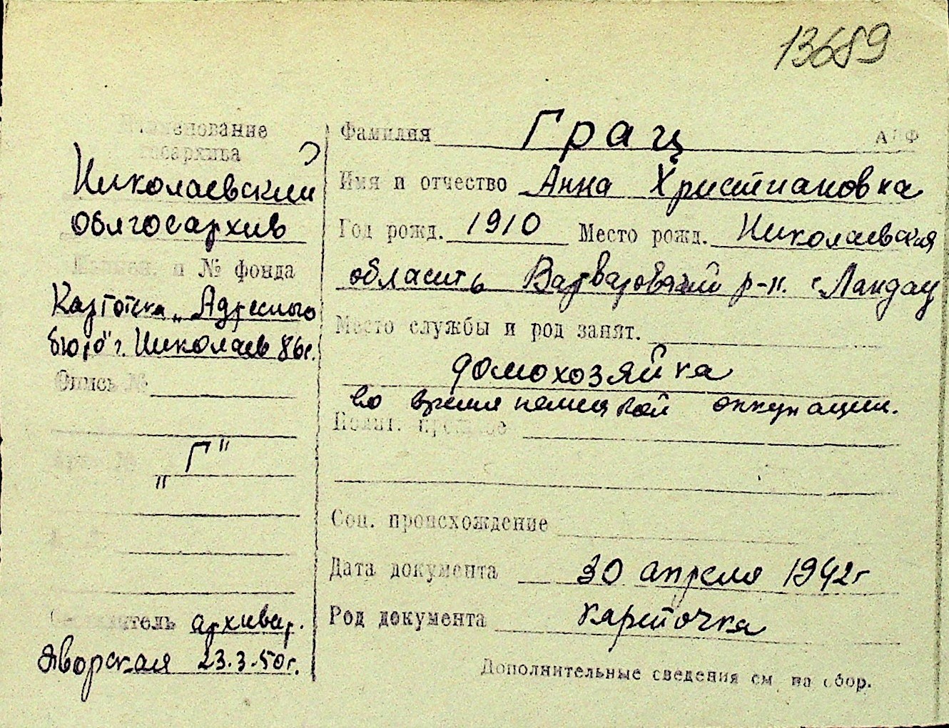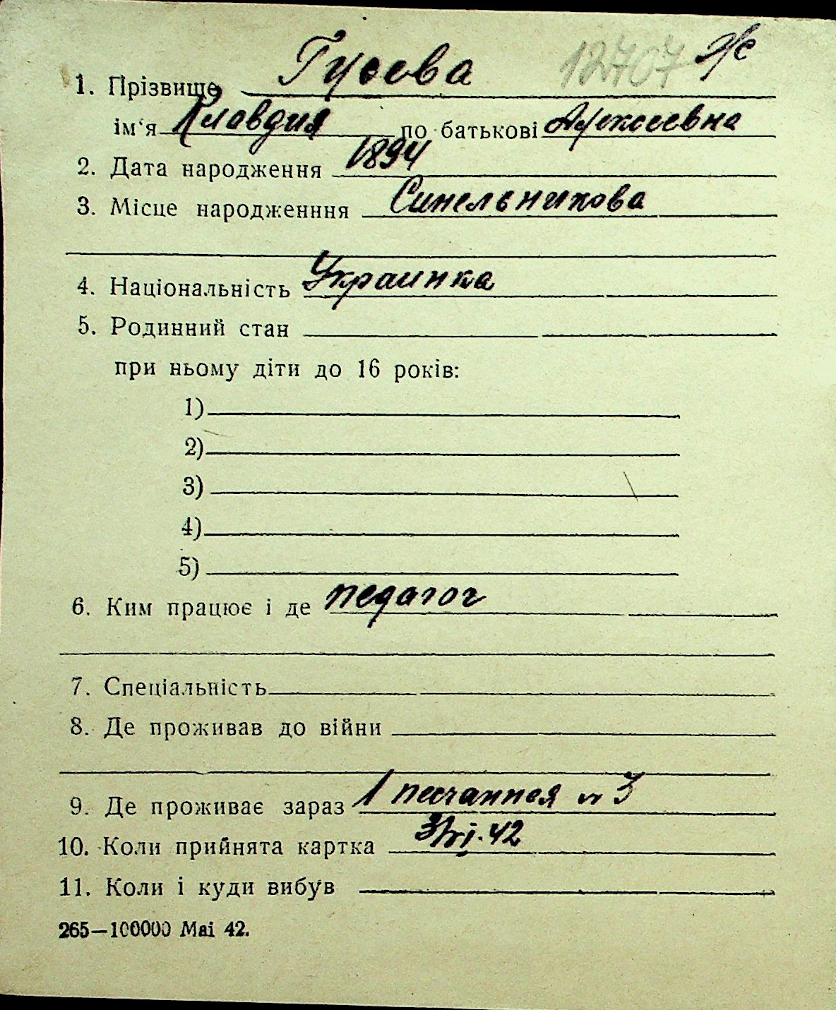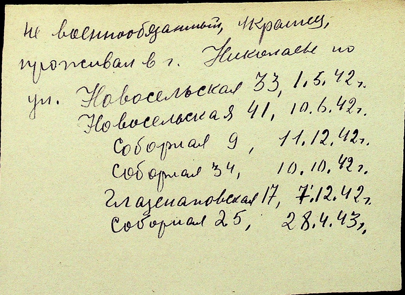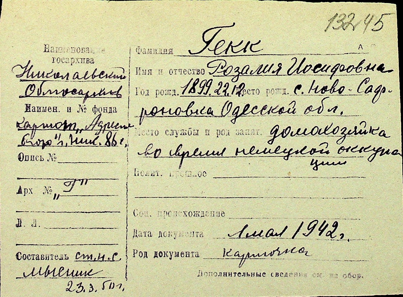 • • Перелік карток до фонду № Н-1016