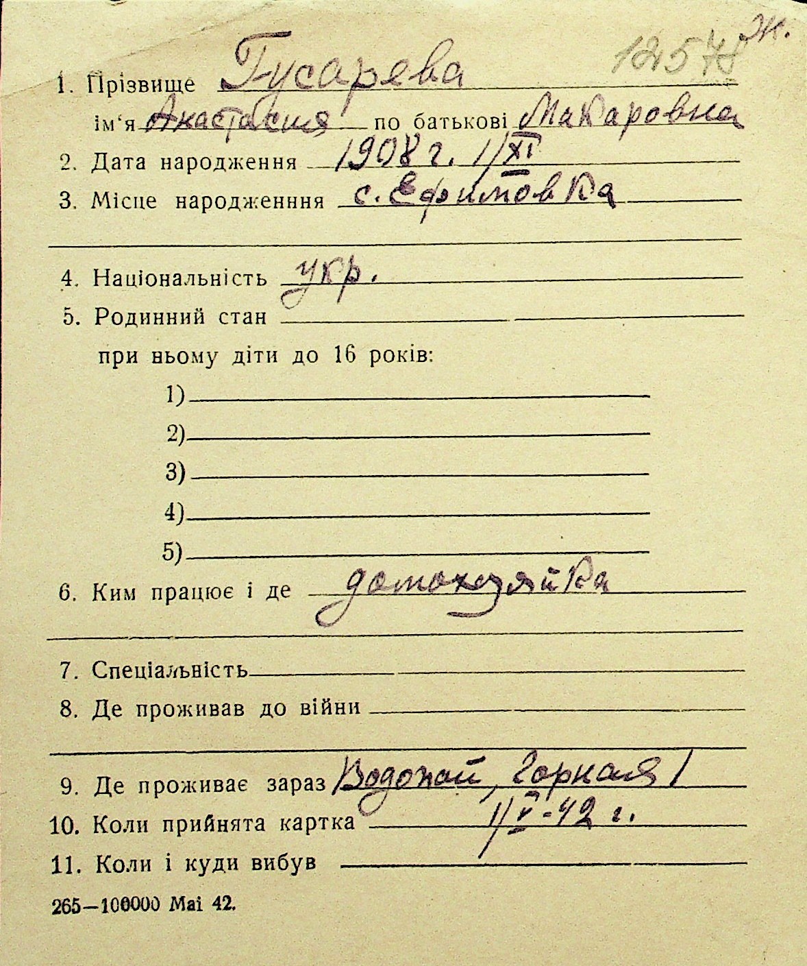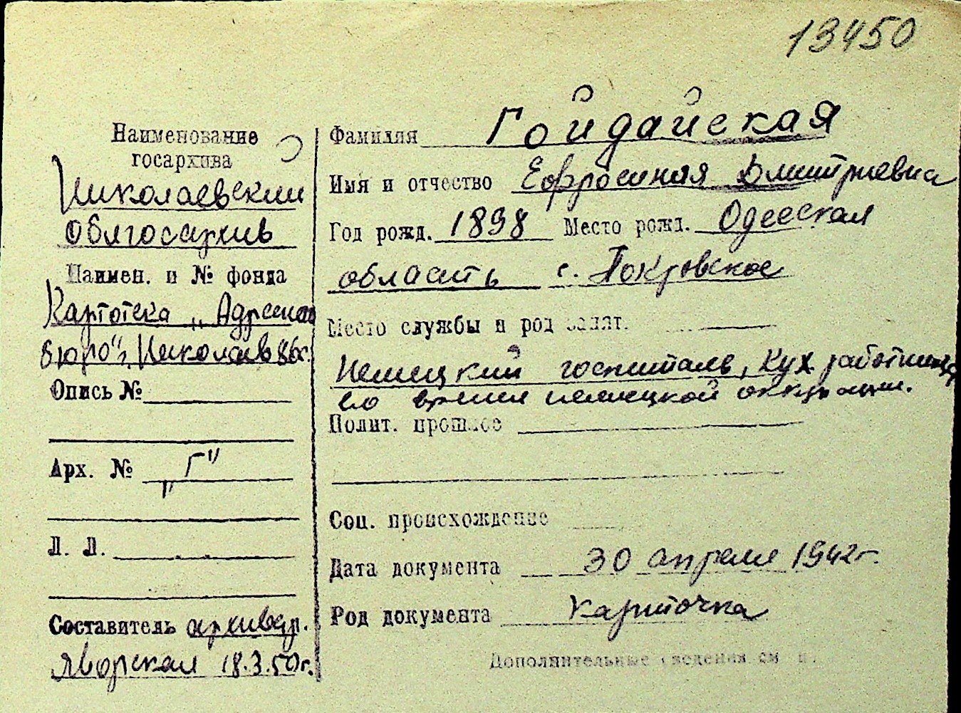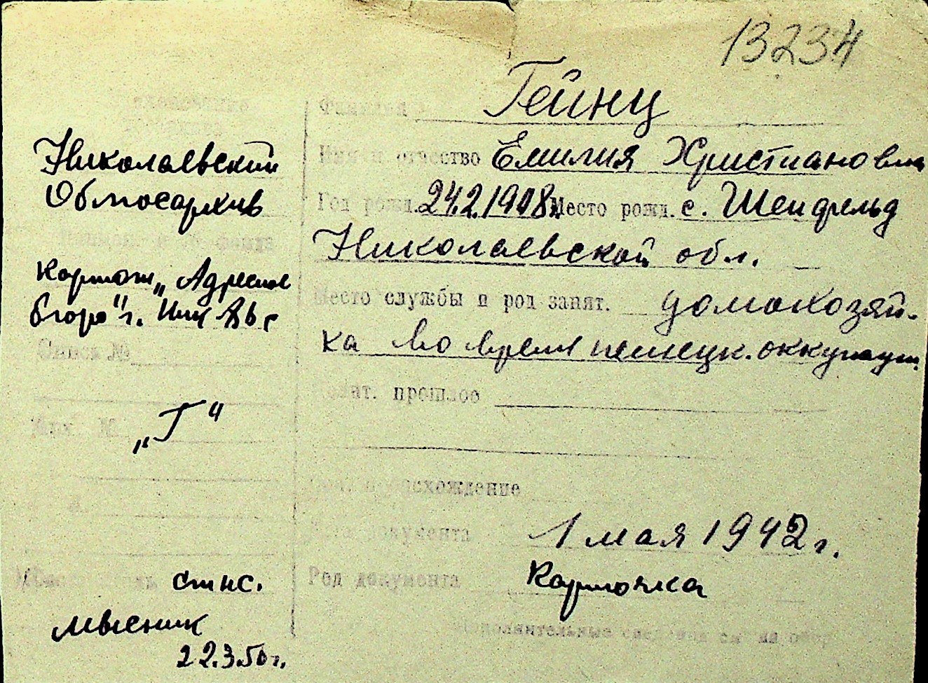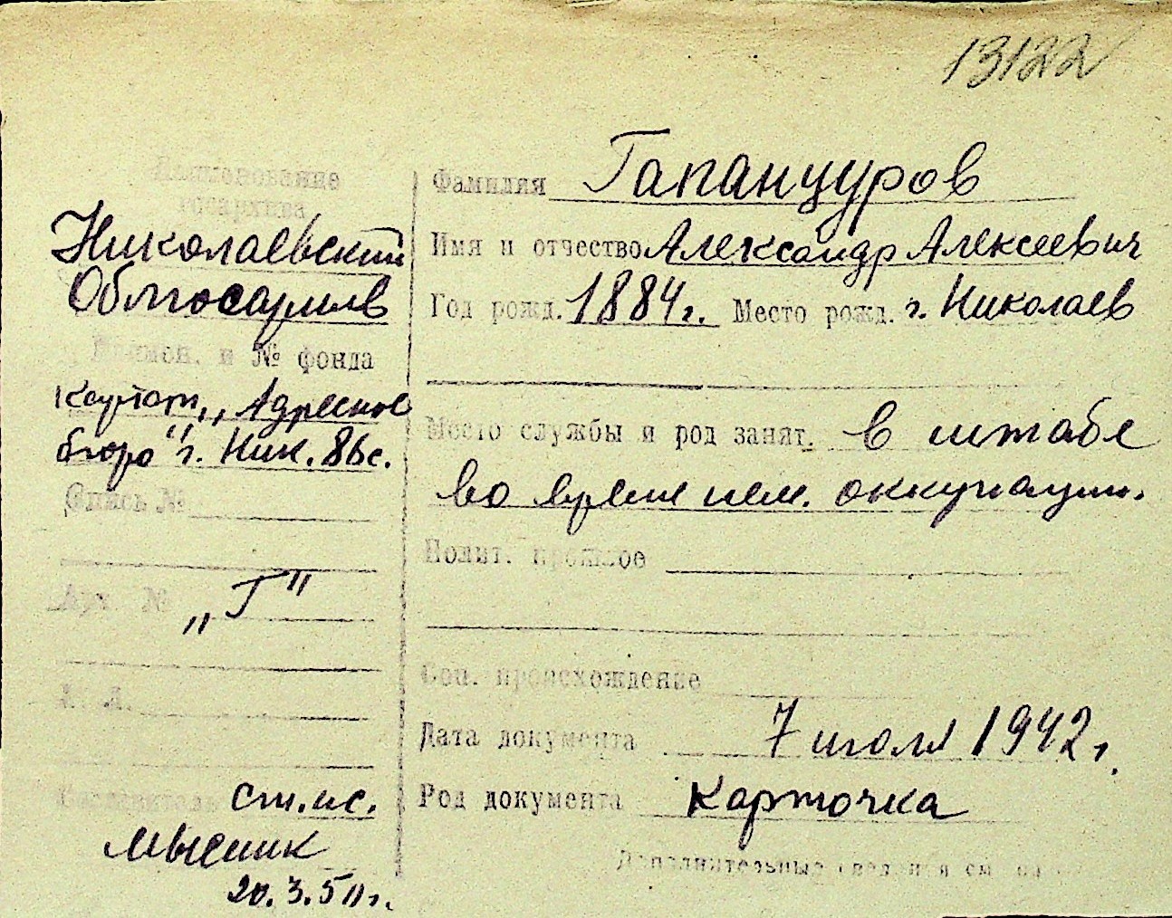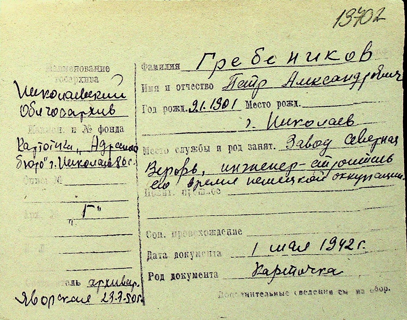 • • Перелік карток до фонду № Н-1016