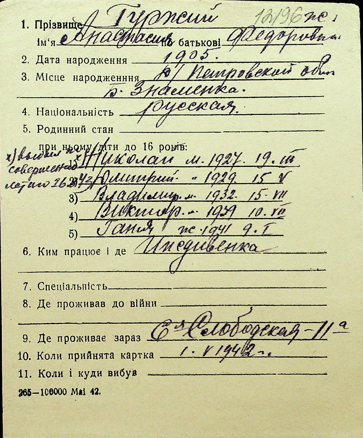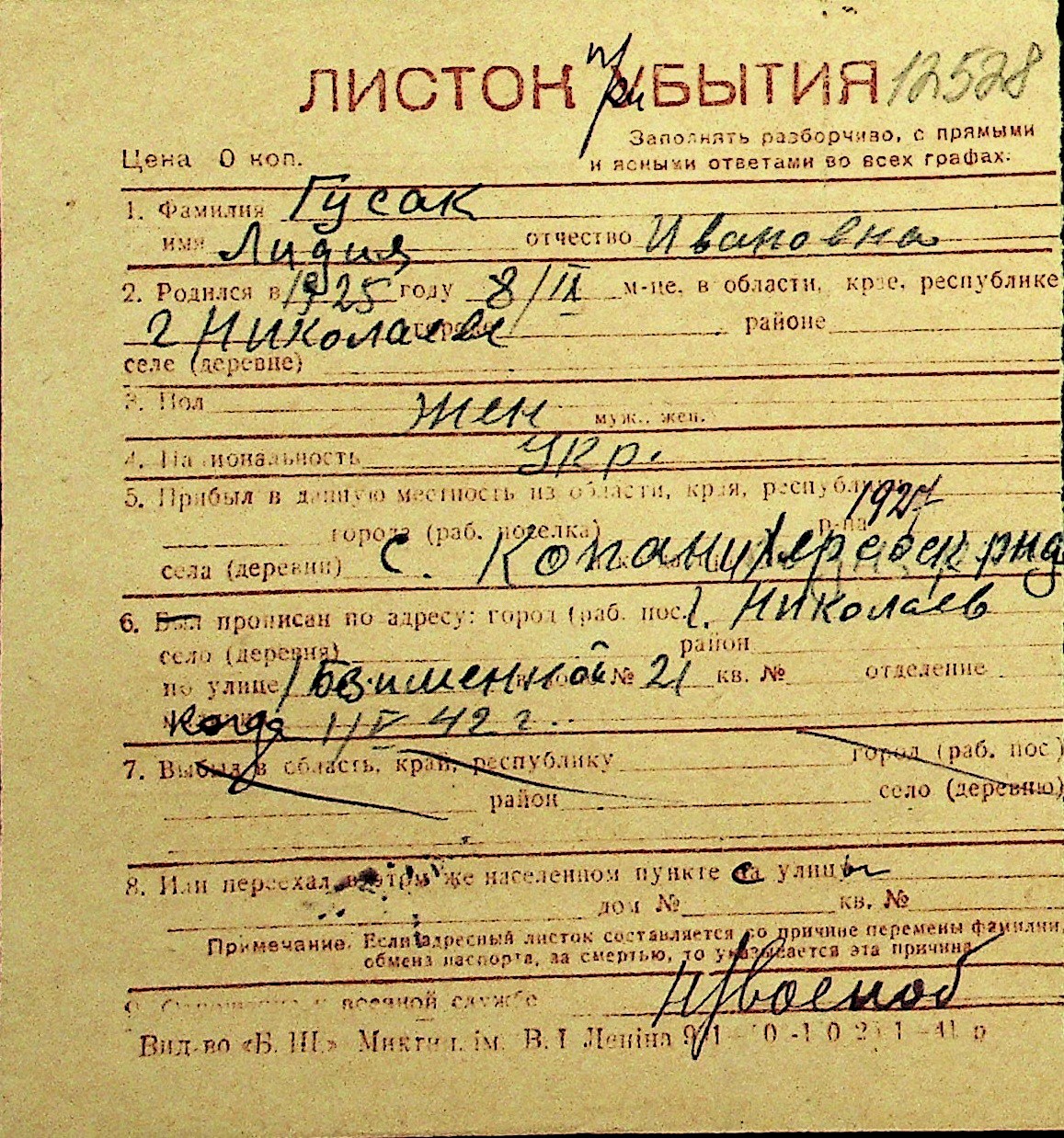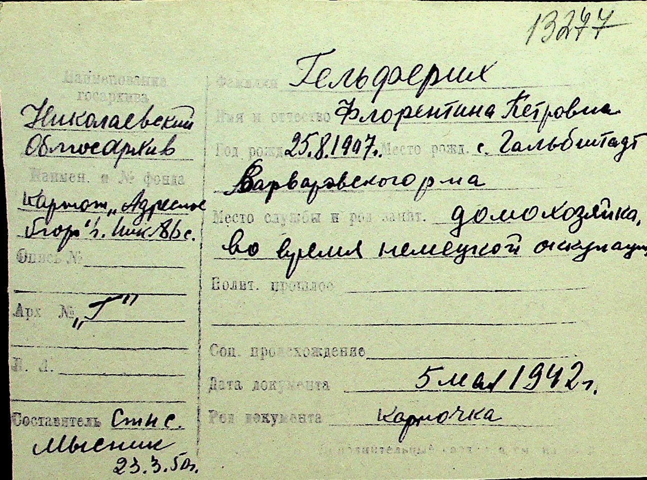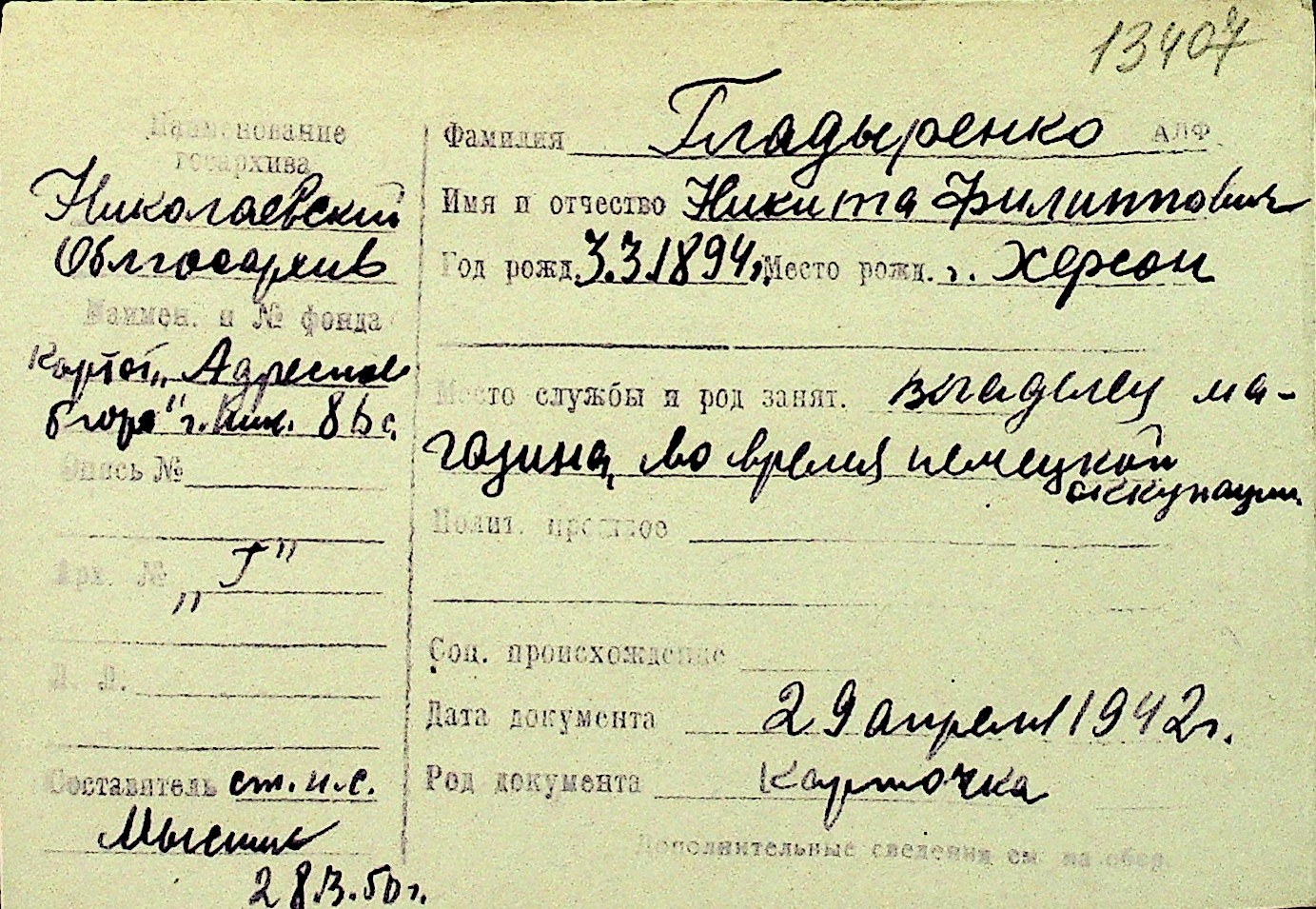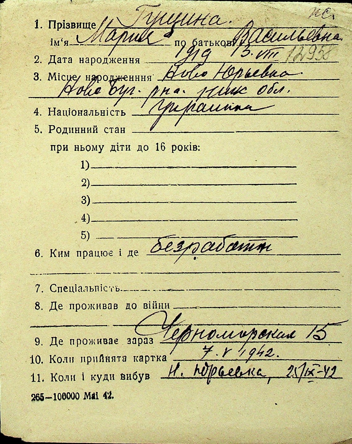 • • Перелік карток до фонду № Н-1016