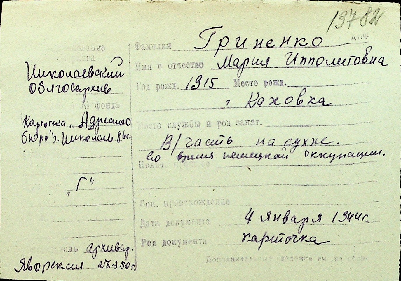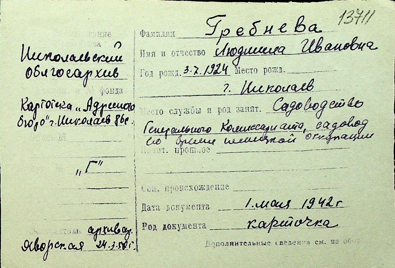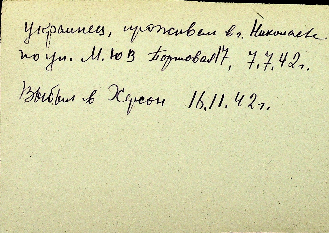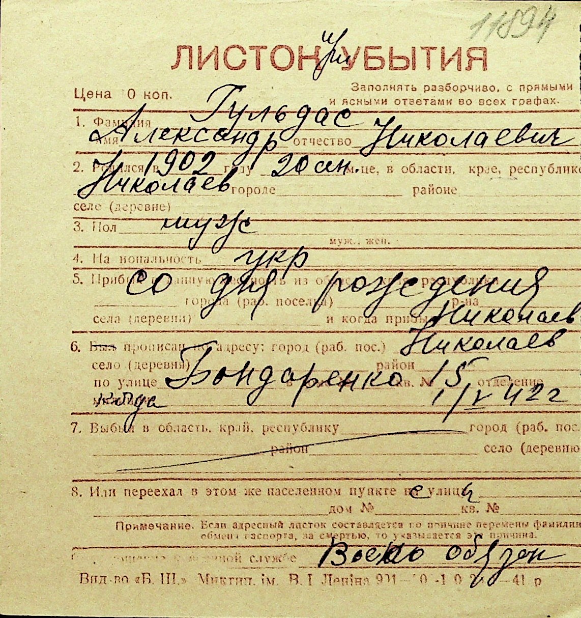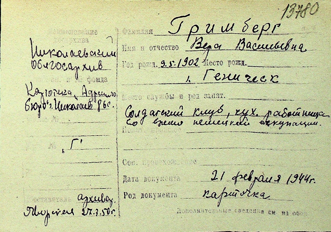 • • Перелік карток до фонду № Н-1016