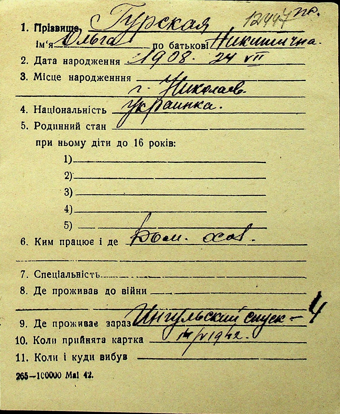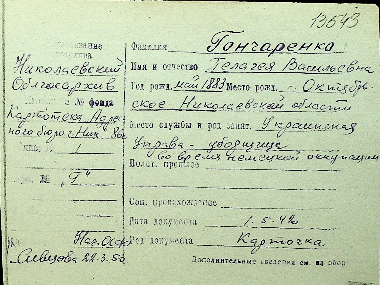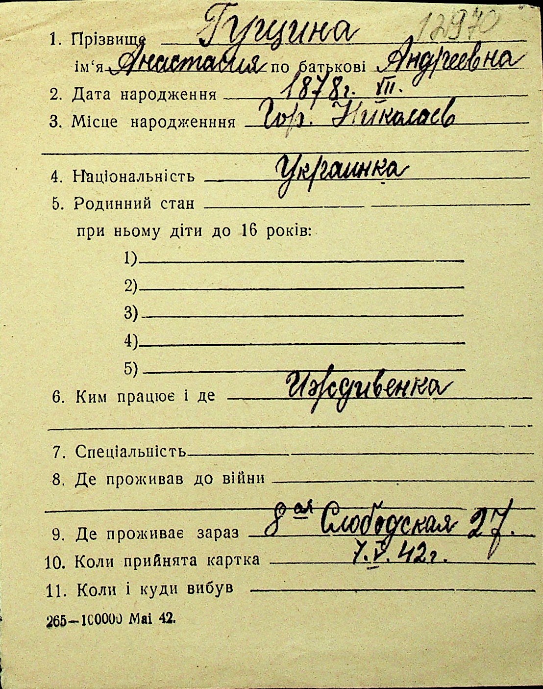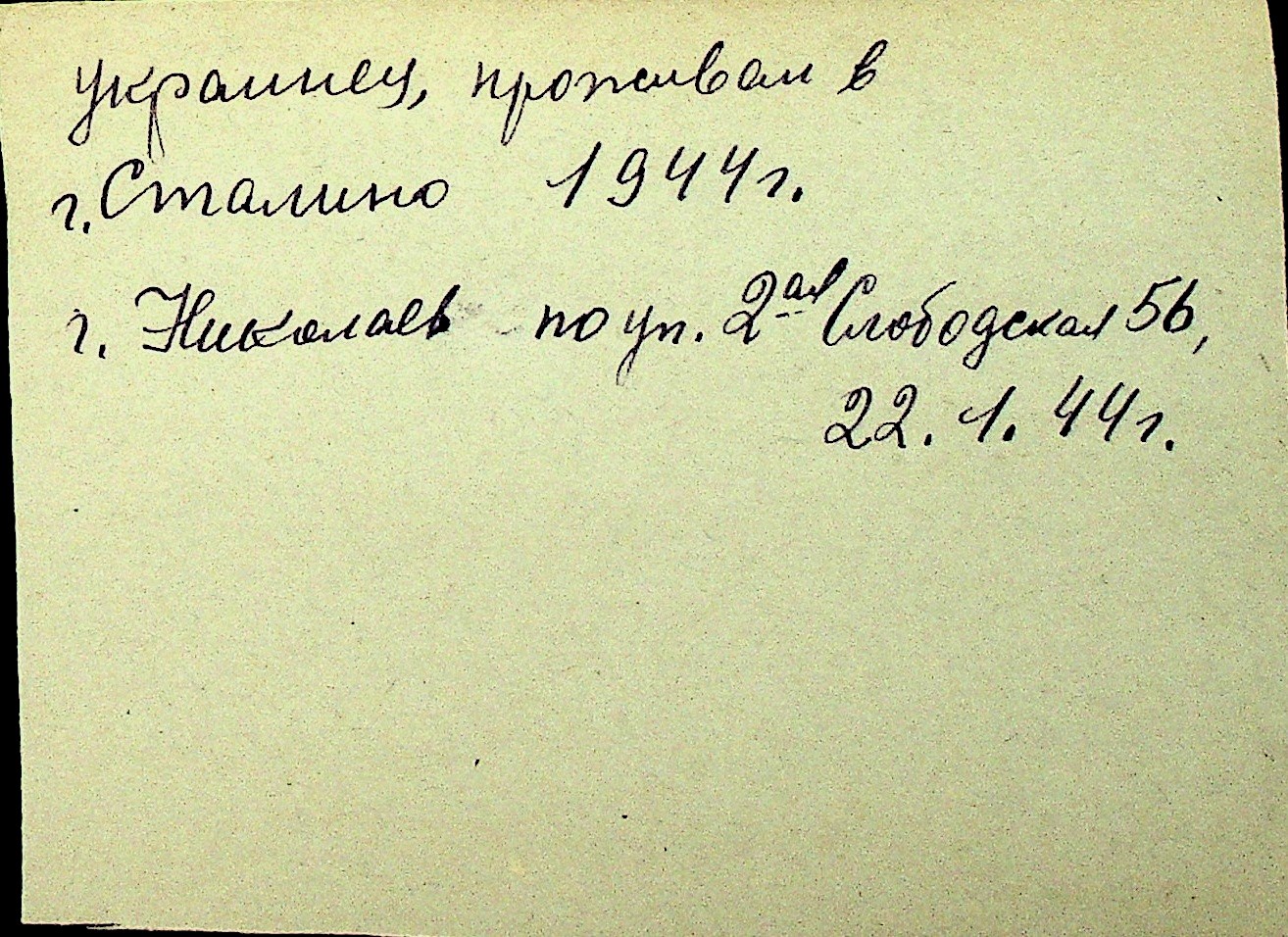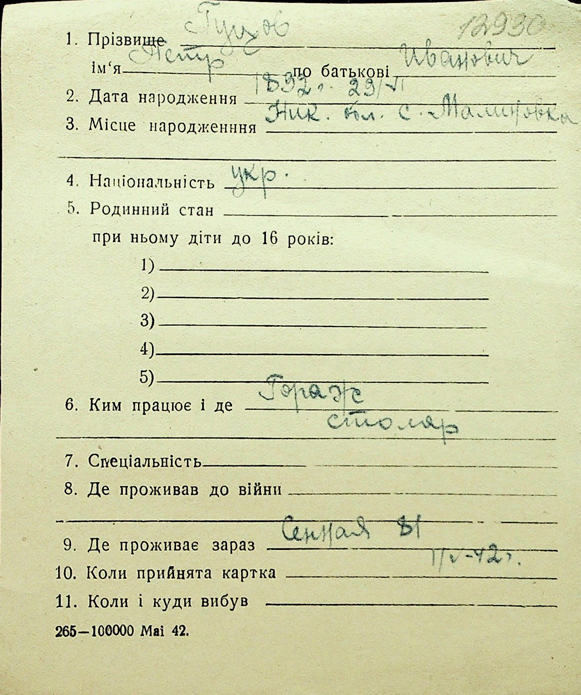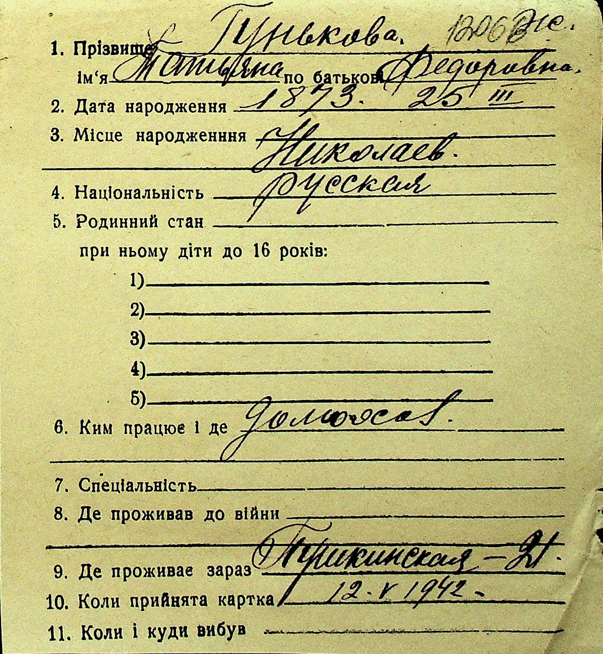 • • Перелік карток до фонду № Н-1016
