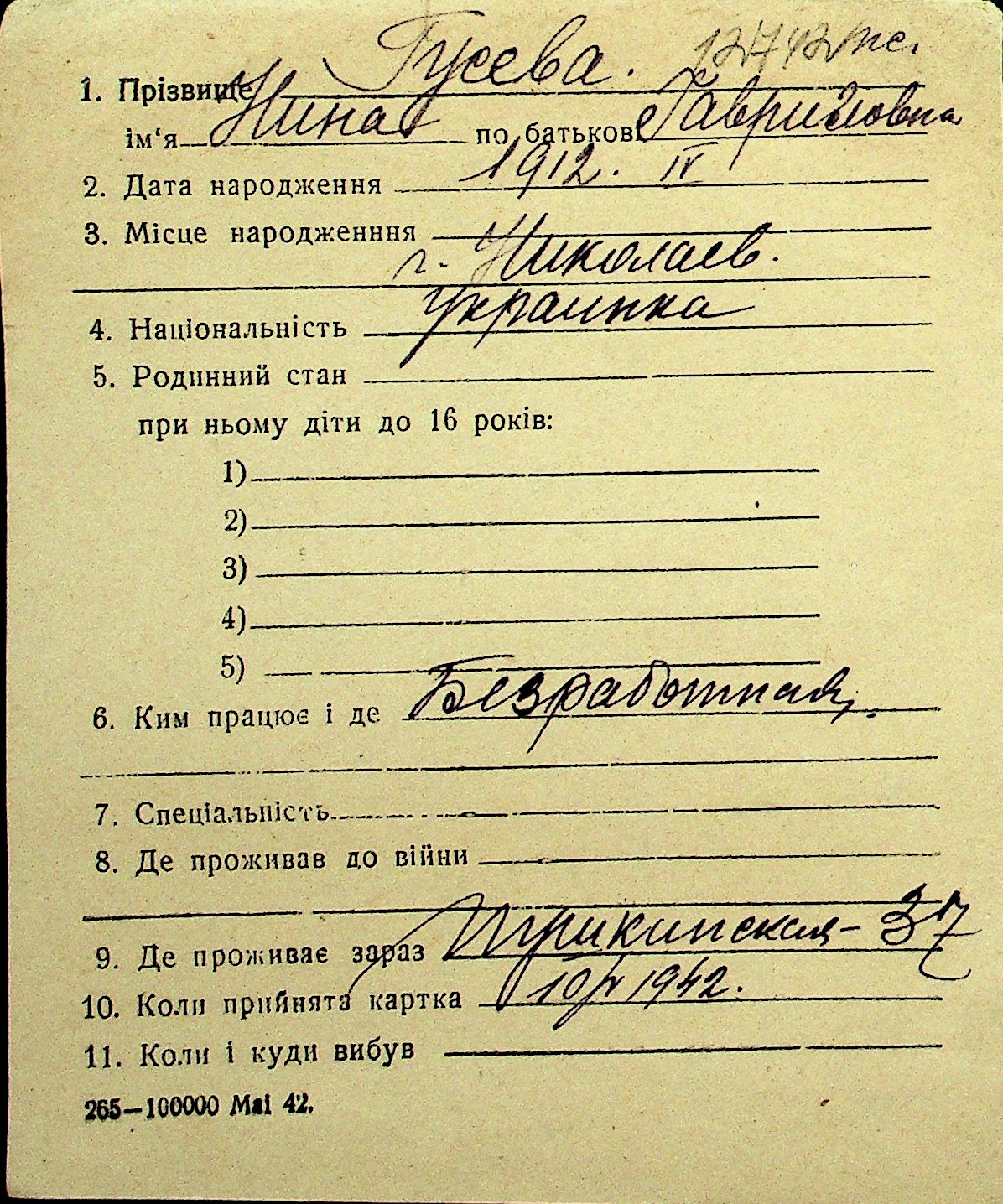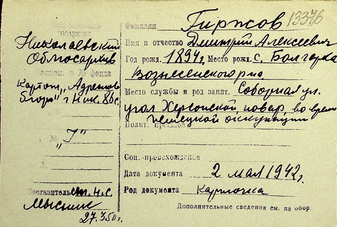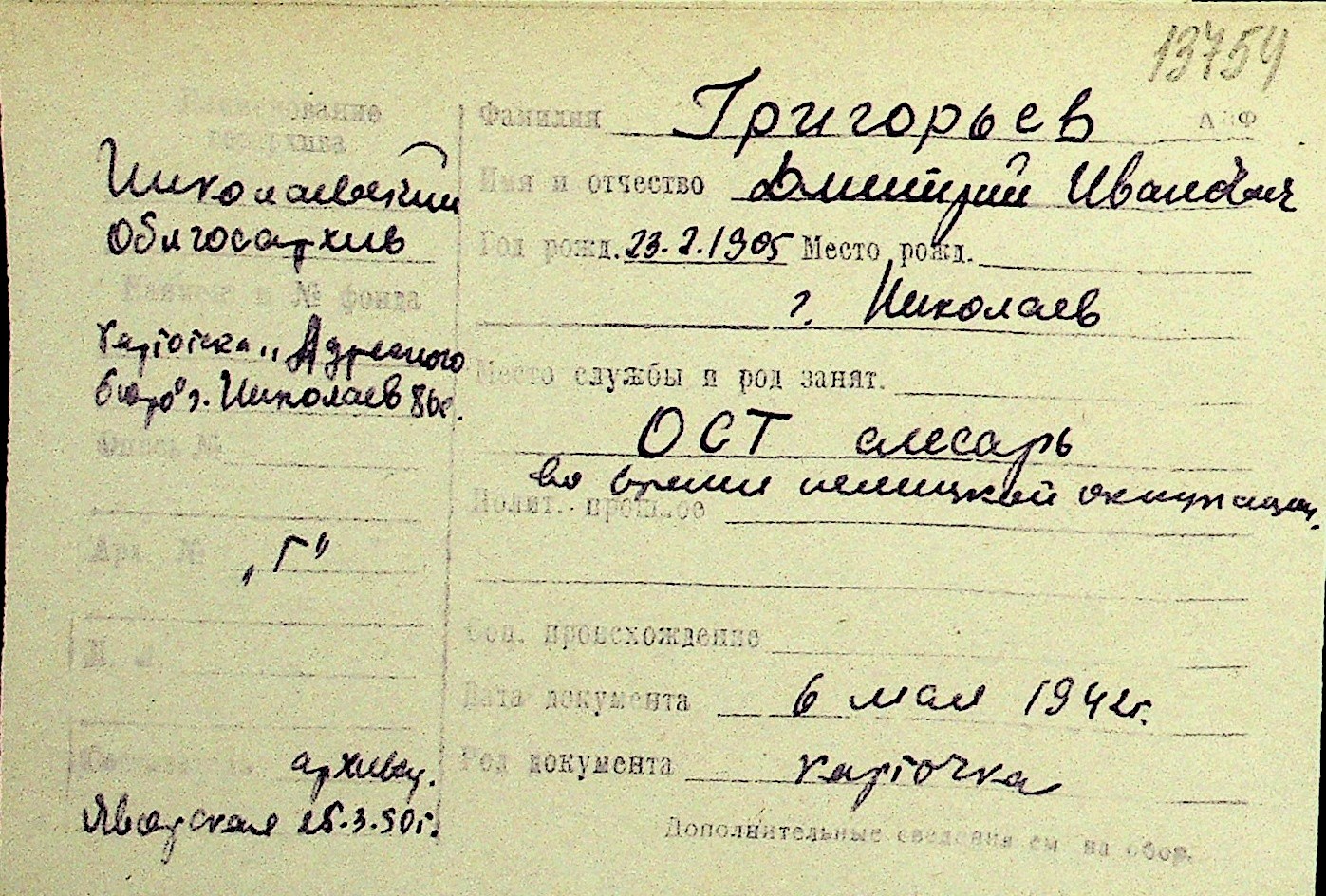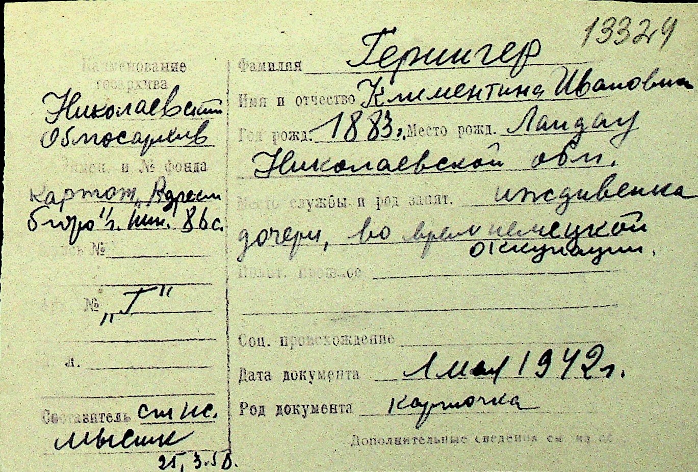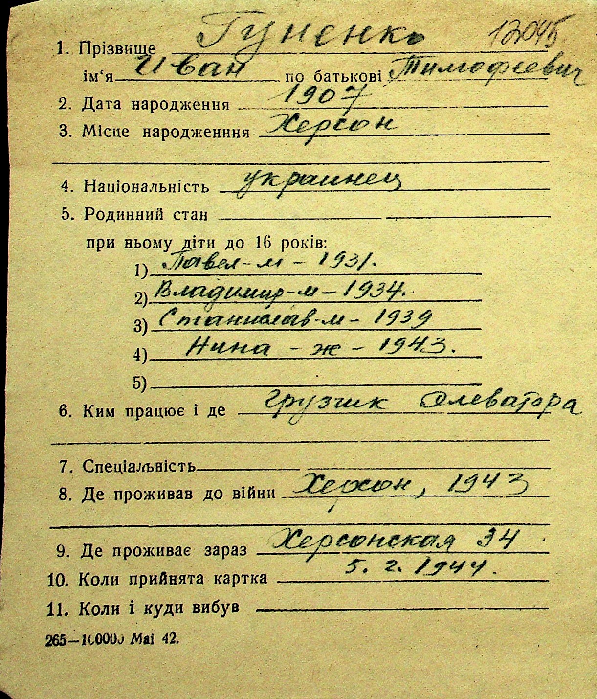 • • Перелік карток до фонду № Н-1016