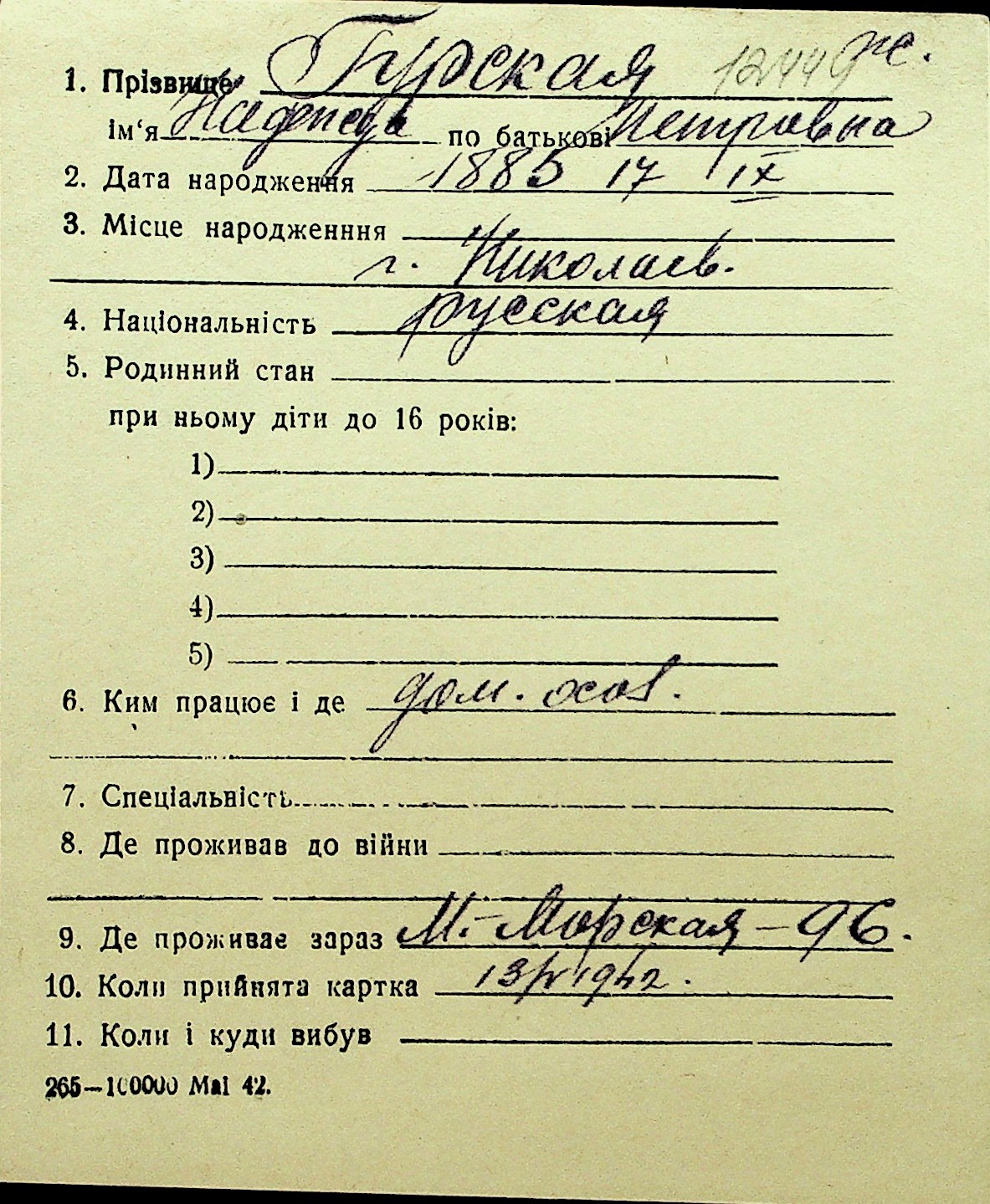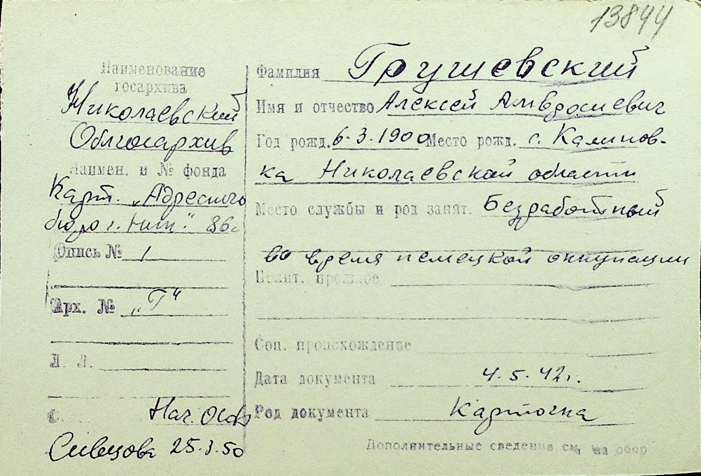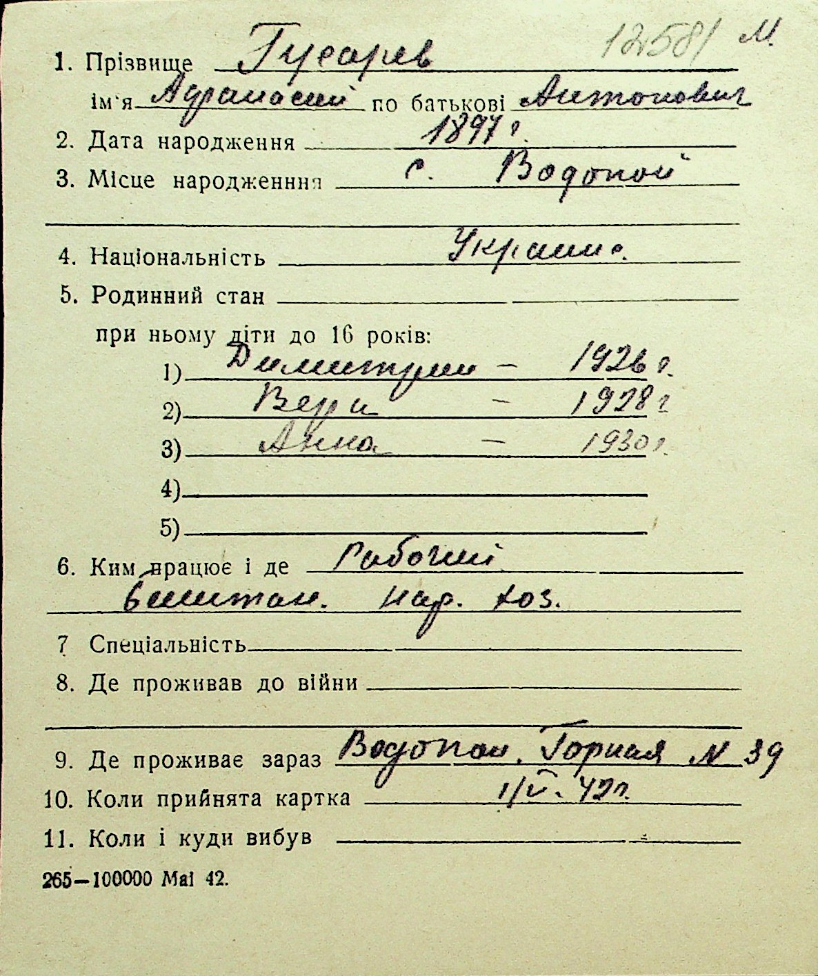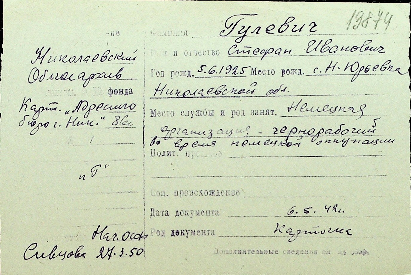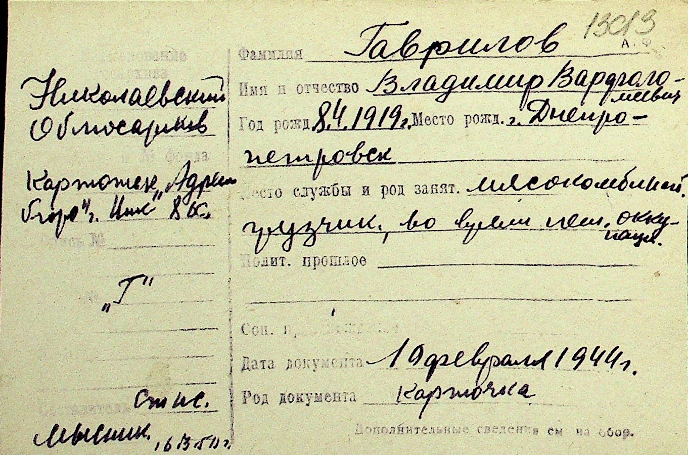• • Перелік карток до фонду № Н-1016