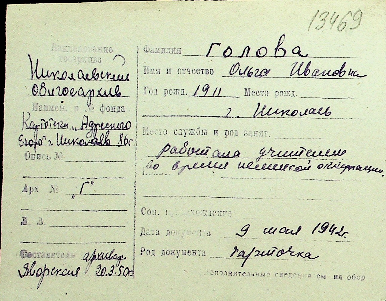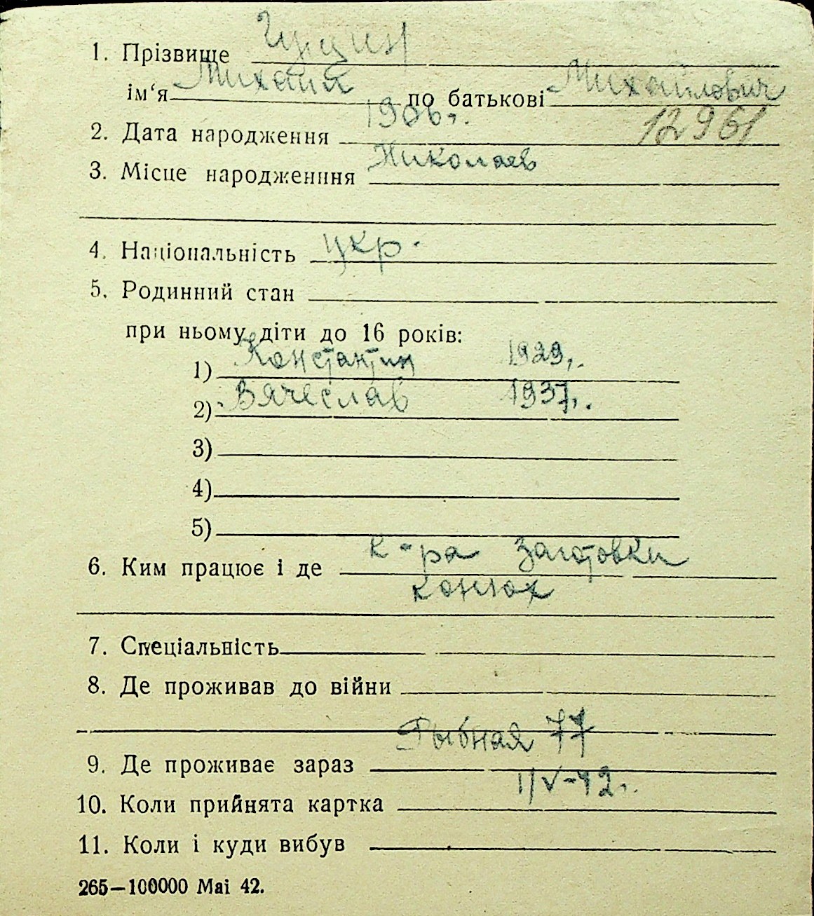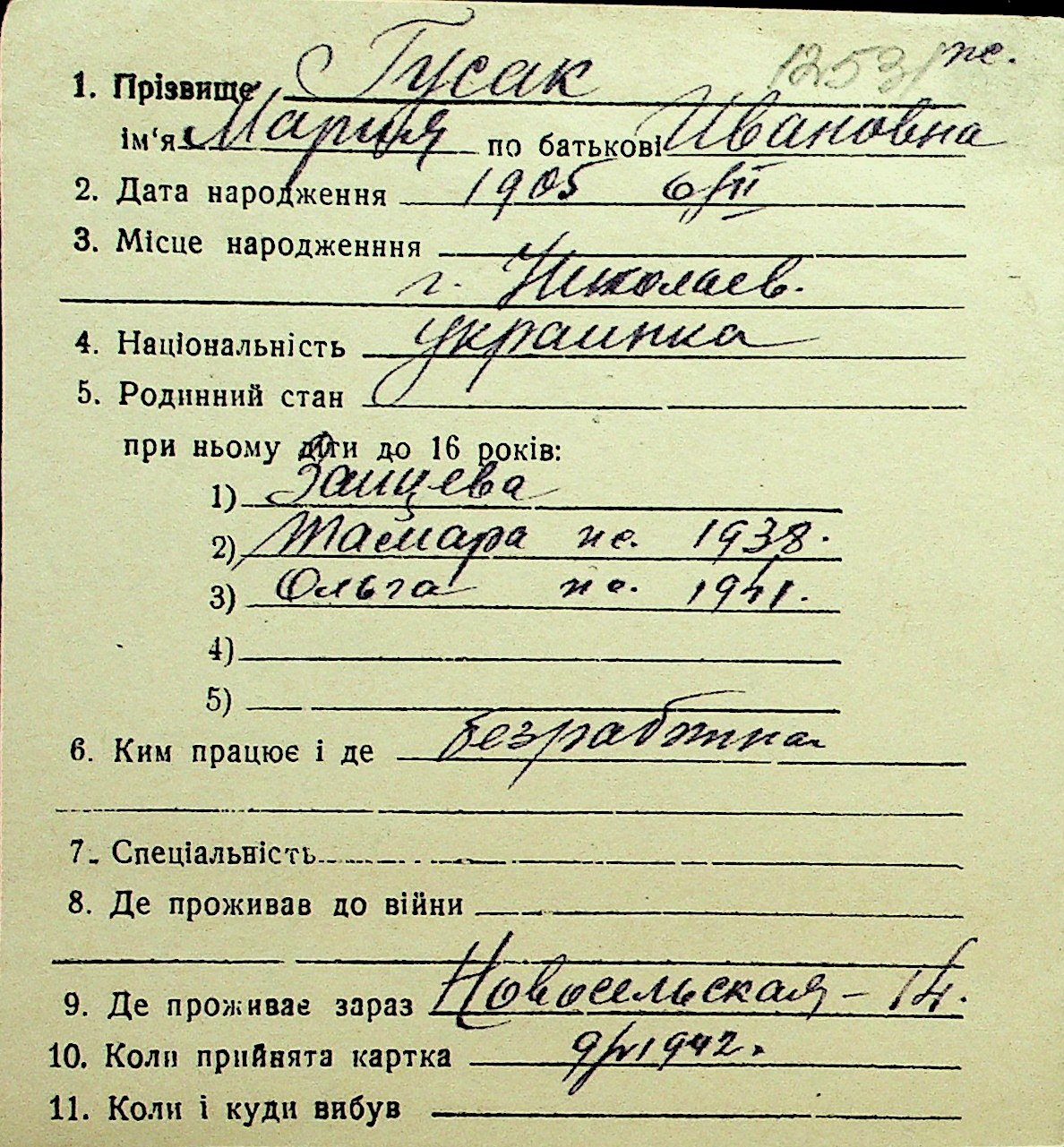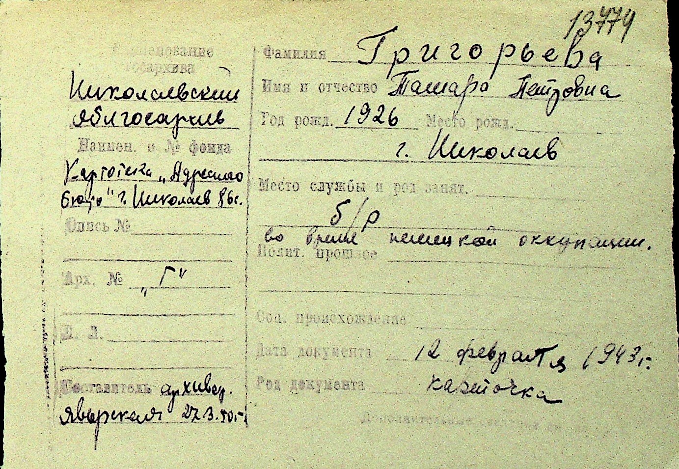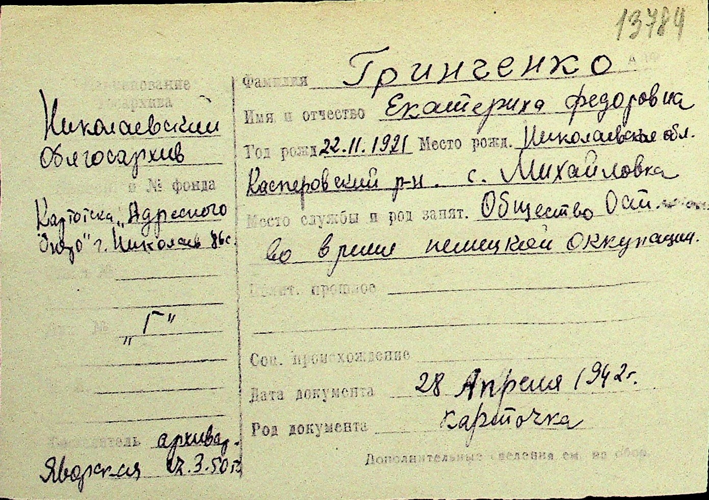• • Перелік карток до фонду № Н-1016