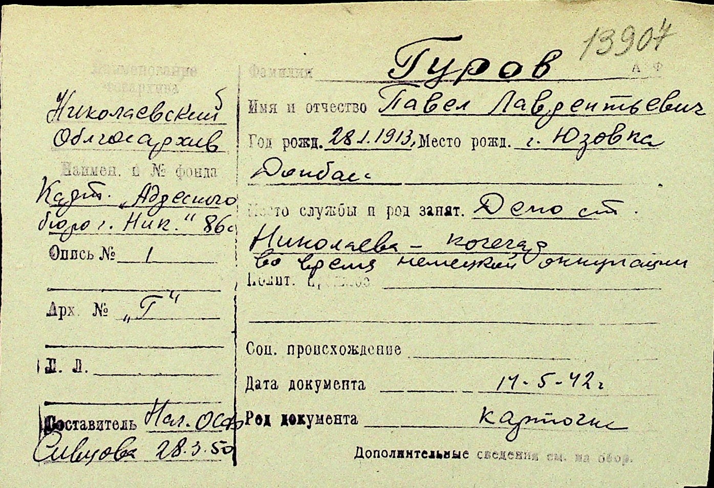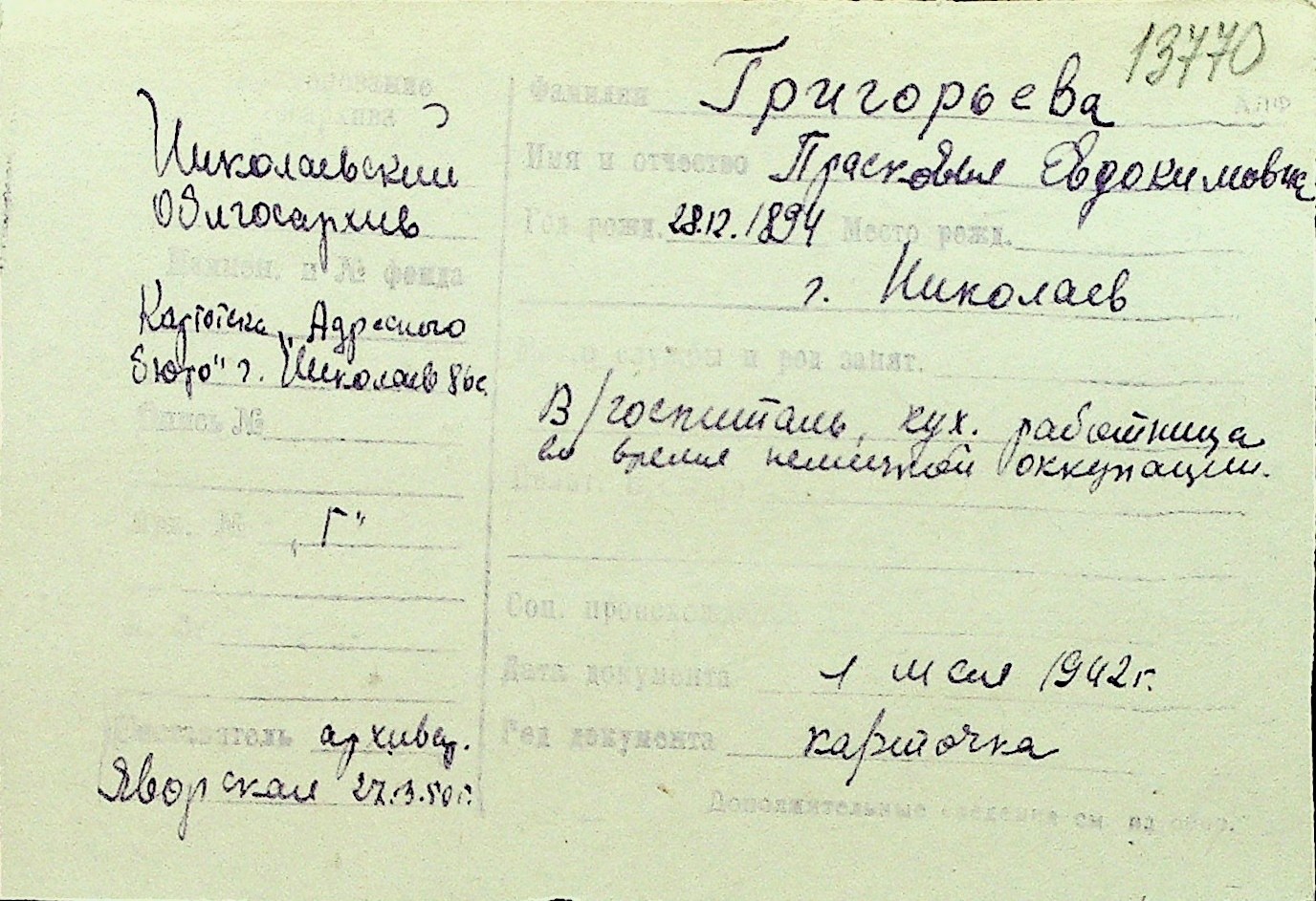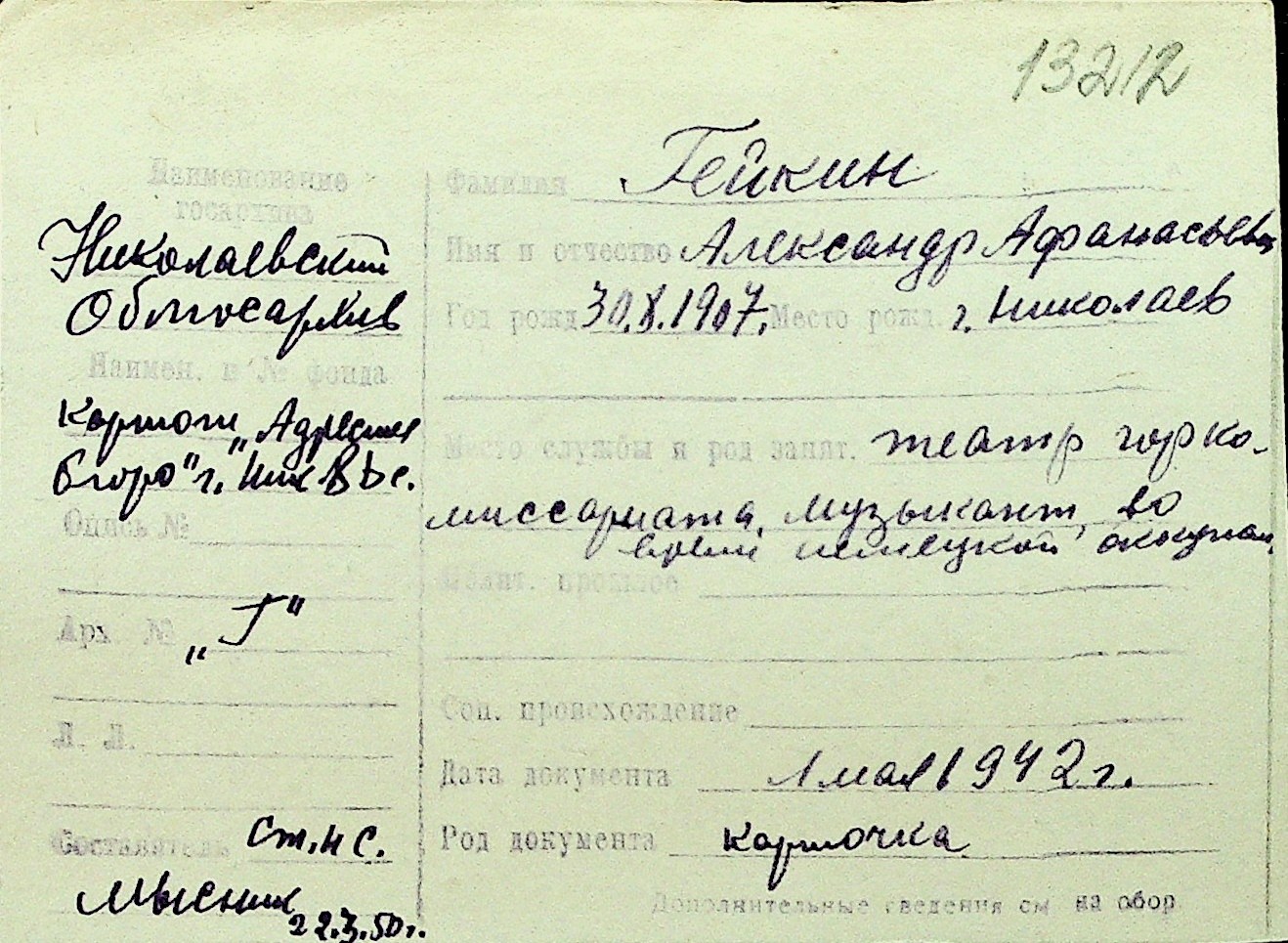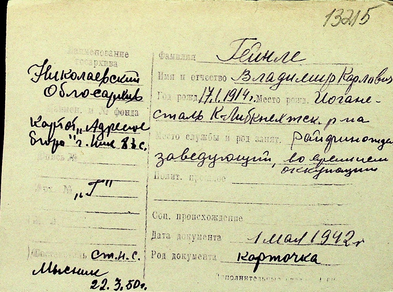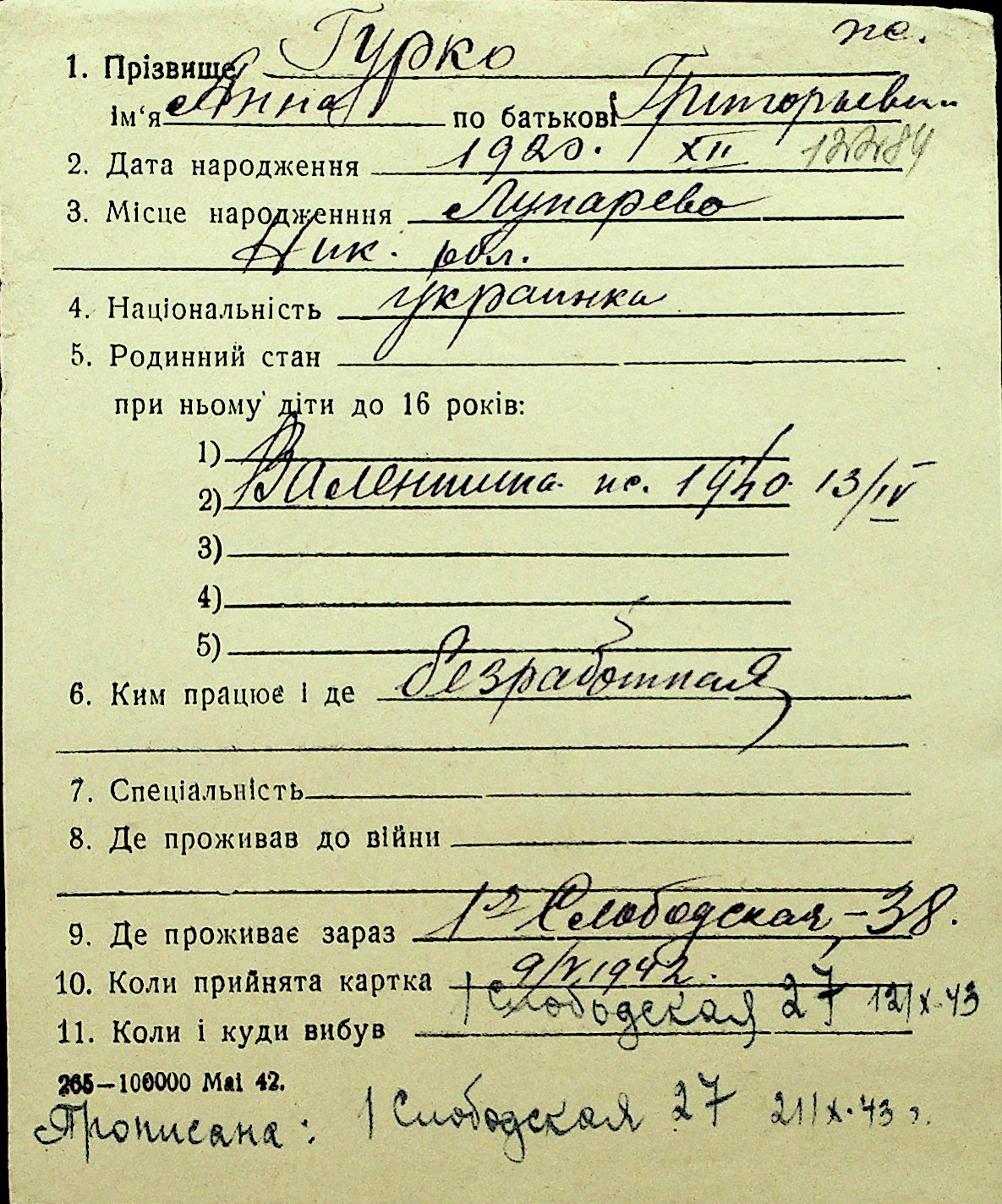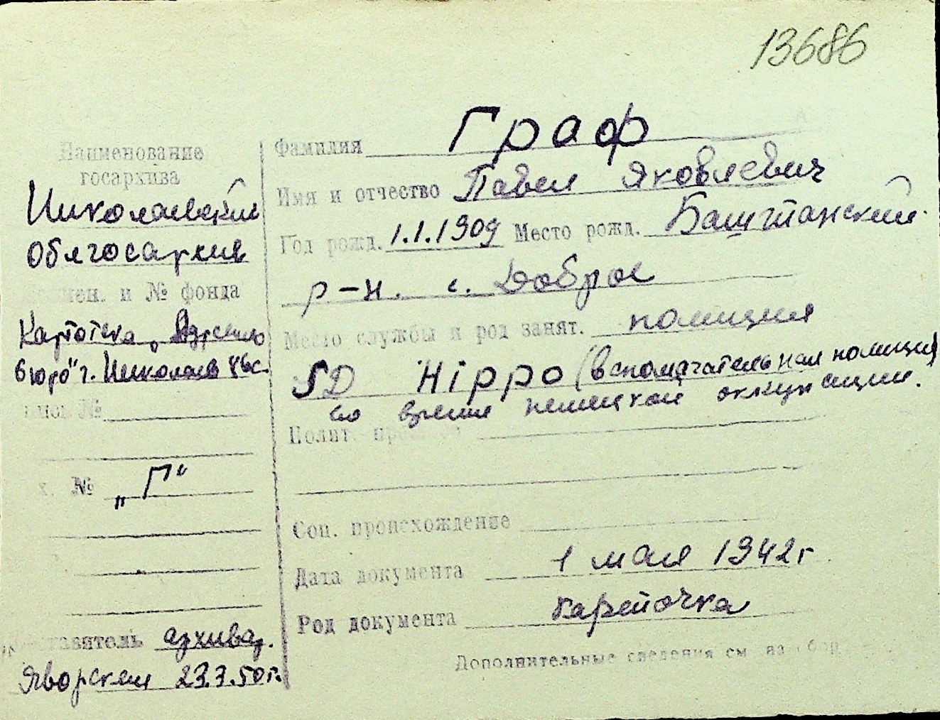 • • Перелік карток до фонду № Н-1016