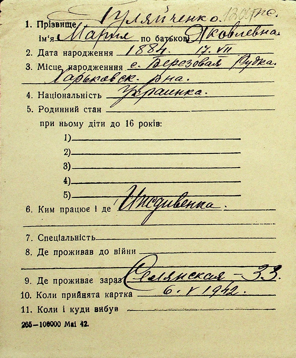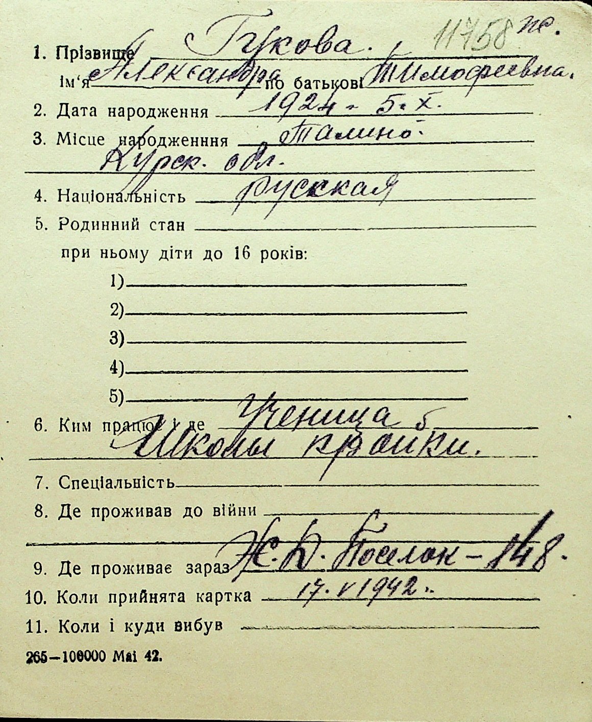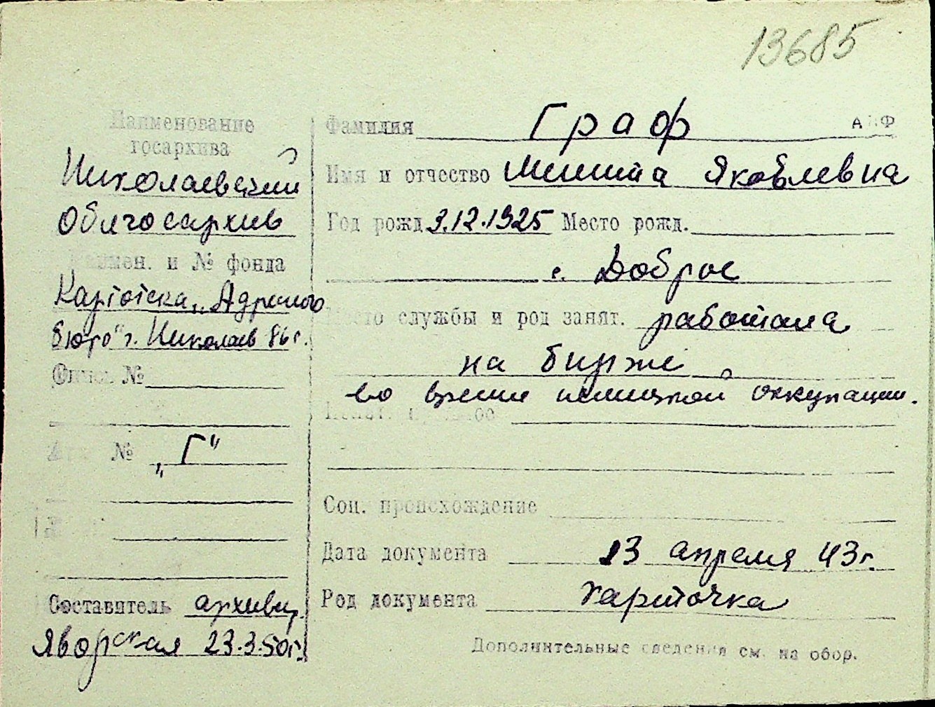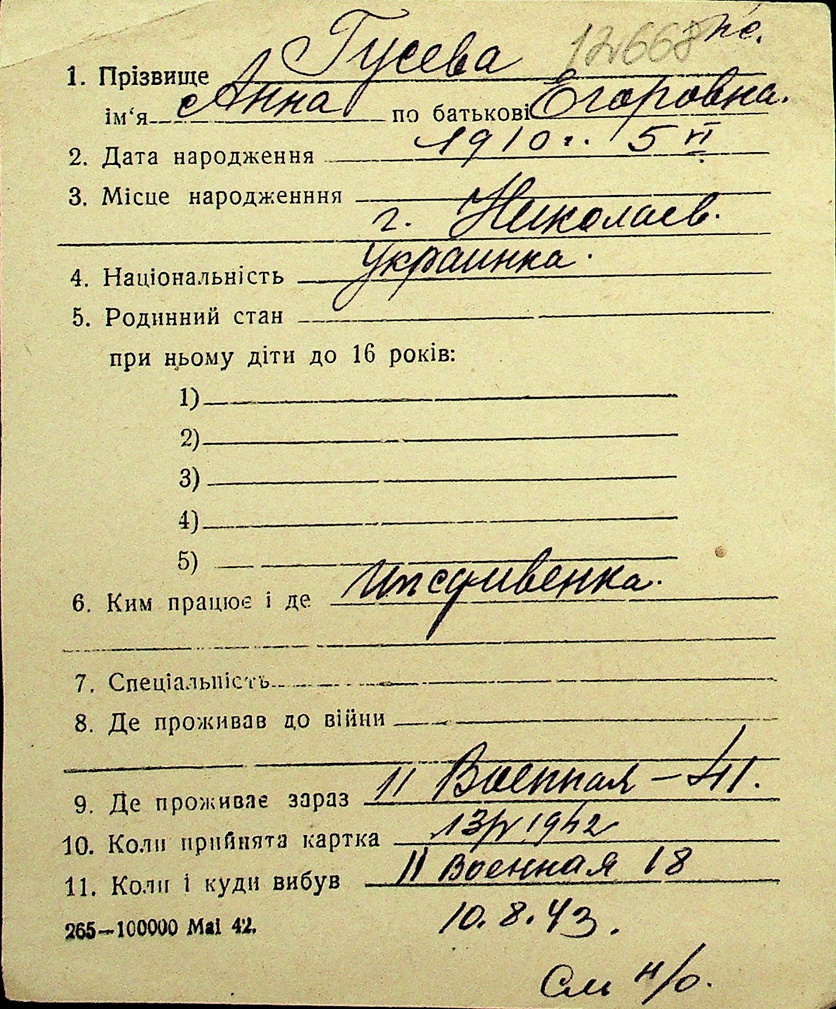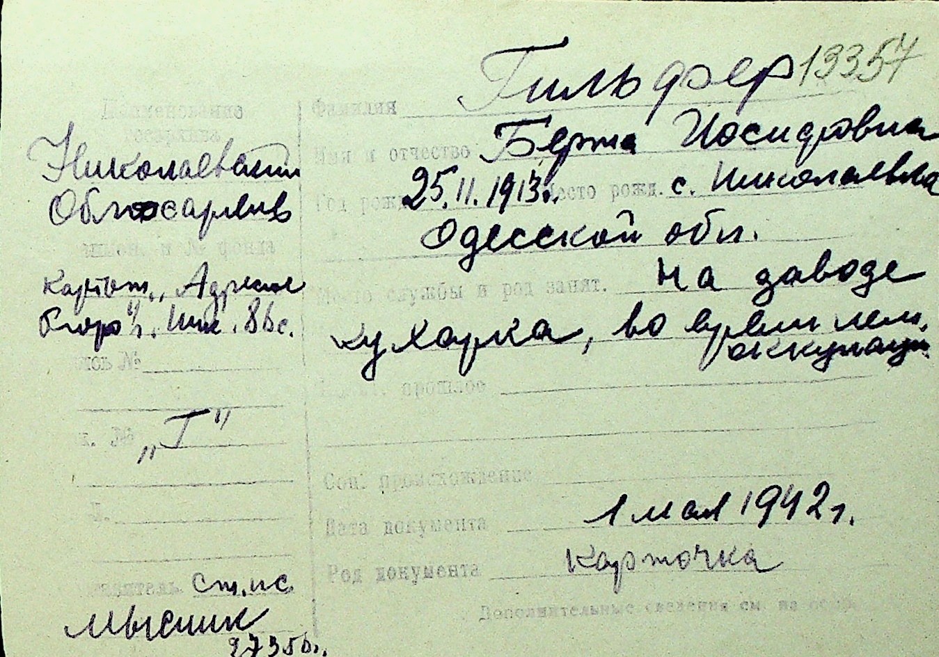 • • Перелік карток до фонду № Н-1016