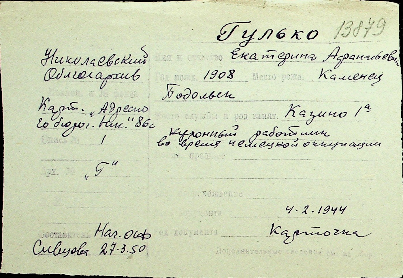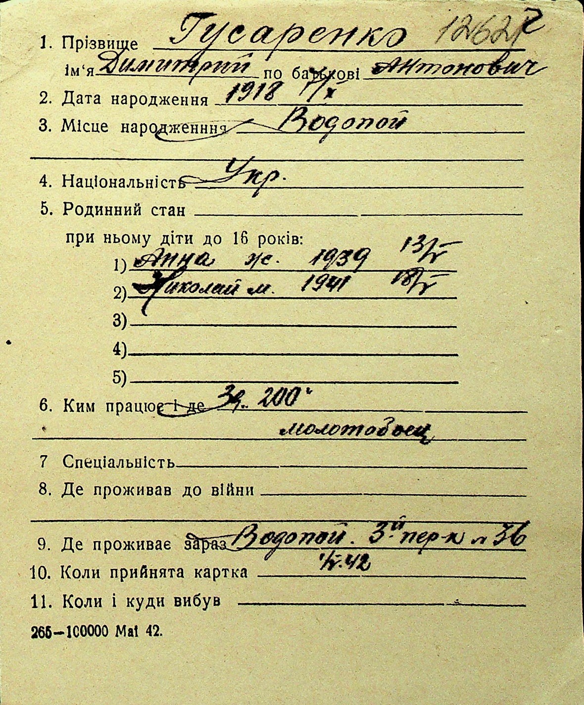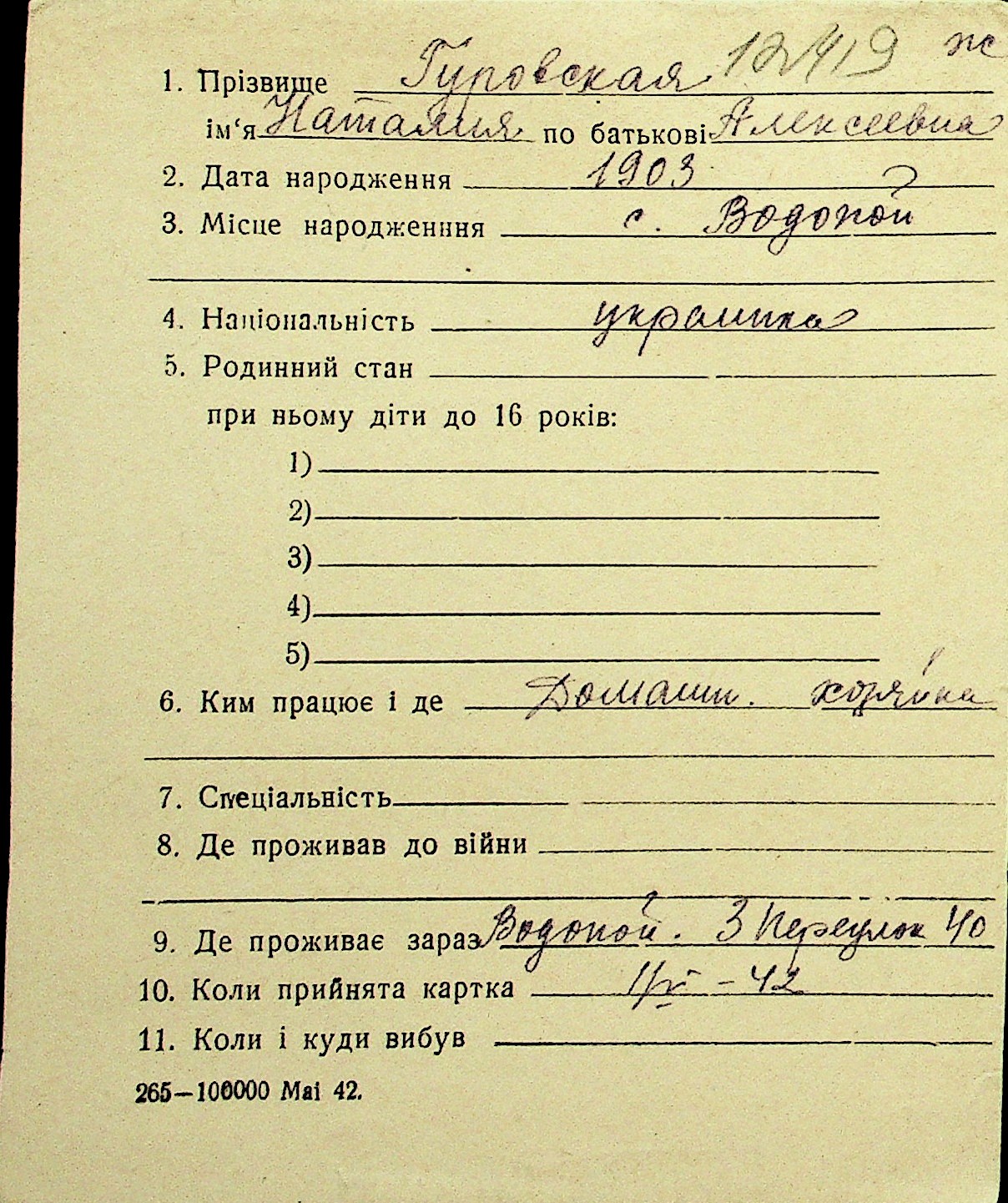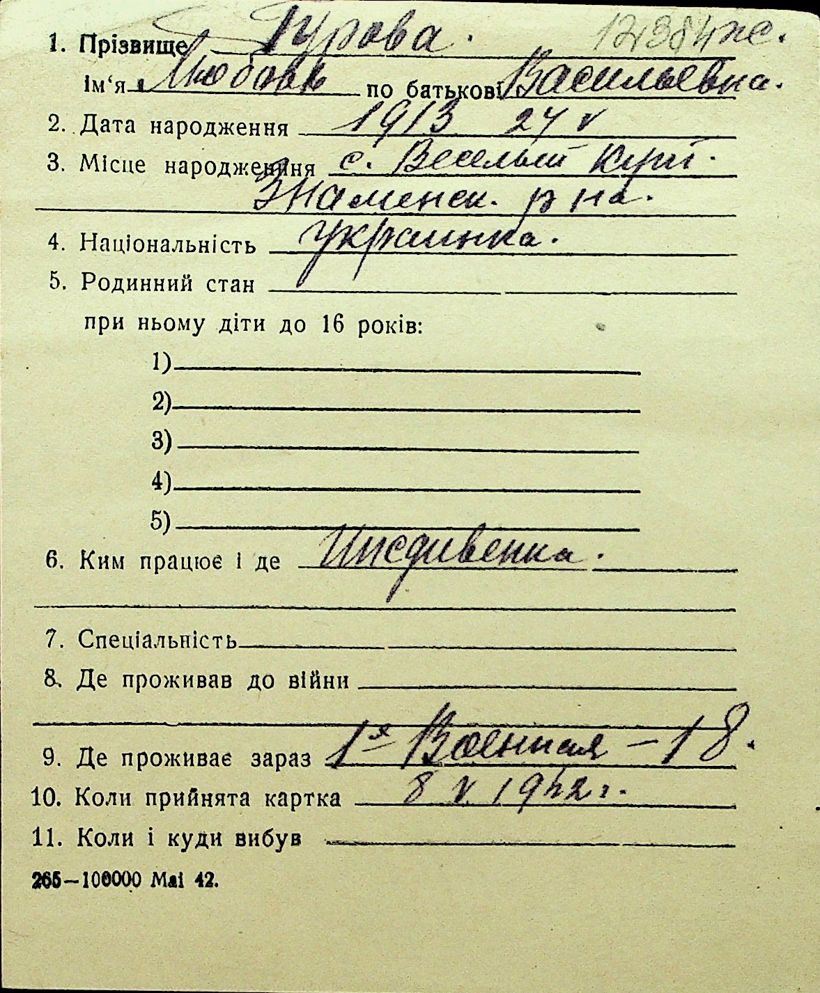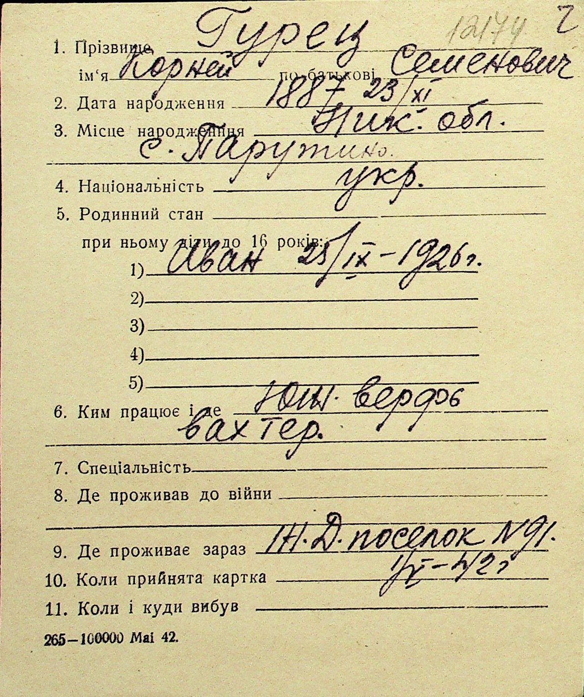 • • Перелік карток до фонду № Н-1016