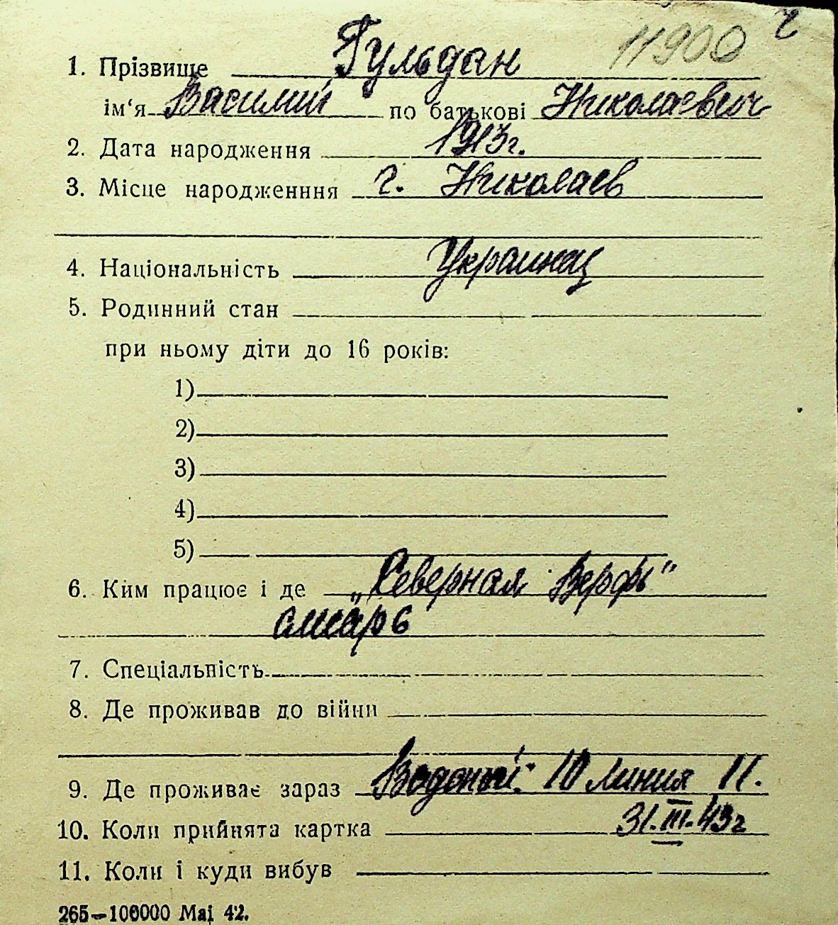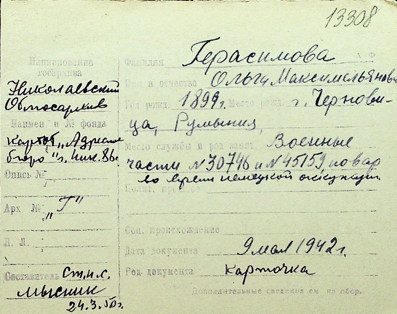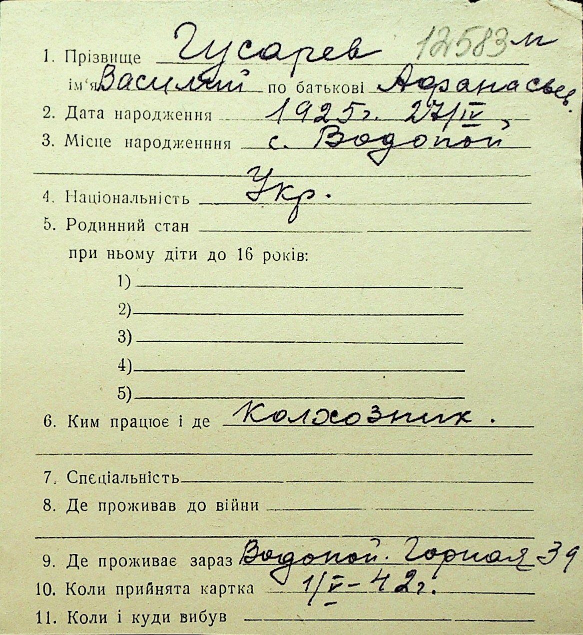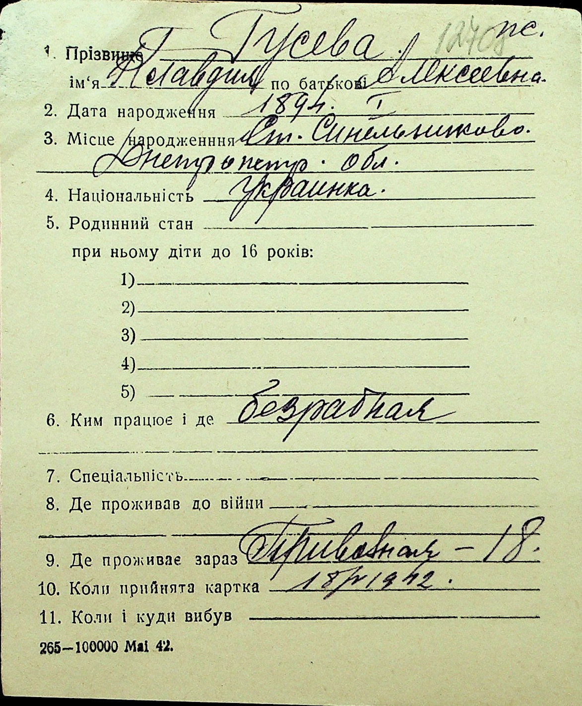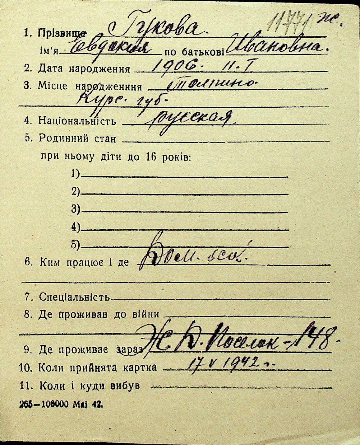 • • Перелік карток до фонду № Н-1016