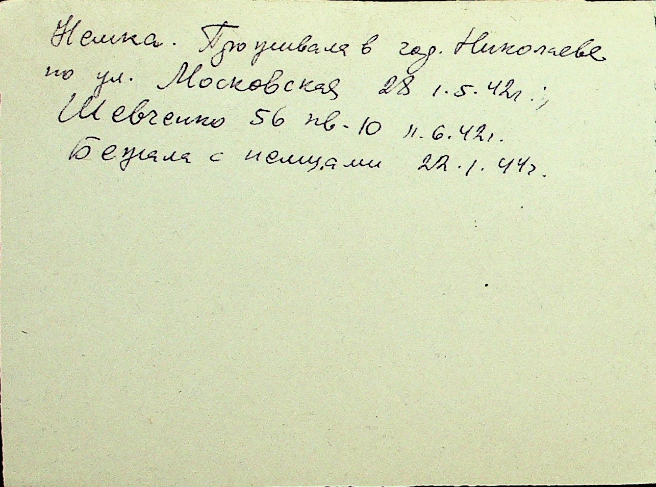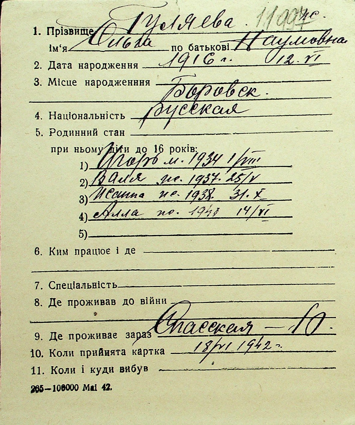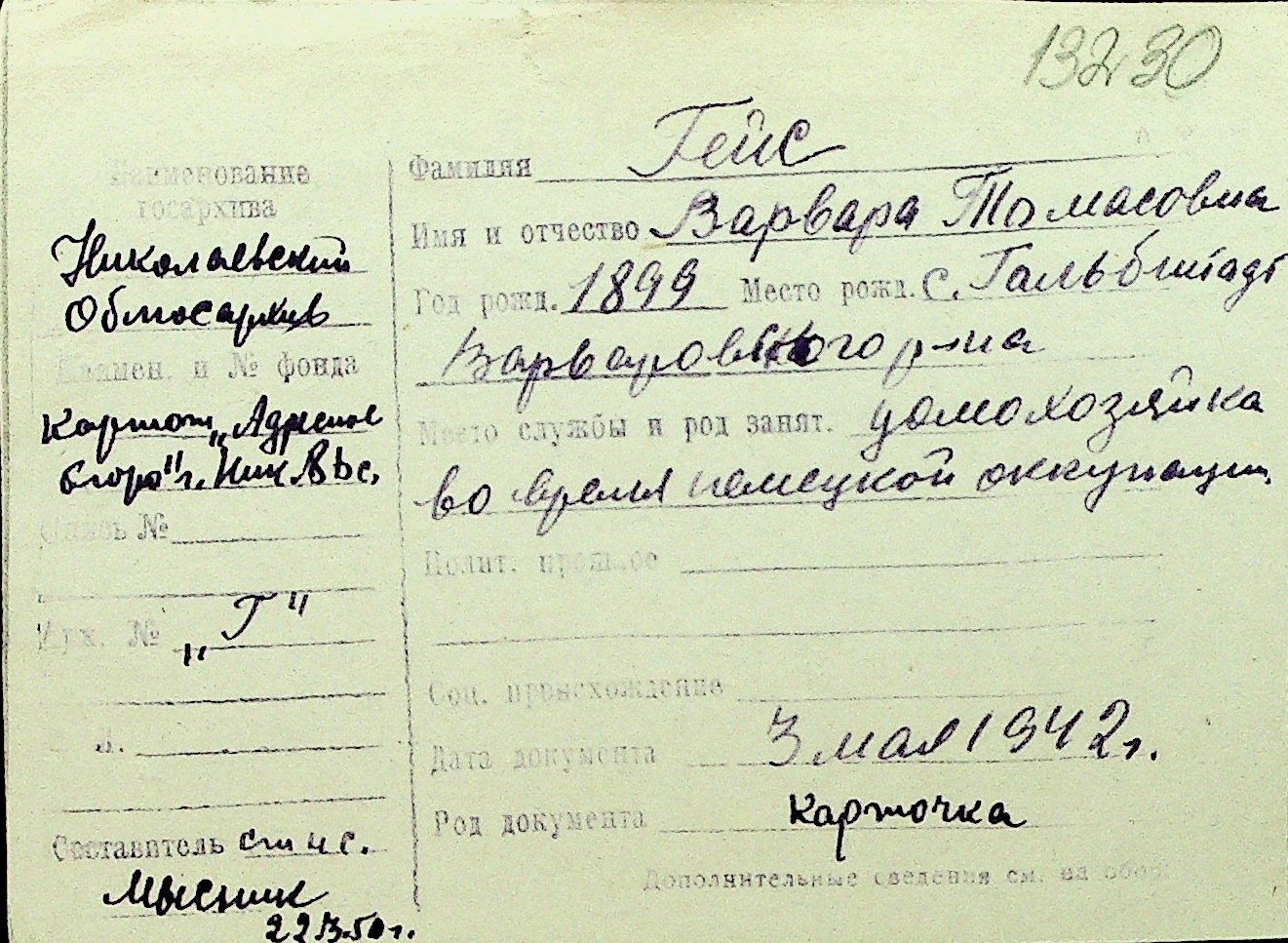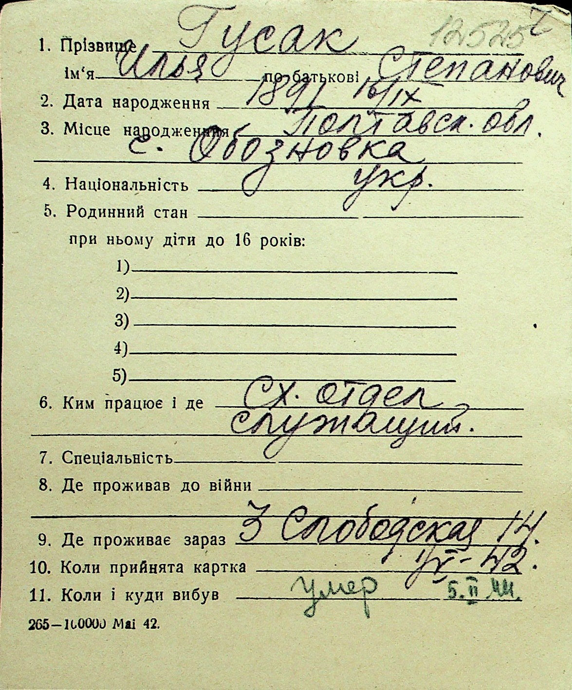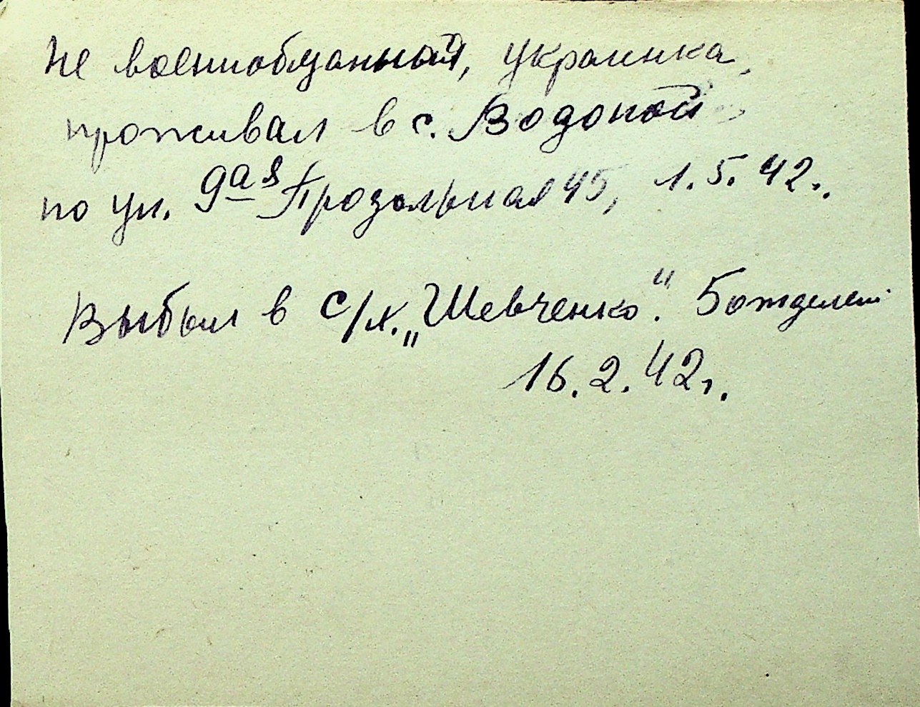 • • Перелік карток до фонду № Н-1016