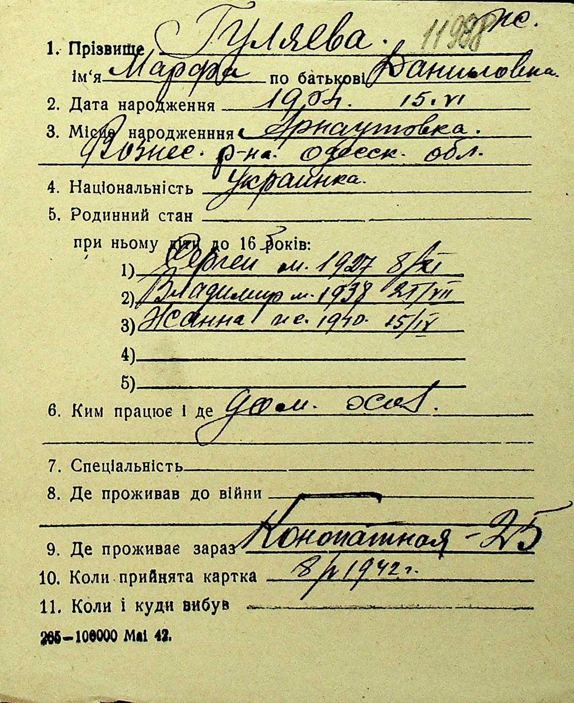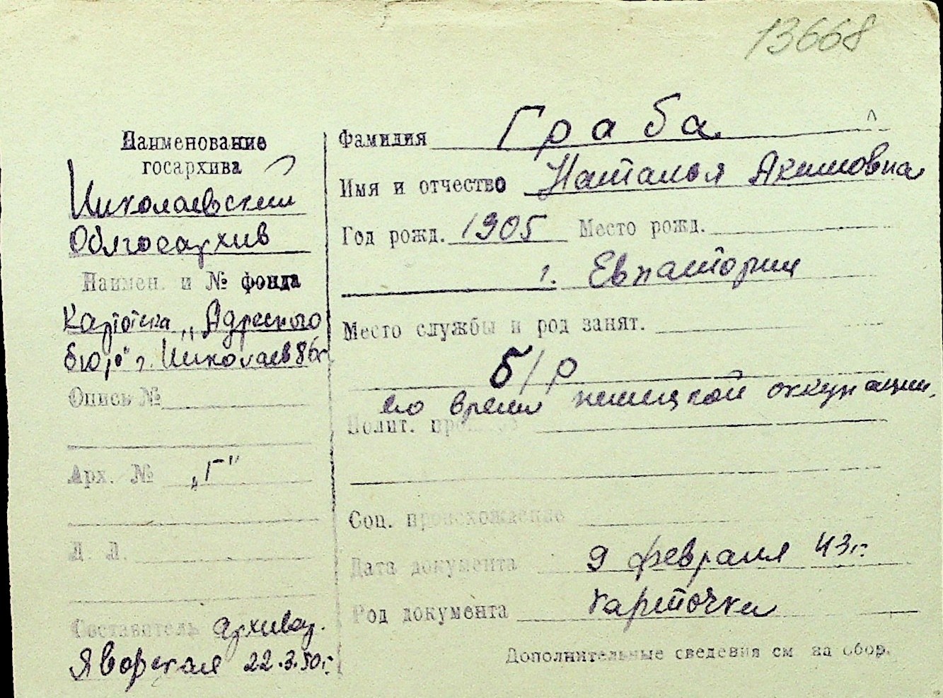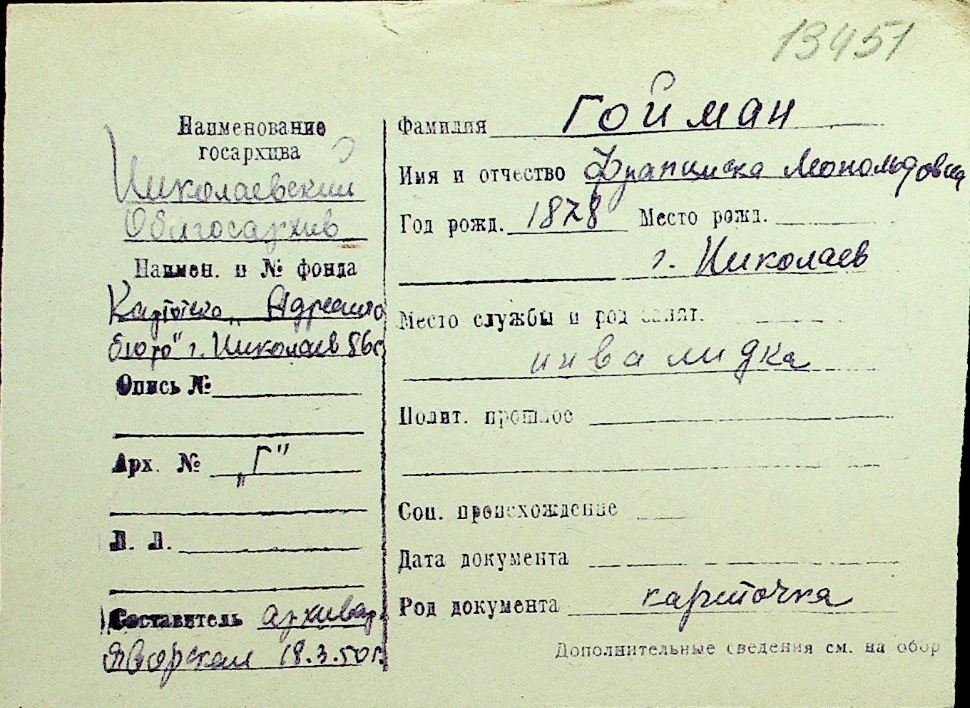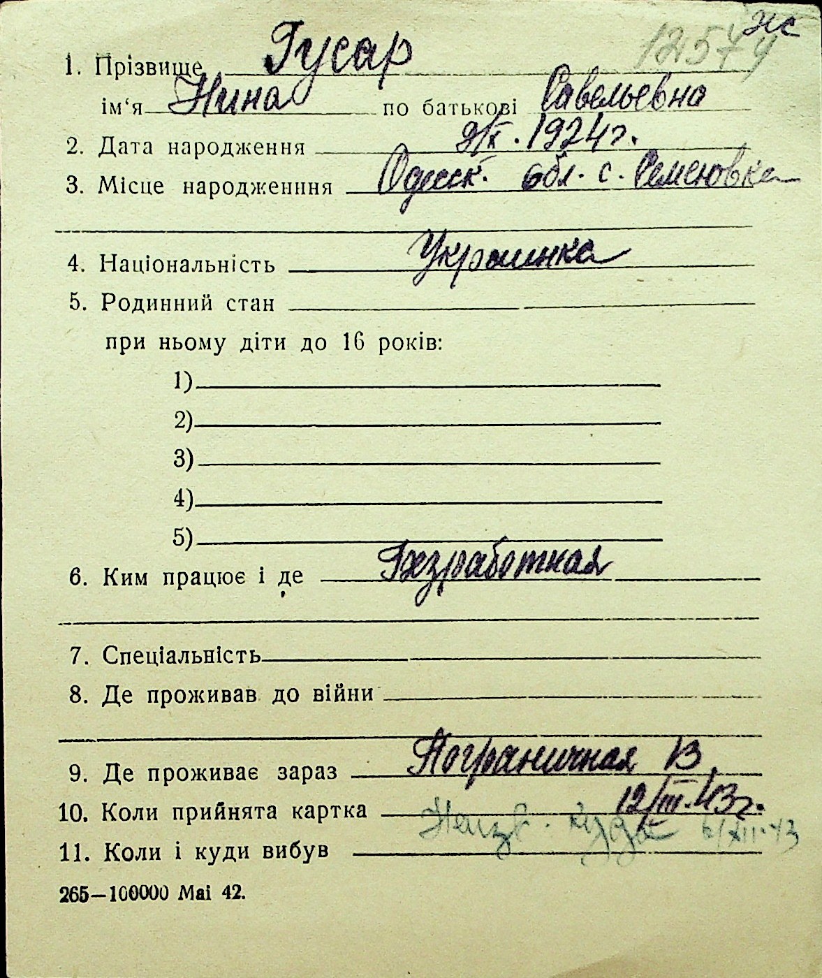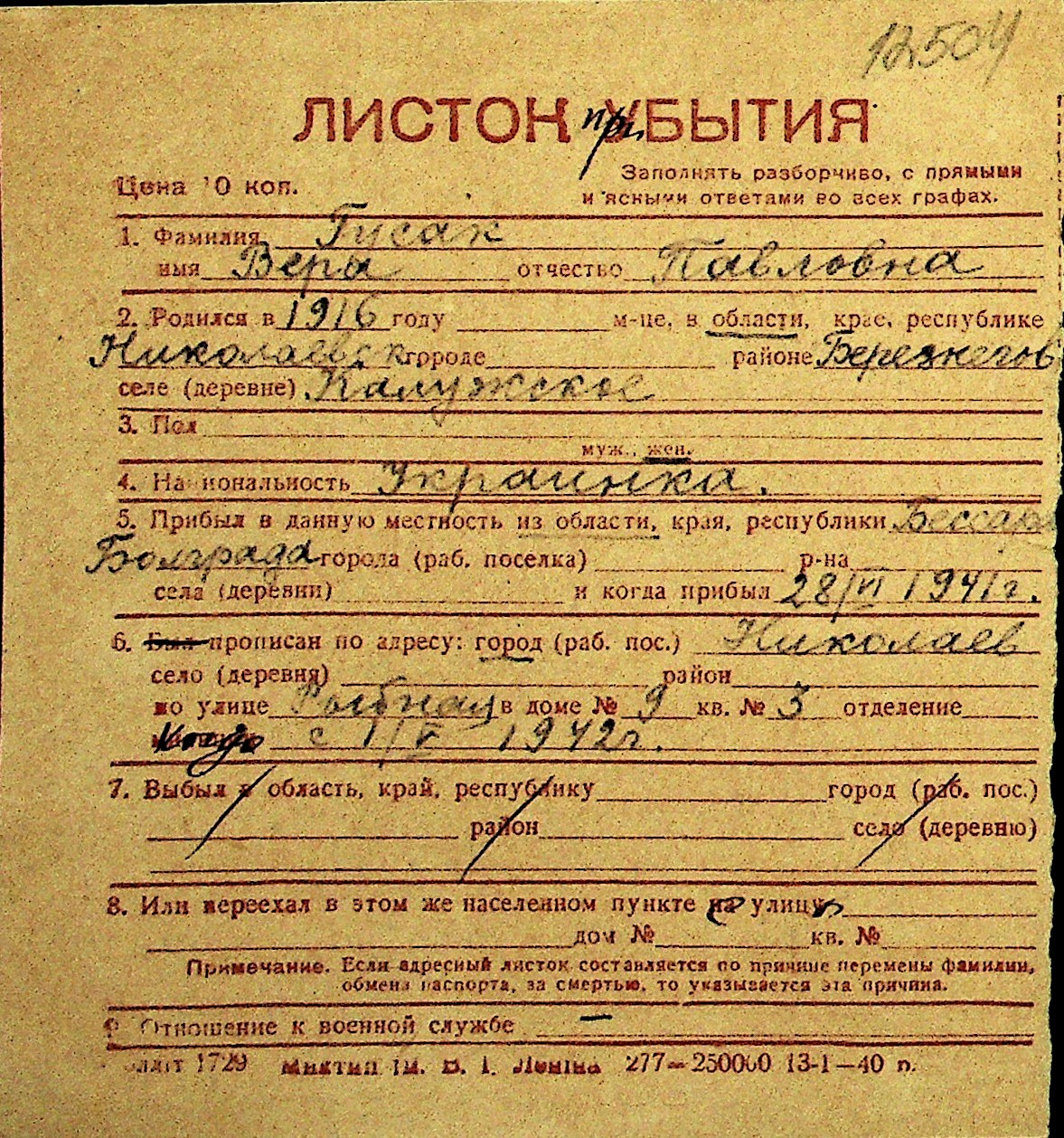 • • Перелік карток до фонду № Н-1016