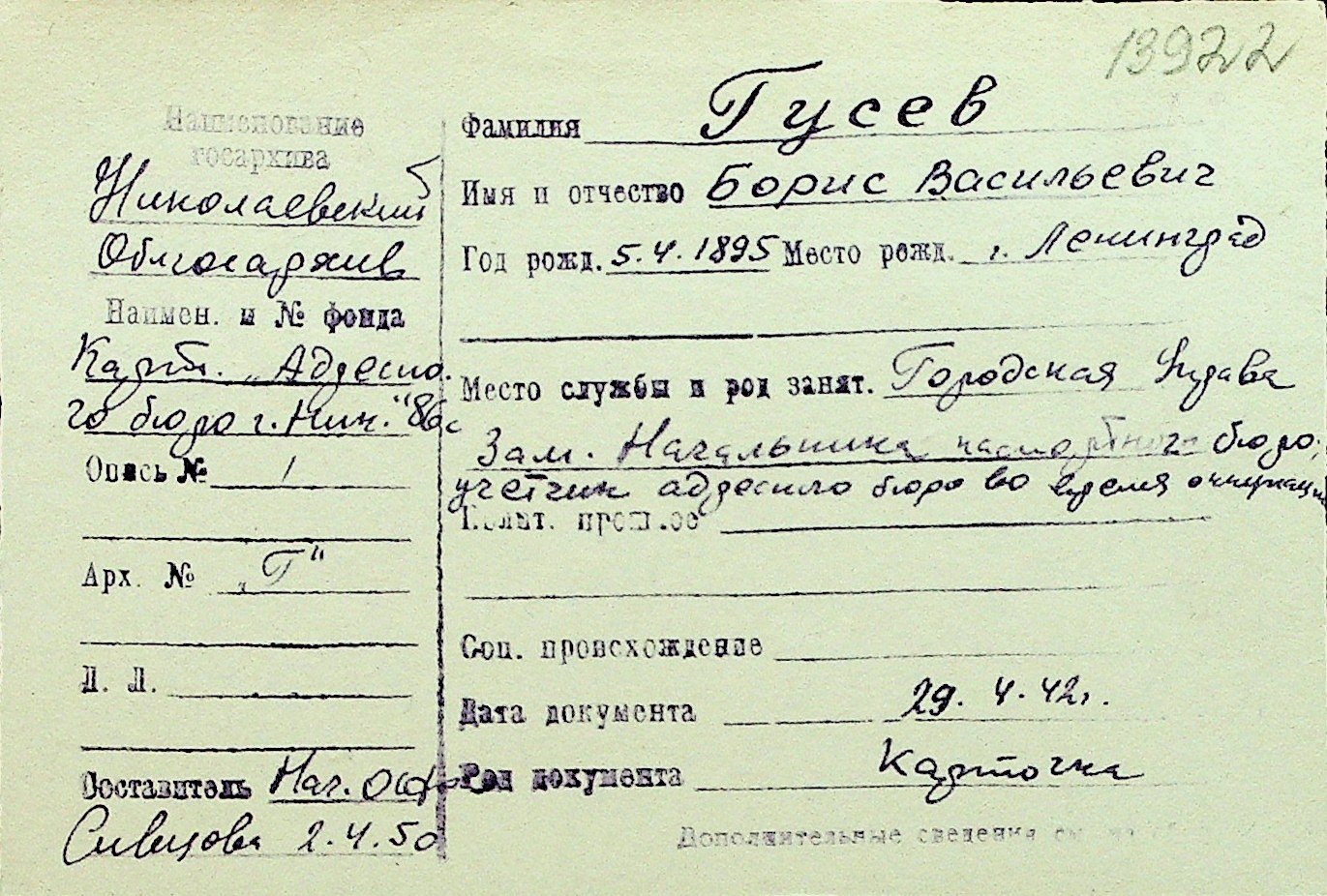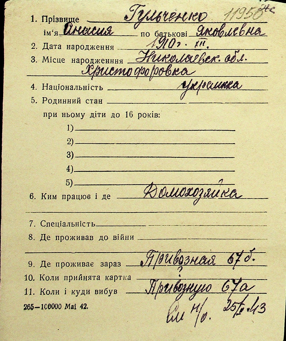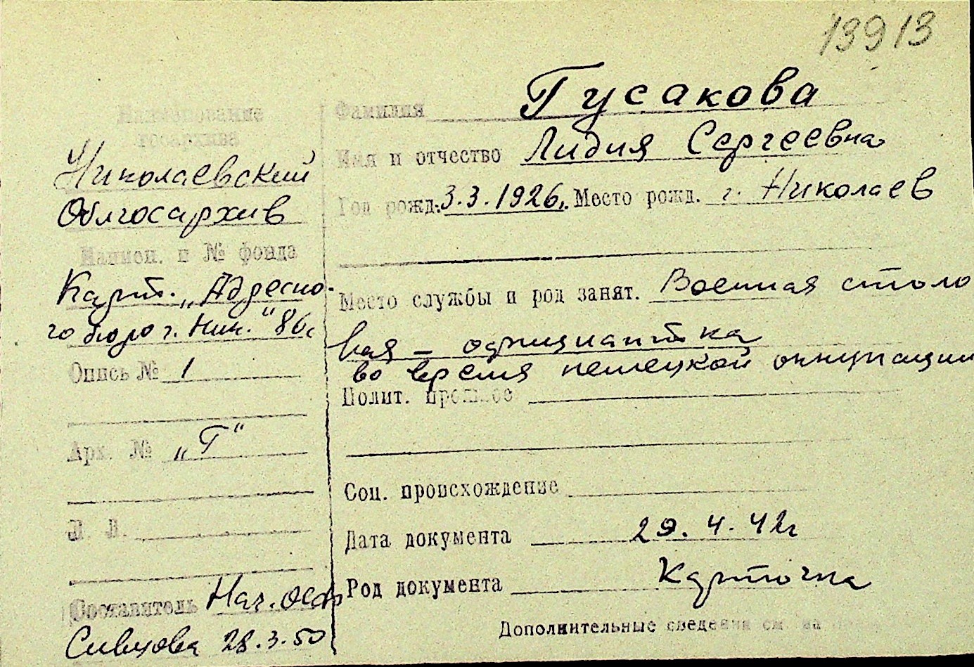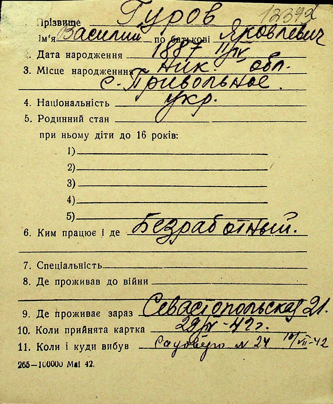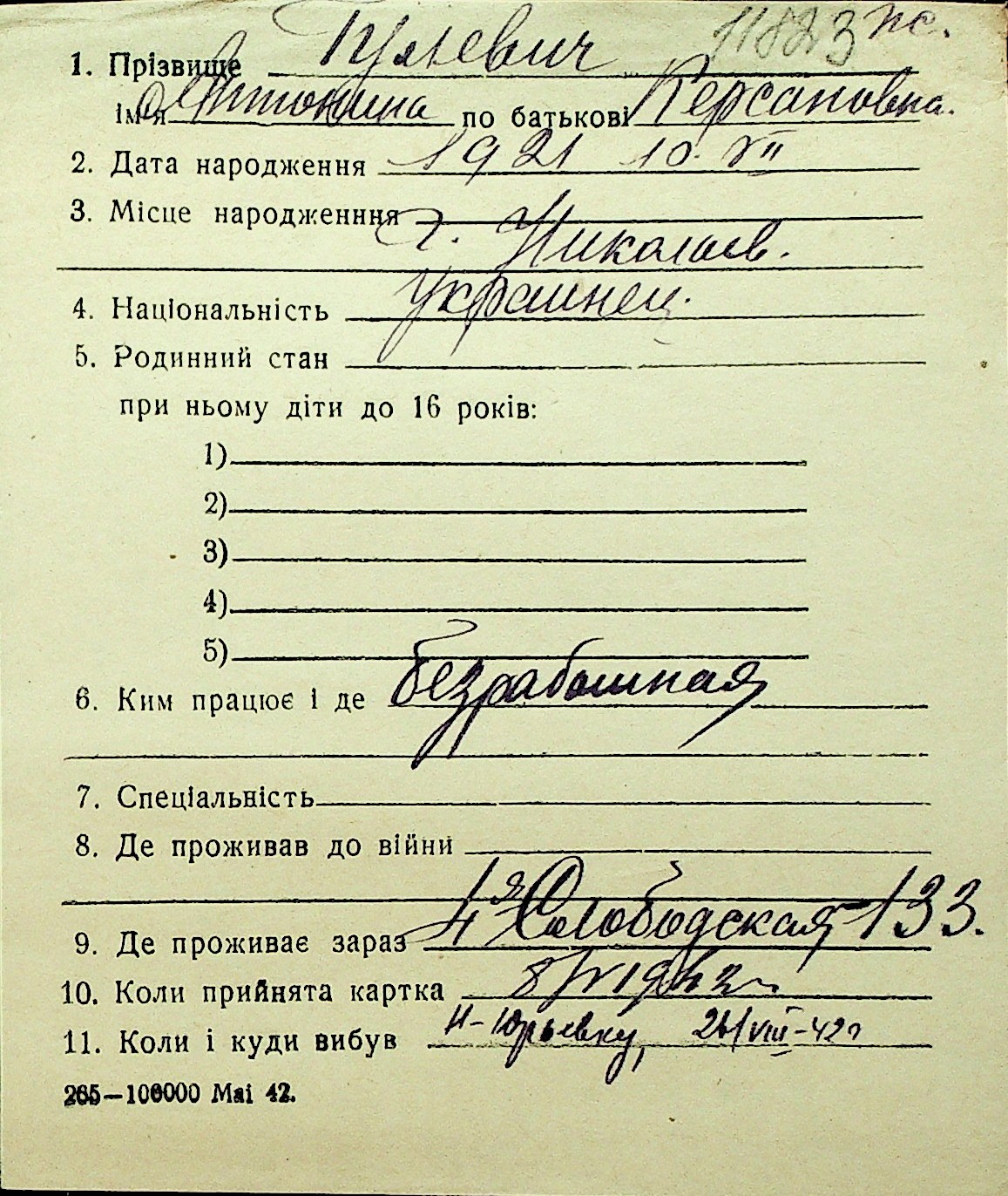 • • Перелік карток до фонду № Н-1016