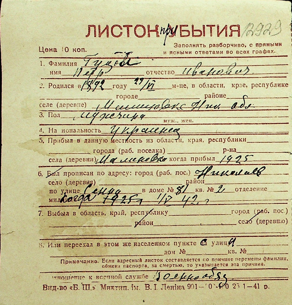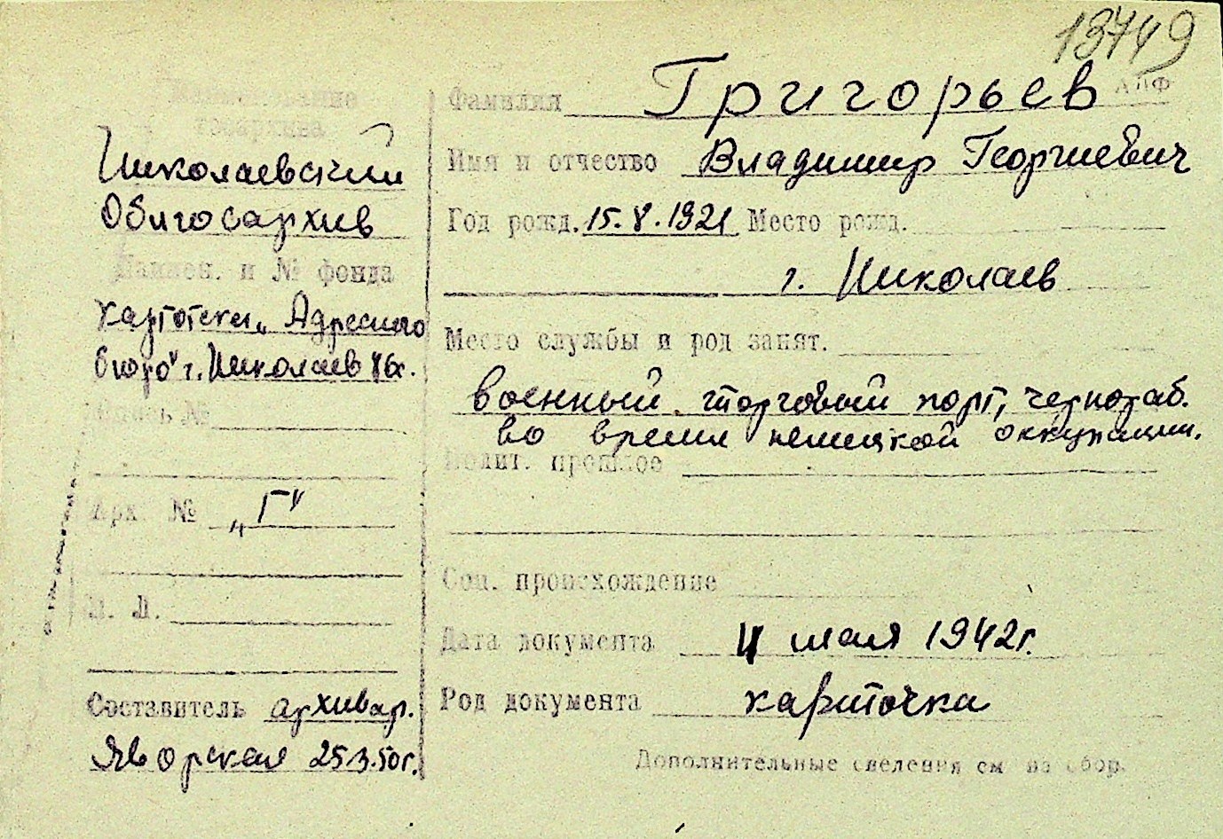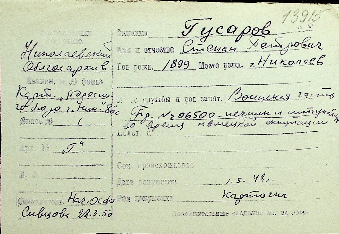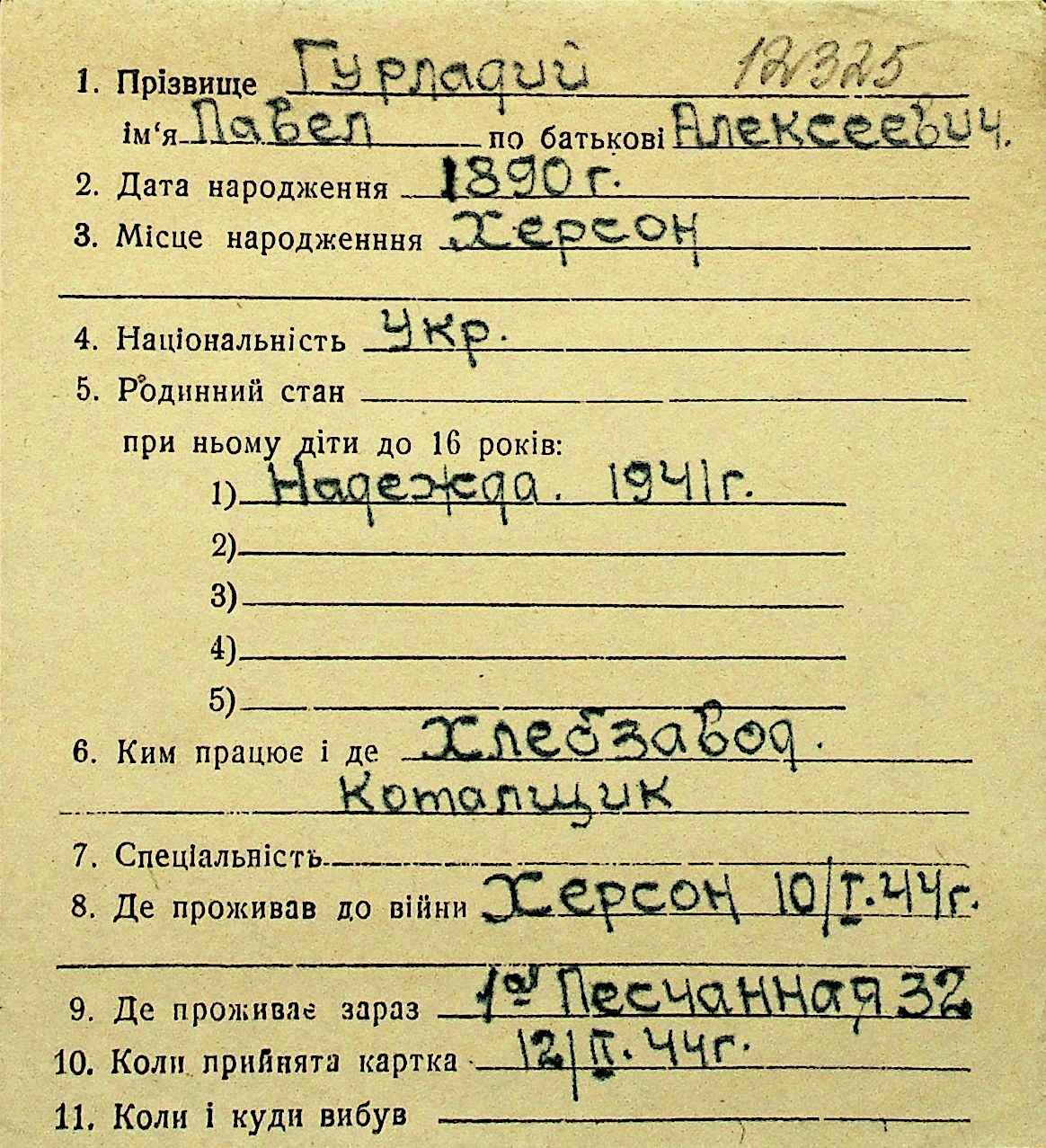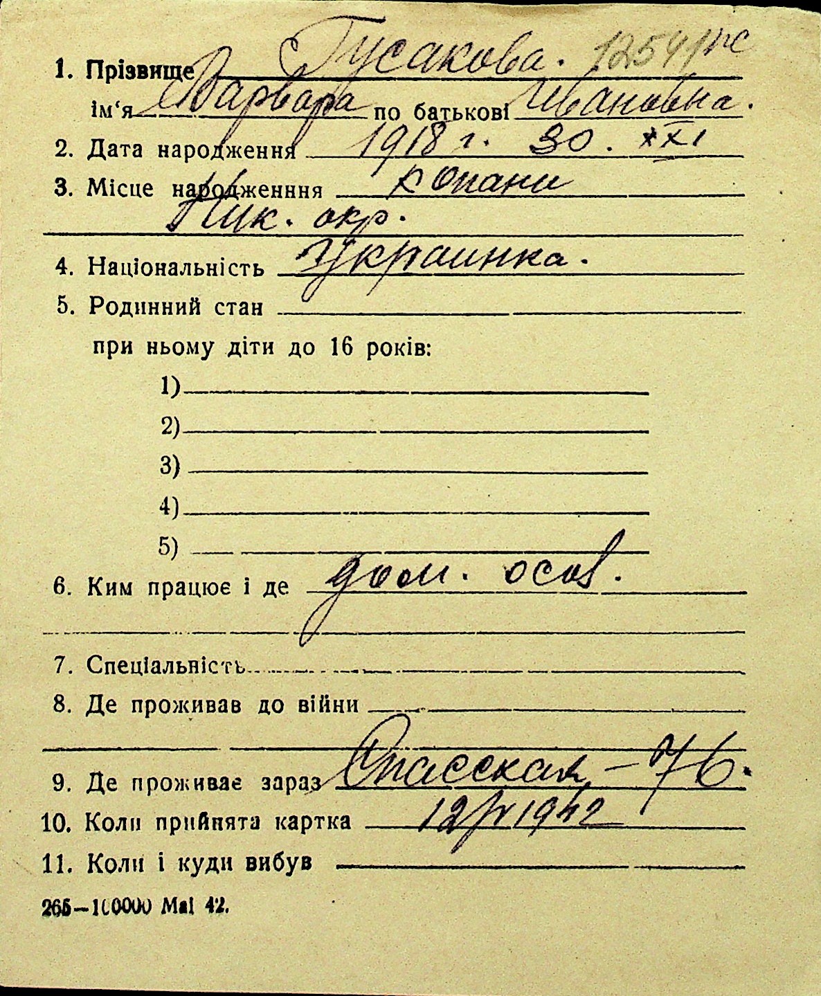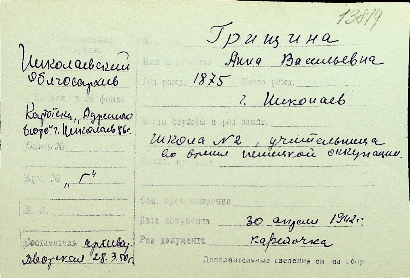 • • Перелік карток до фонду № Н-1016