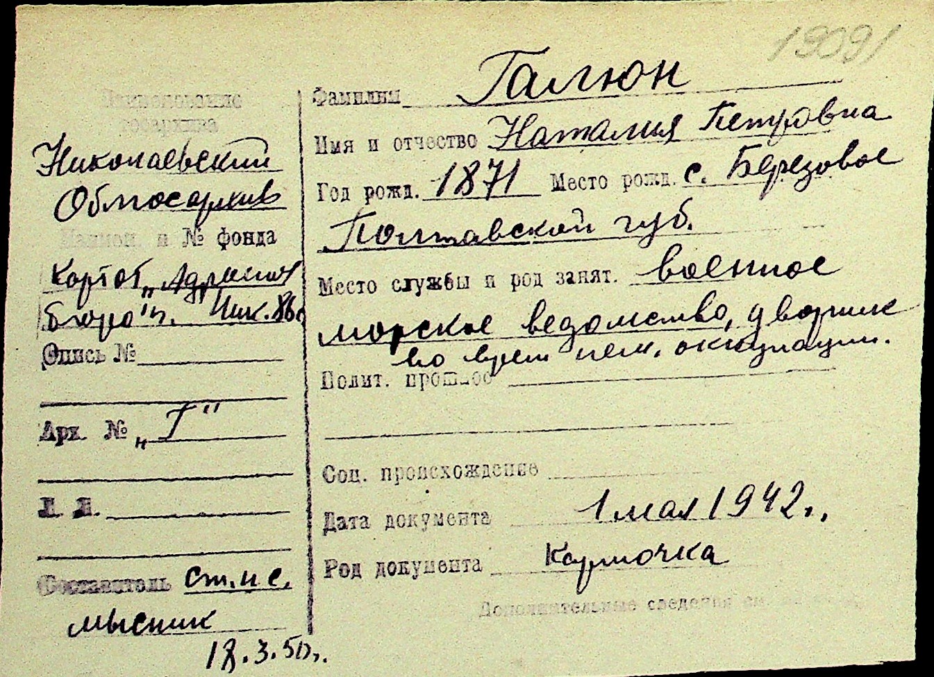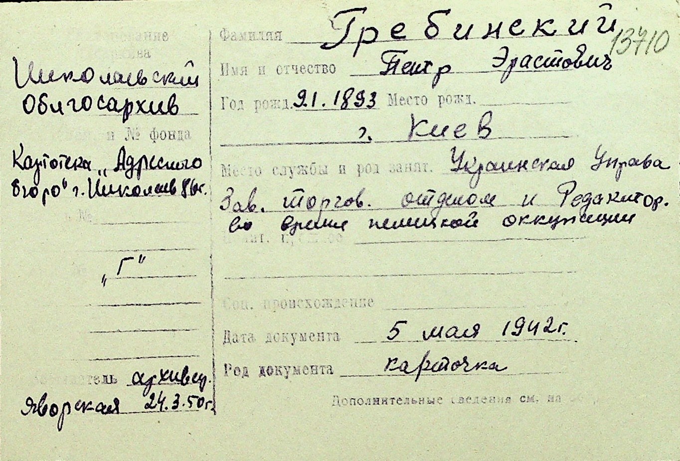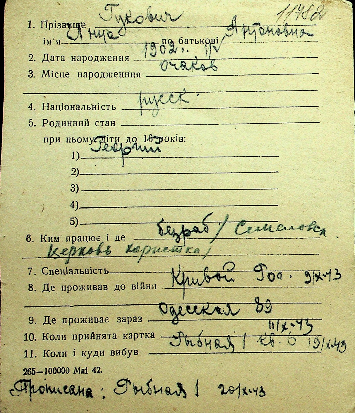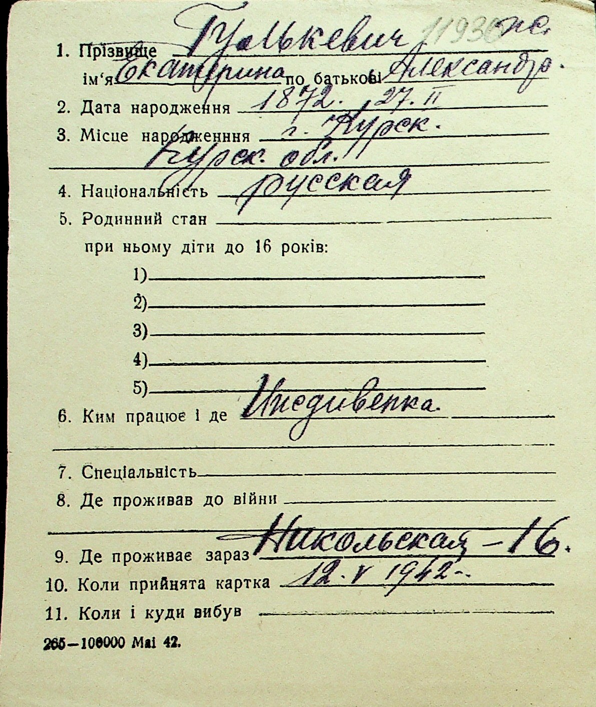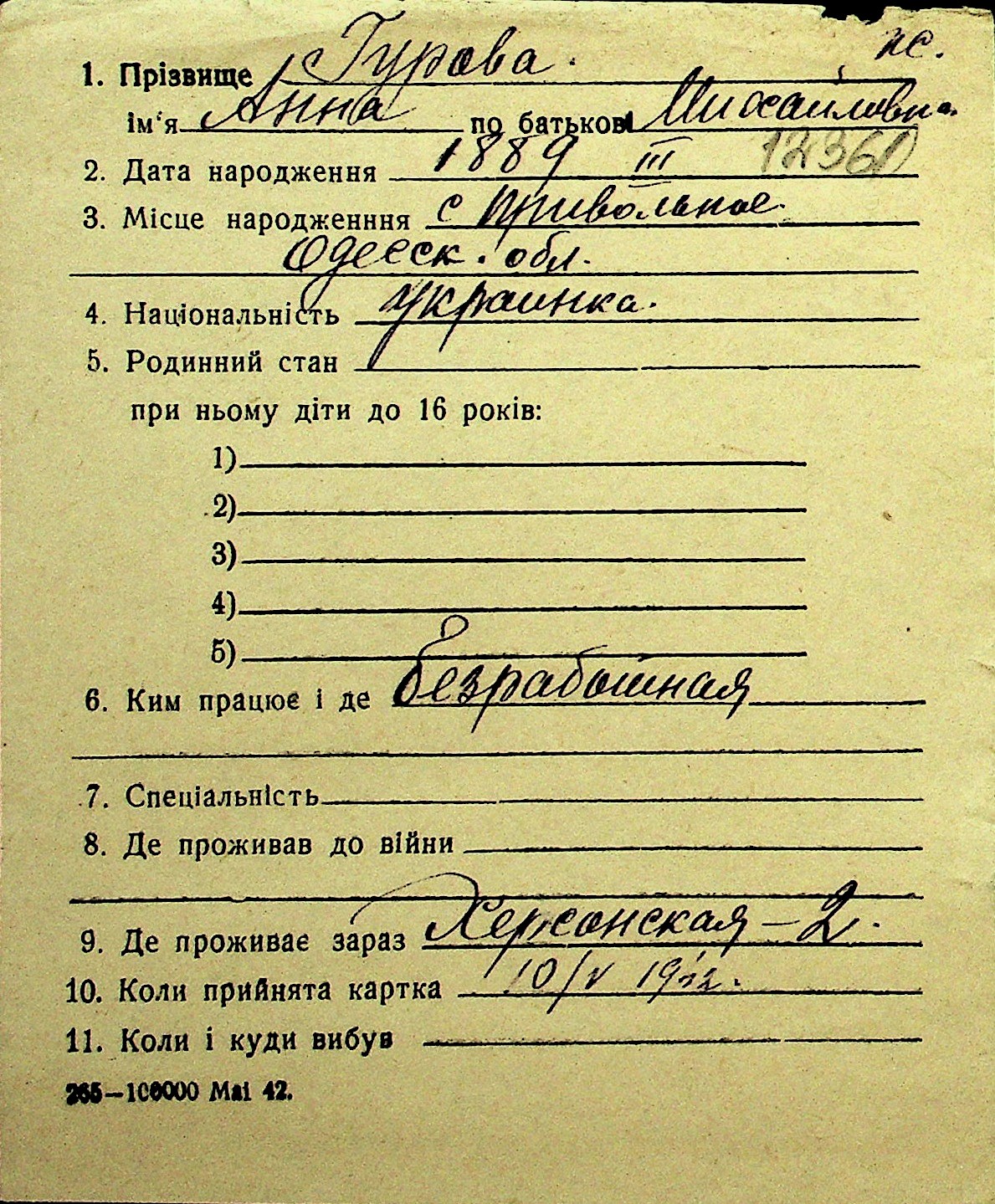 • • Перелік карток до фонду № Н-1016